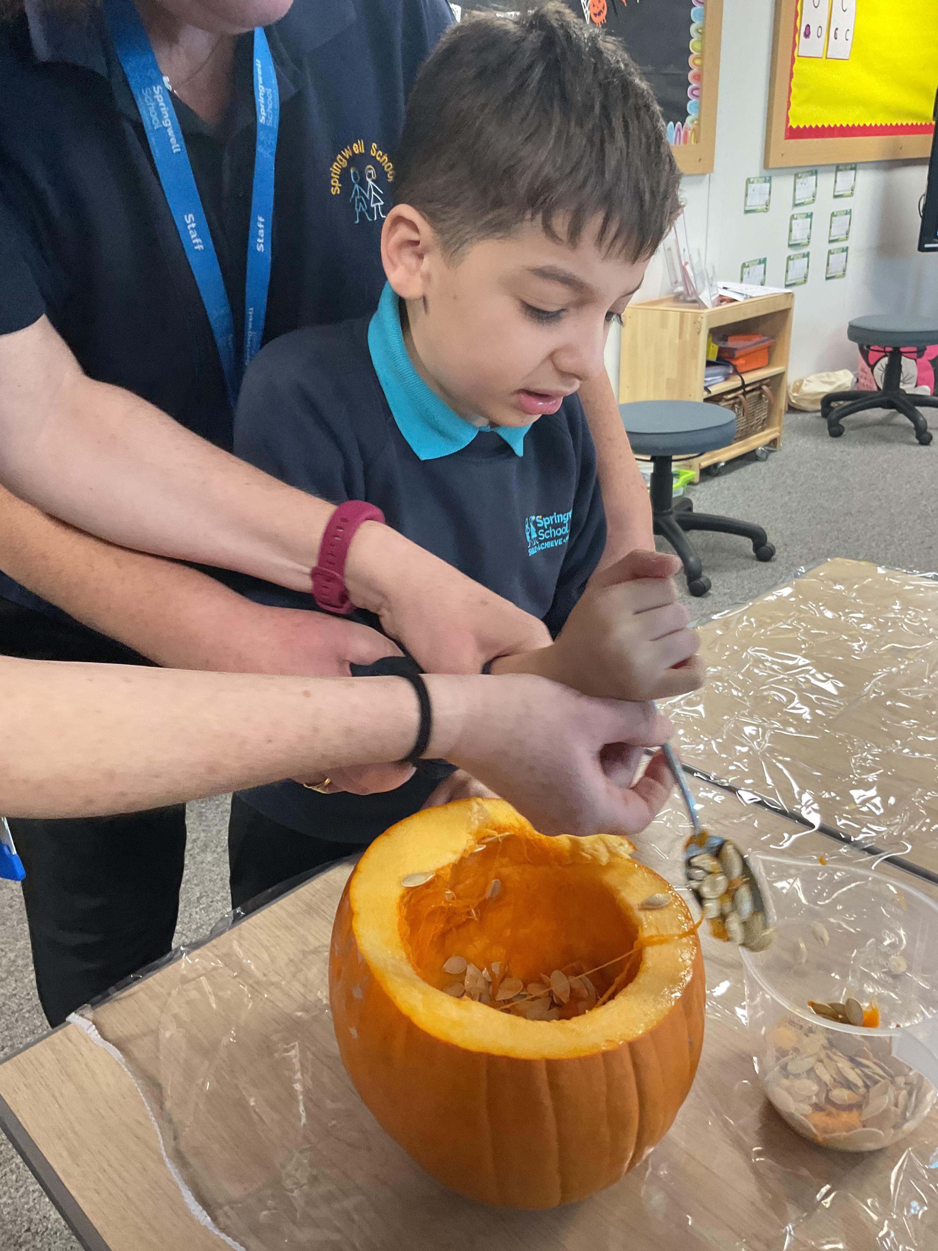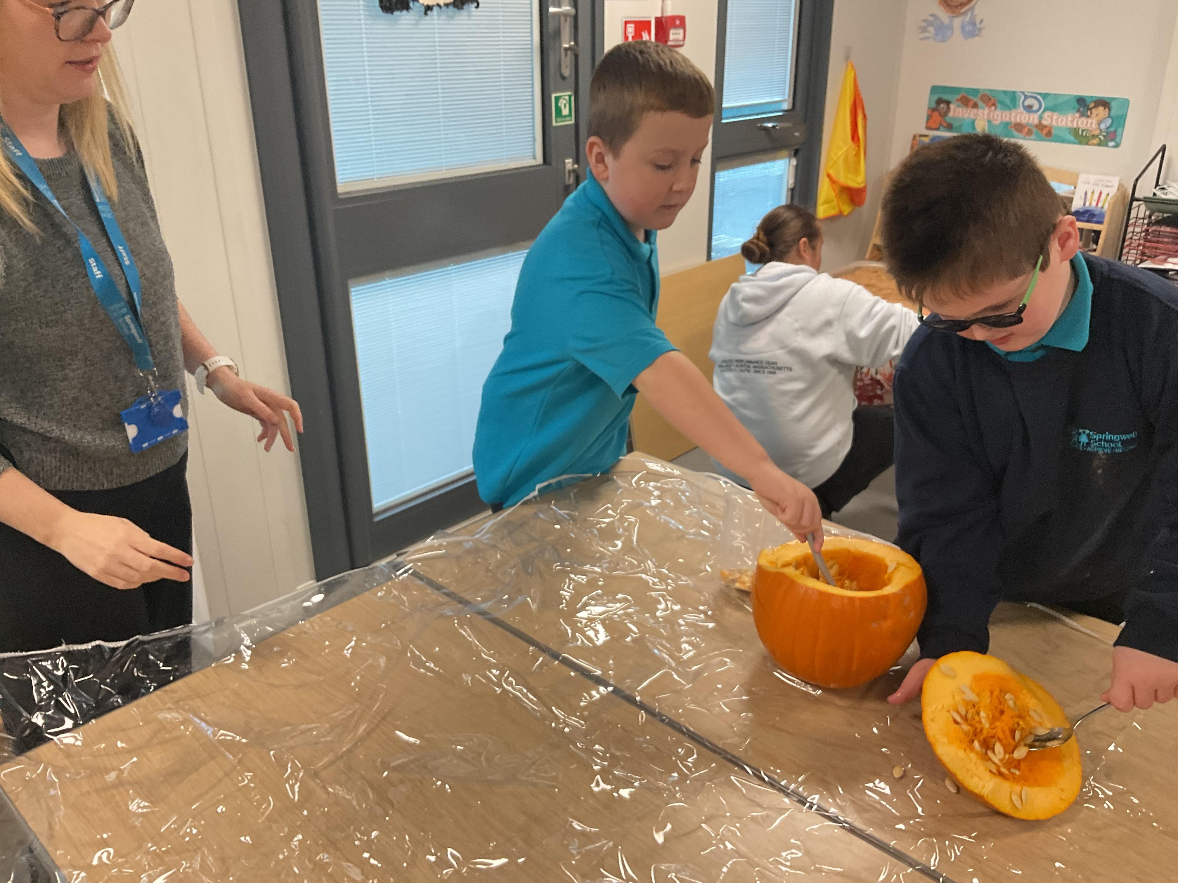 This week have been taking part in lots of Halloween activities, including a trip out to see Halloween decorations, carving pumpkins and taking part in Halloween crafts.
