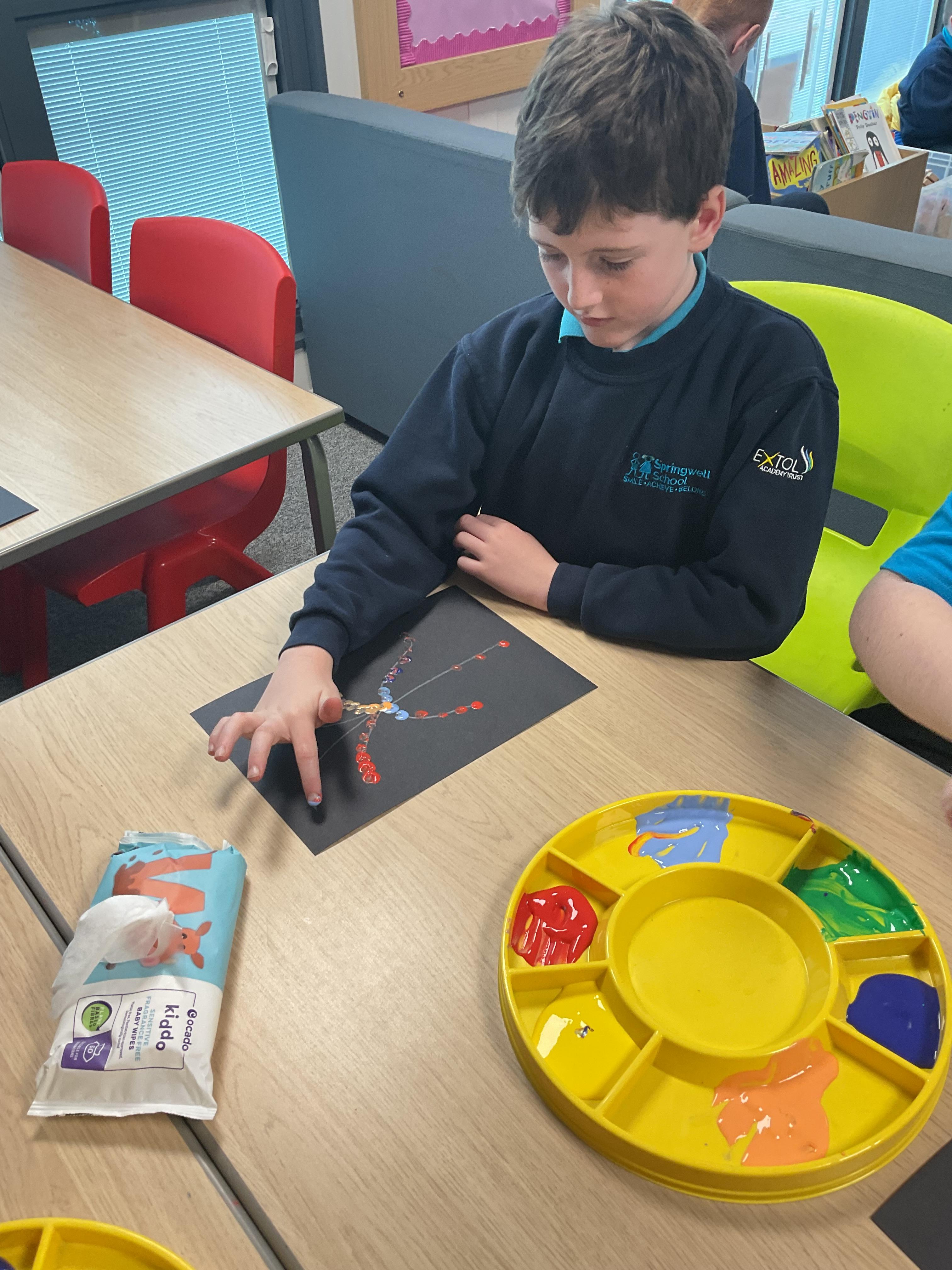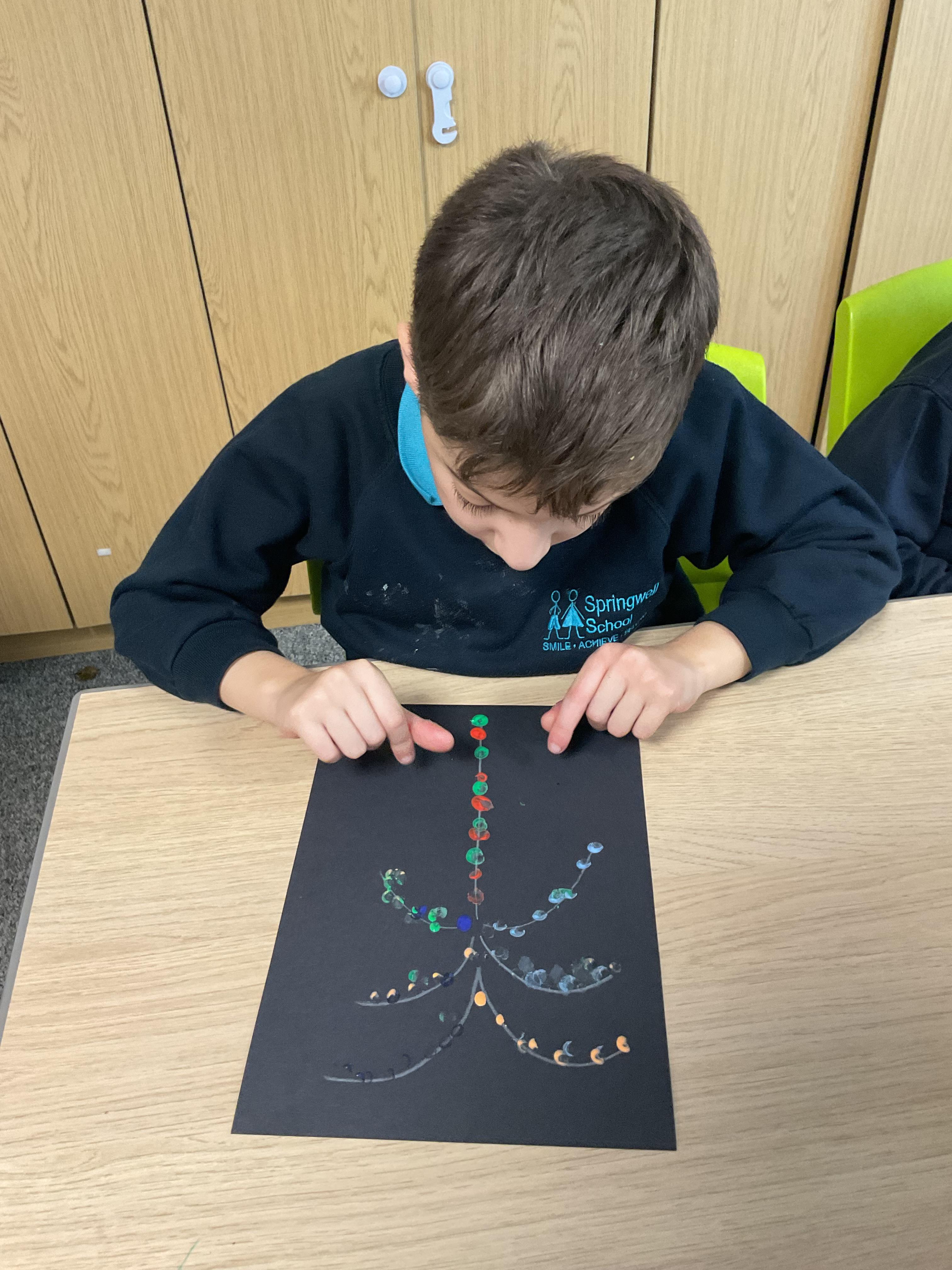 We have been learning about the Hindu festival of light, Diwali. We created colourful fireworks using repeated patterns.