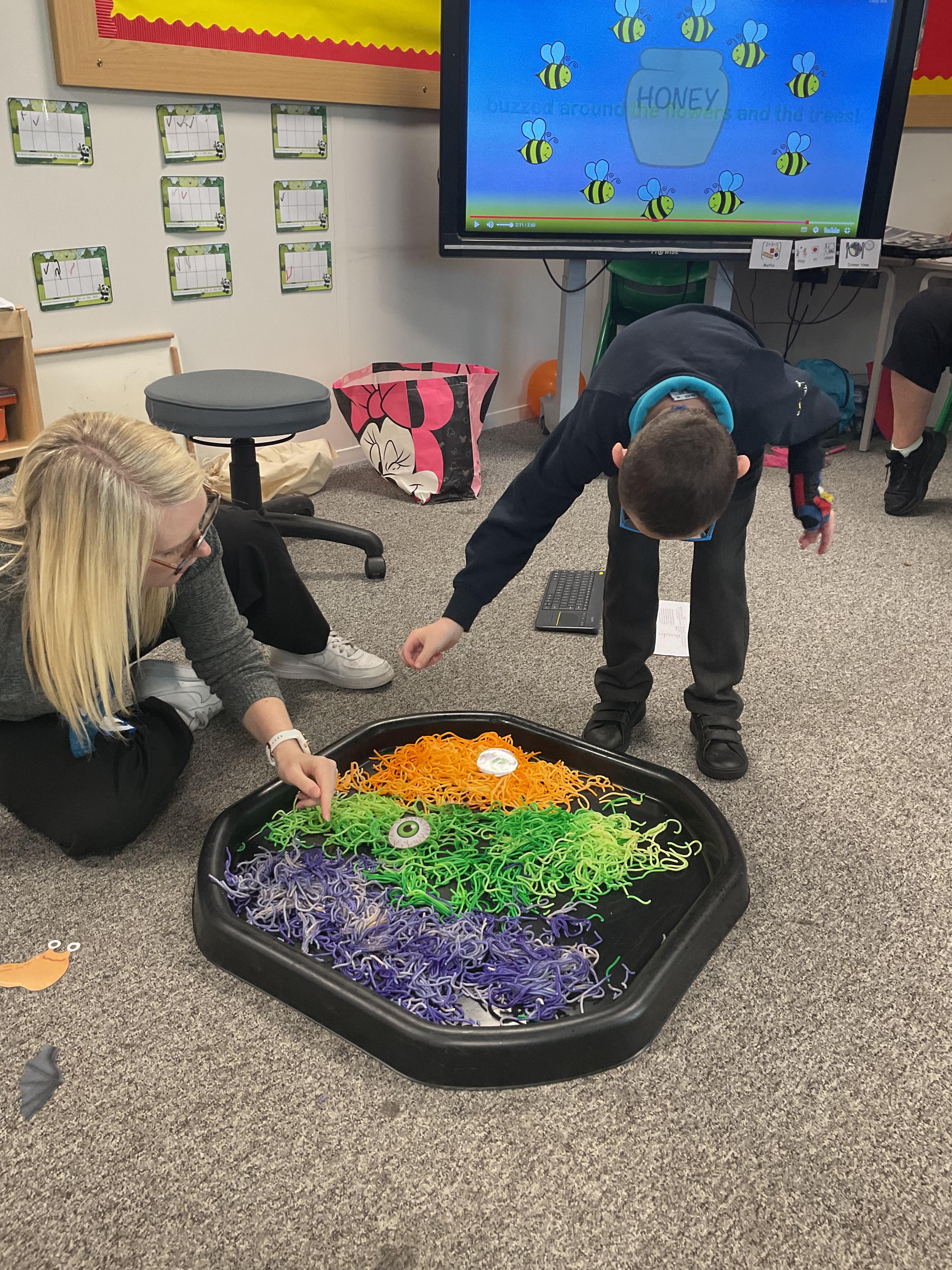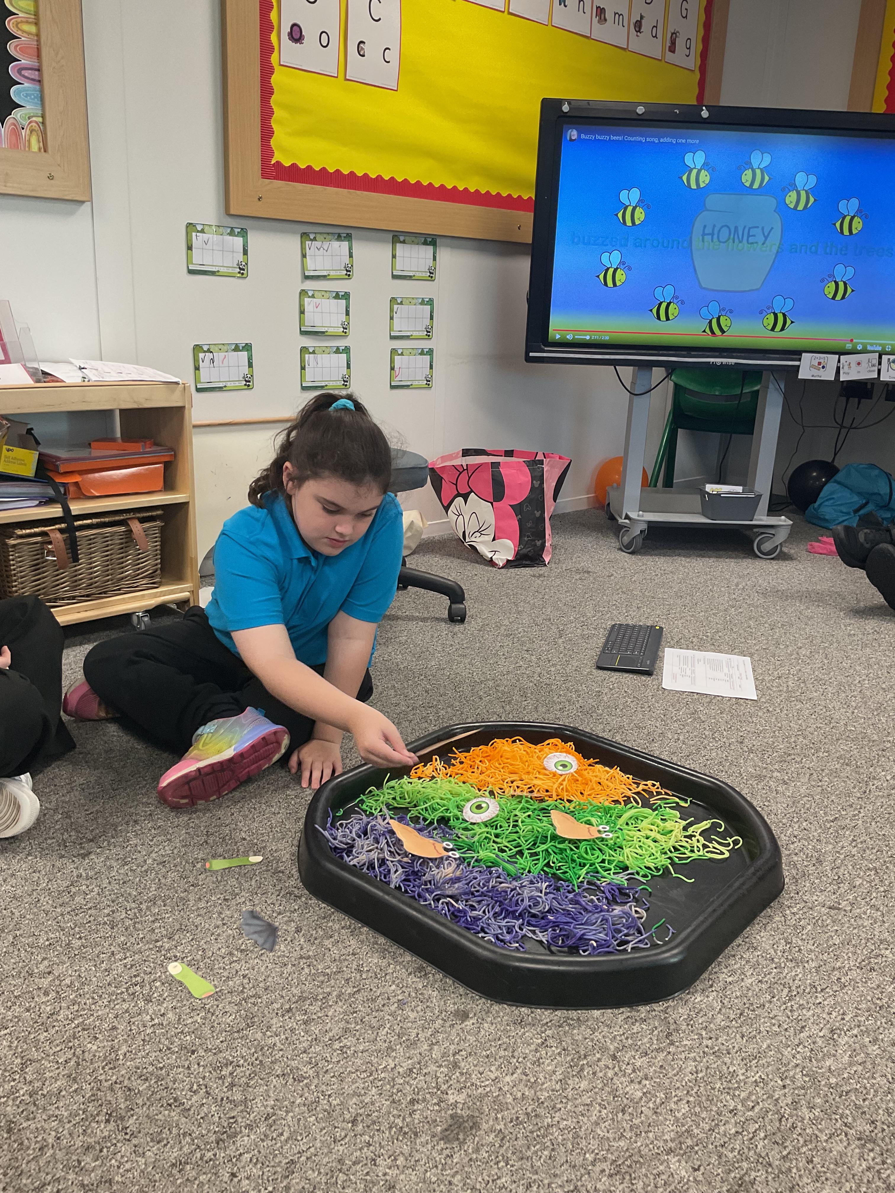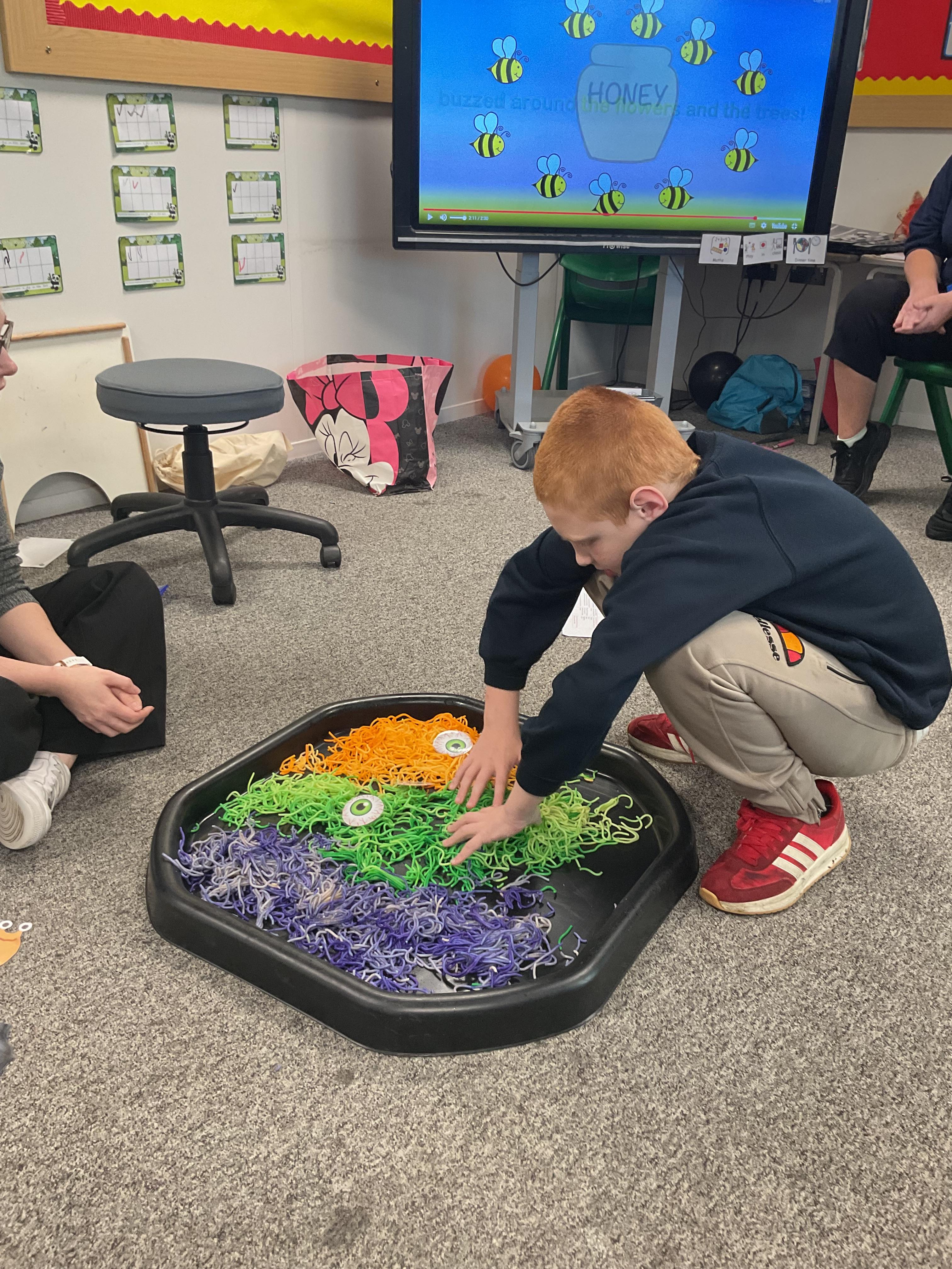 We enjoyed exploring the autumn tray after the lesson in ‘Play in Class’ time.