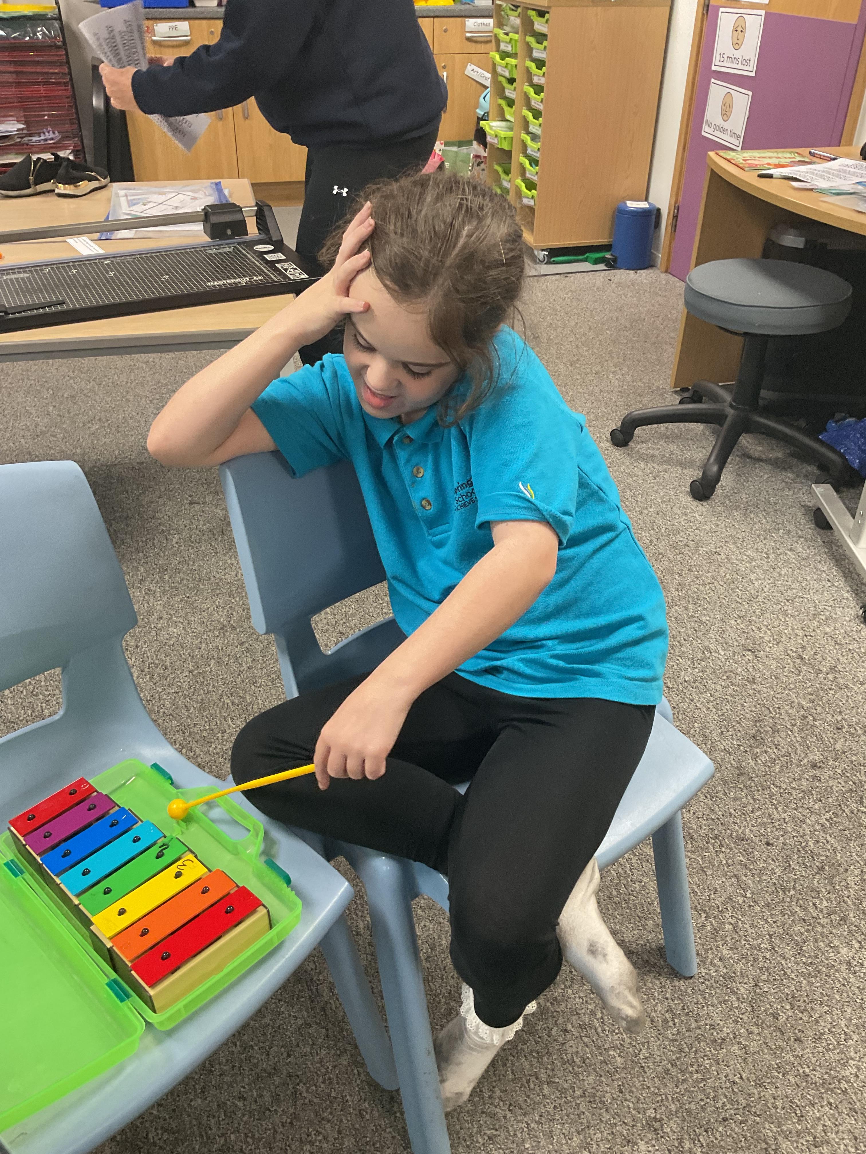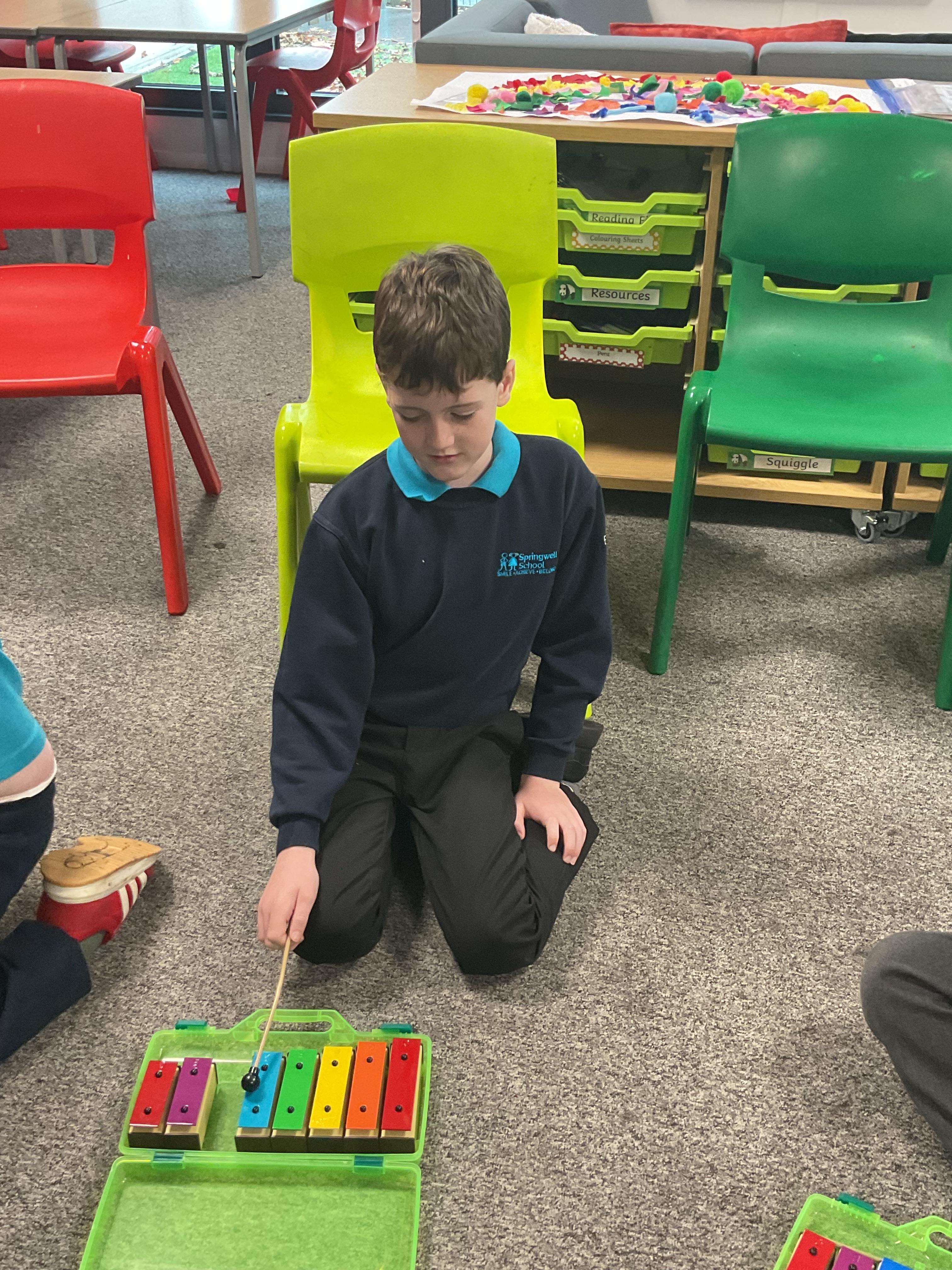 Today we worked with Becky at Tees Valley Music to learn a song on a glockenspiel. Some of us were very good at remembering the notes!