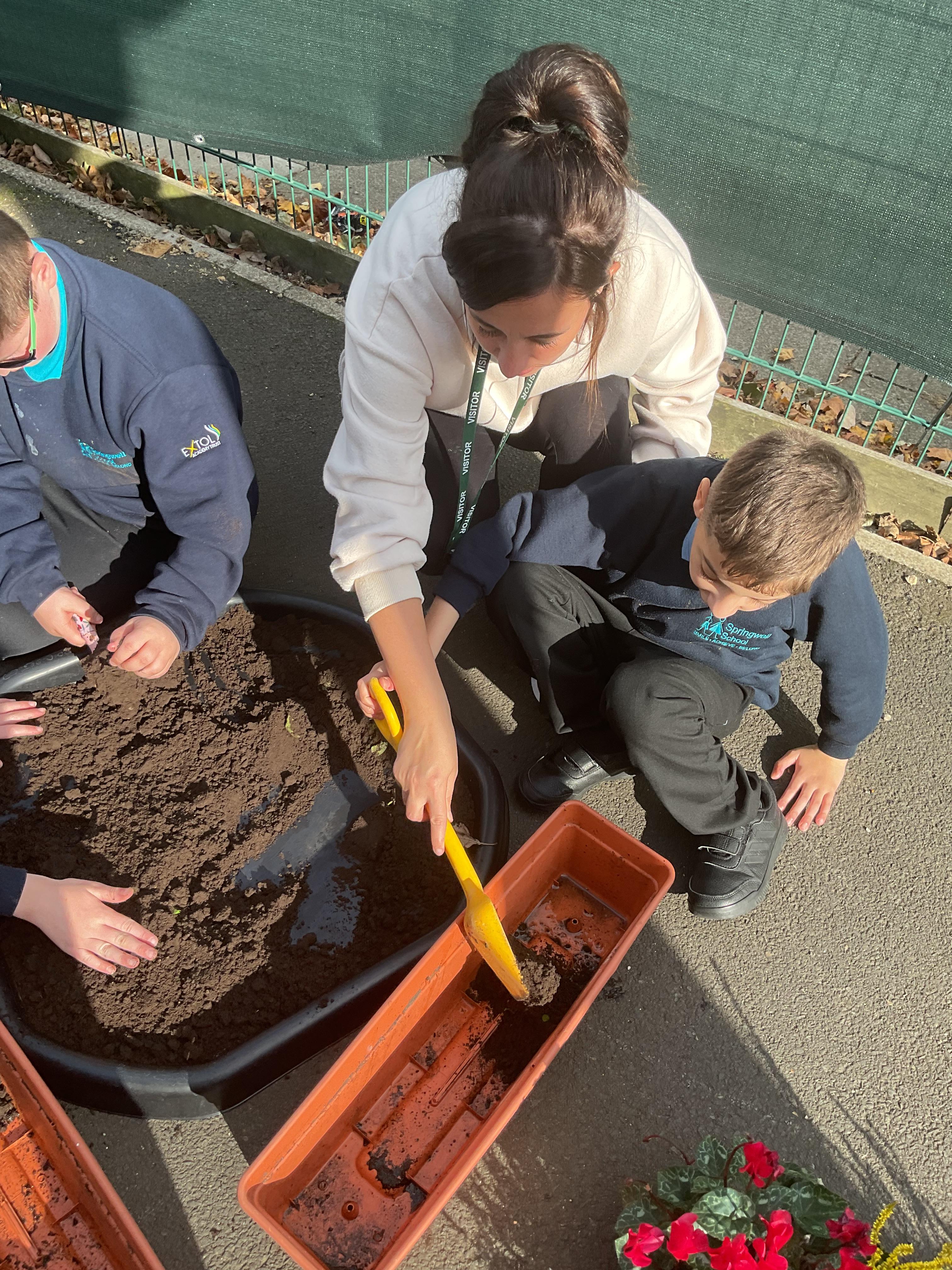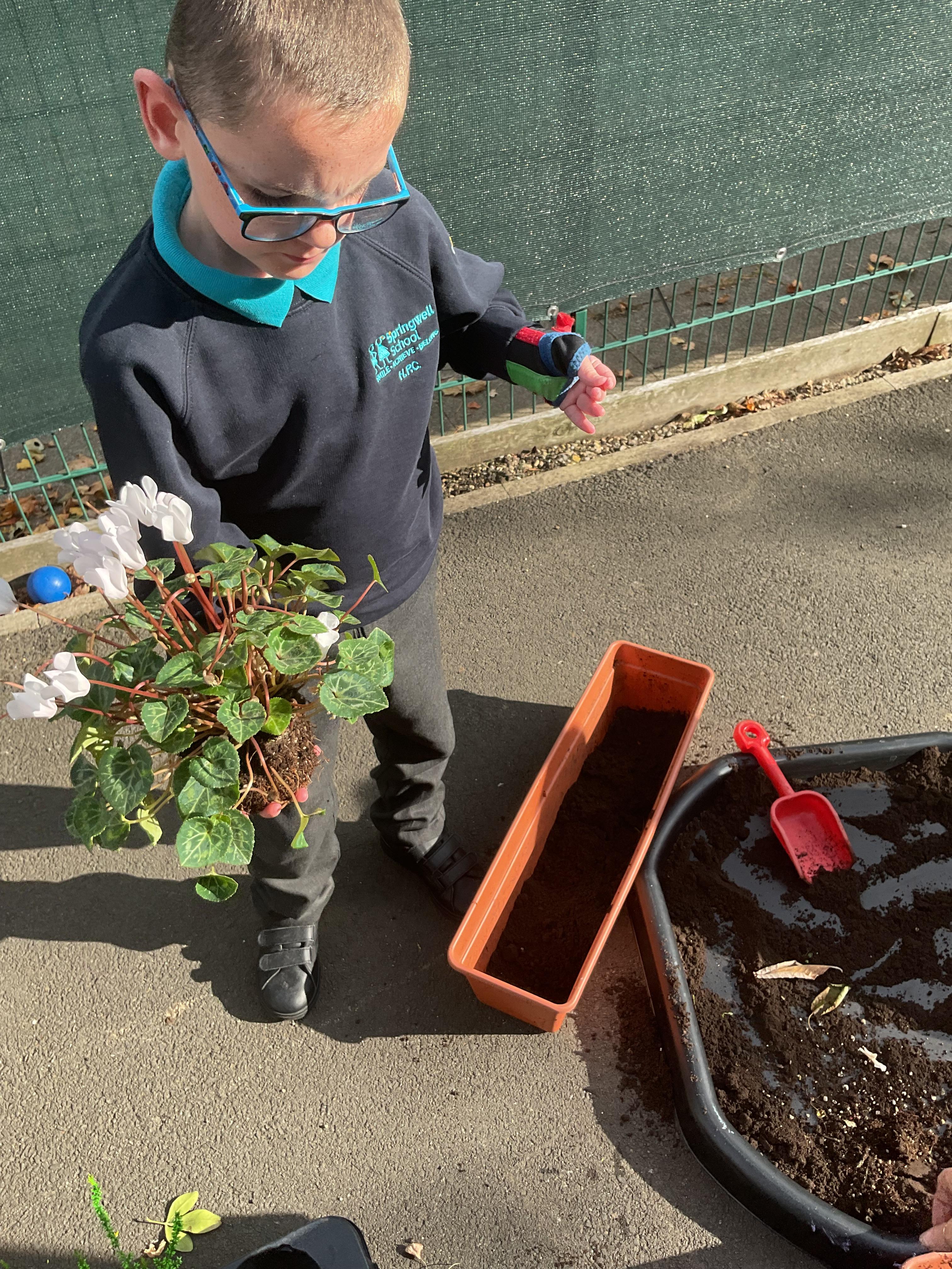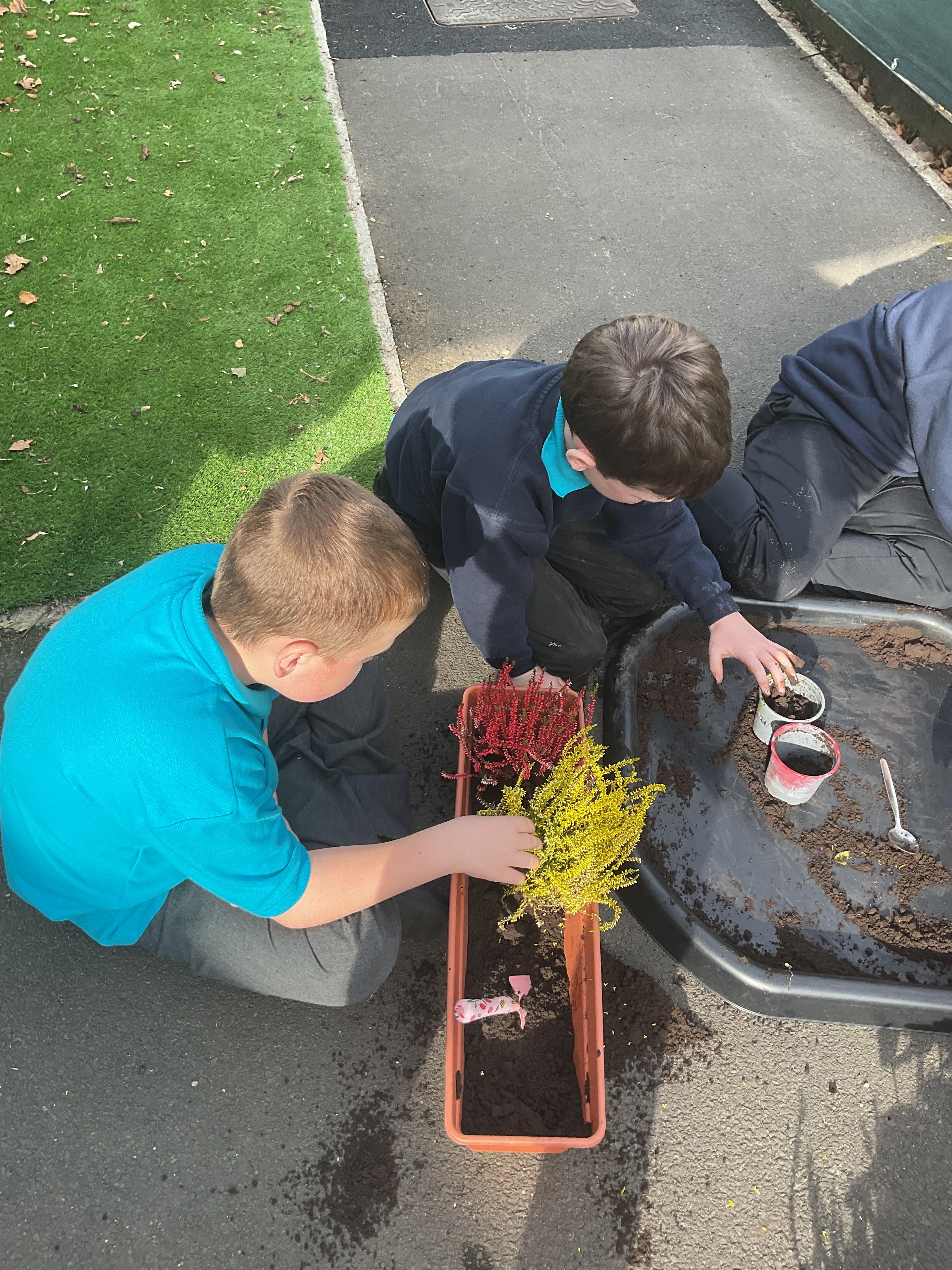 The lovely people at the Dutch Gardening Centre donated some autumn flowers to us so we had fun planting them for our class outside area. We worked on working alongside others, sharing equipment and developing our independence.