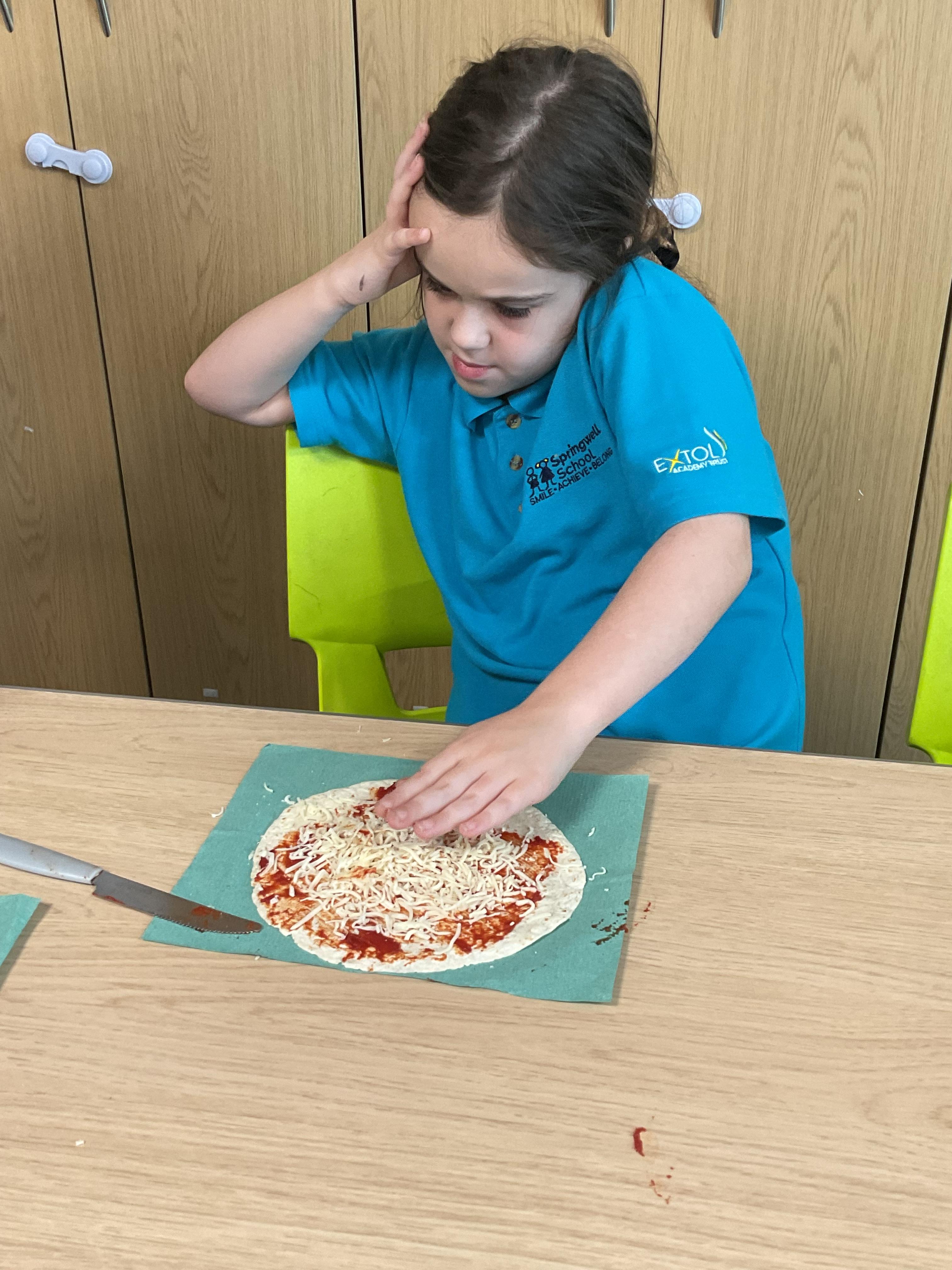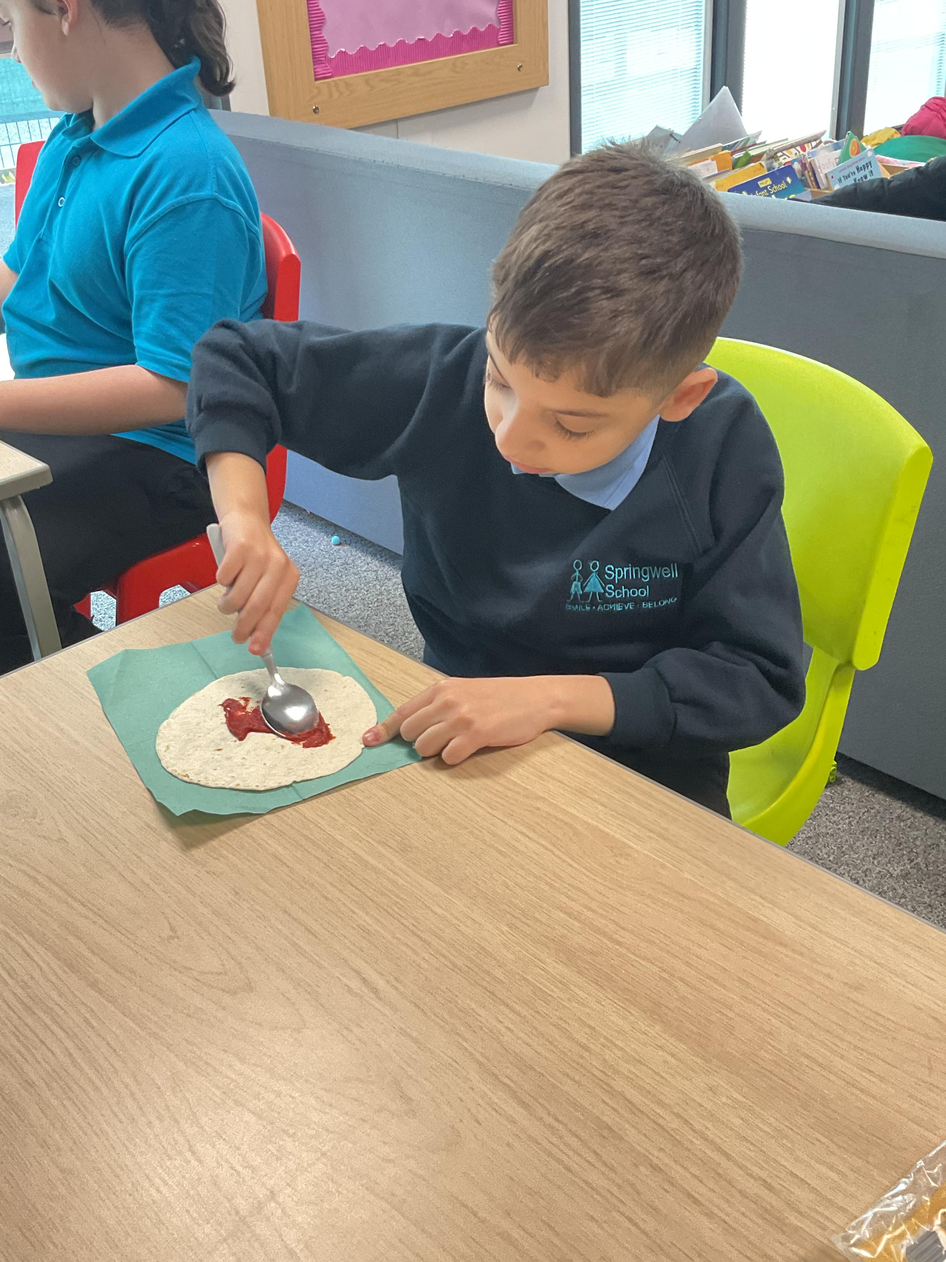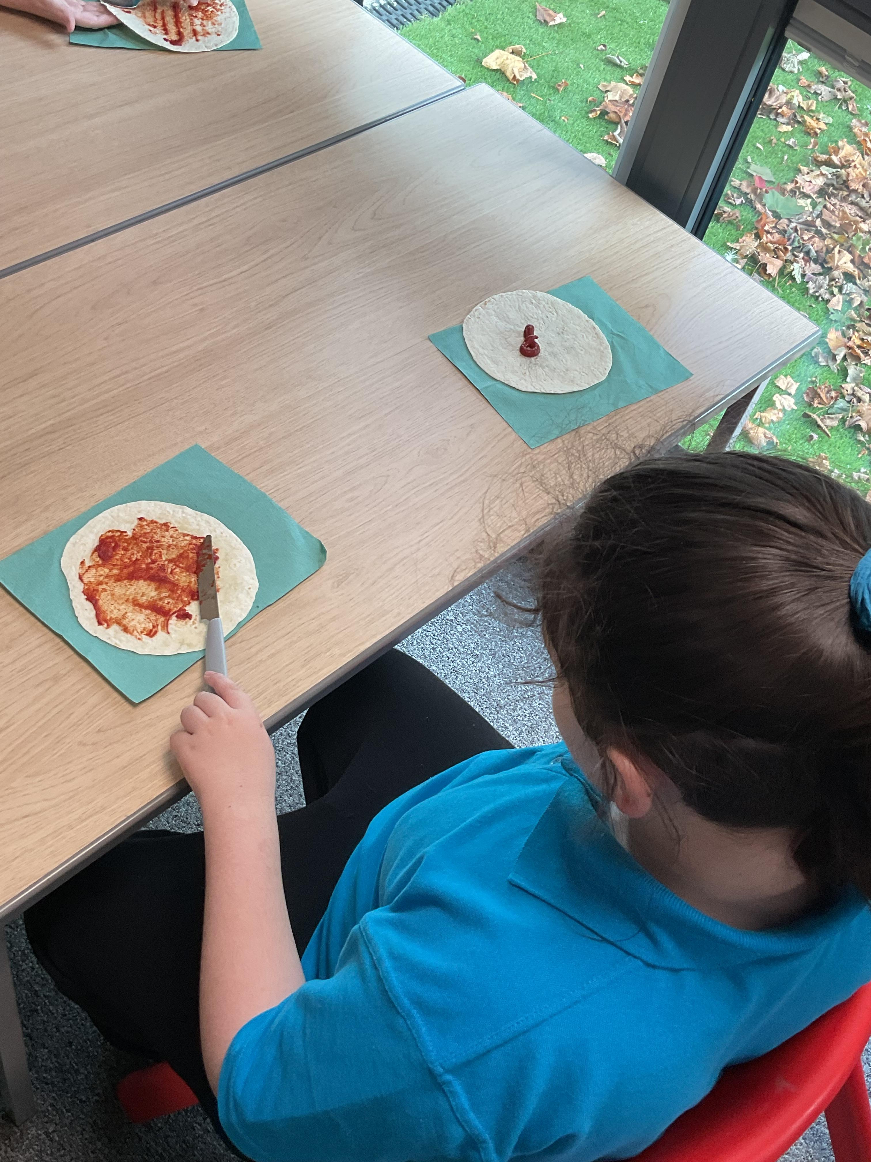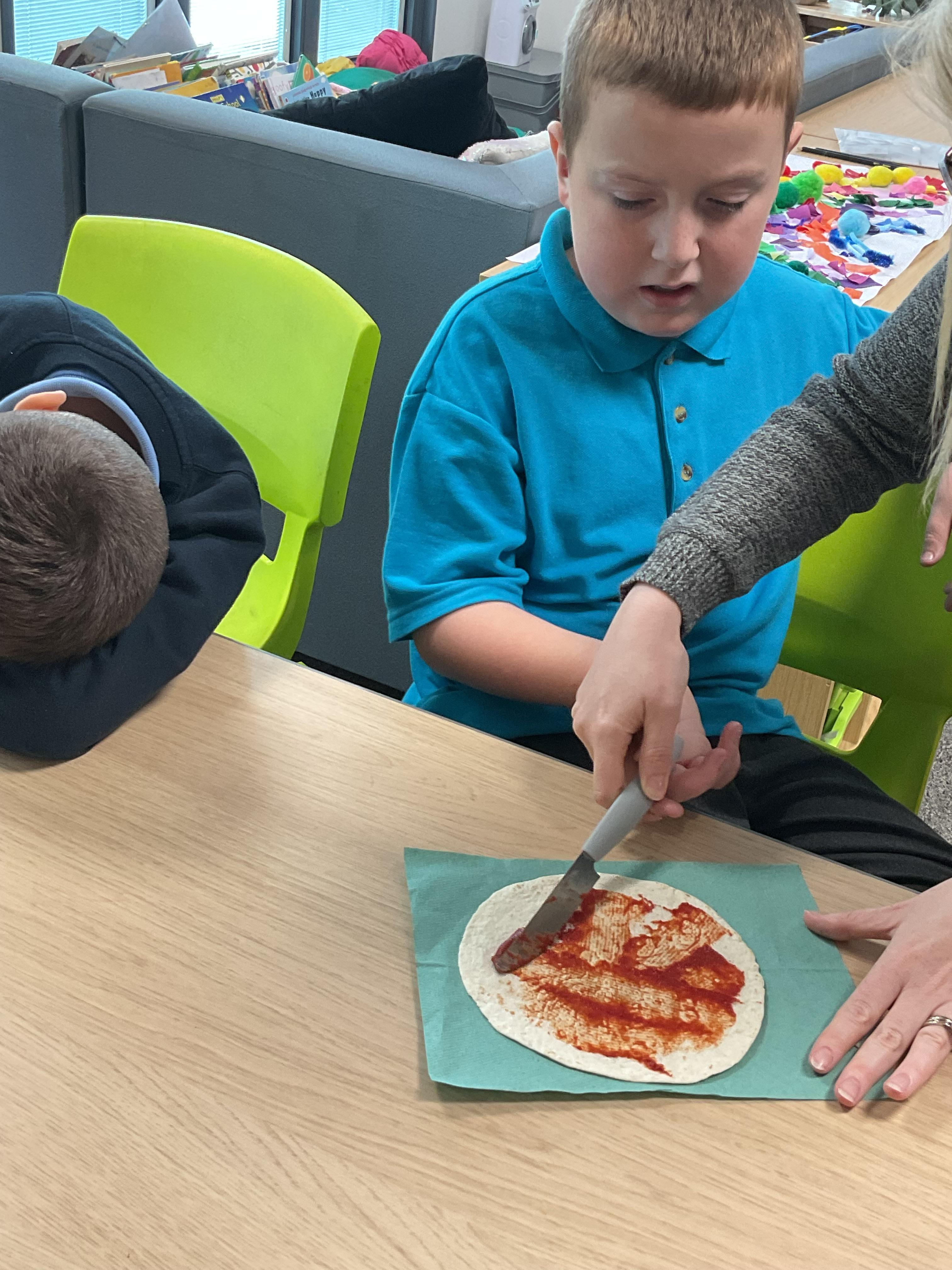 In our story, the characters enjoyed some pizza so we had a go at making our own. We used our listening skills to follow instructions with four key words.