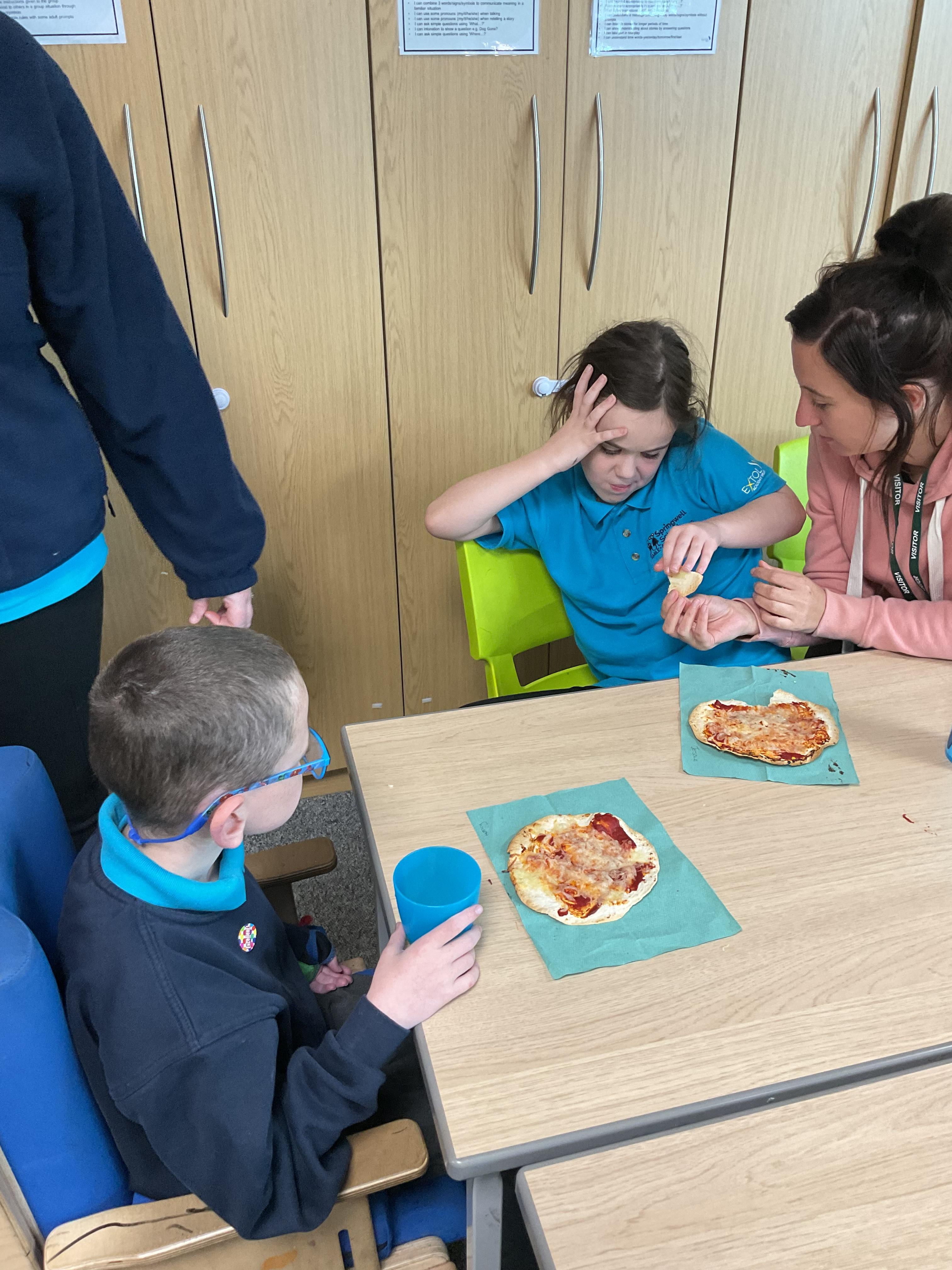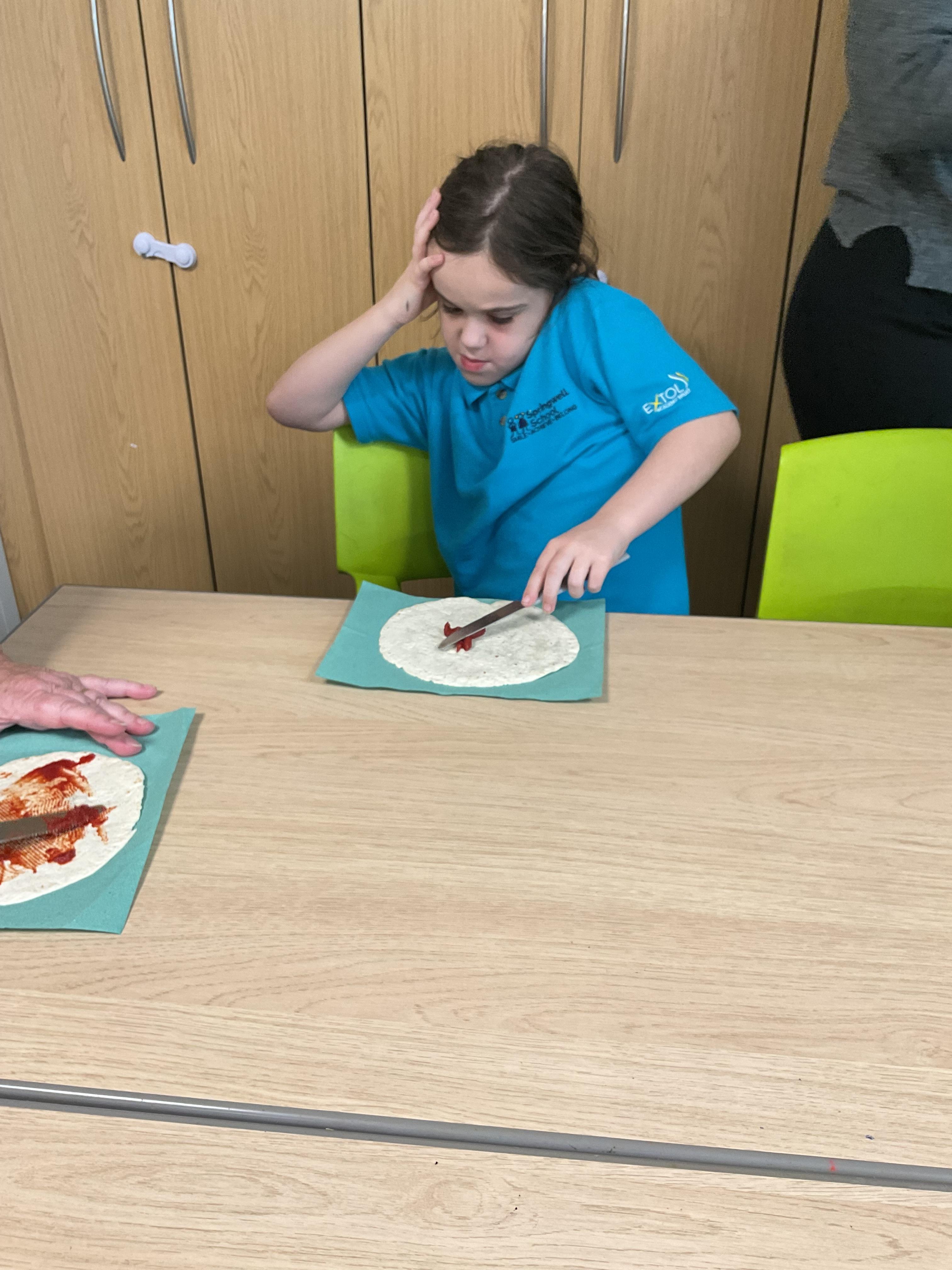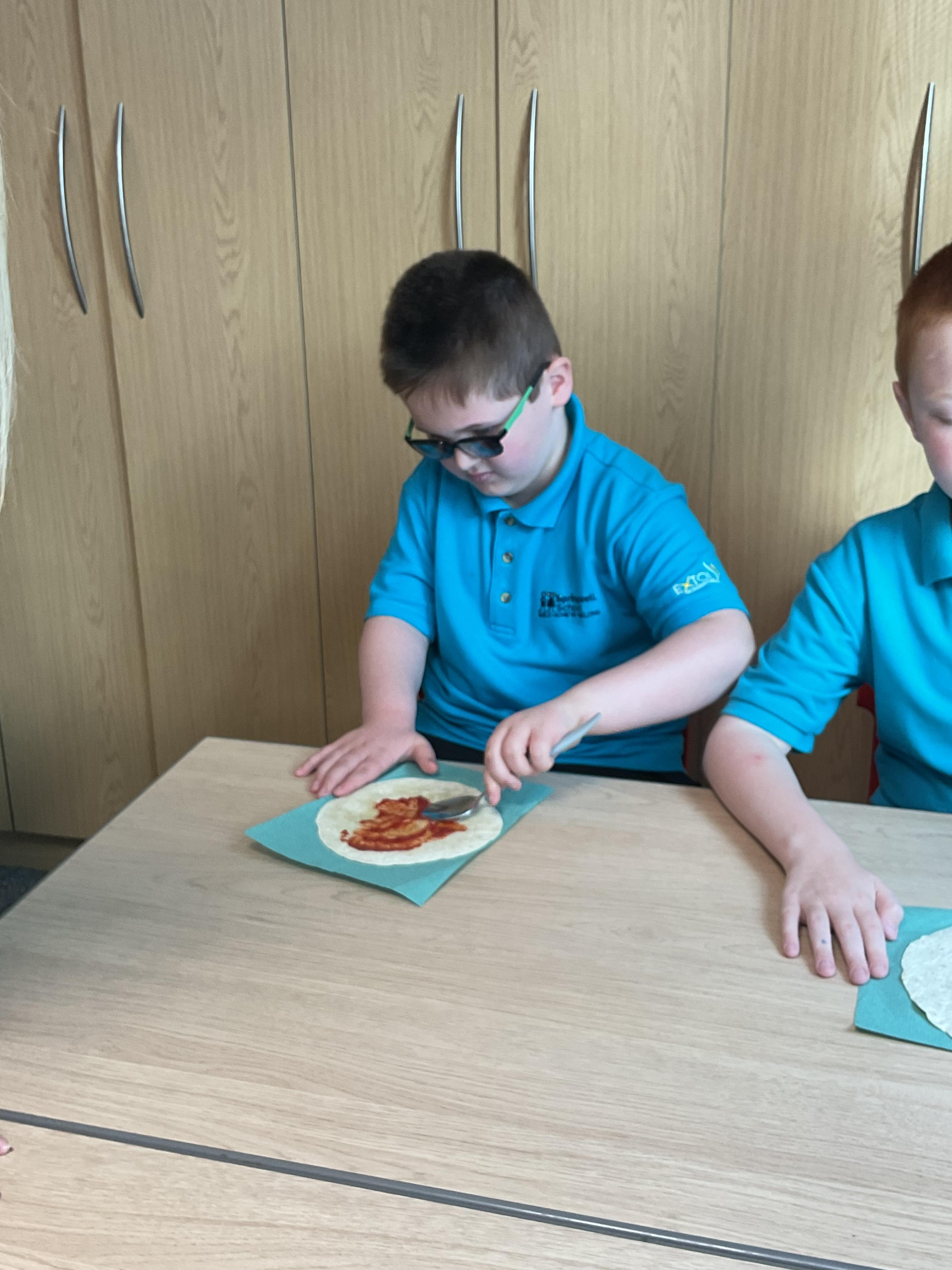 In our story, the characters enjoyed some pizza so we had a go at making our own. We used our listening skills to follow instructions with four key words.