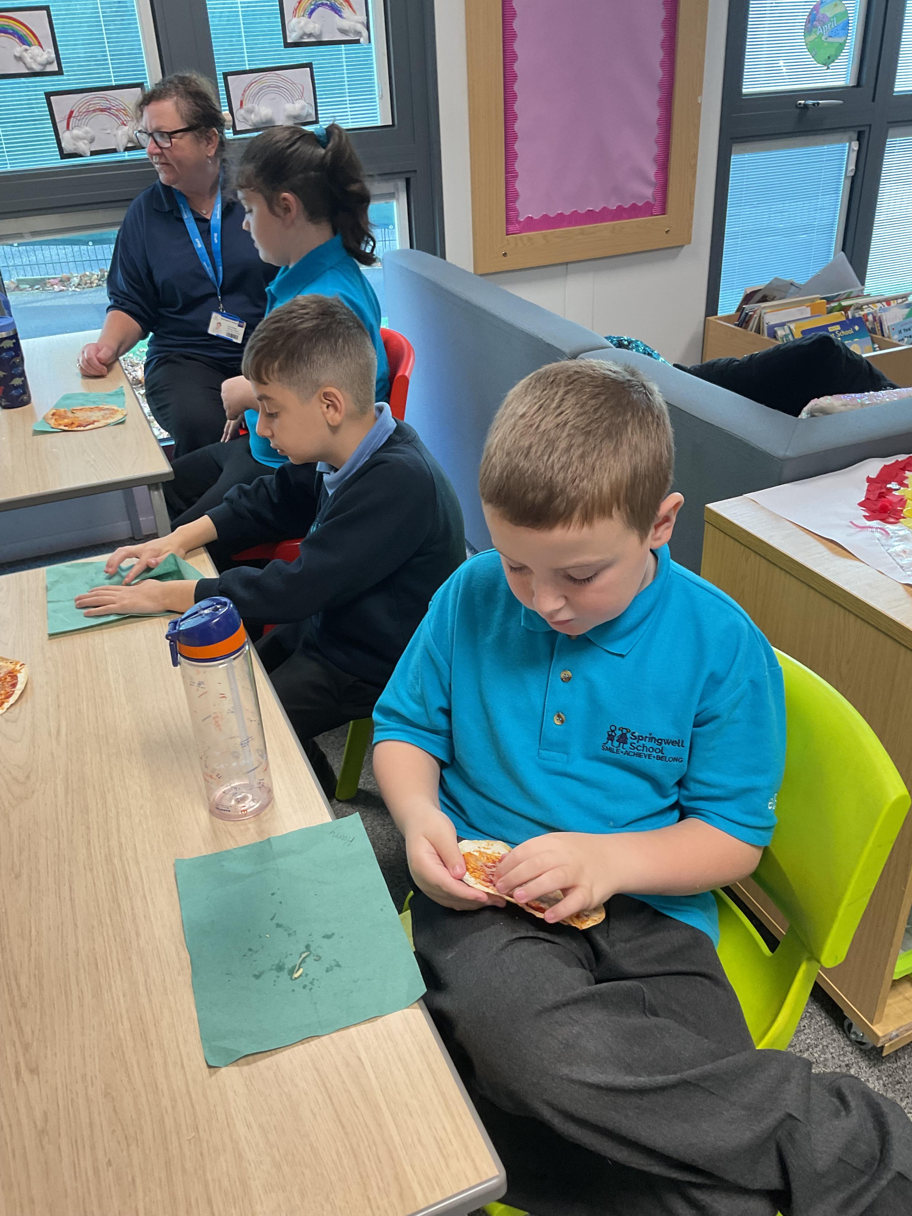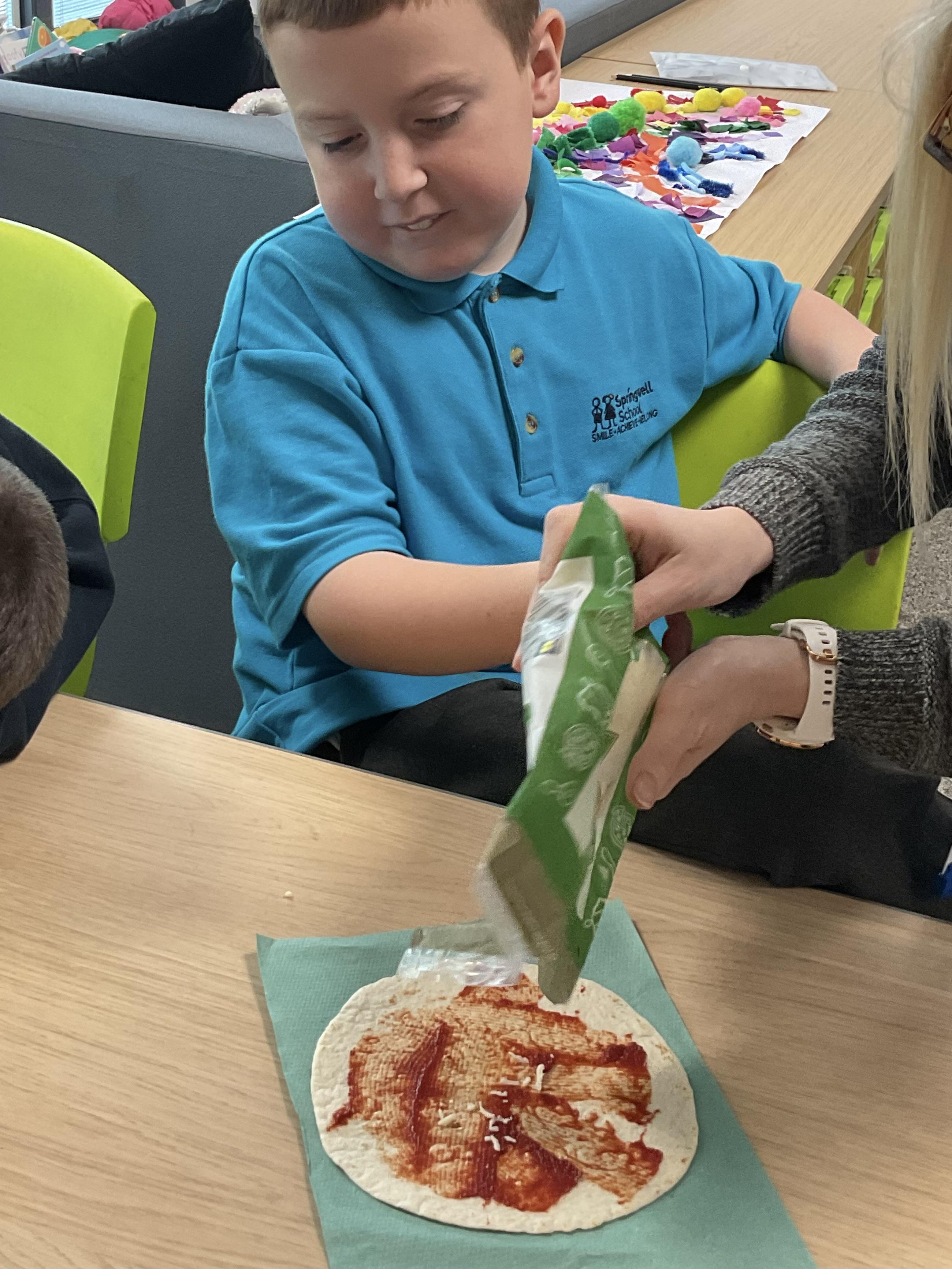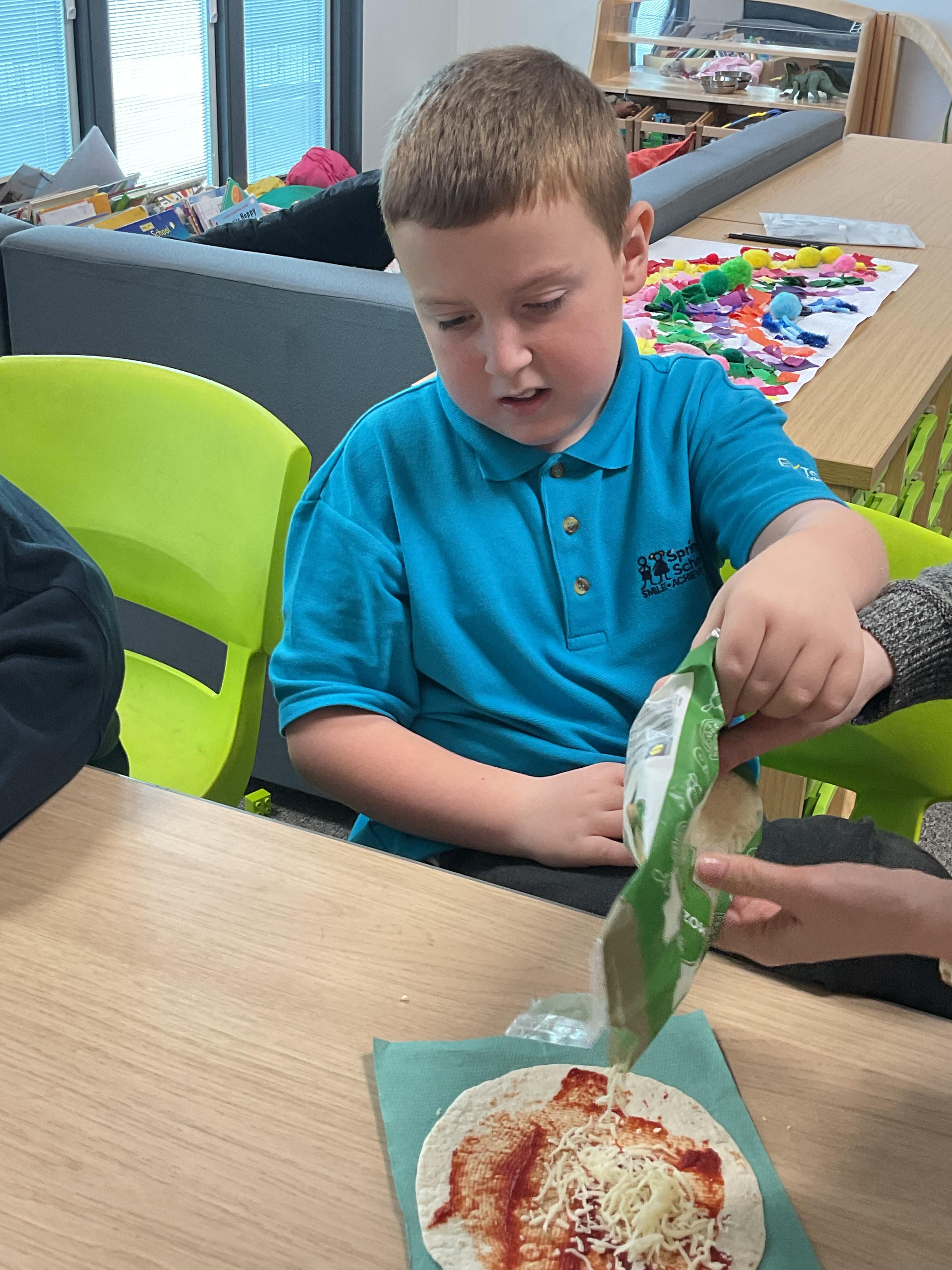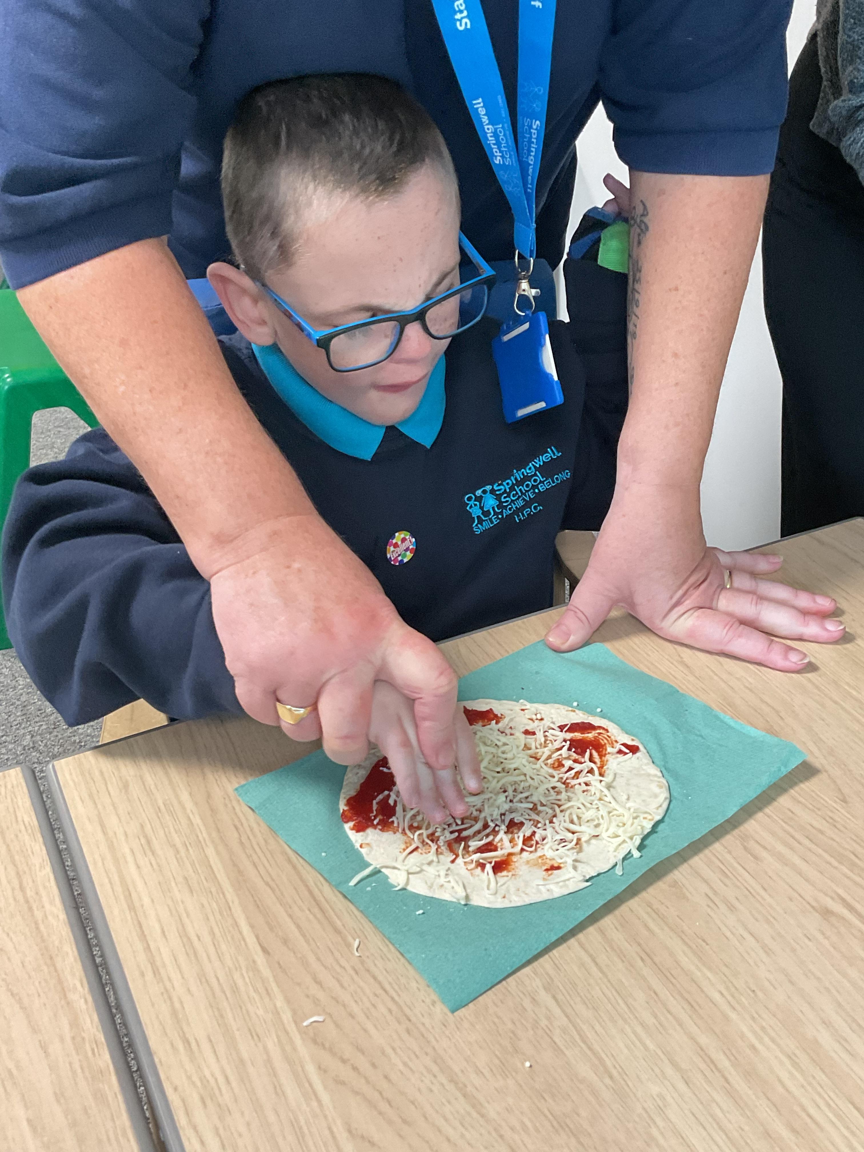 In our story, the characters enjoyed some pizza so we had a go at making our own. We used our listening skills to follow instructions with four key words.