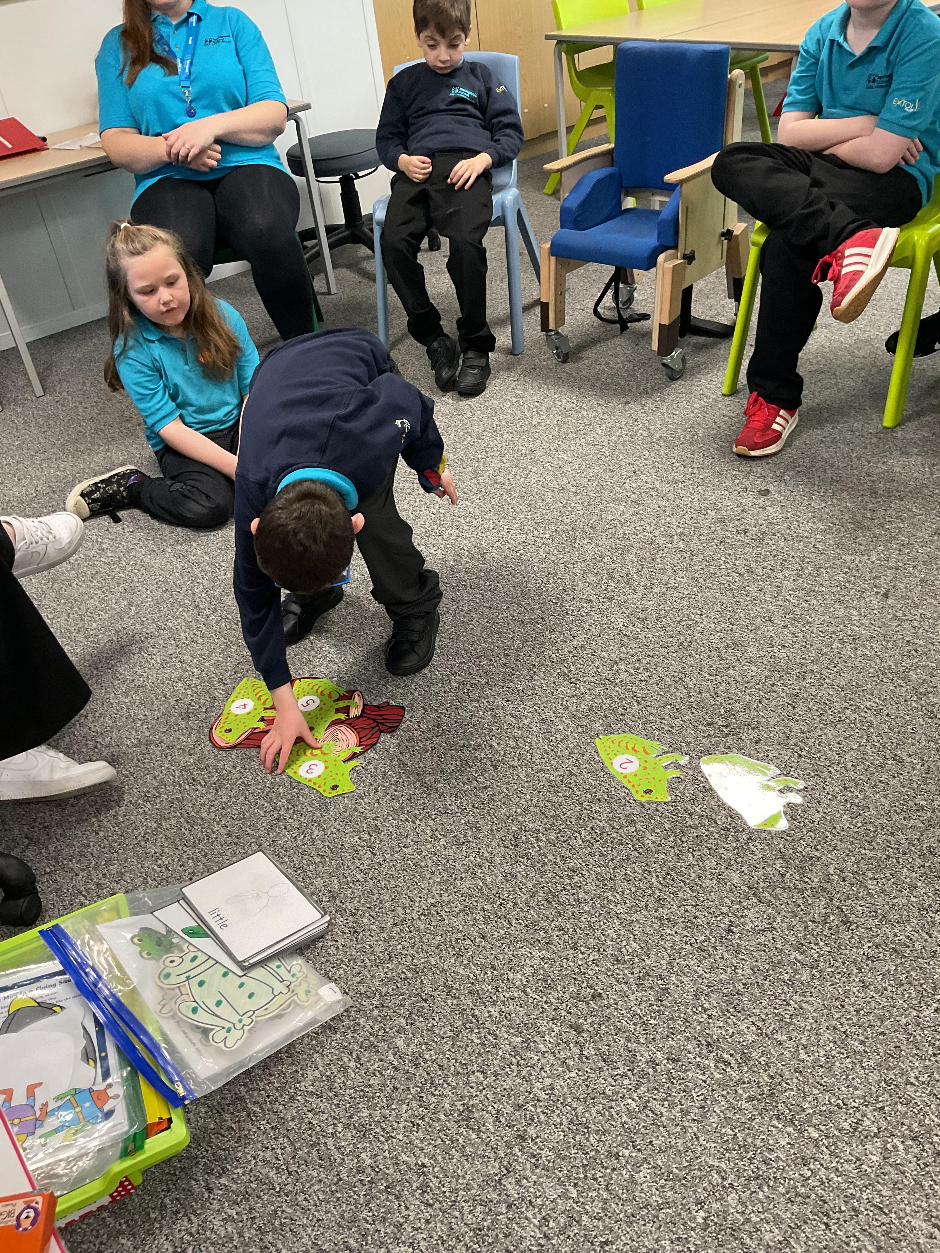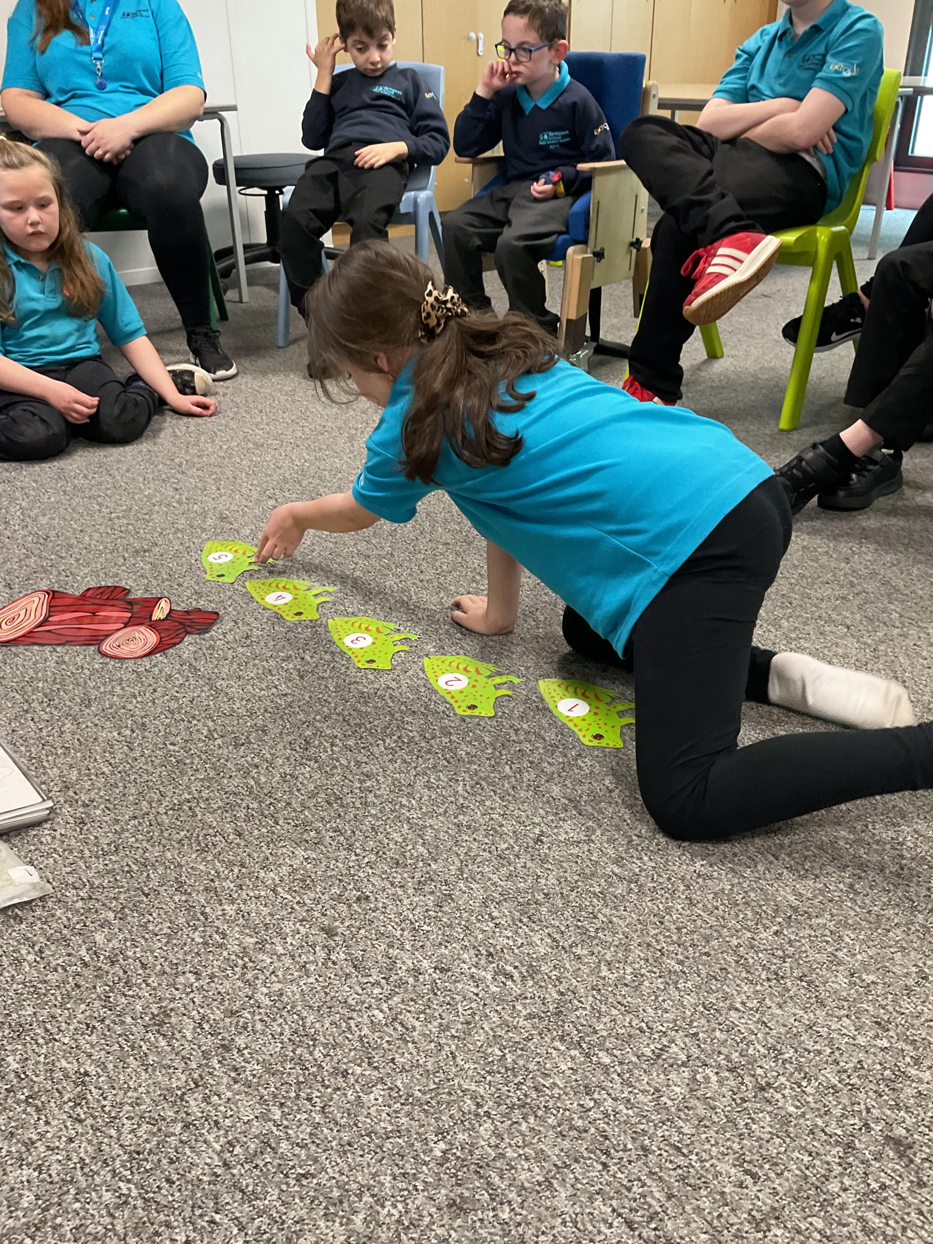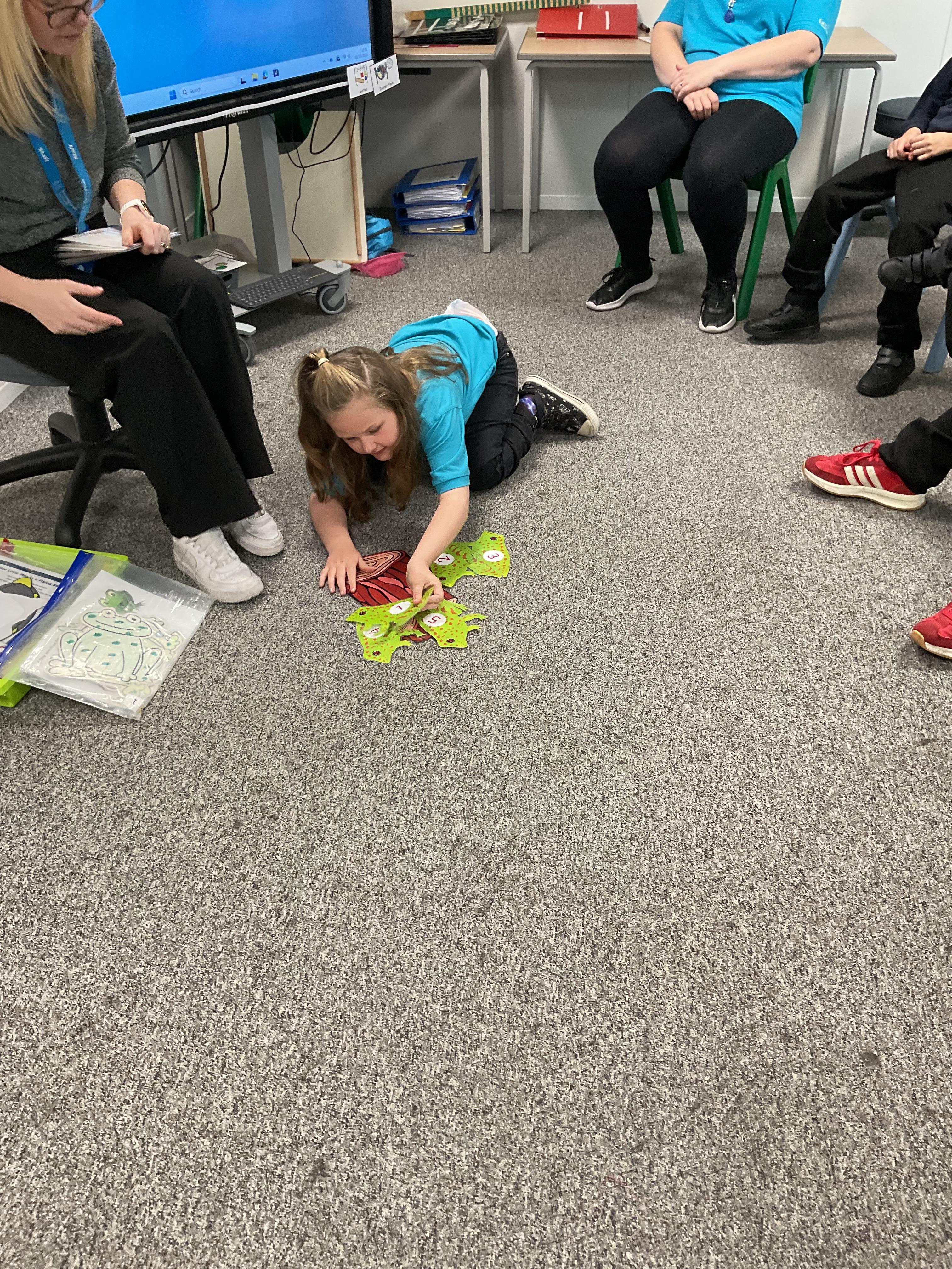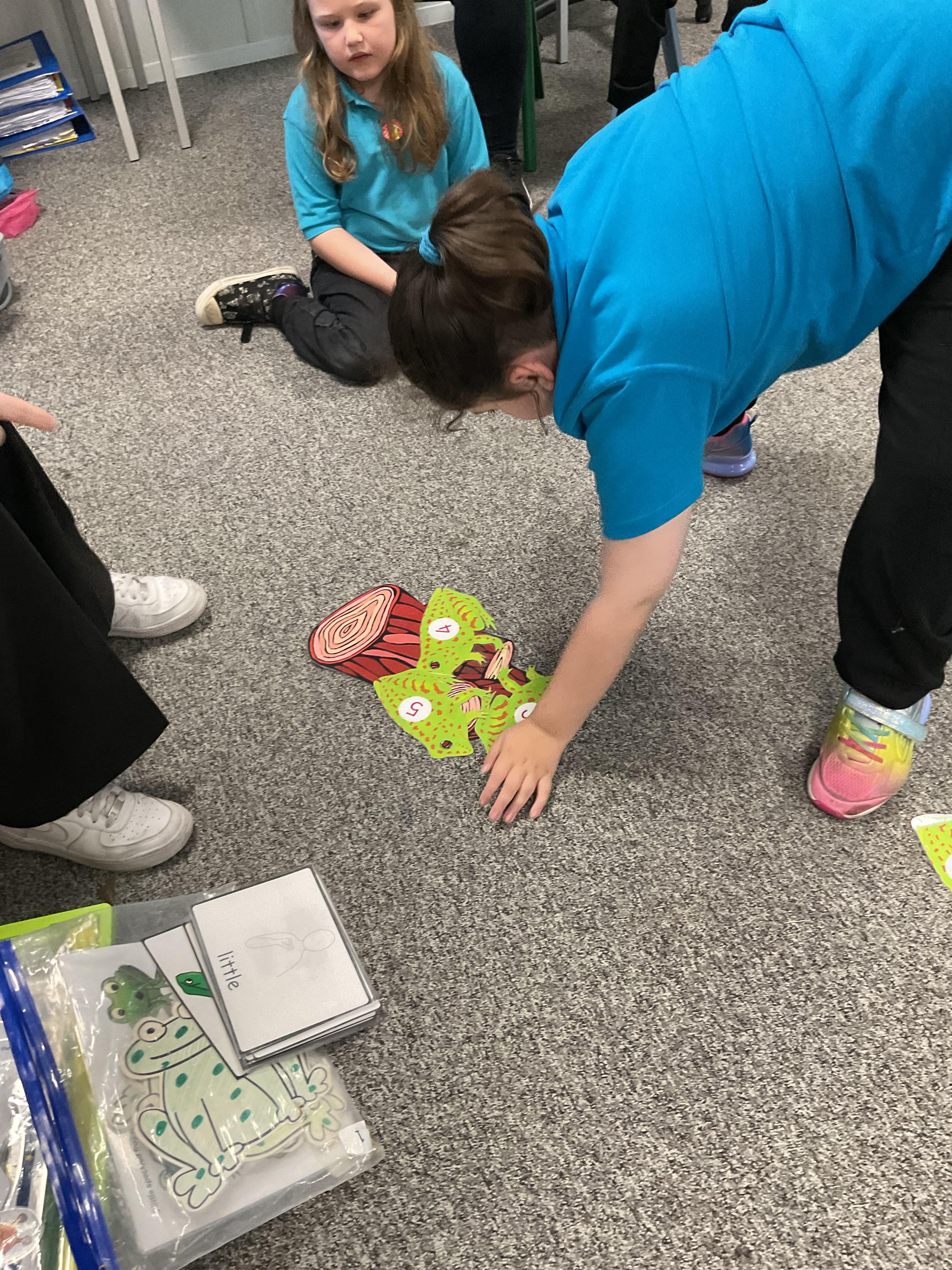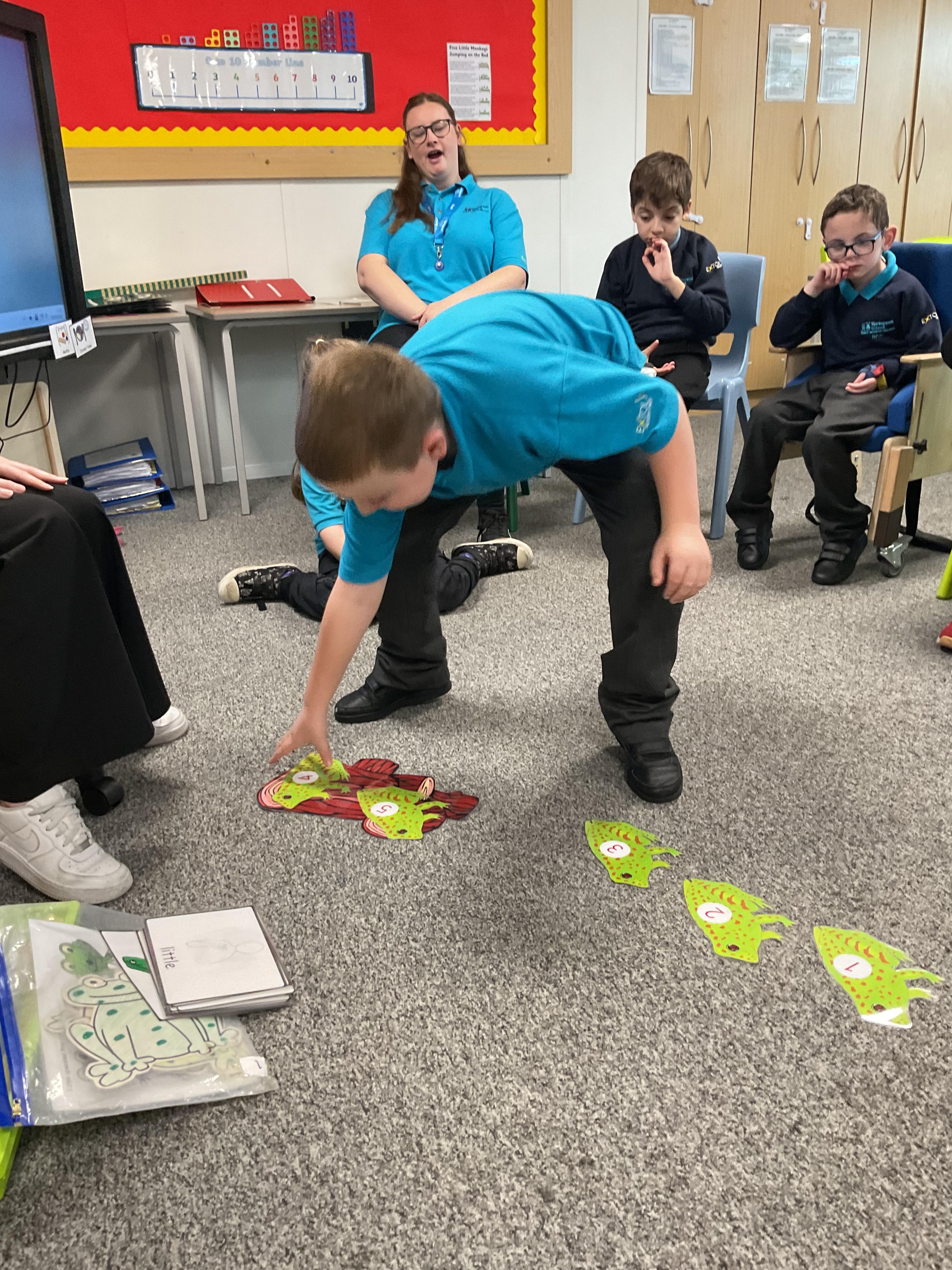 The children love singing our number nursery rhymes. Today, we were the five speckled frogs jumping into the cool pool.