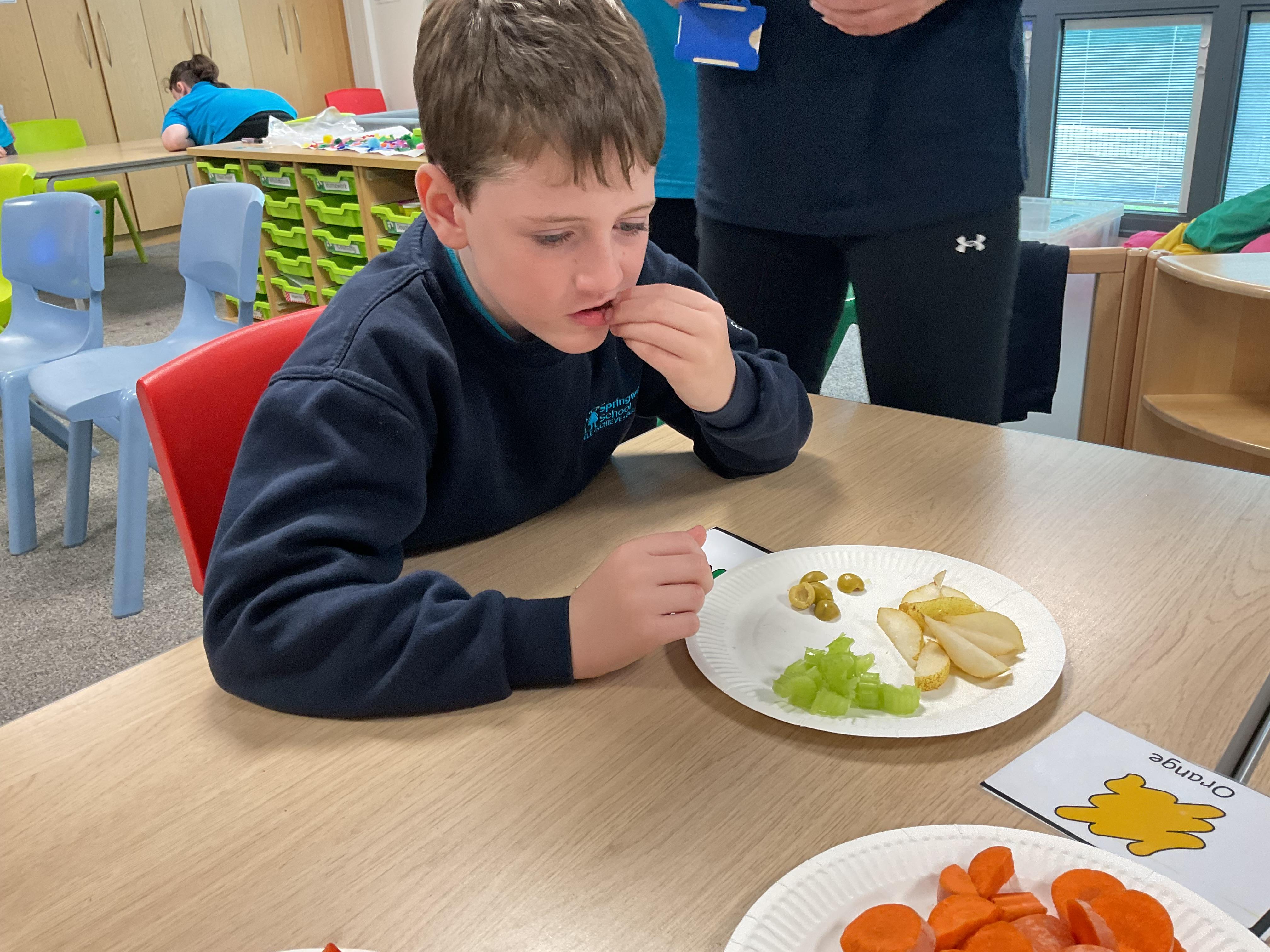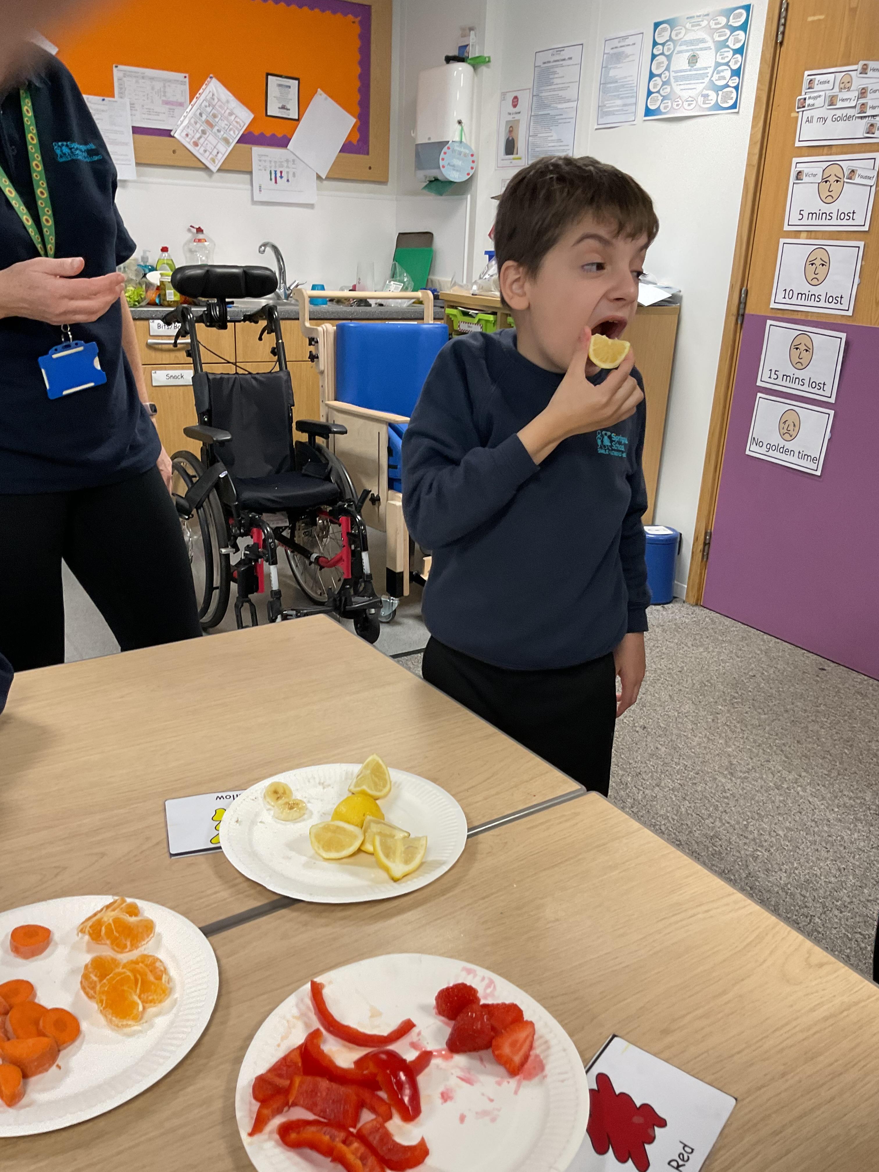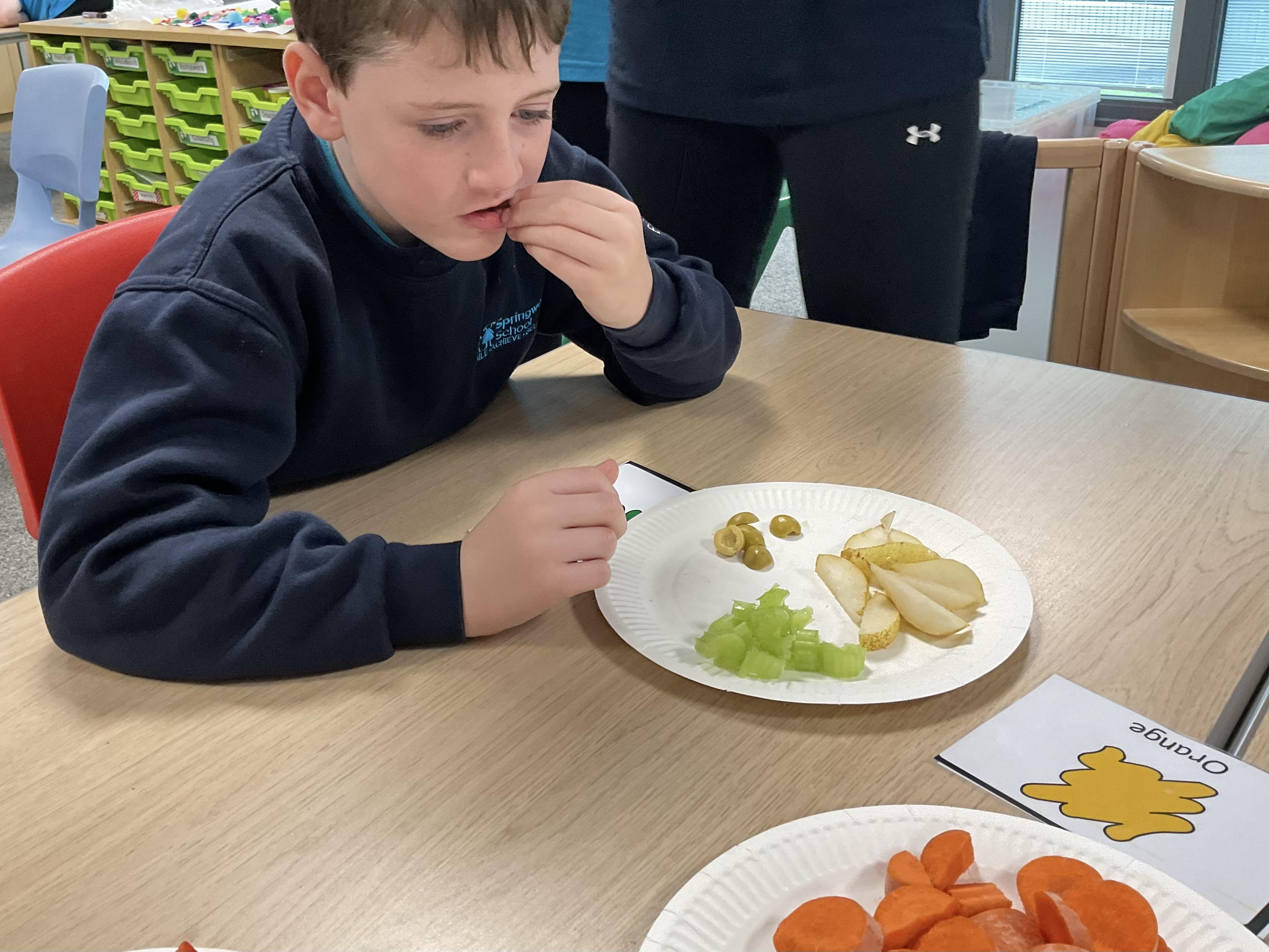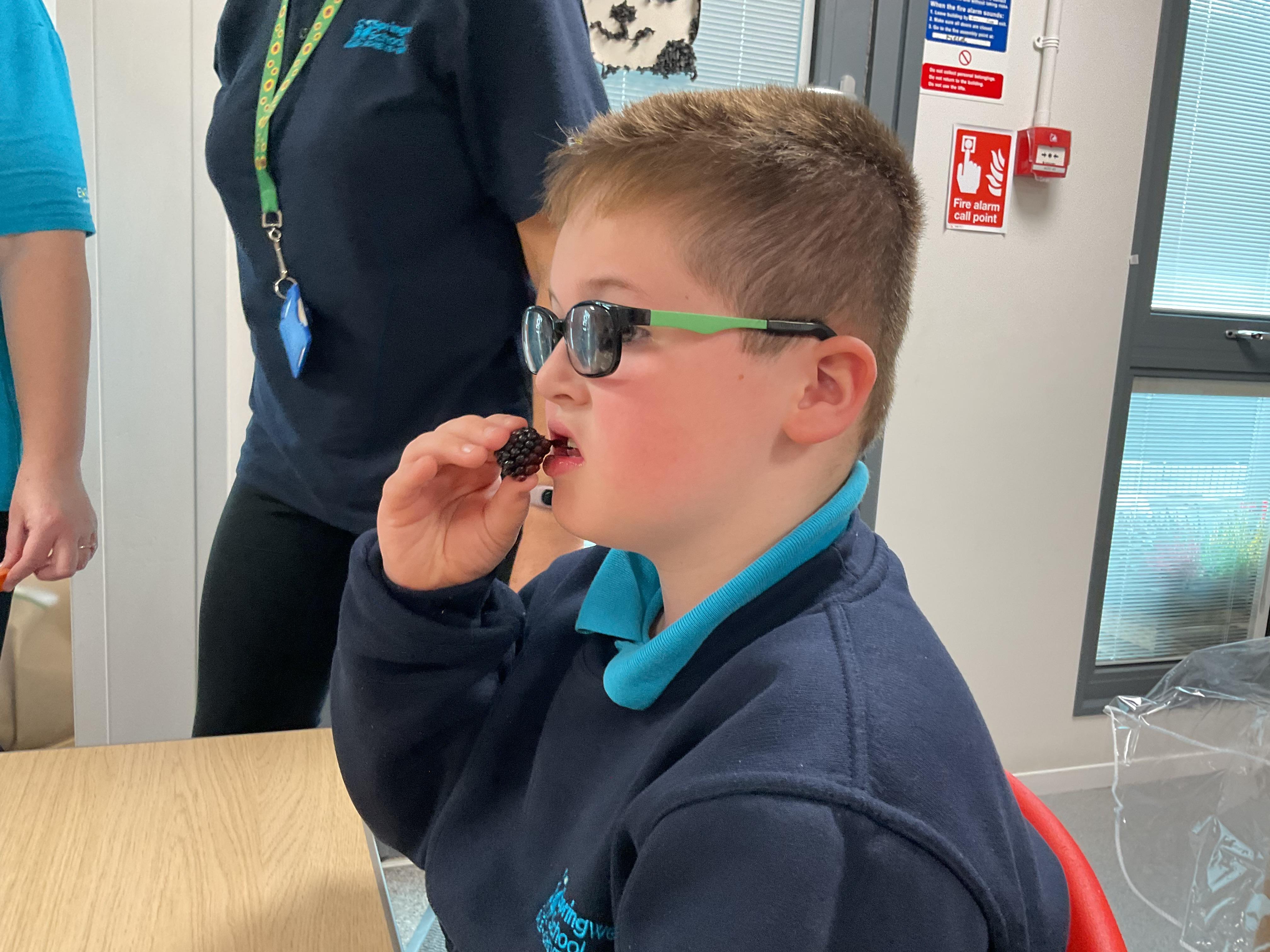 As part of our story 'Which Food Will You Choose?', we tried some different coloured foods. We made choices and expressed our likes and dislikes for the different foods. Blackberries were very popular!
