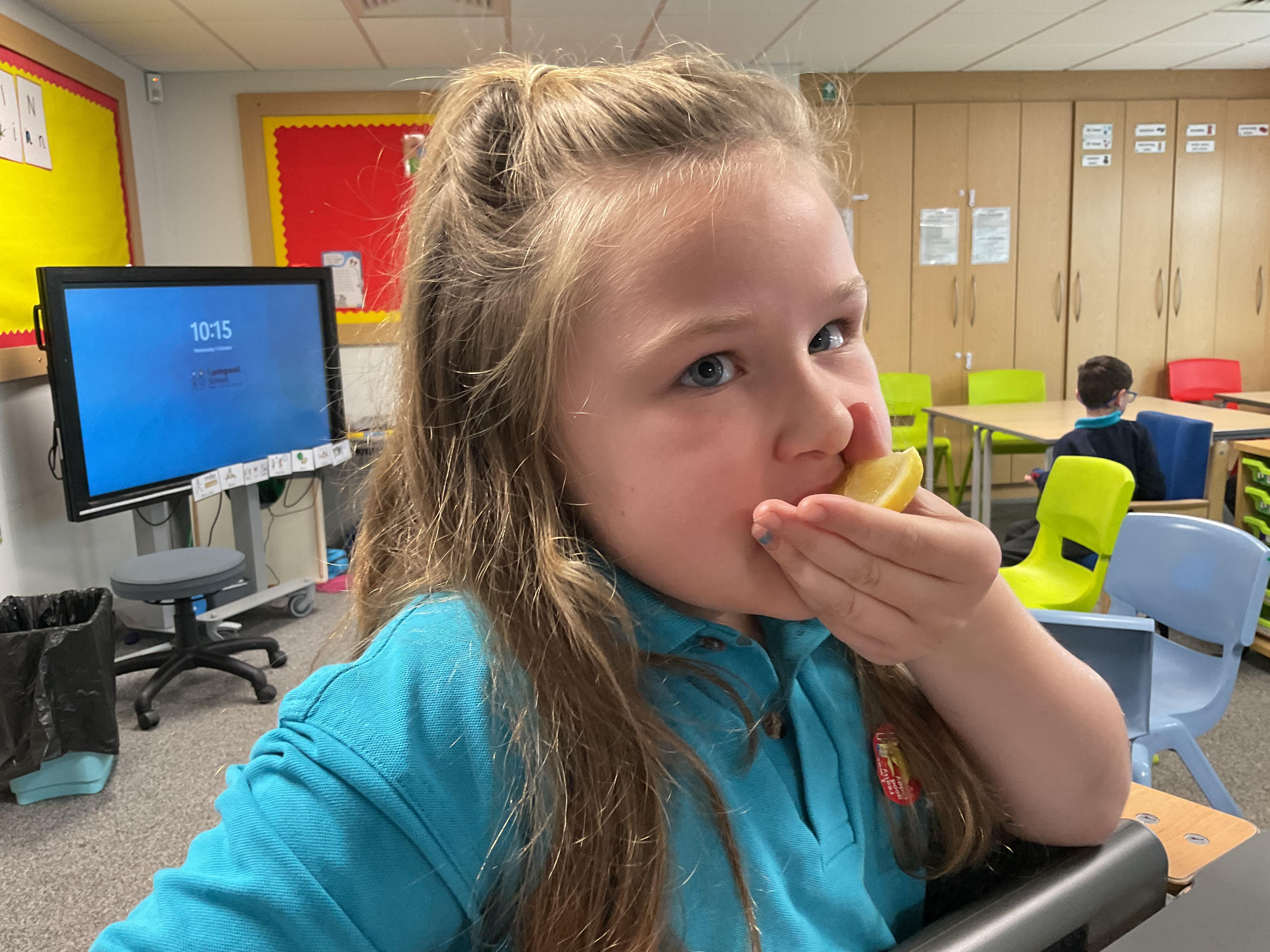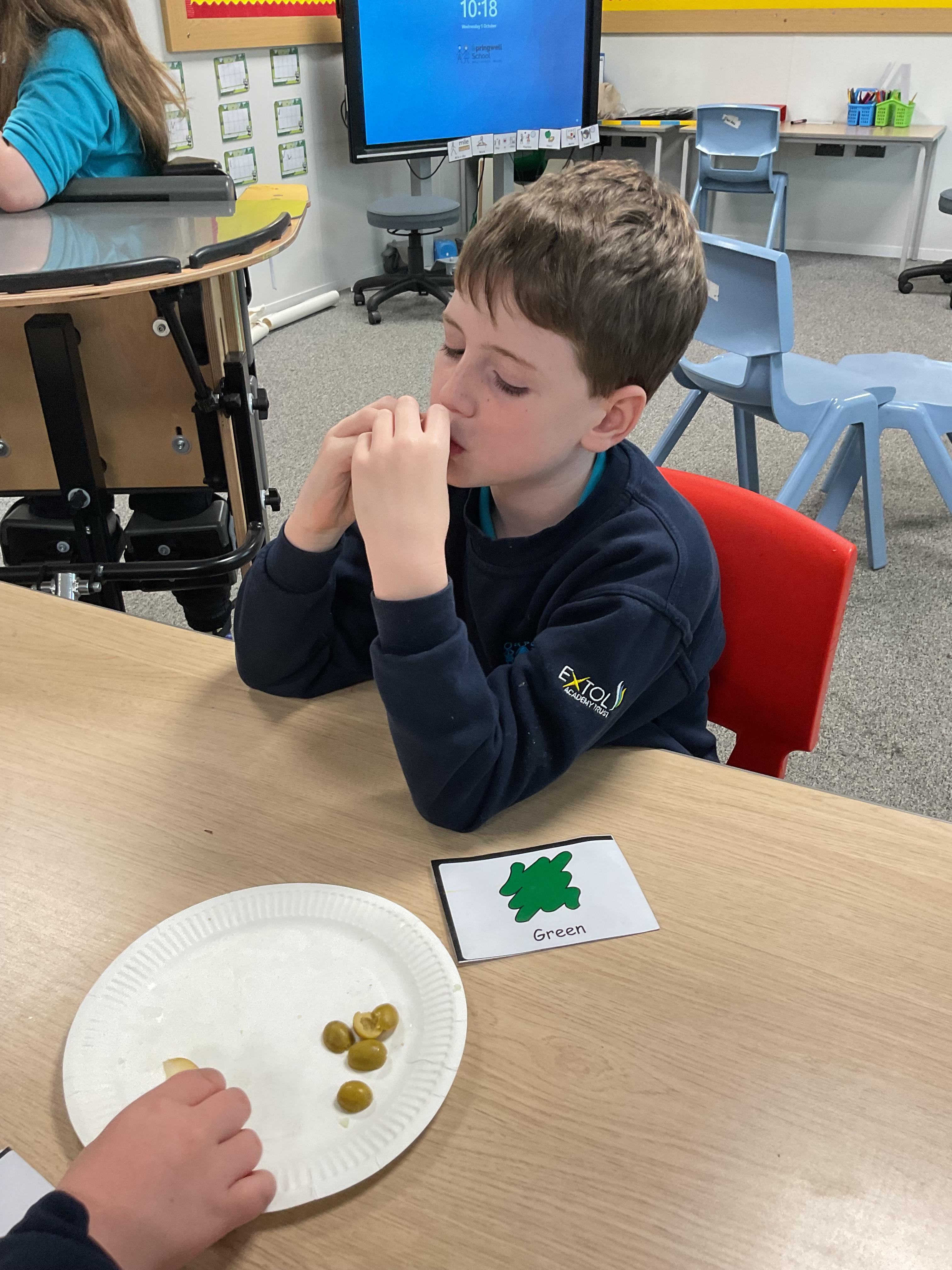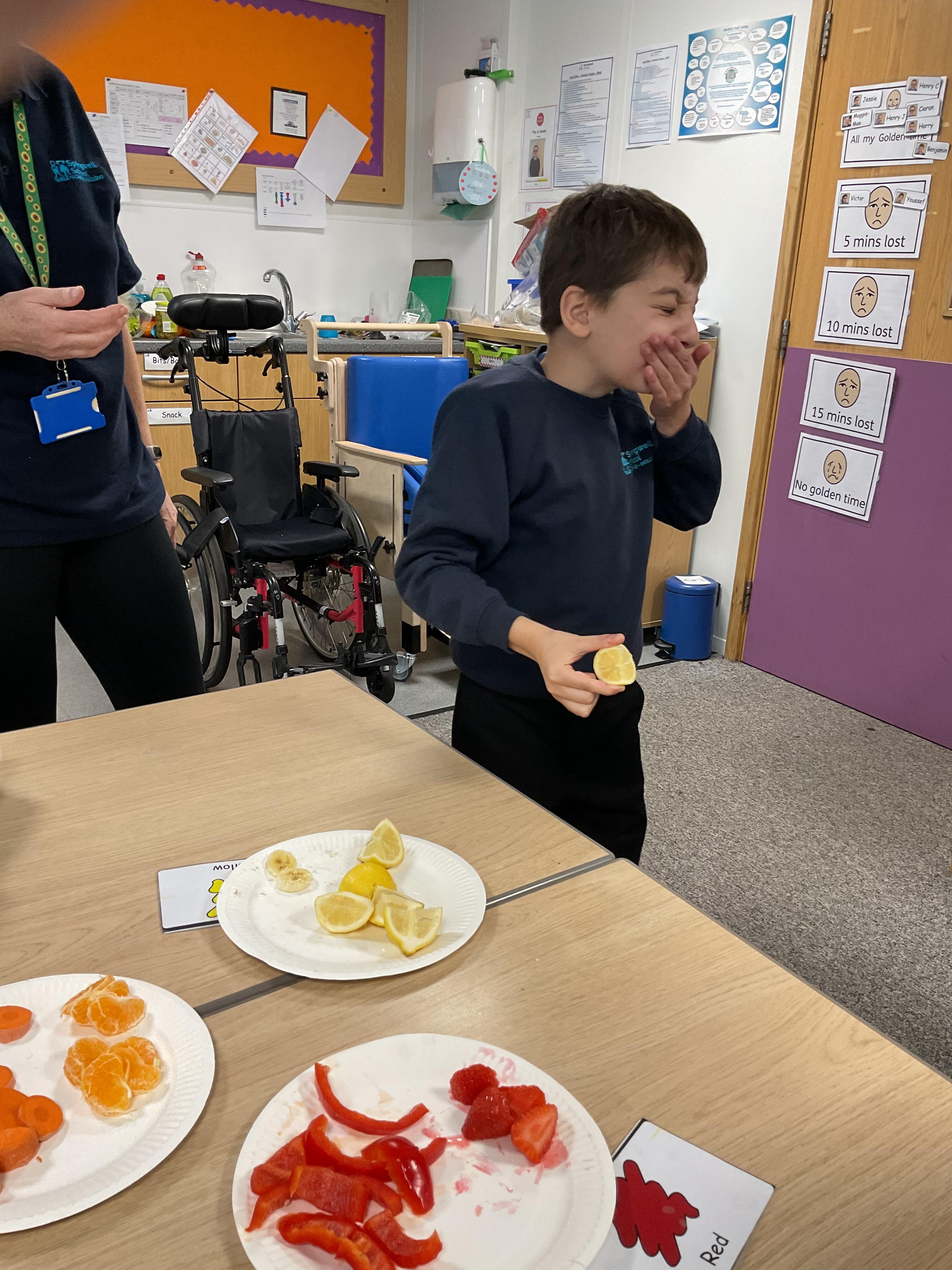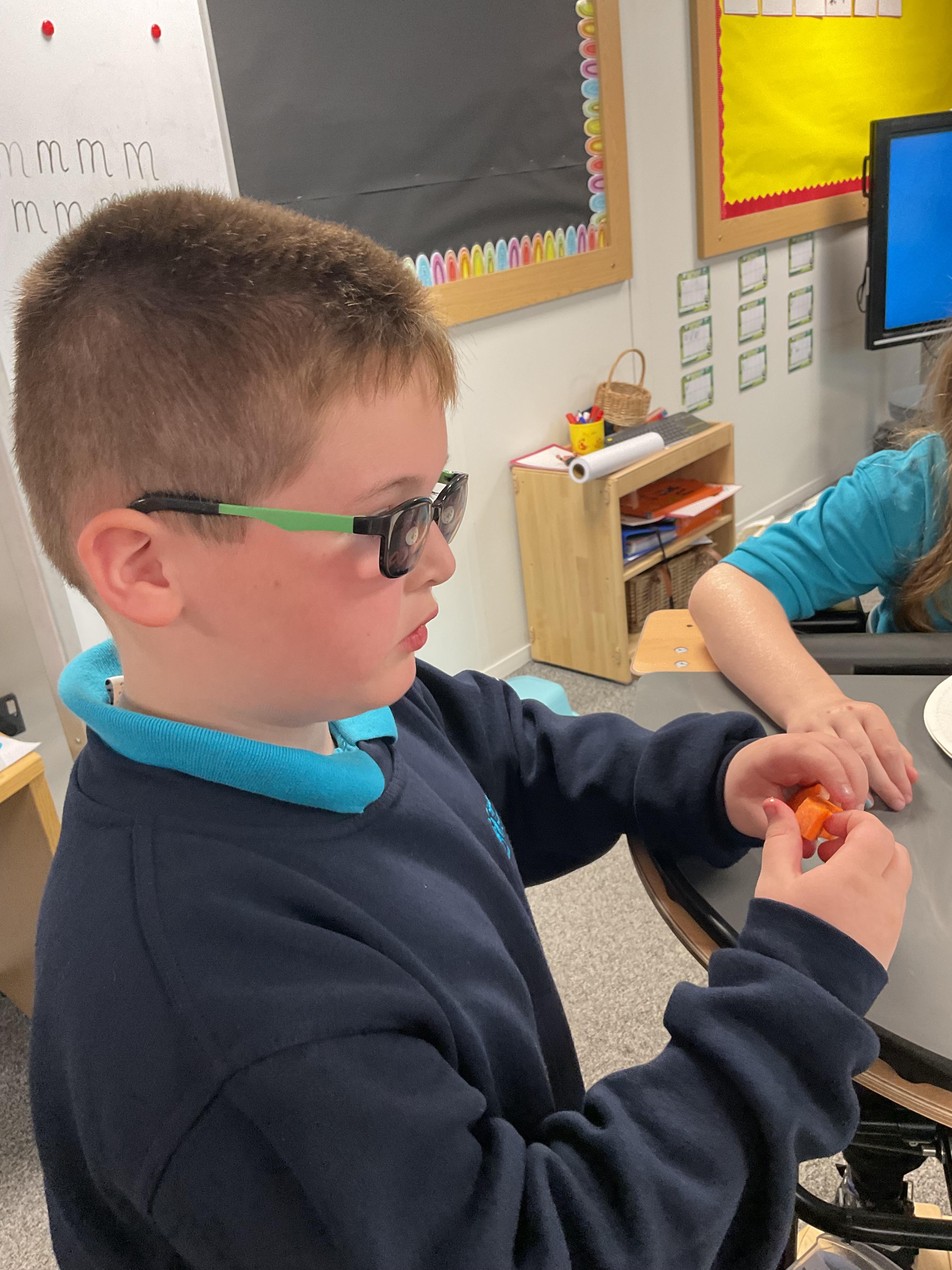 As part of our story 'Which Food Will You Choose?', we tried some different coloured foods. We made choices and expressed our likes and dislikes for the different foods. Blackberries were very popular!