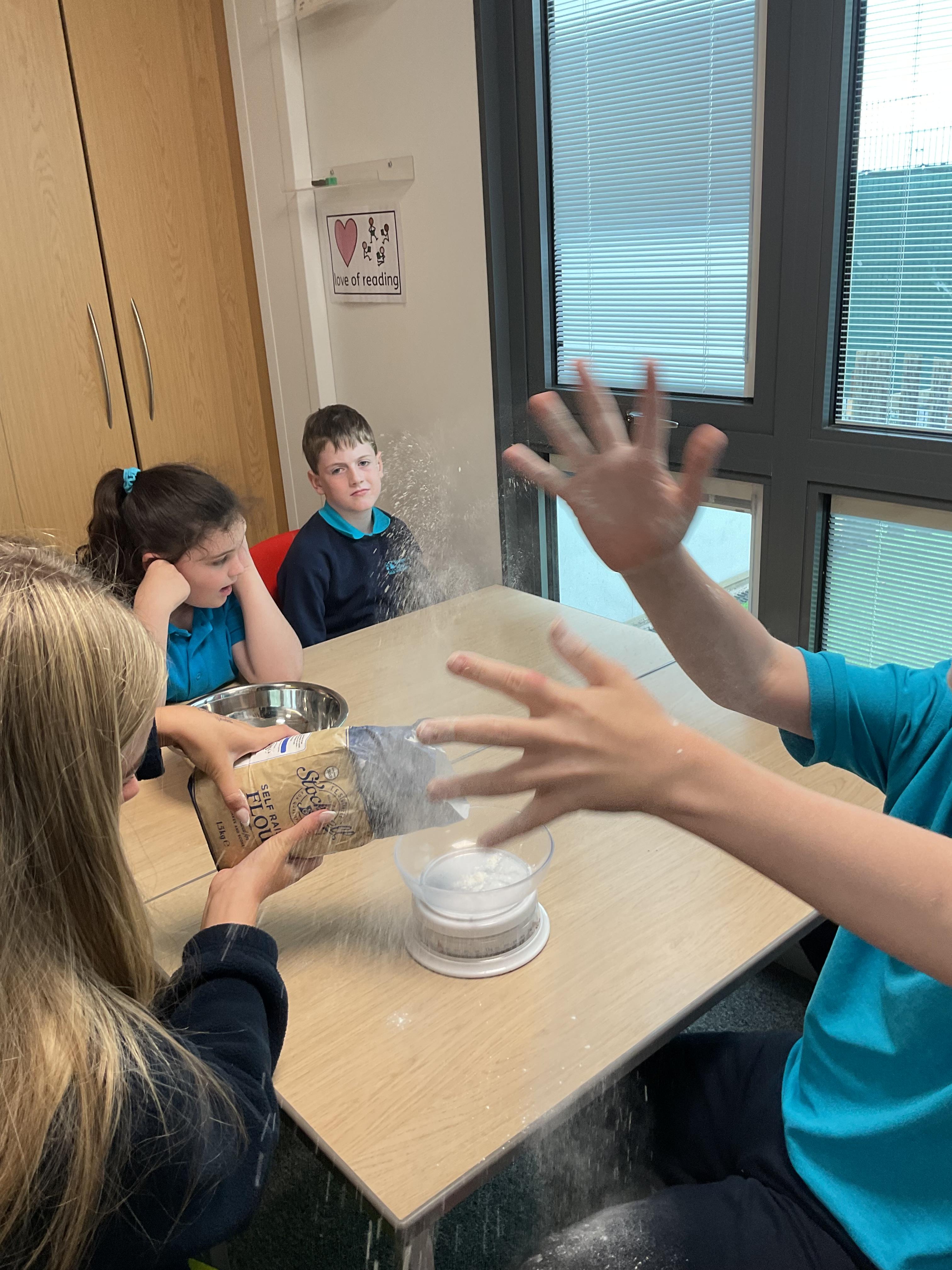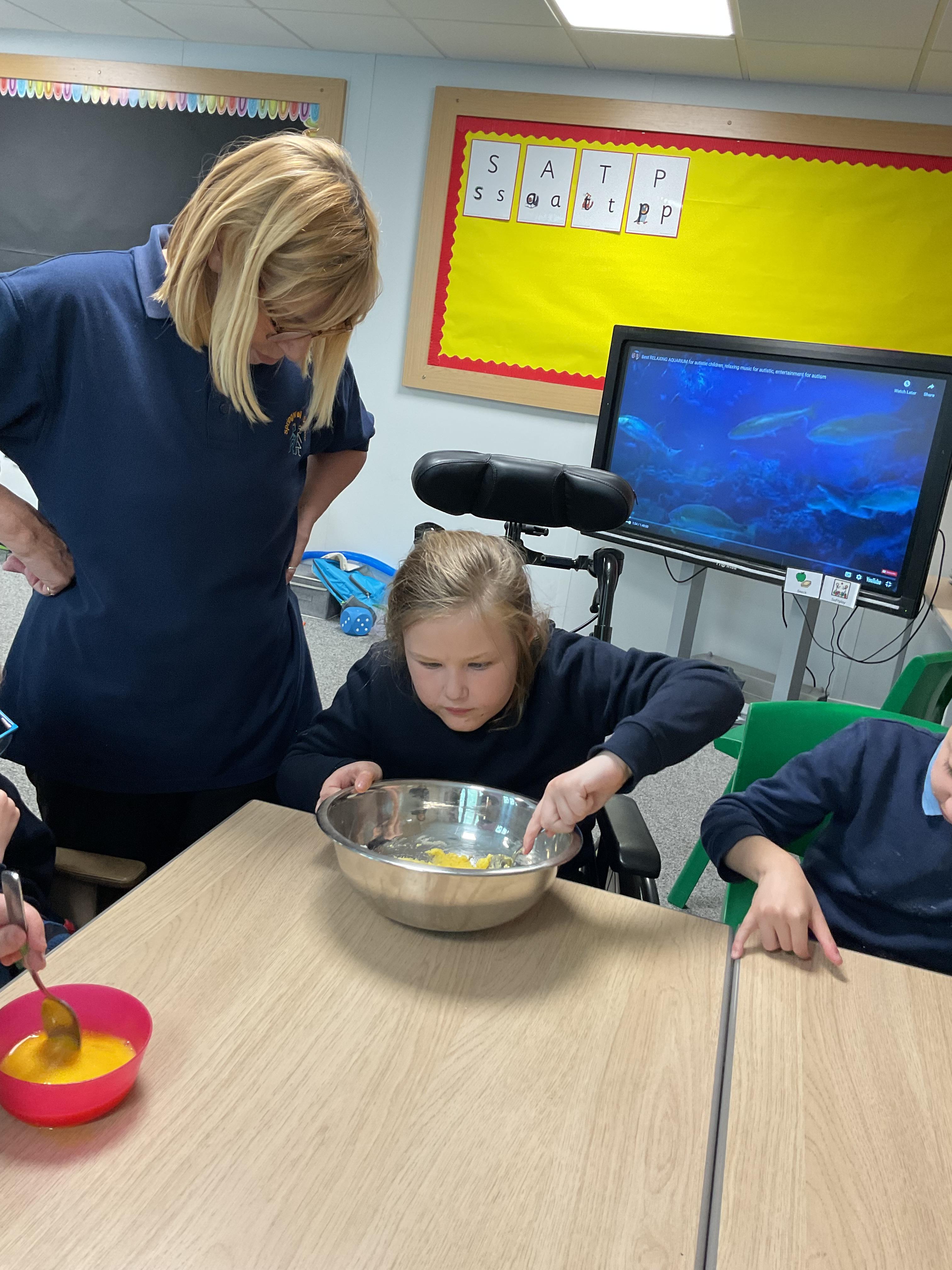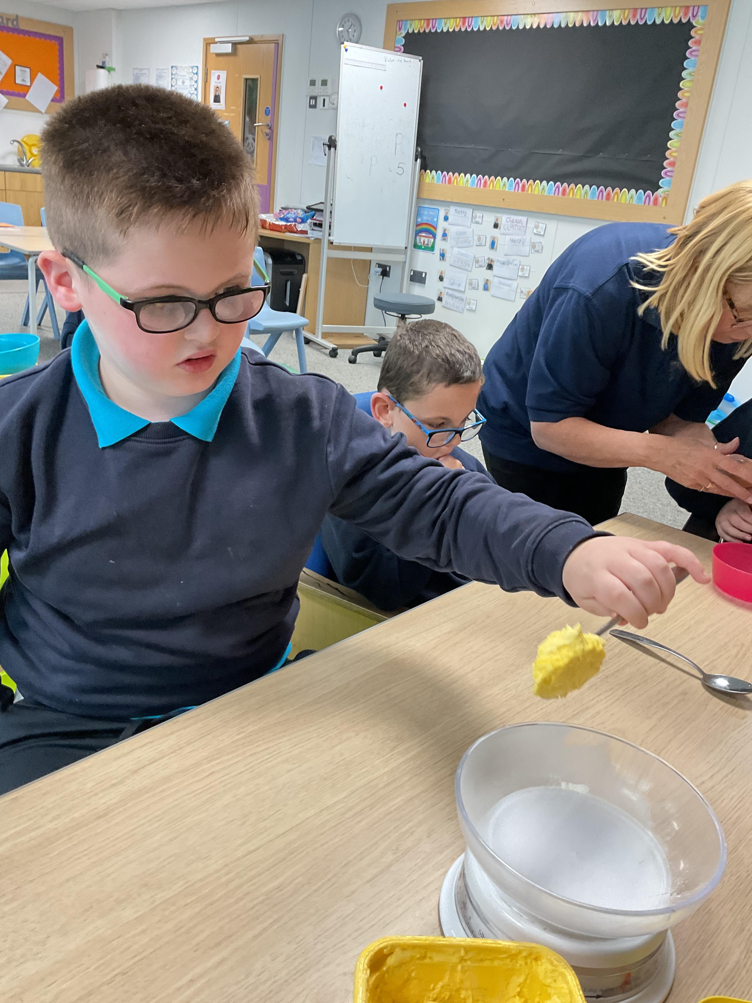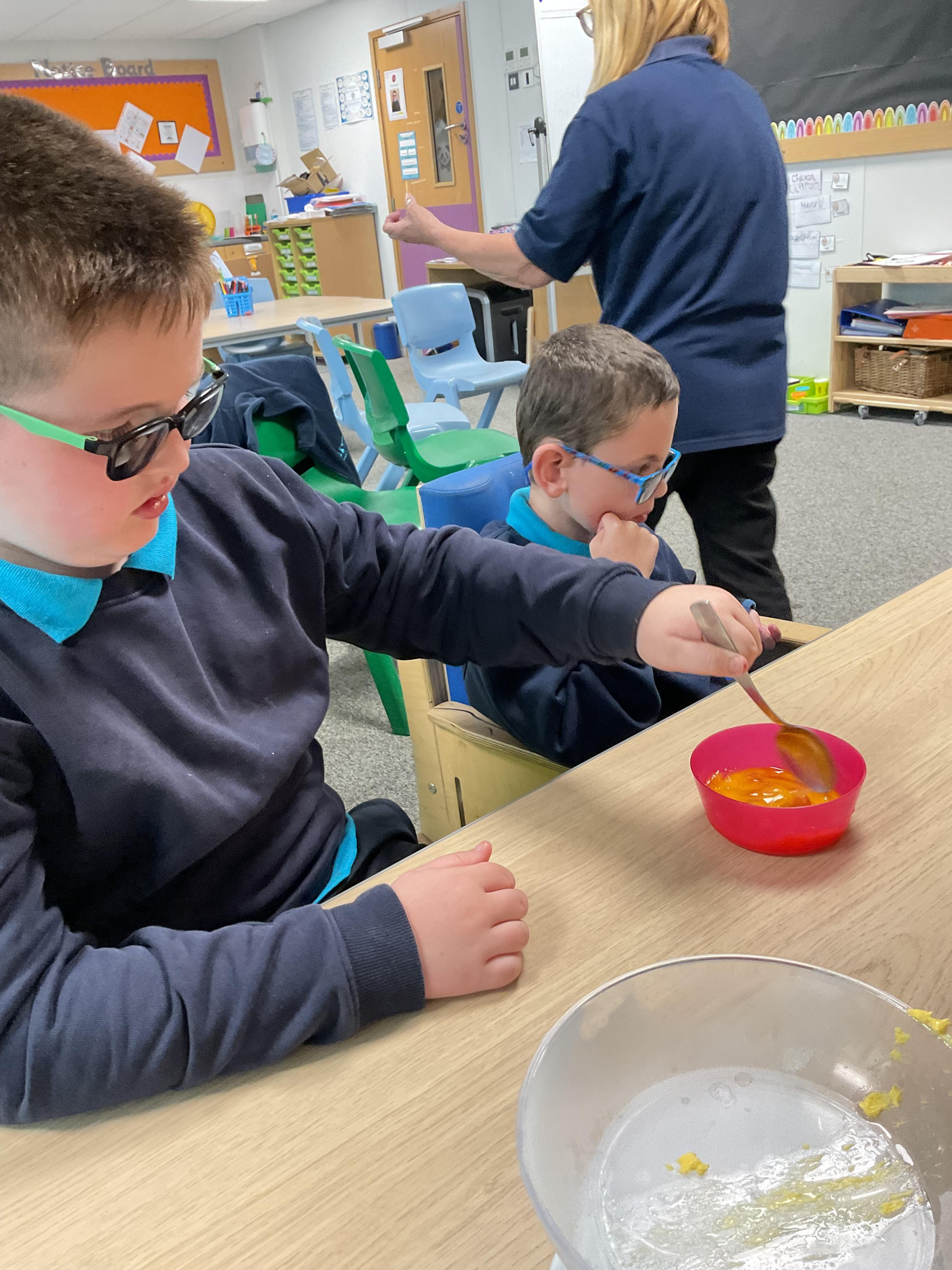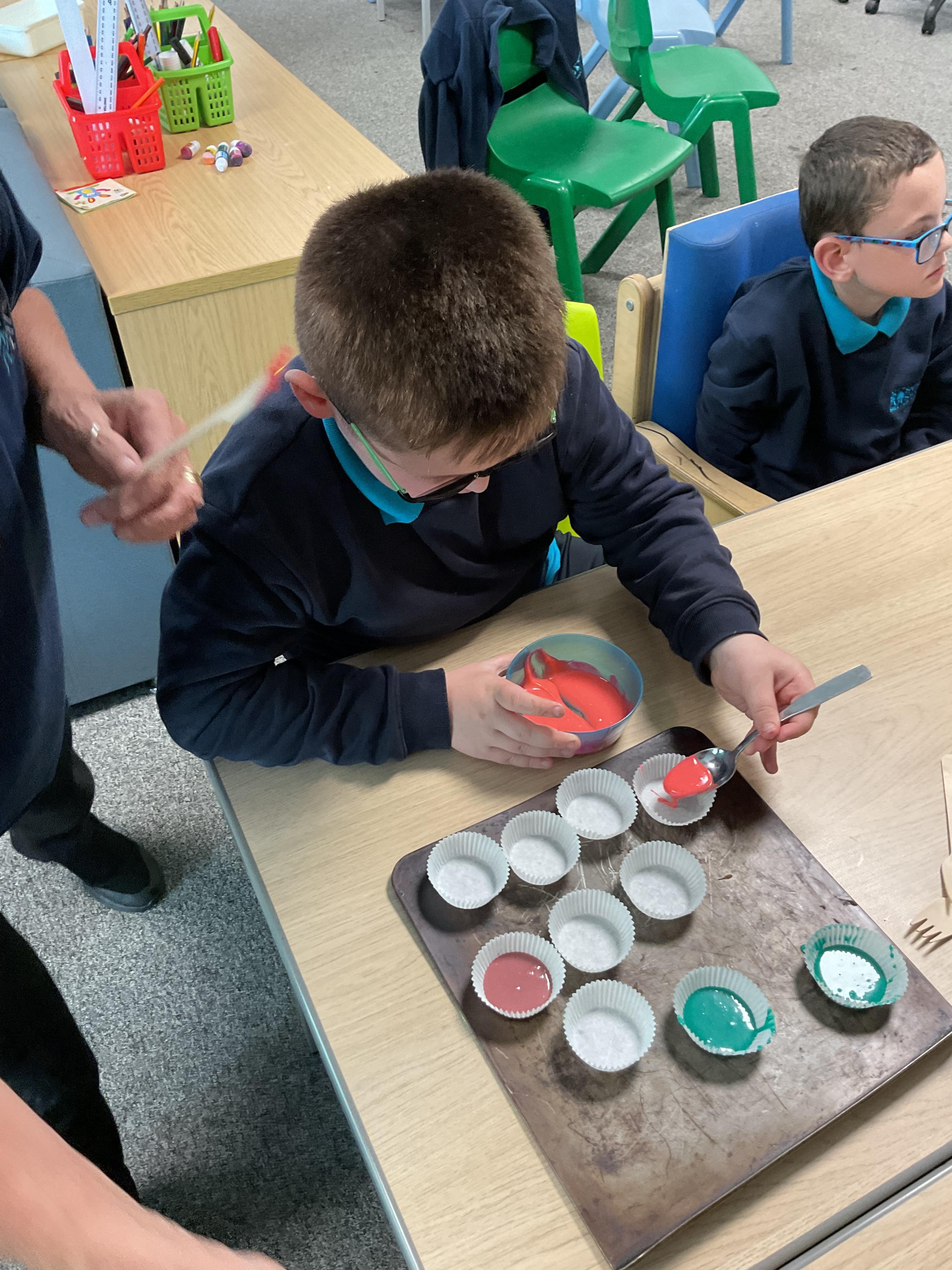 Pandas enjoyed DT with Annette this week. They worked together to make rainbow cakes by measuring out the ingredients and mixing them altogether.