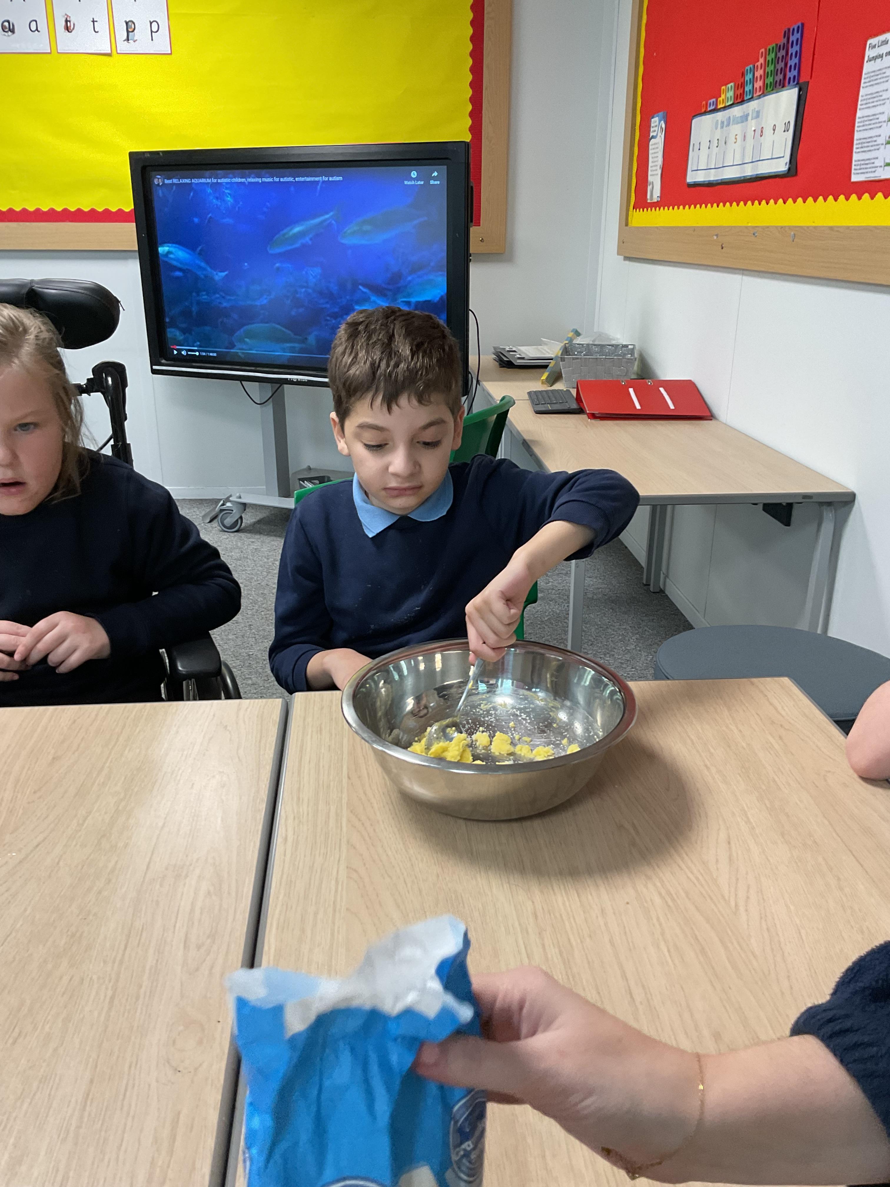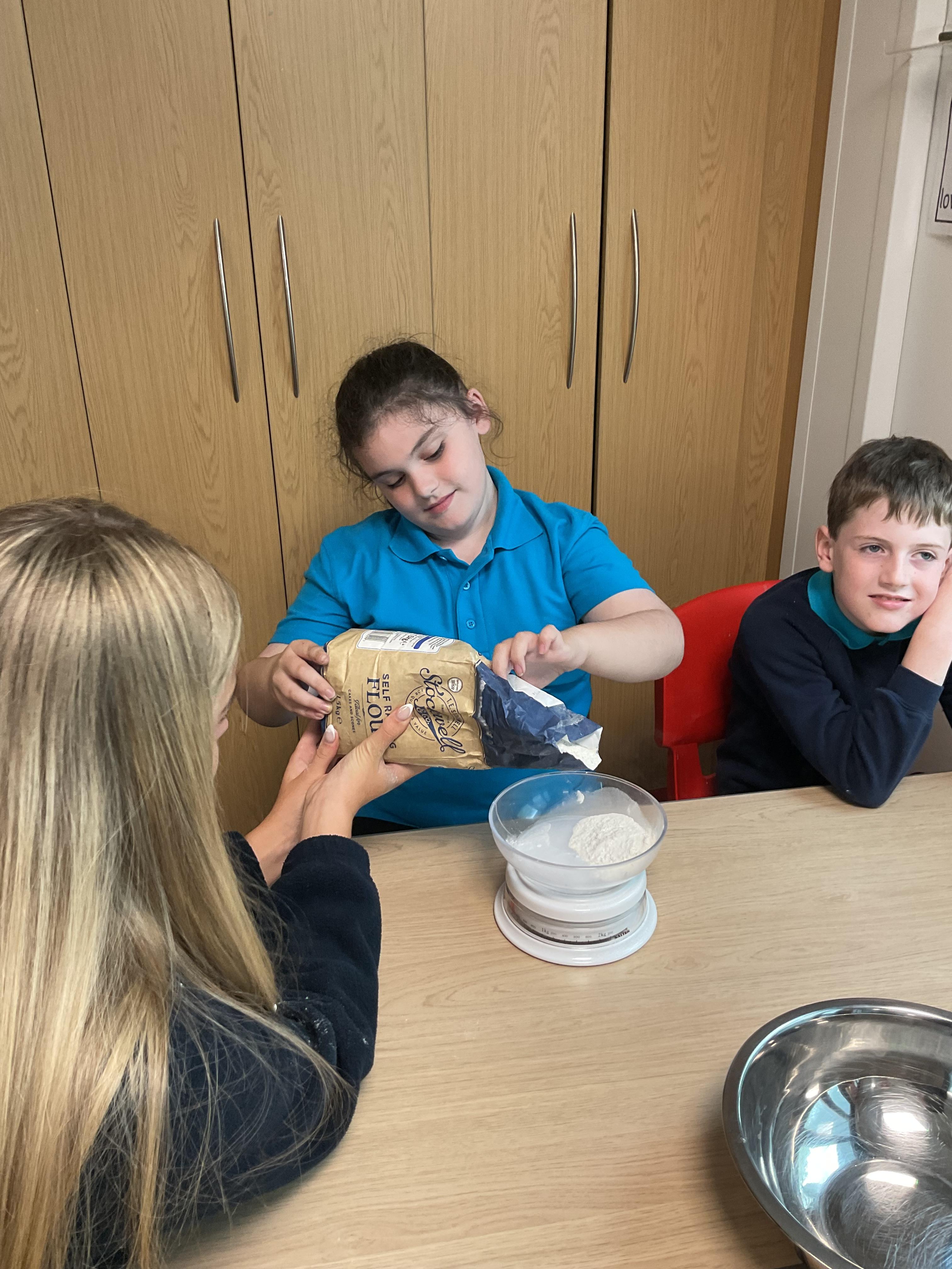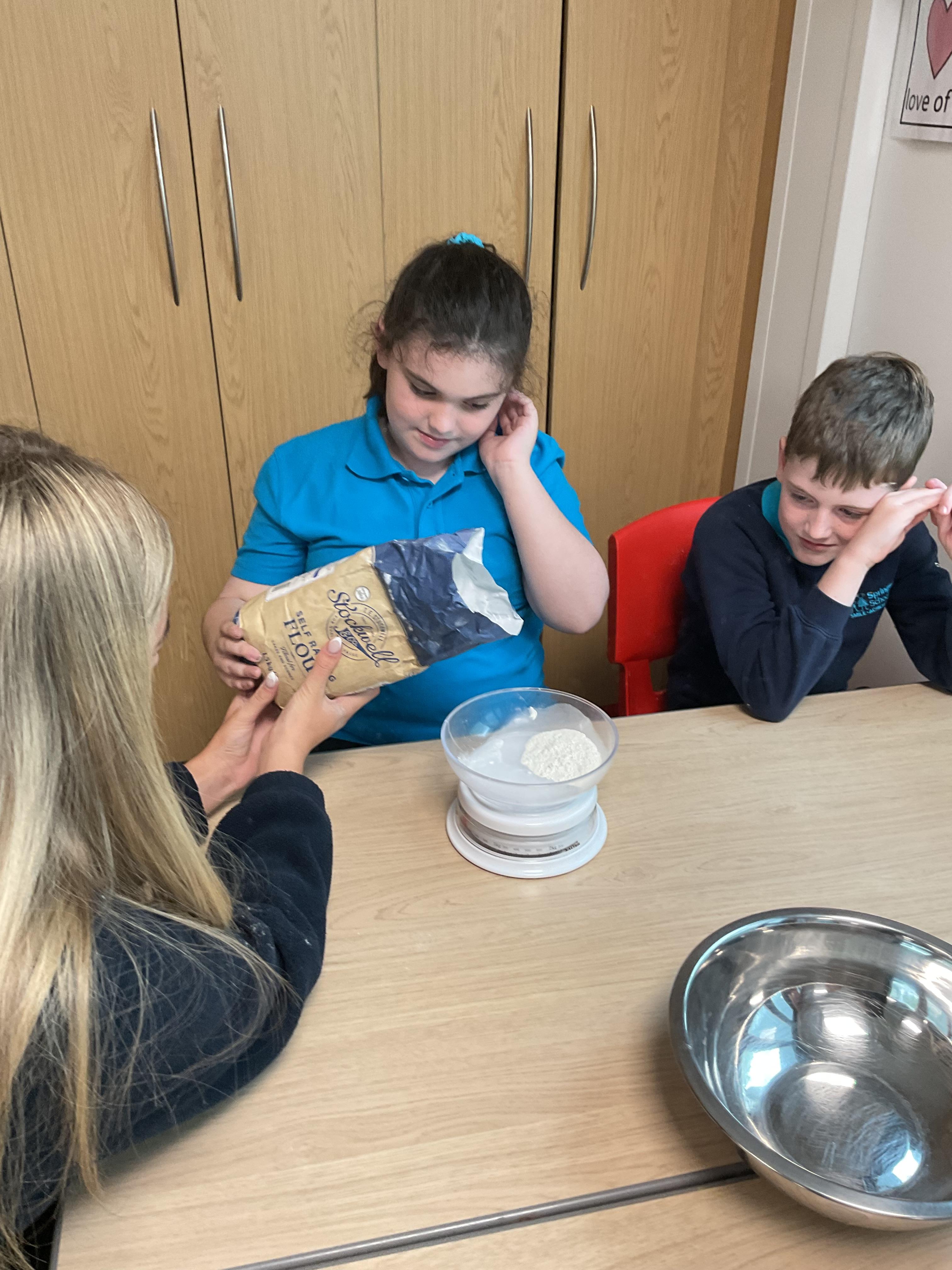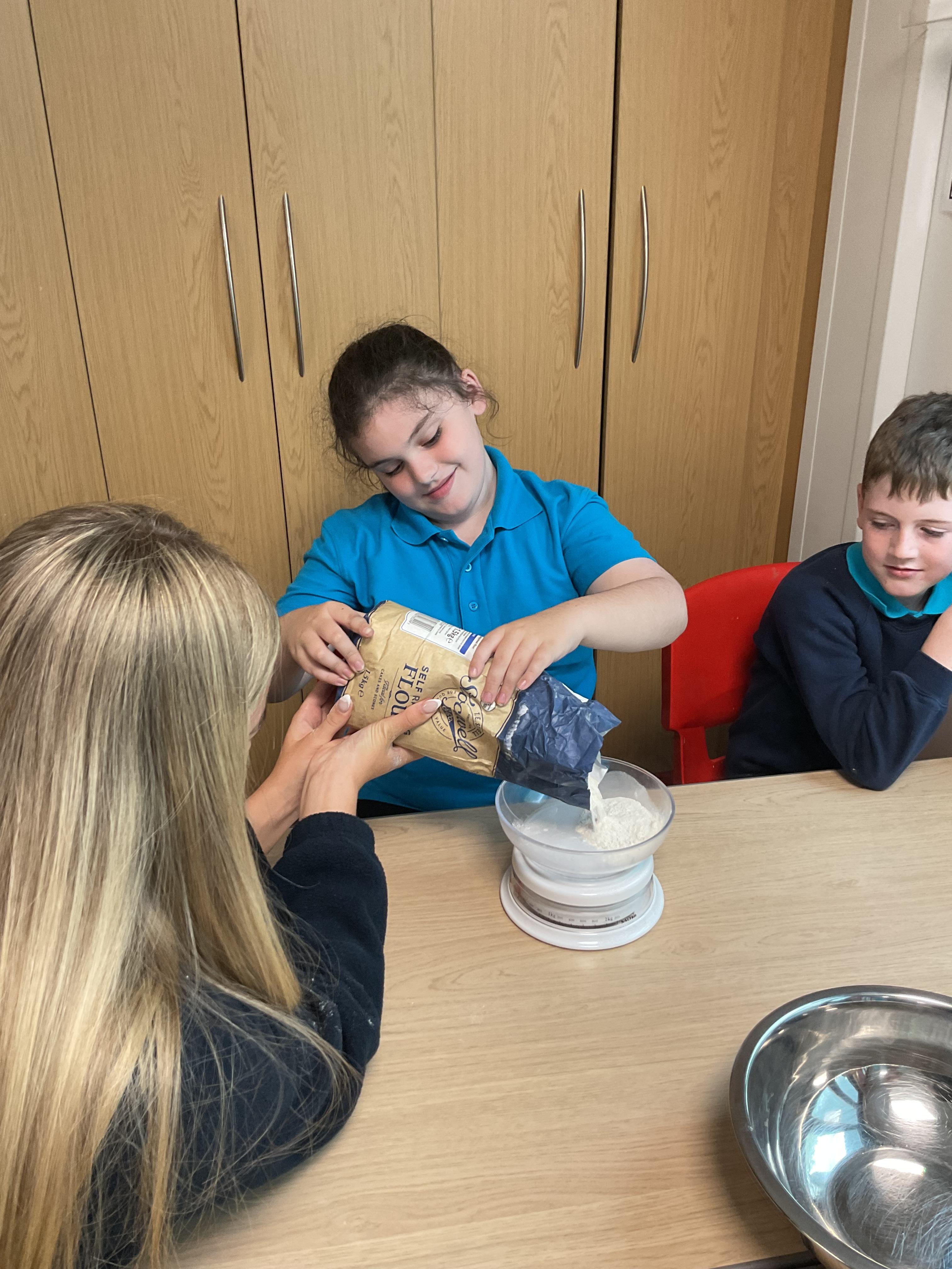 Pandas enjoyed DT with Annette this week. They worked together to make rainbow cakes by measuring out the ingredients and mixing them altogether.
