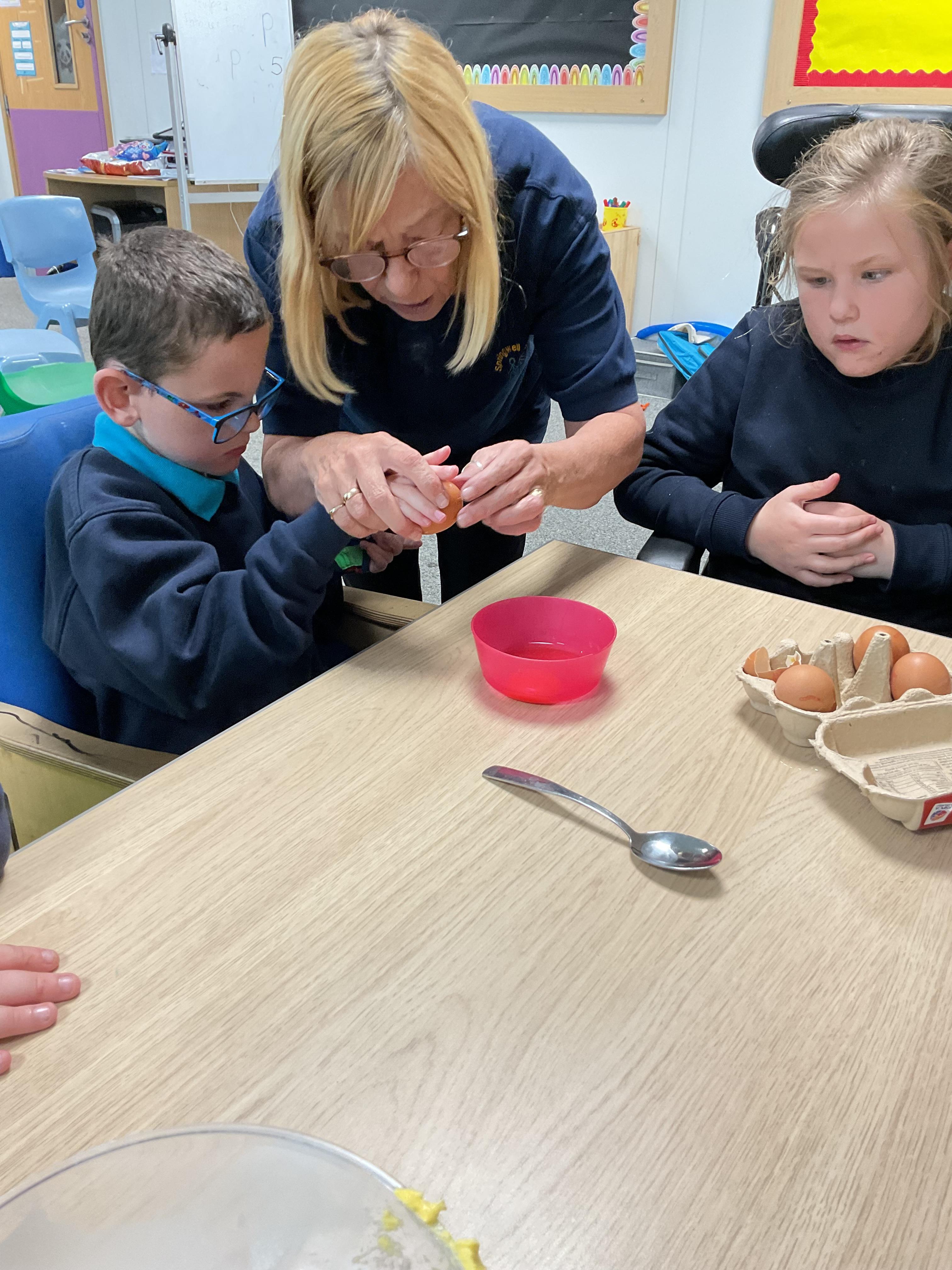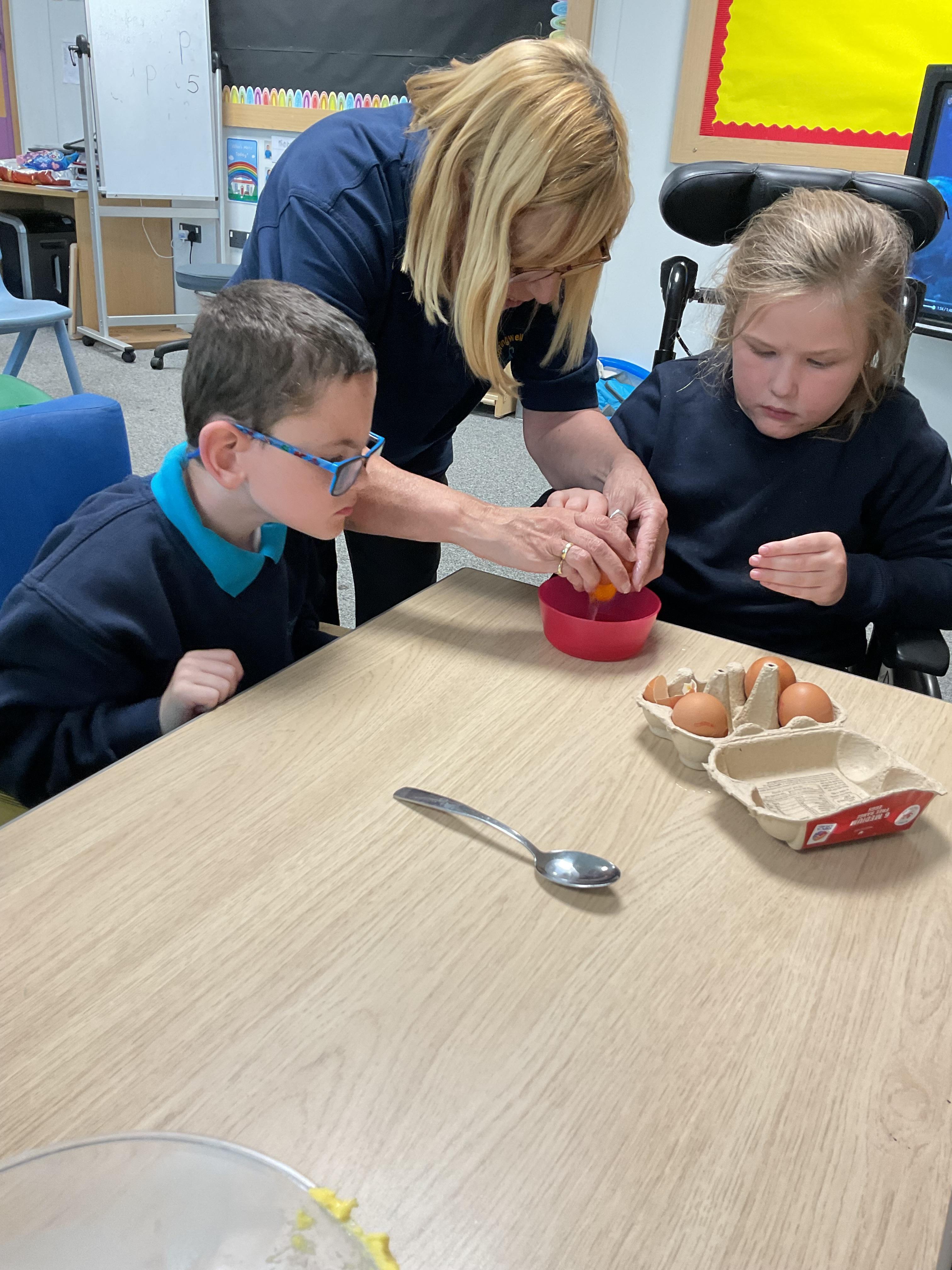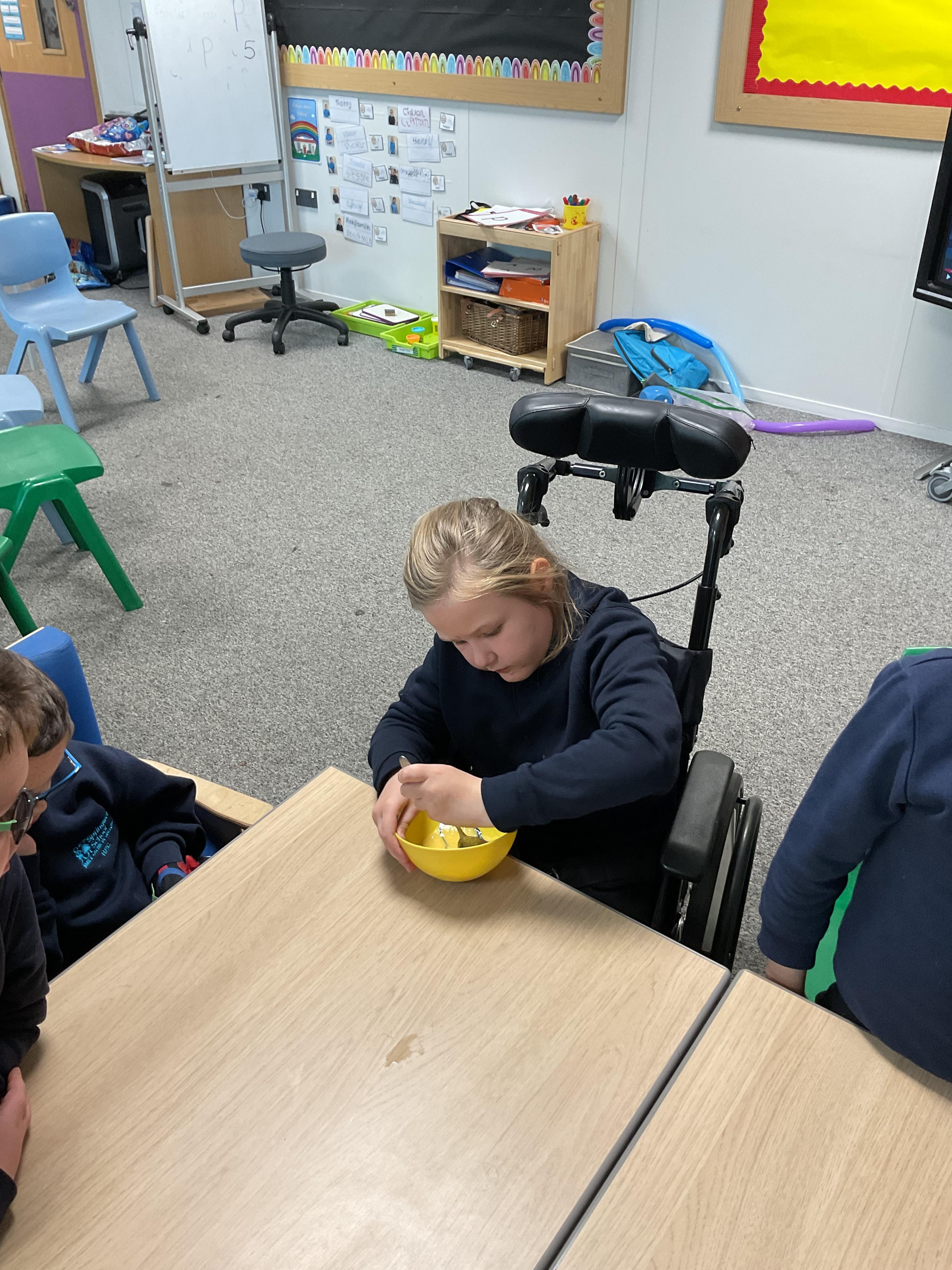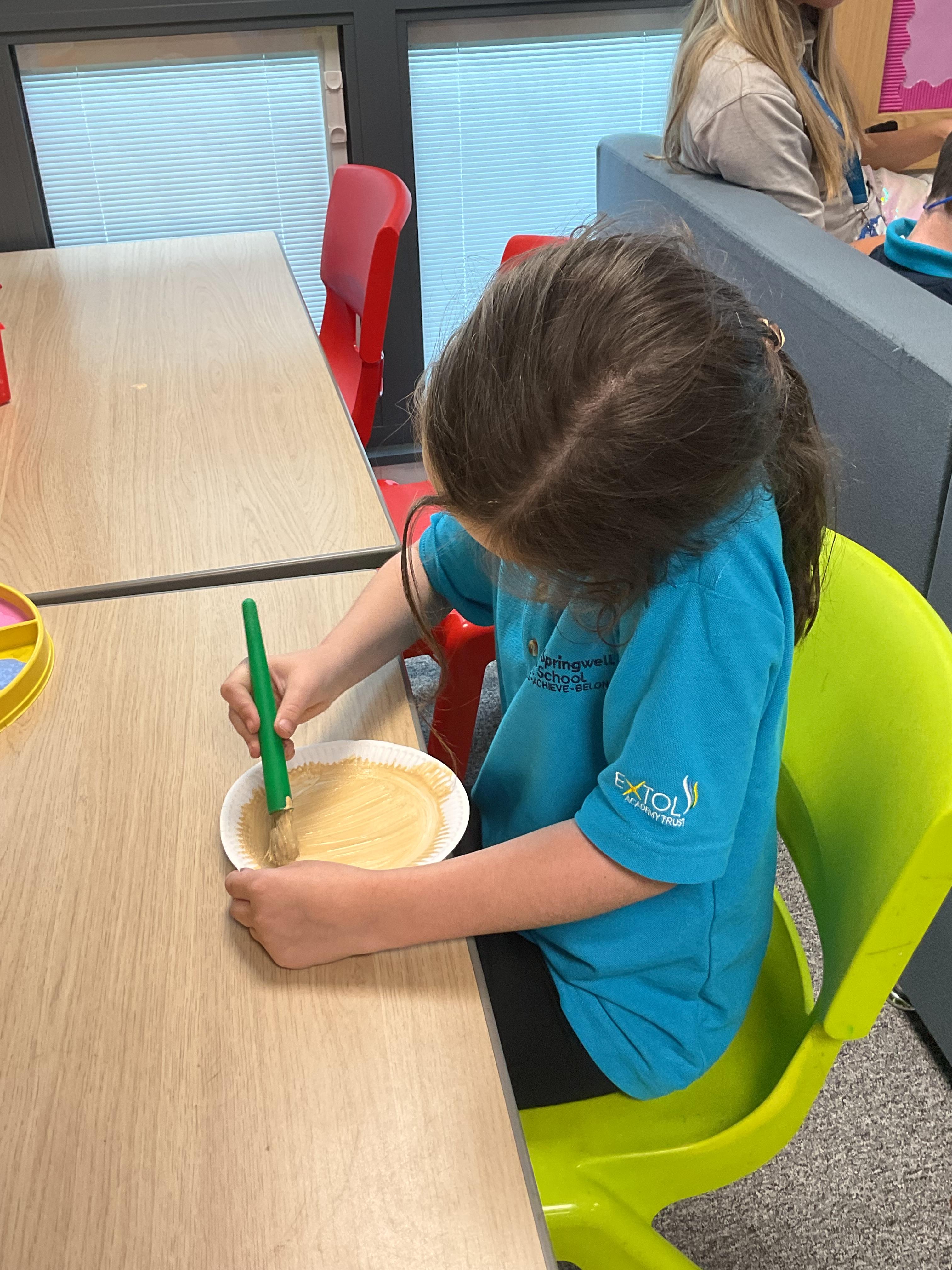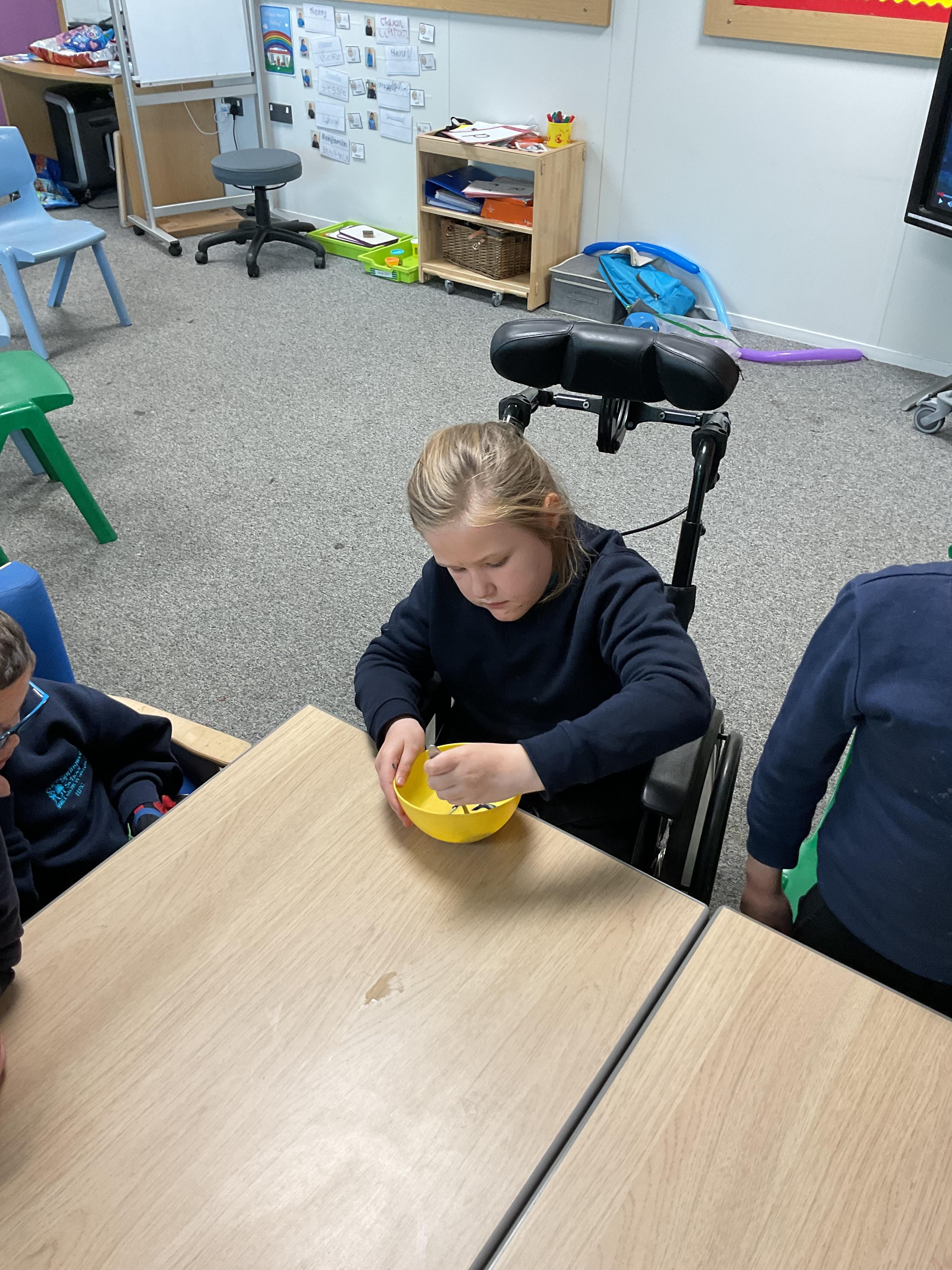 Pandas enjoyed DT with Annette this week. They worked together to make rainbow cakes by measuring out the ingredients and mixing them altogether.