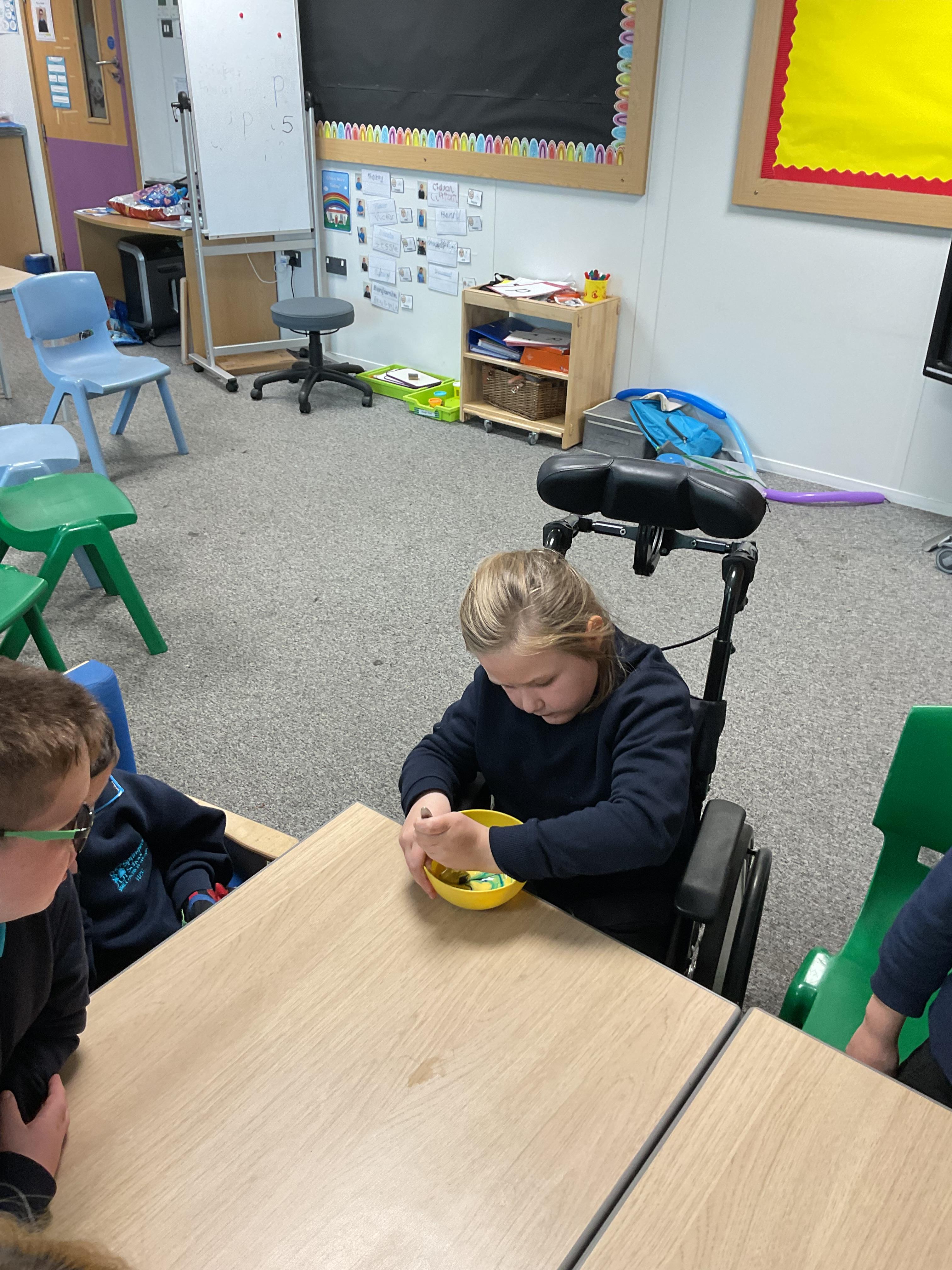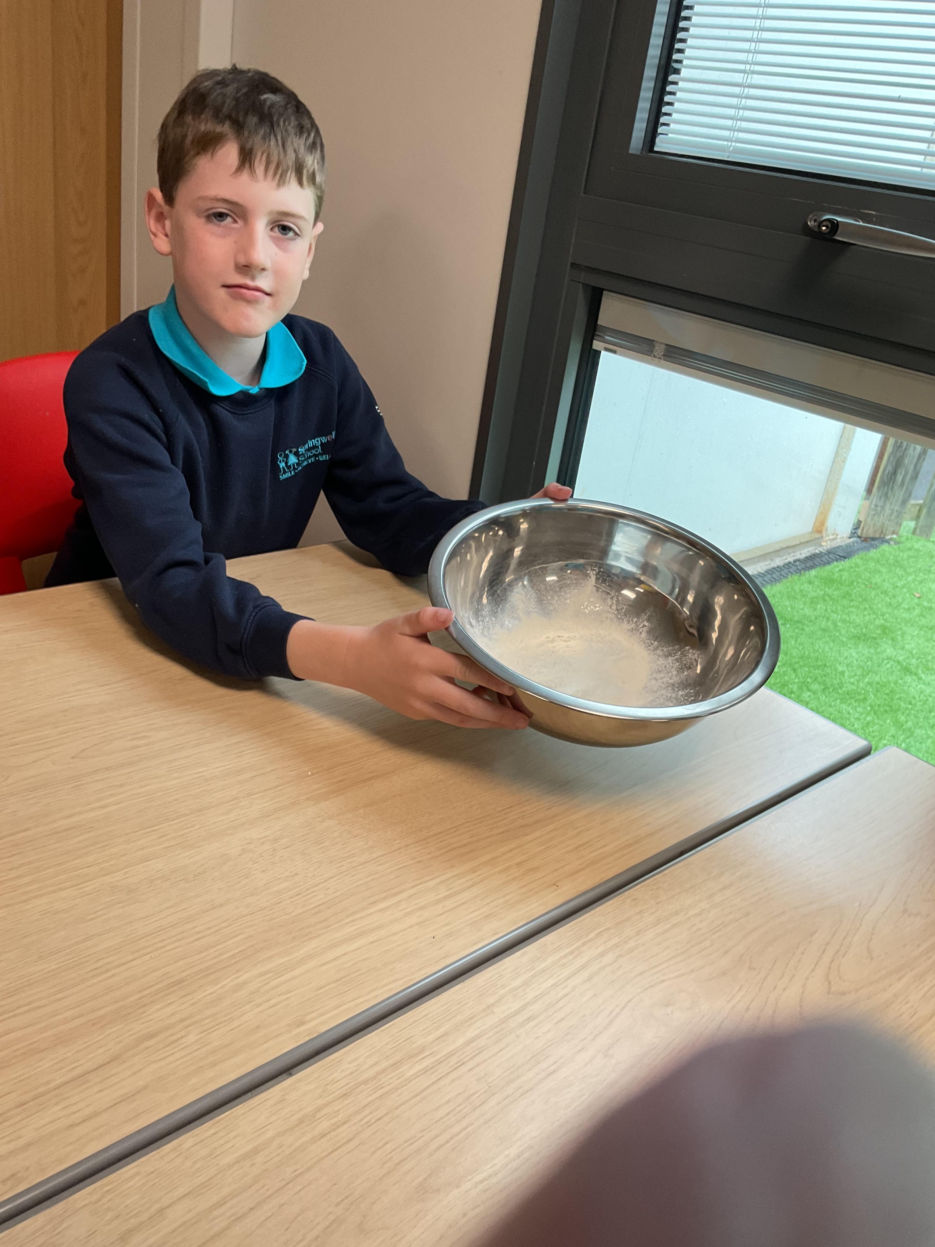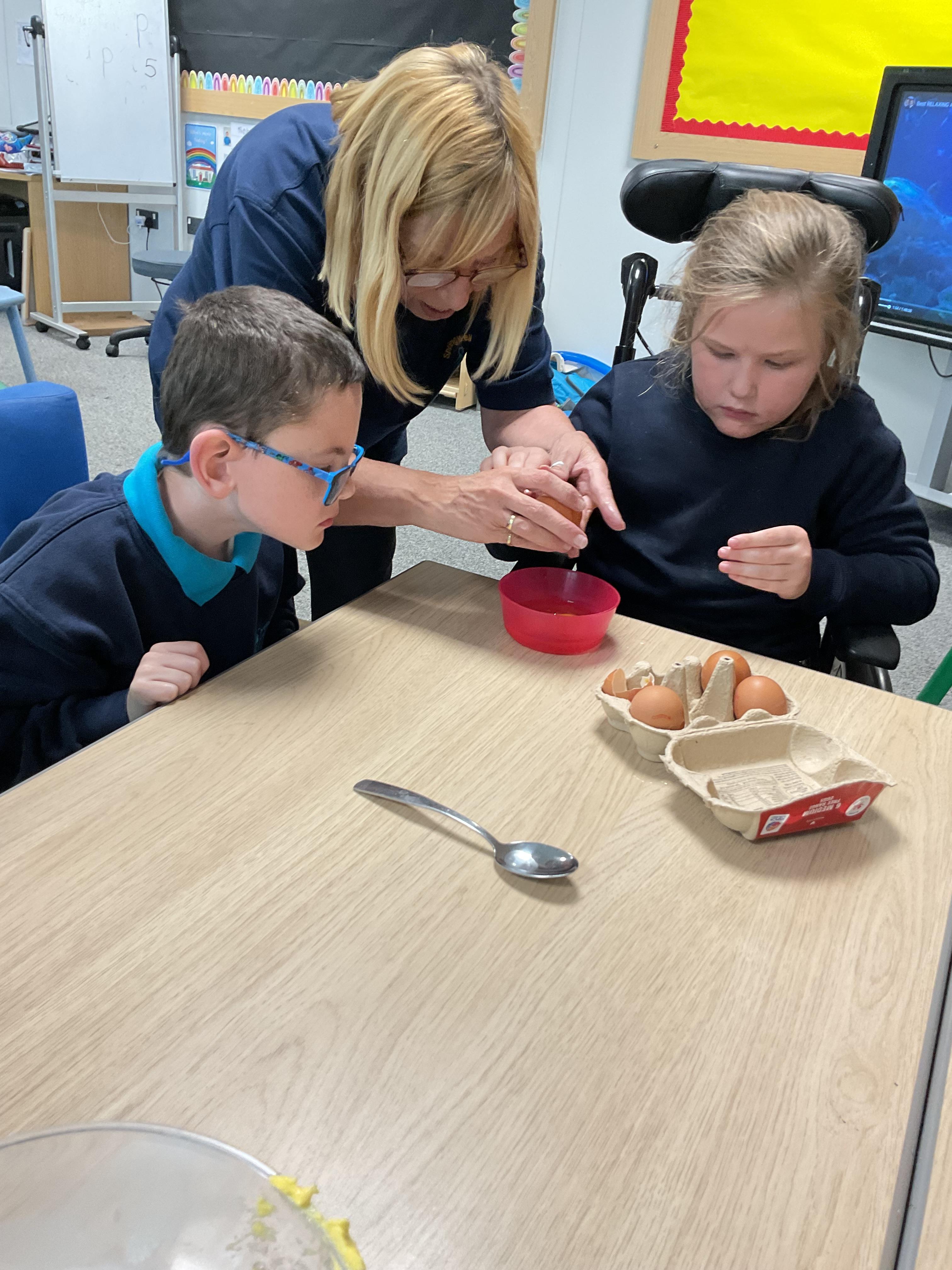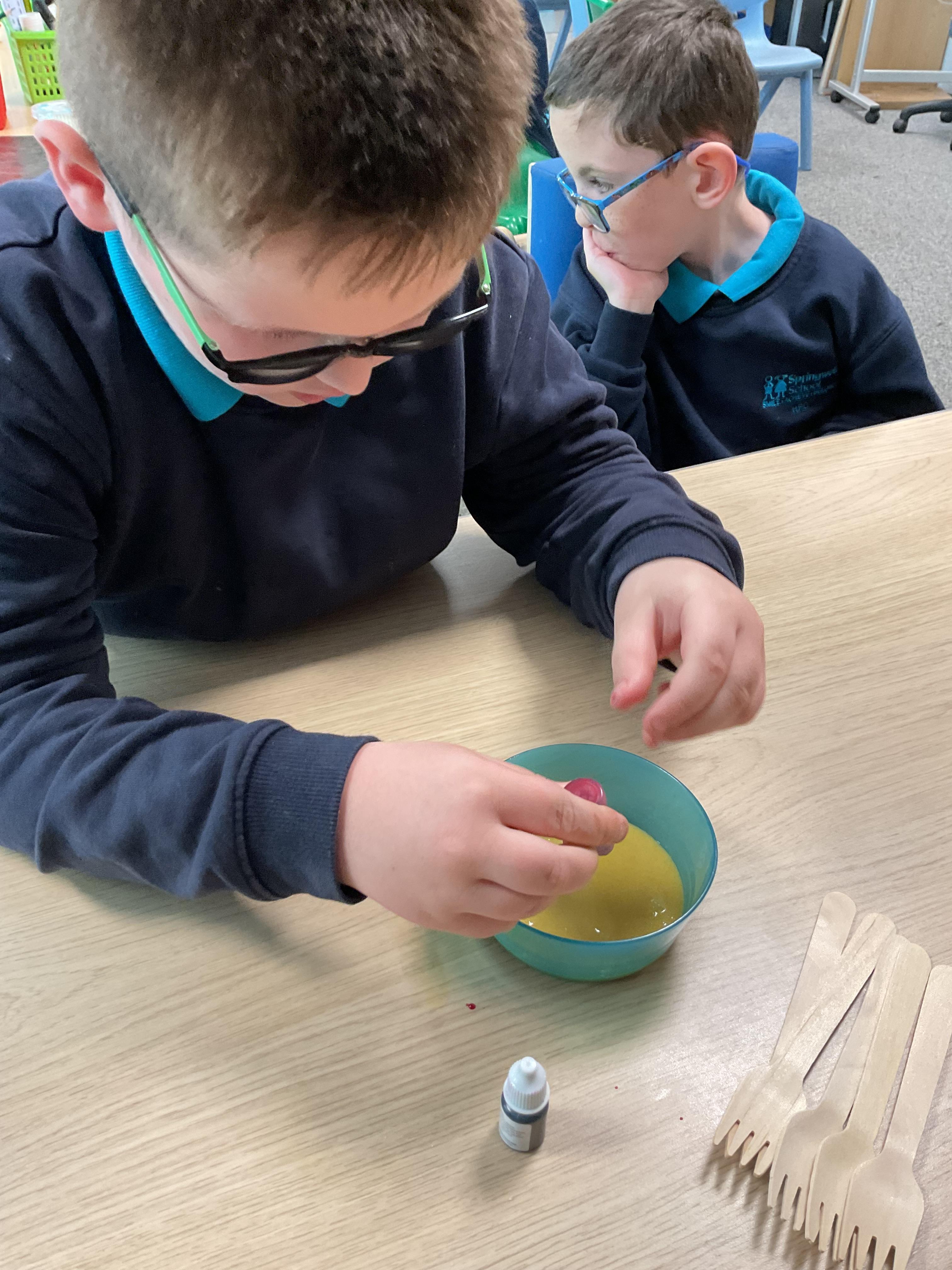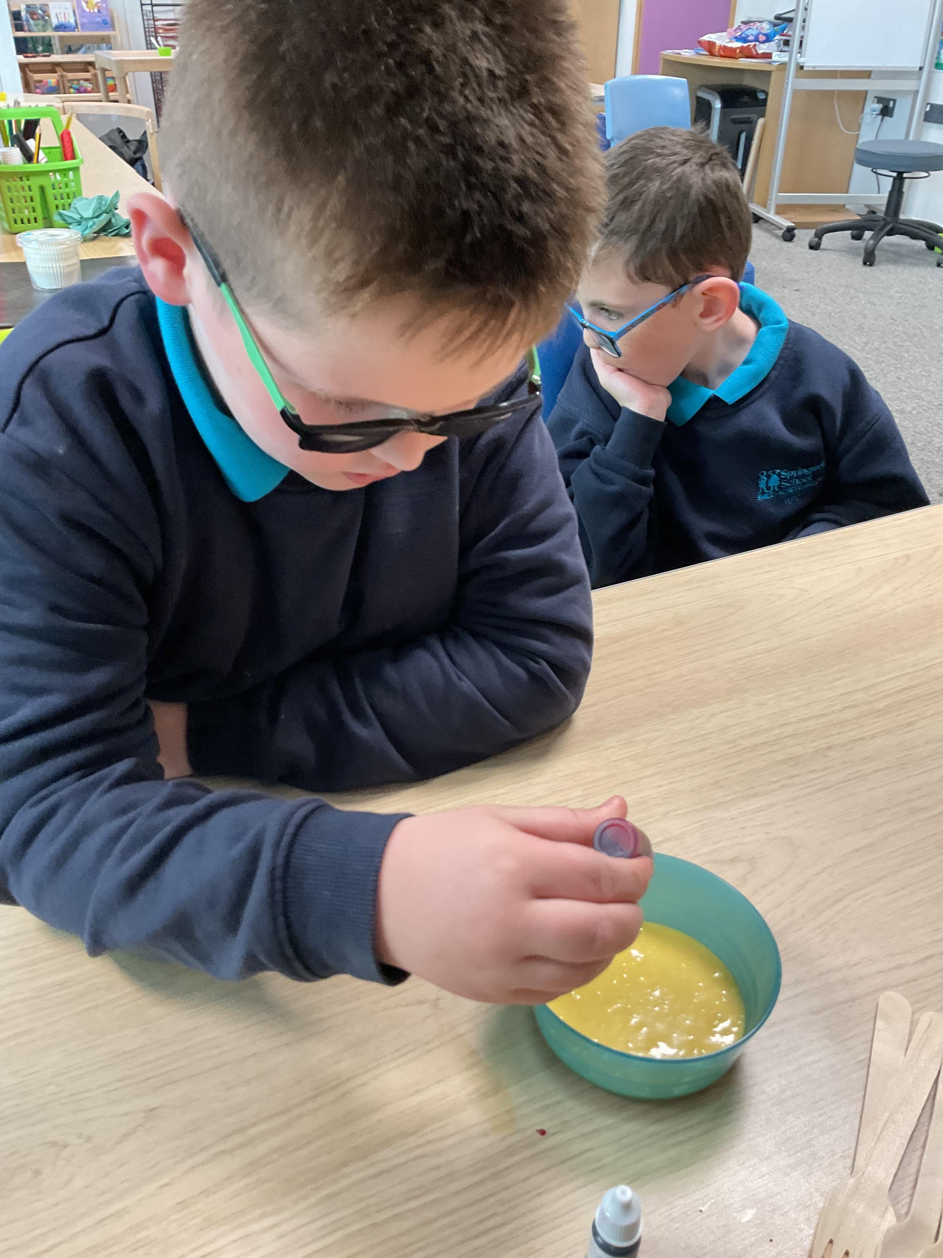 Pandas enjoyed DT with Annette this week. They worked together to make rainbow cakes by measuring out the ingredients and mixing them altogether.