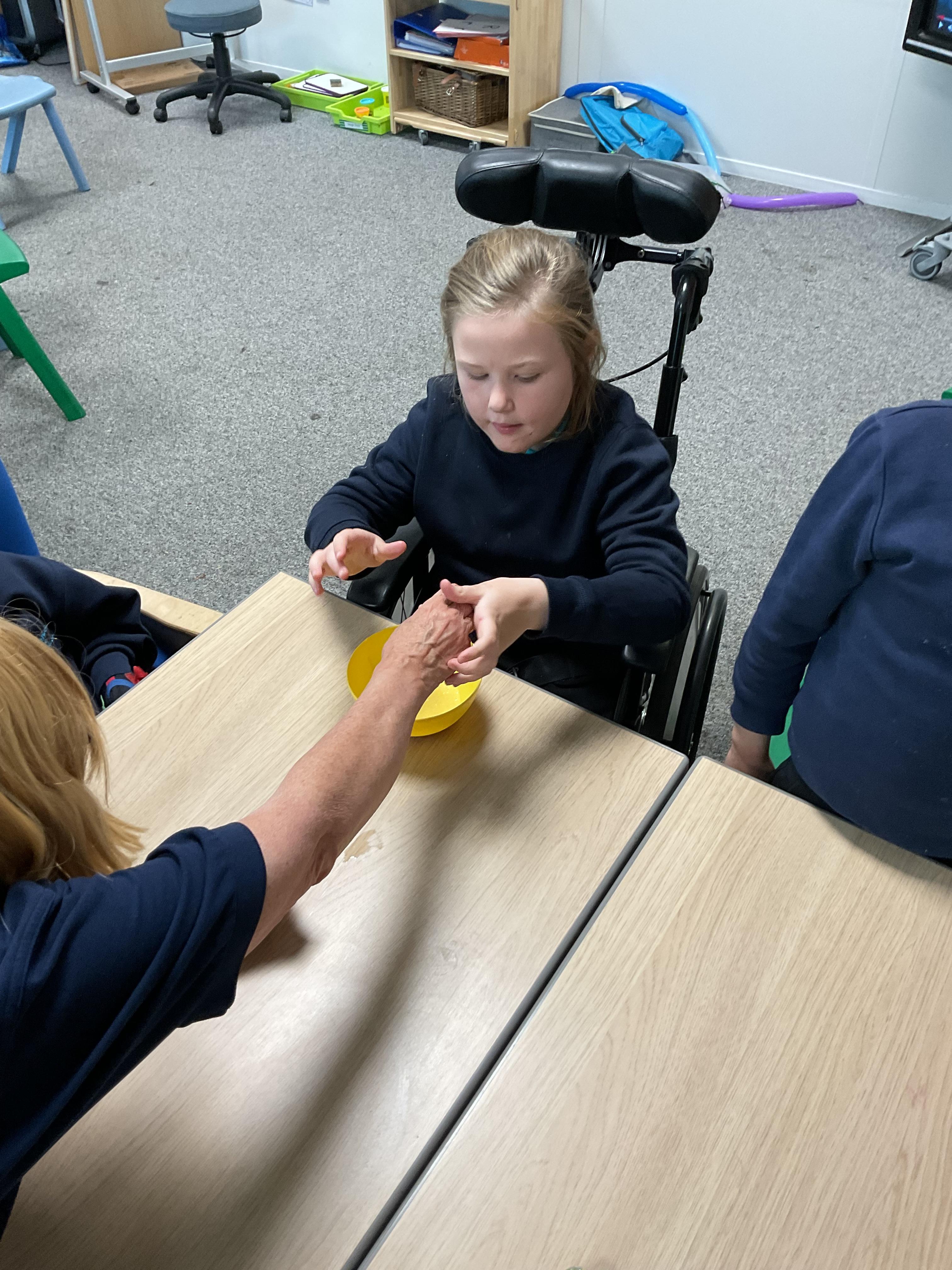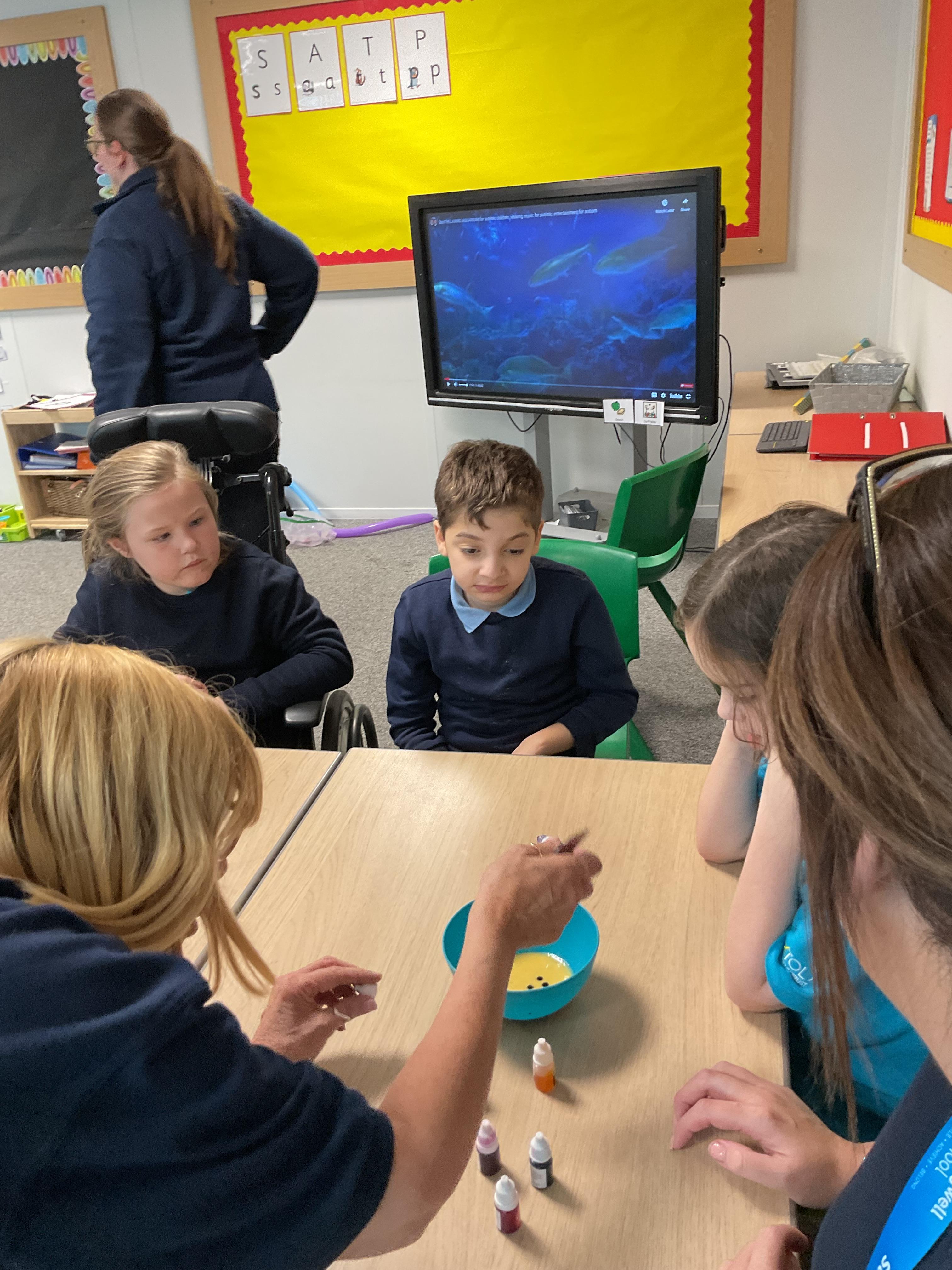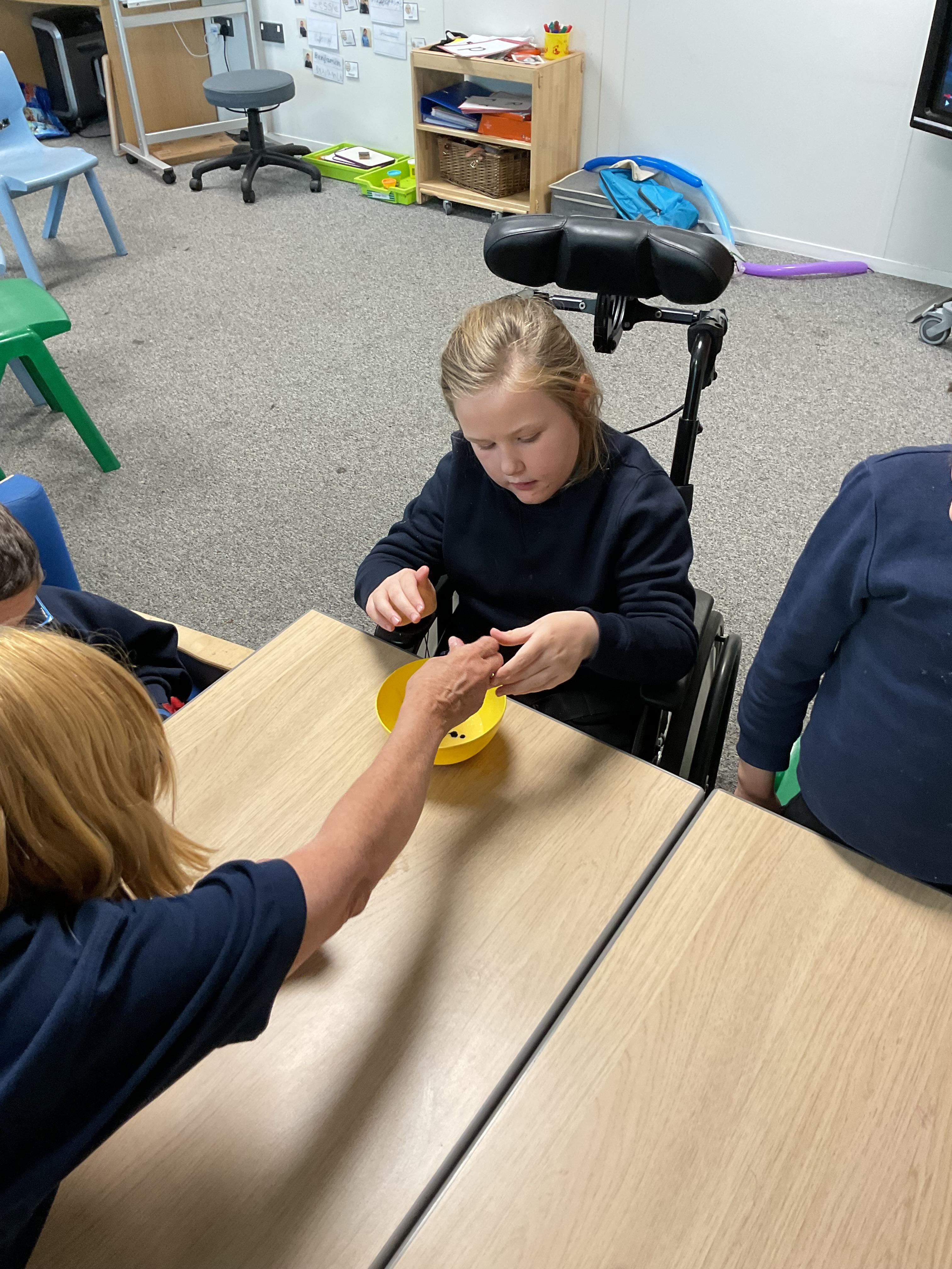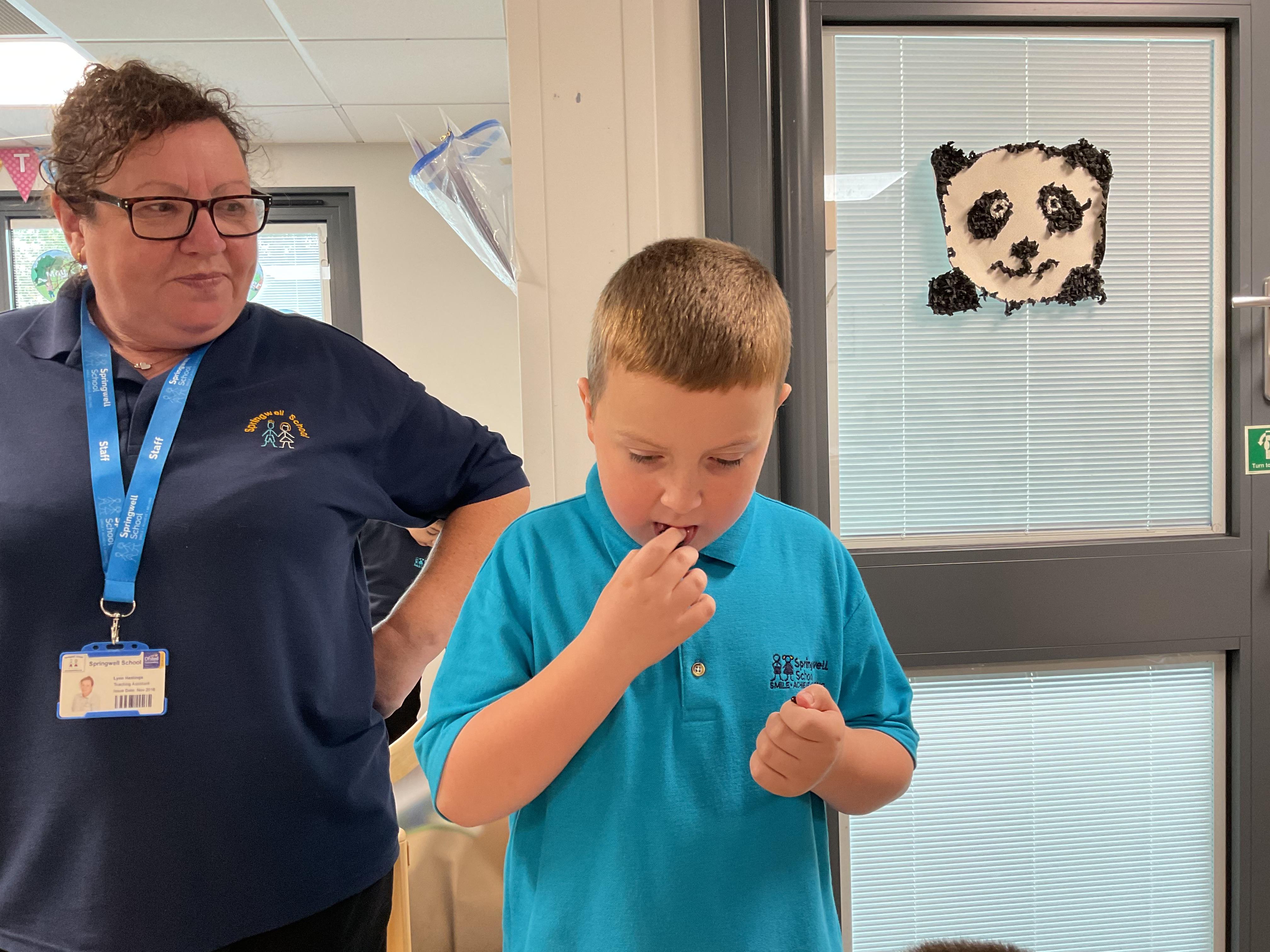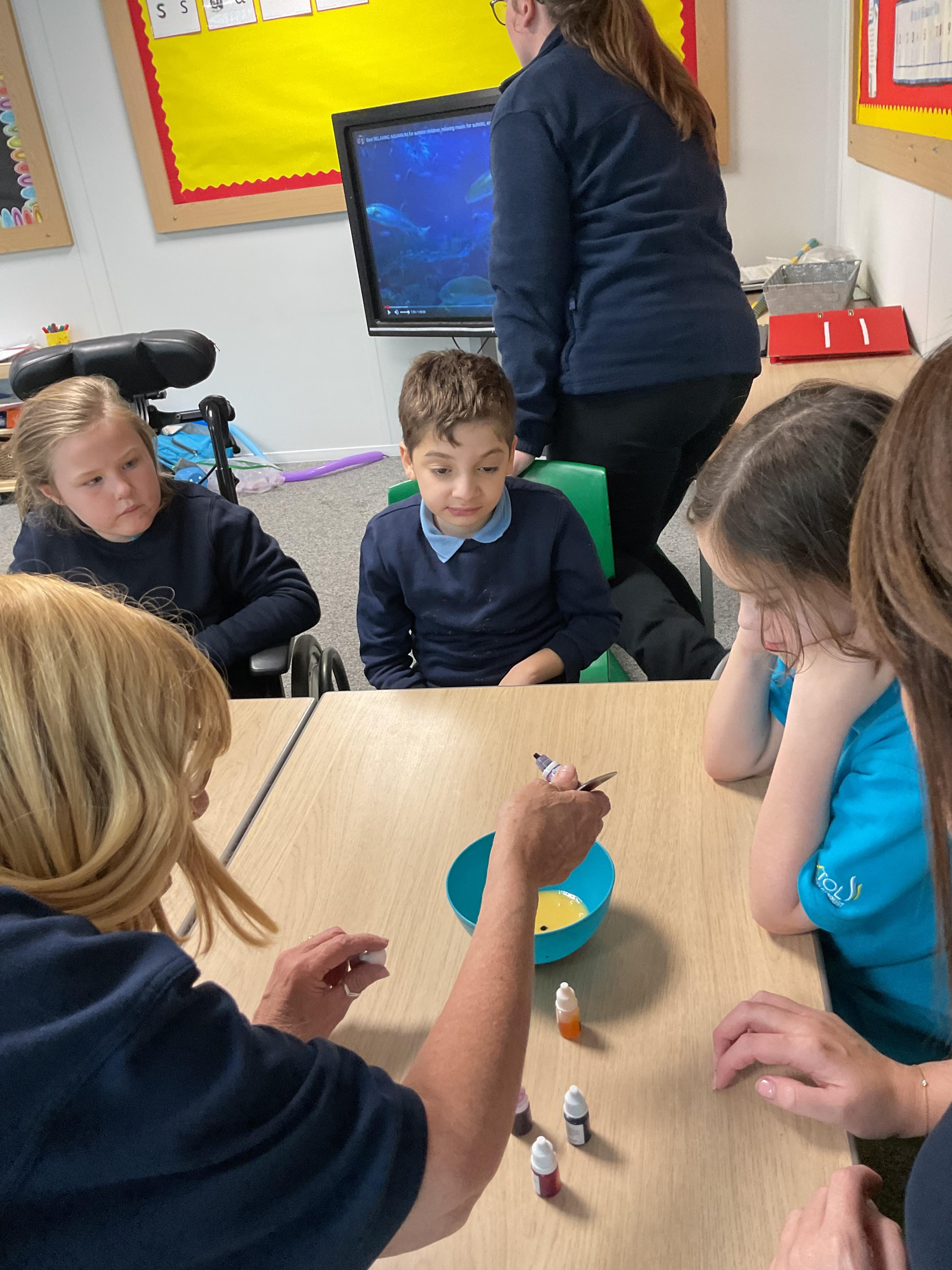 Pandas enjoyed DT with Annette this week. They worked together to make rainbow cakes by measuring out the ingredients and mixing them altogether.