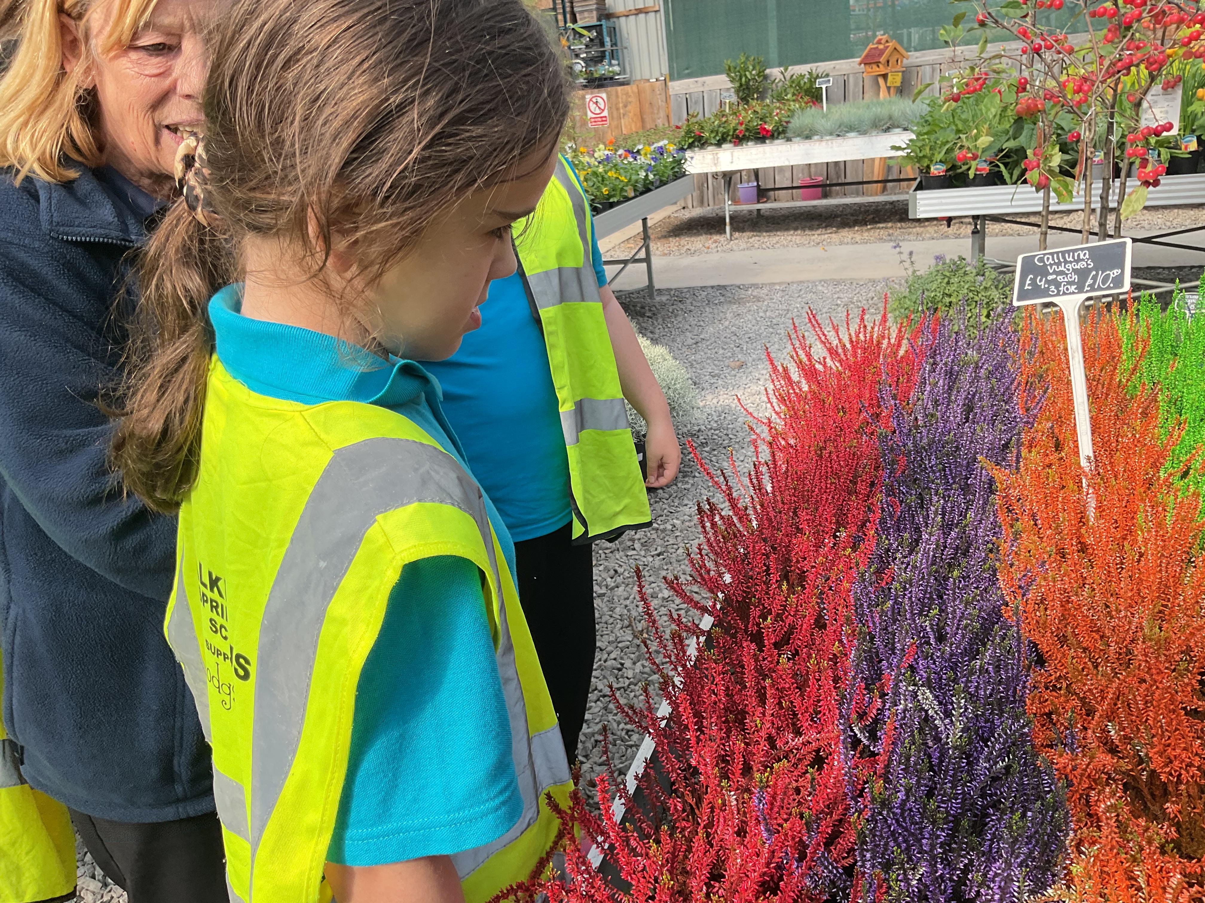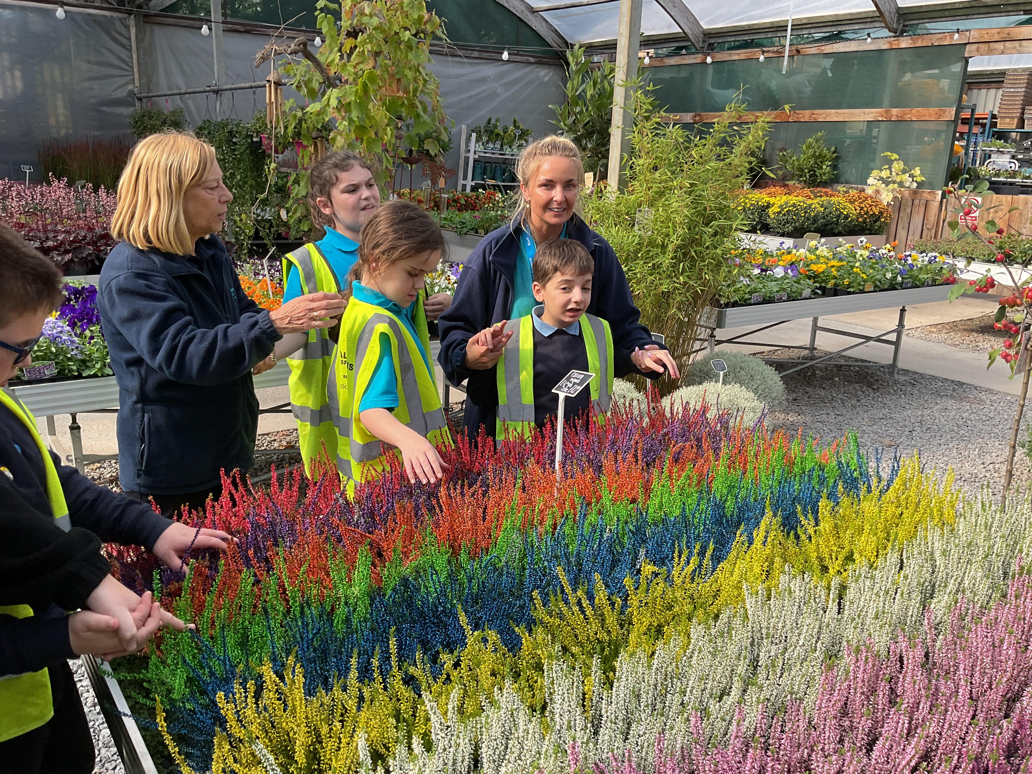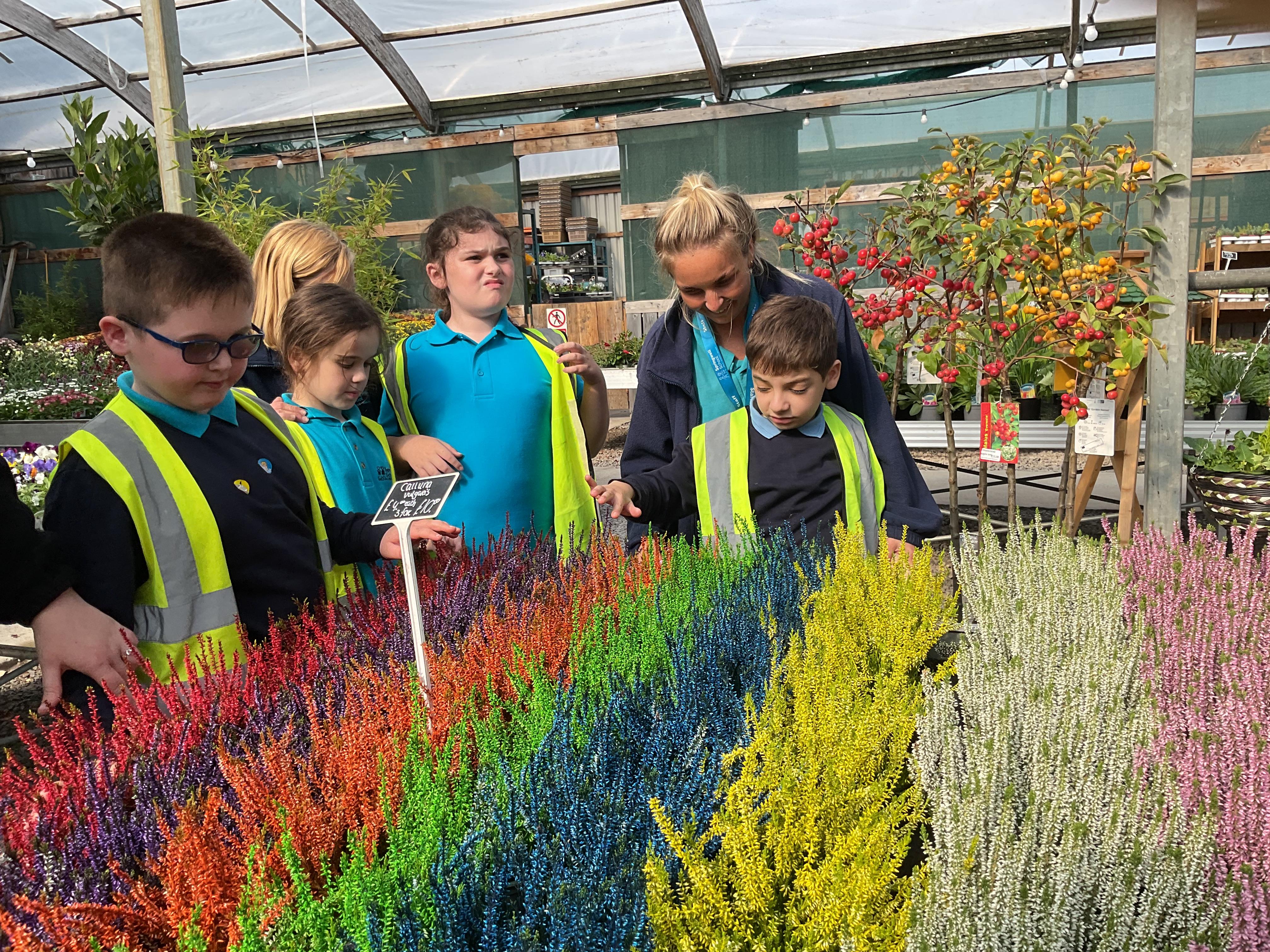 This afternoon, we took the bus to the Dutch Garden Centre to explore the types of plants we might find in autumn. There were many amazing plants but we particularly loved the rainbow coloured ones, which matched our class story all about the rainbow. We had a little smell of the plants and felt the texture. Some were spiky and some were smooth.