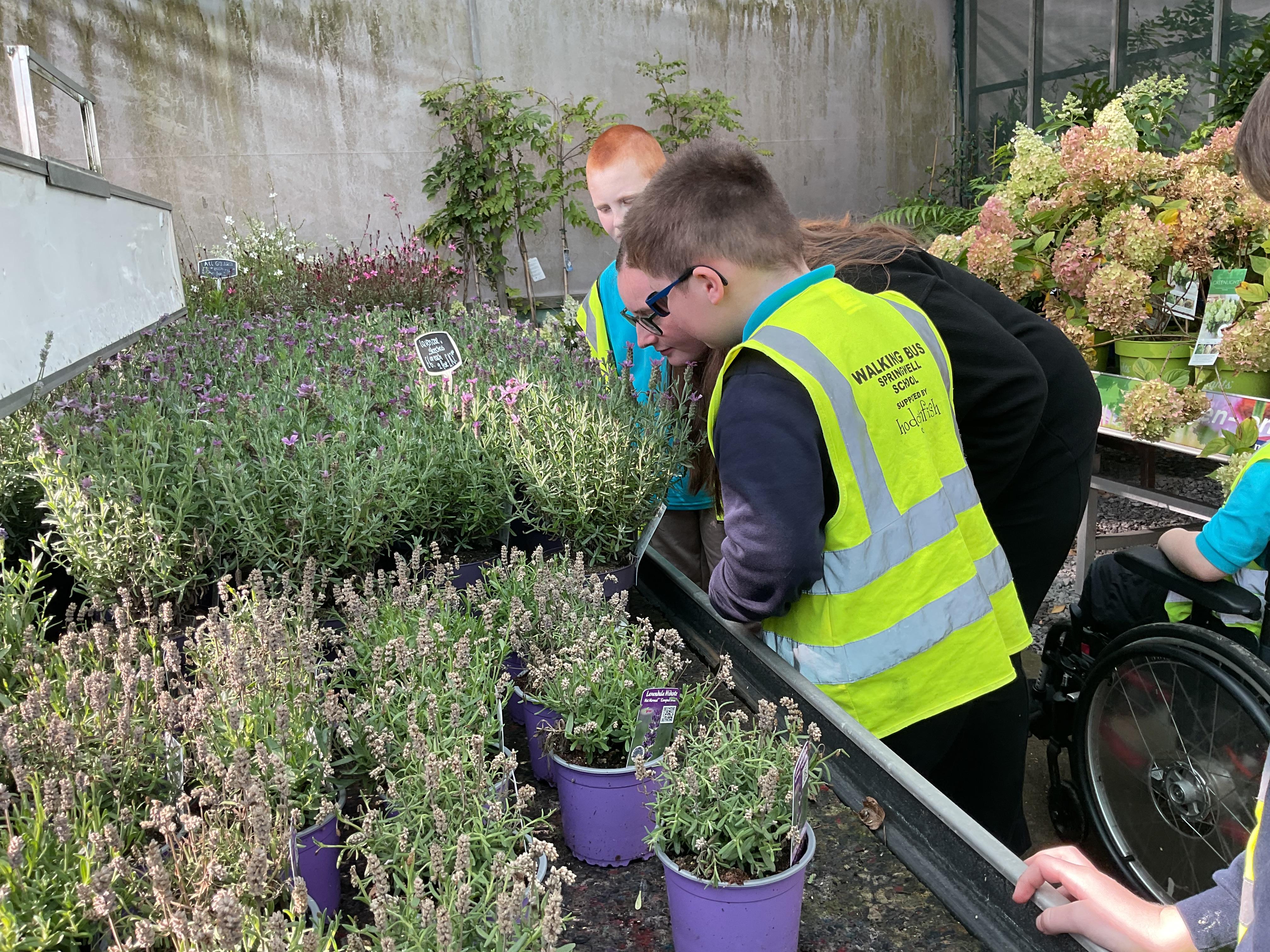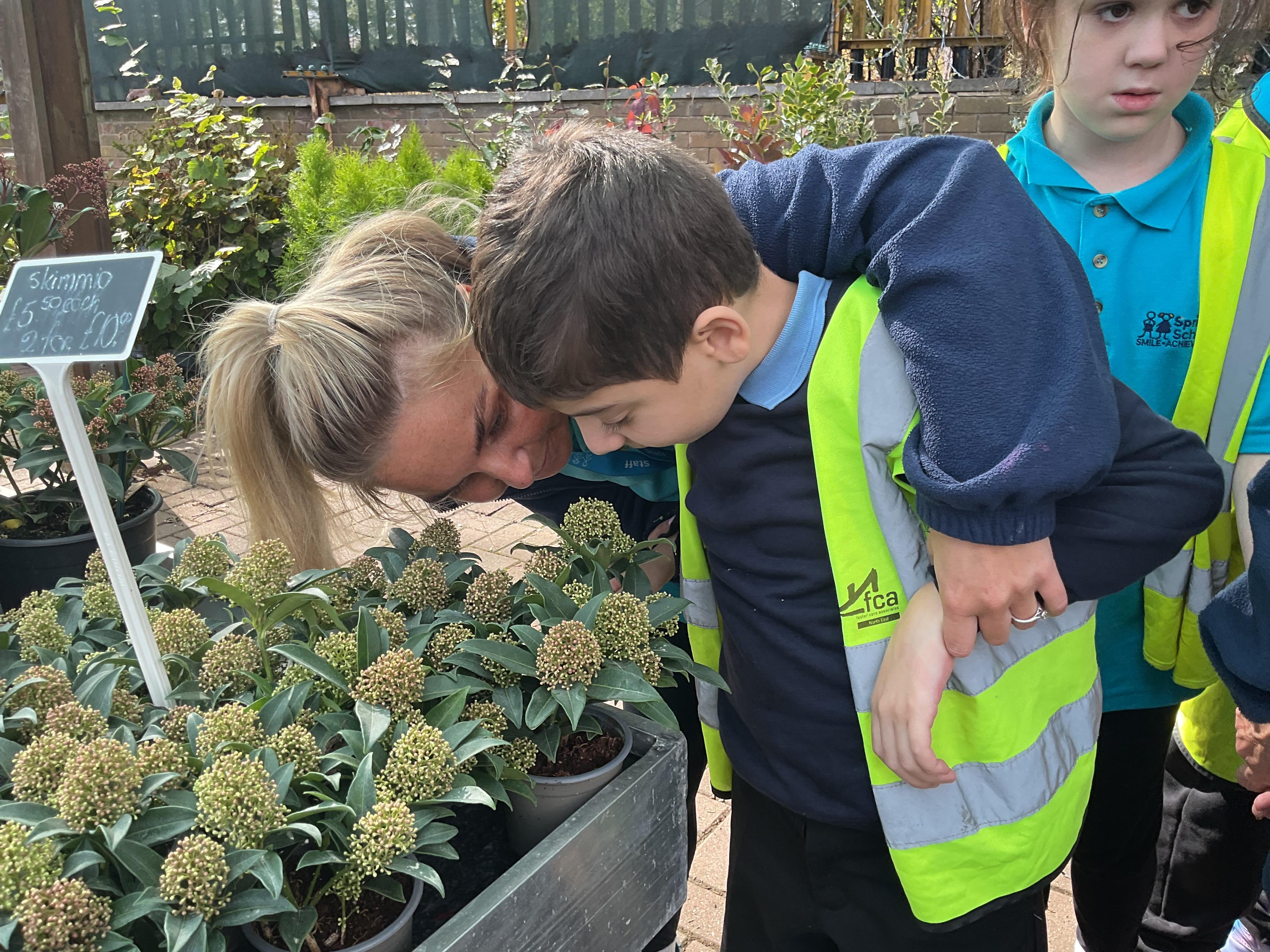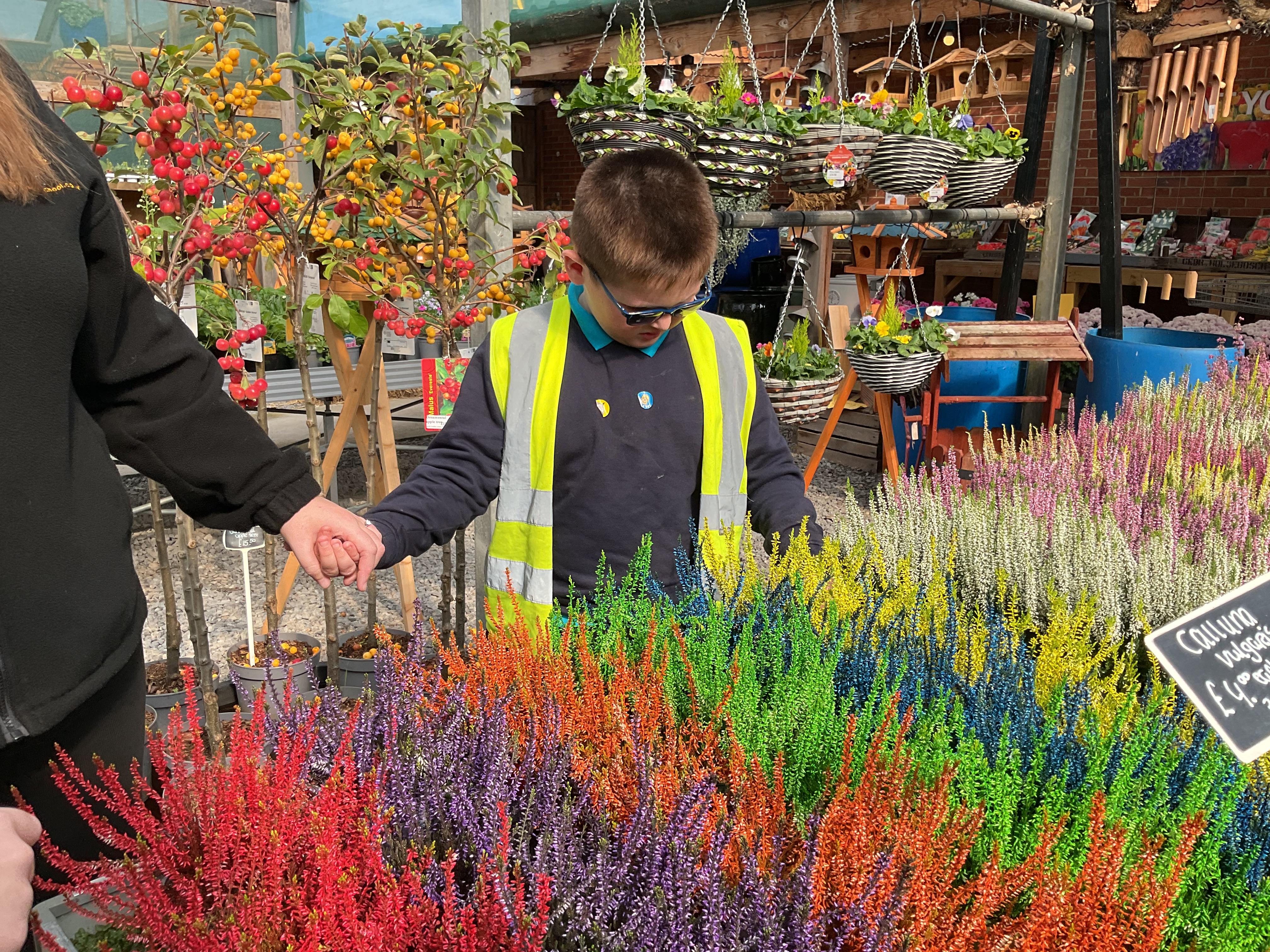 This afternoon, we took the bus to the Dutch Garden Centre to explore the types of plants we might find in autumn. There were many amazing plants but we particularly loved the rainbow coloured ones, which matched our class story all about the rainbow. We had a little smell of the plants and felt the texture. Some were spiky and some were smooth.