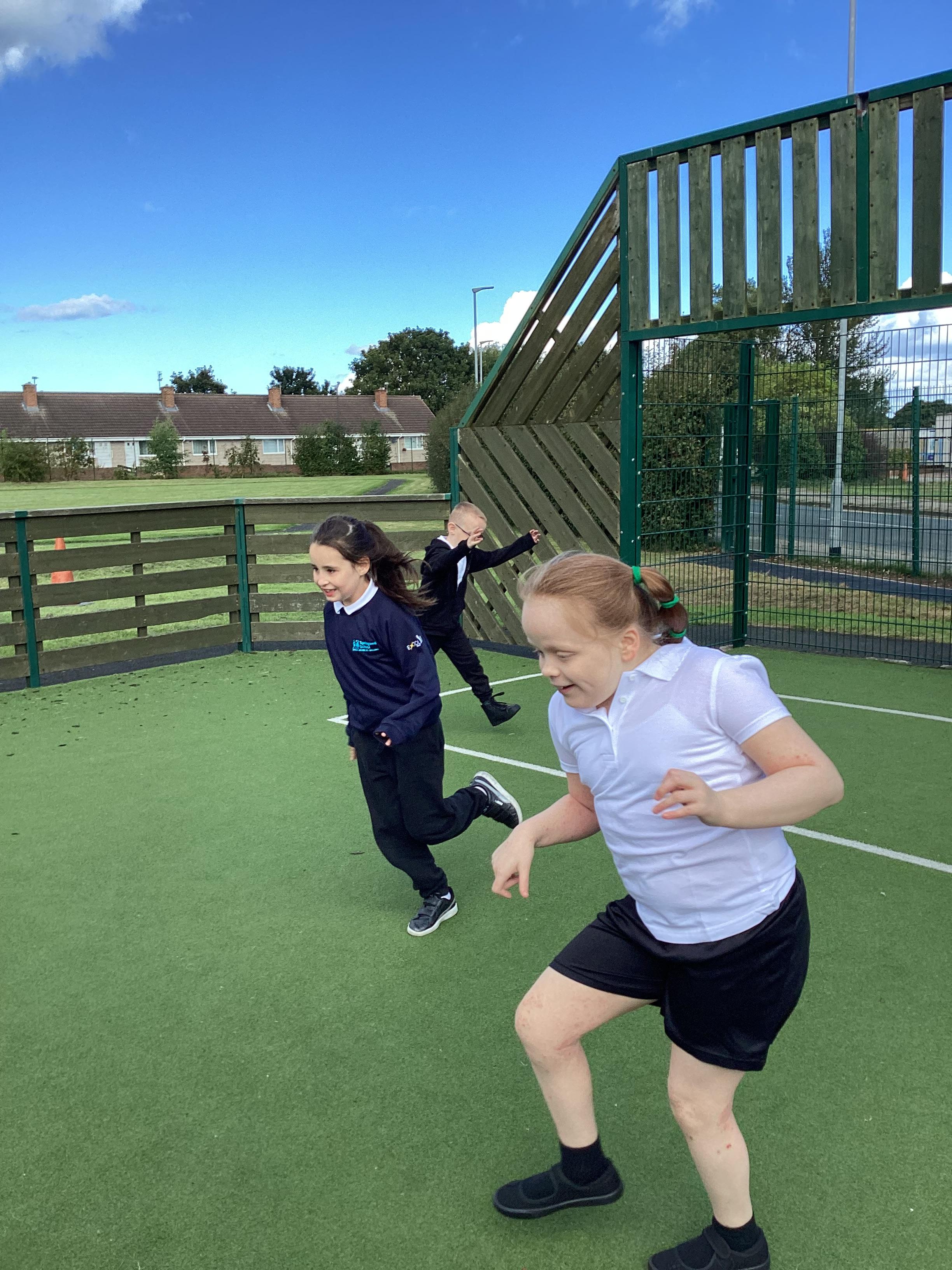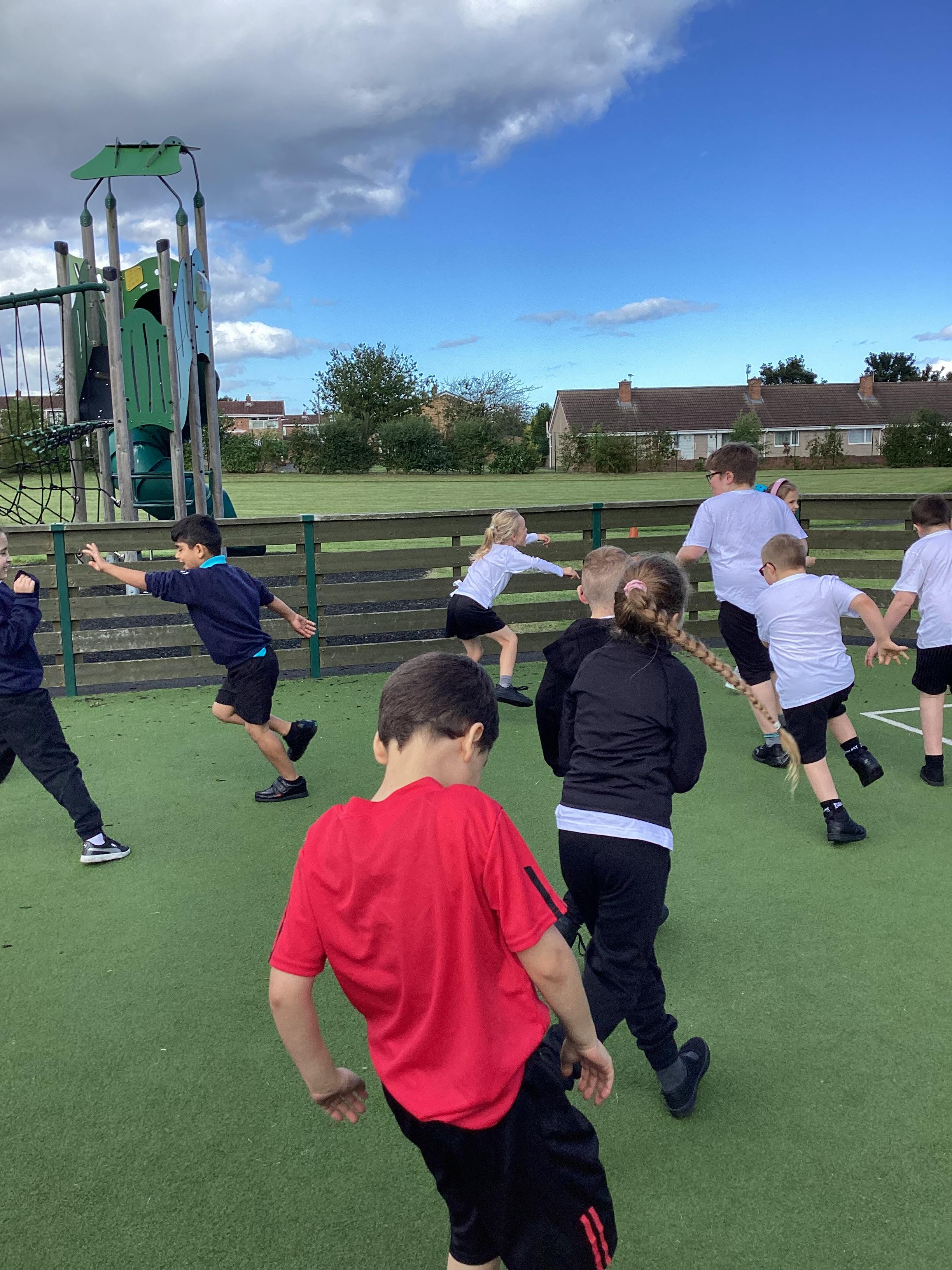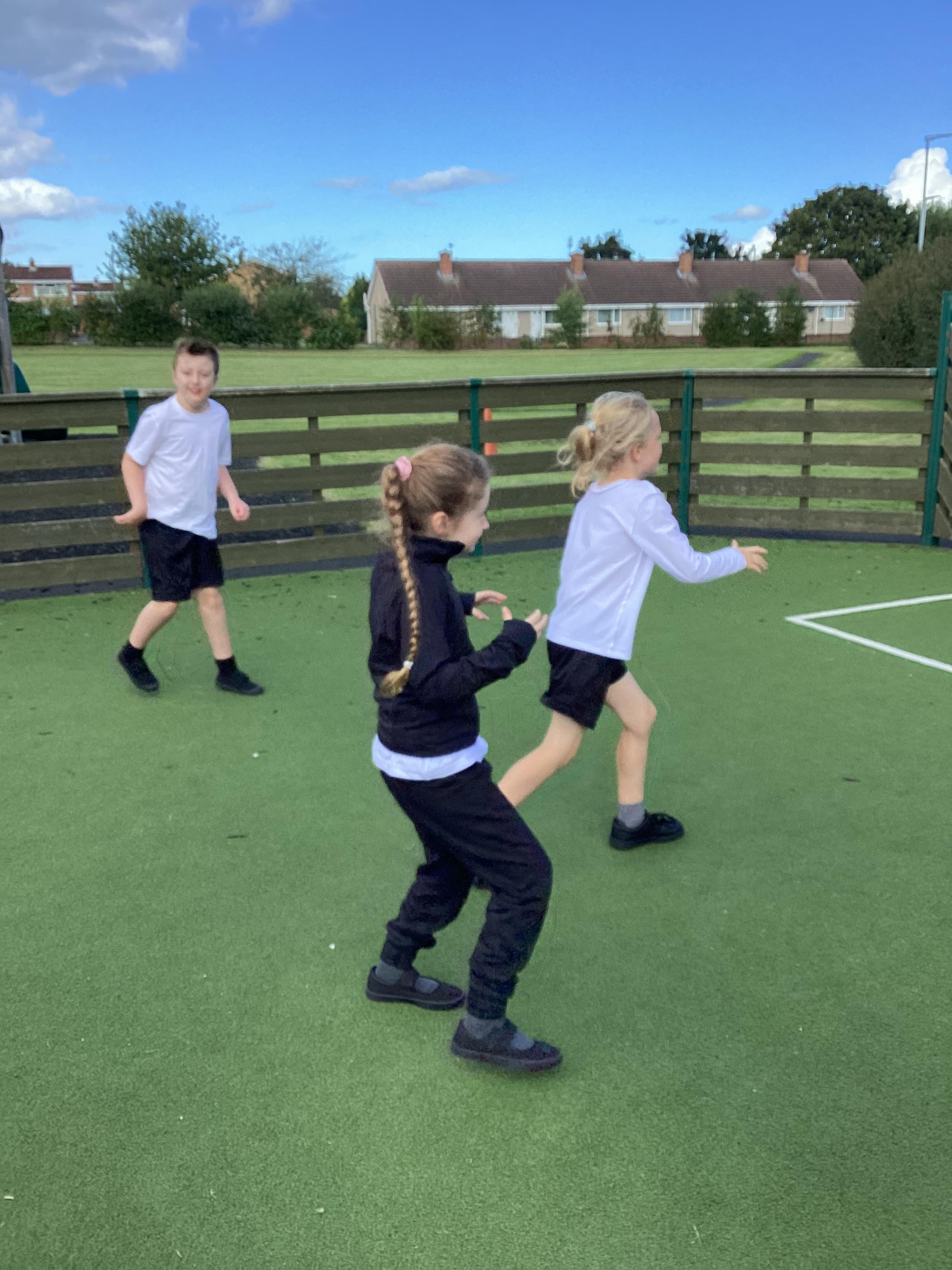 PE - Thursday 12th September 2024. We moved round the MUGA in different ways and practiced our stopping and starting skills.