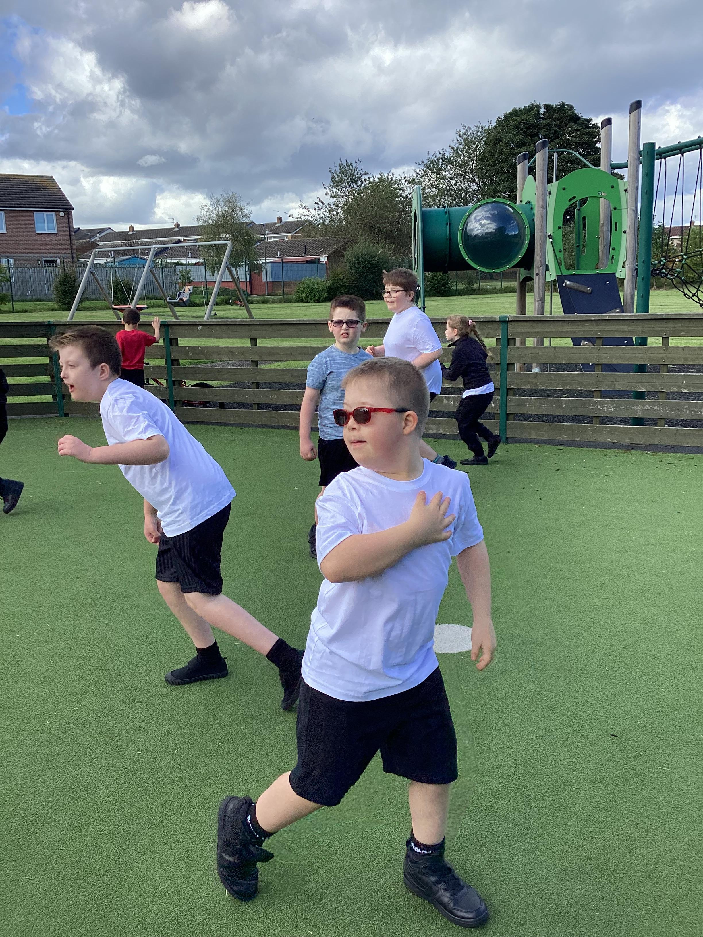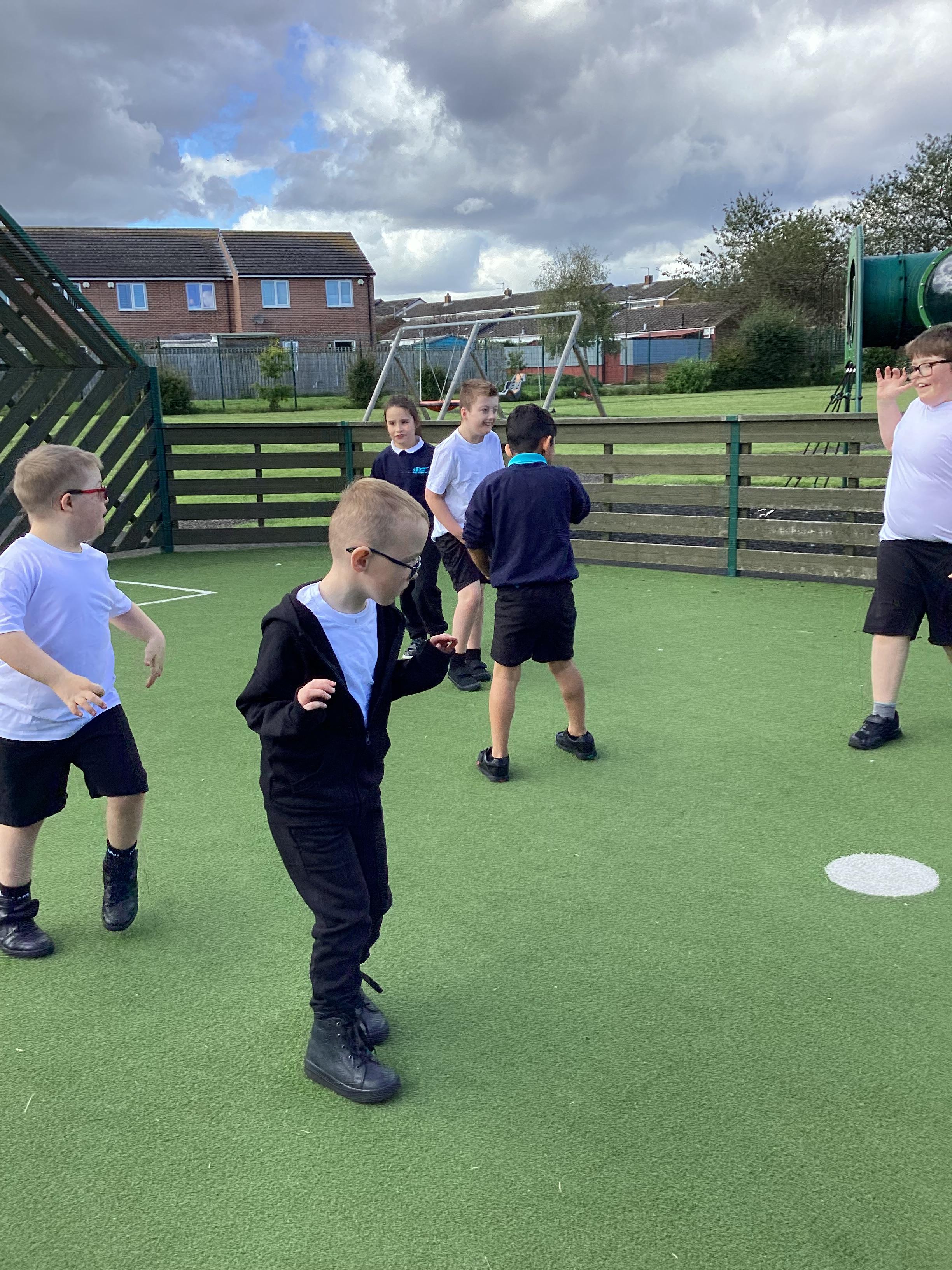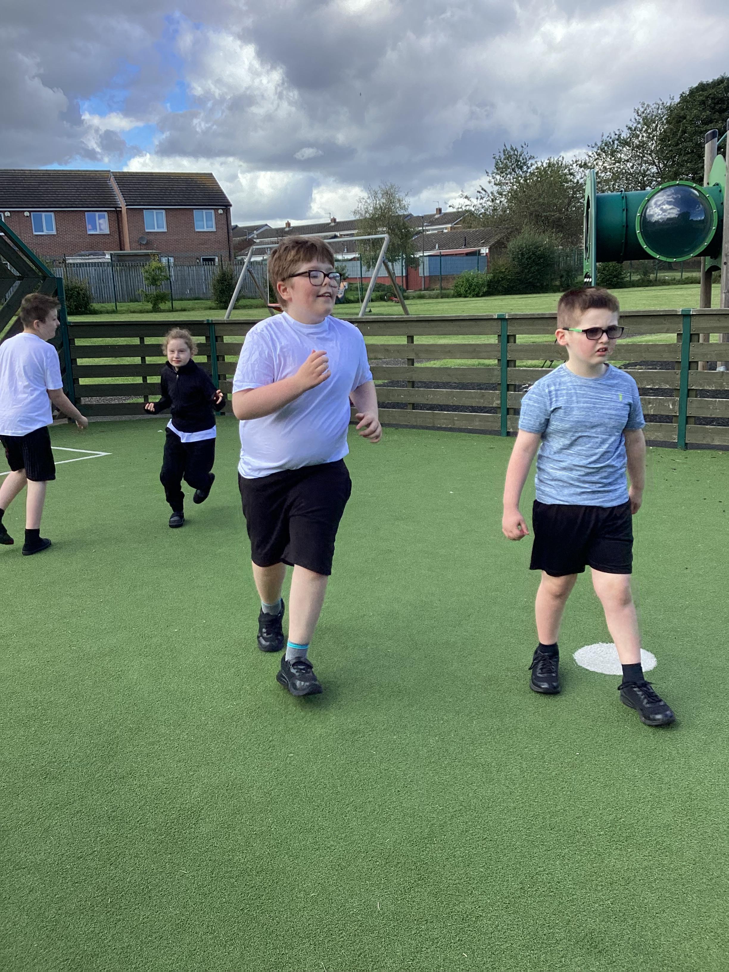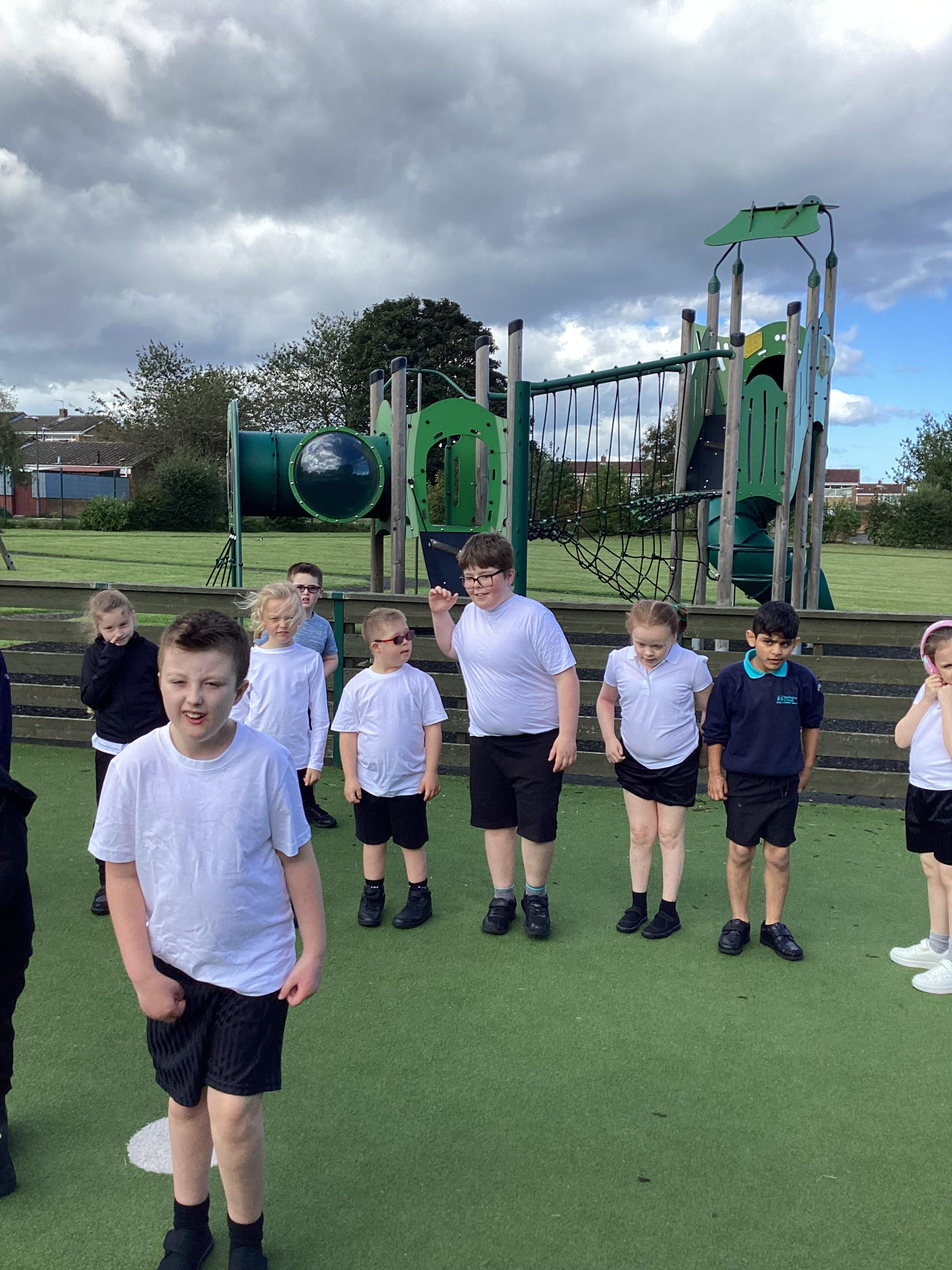 PE - Thursday 12th September 2024. We moved round the MUGA in different ways and practiced our stopping and starting skills.