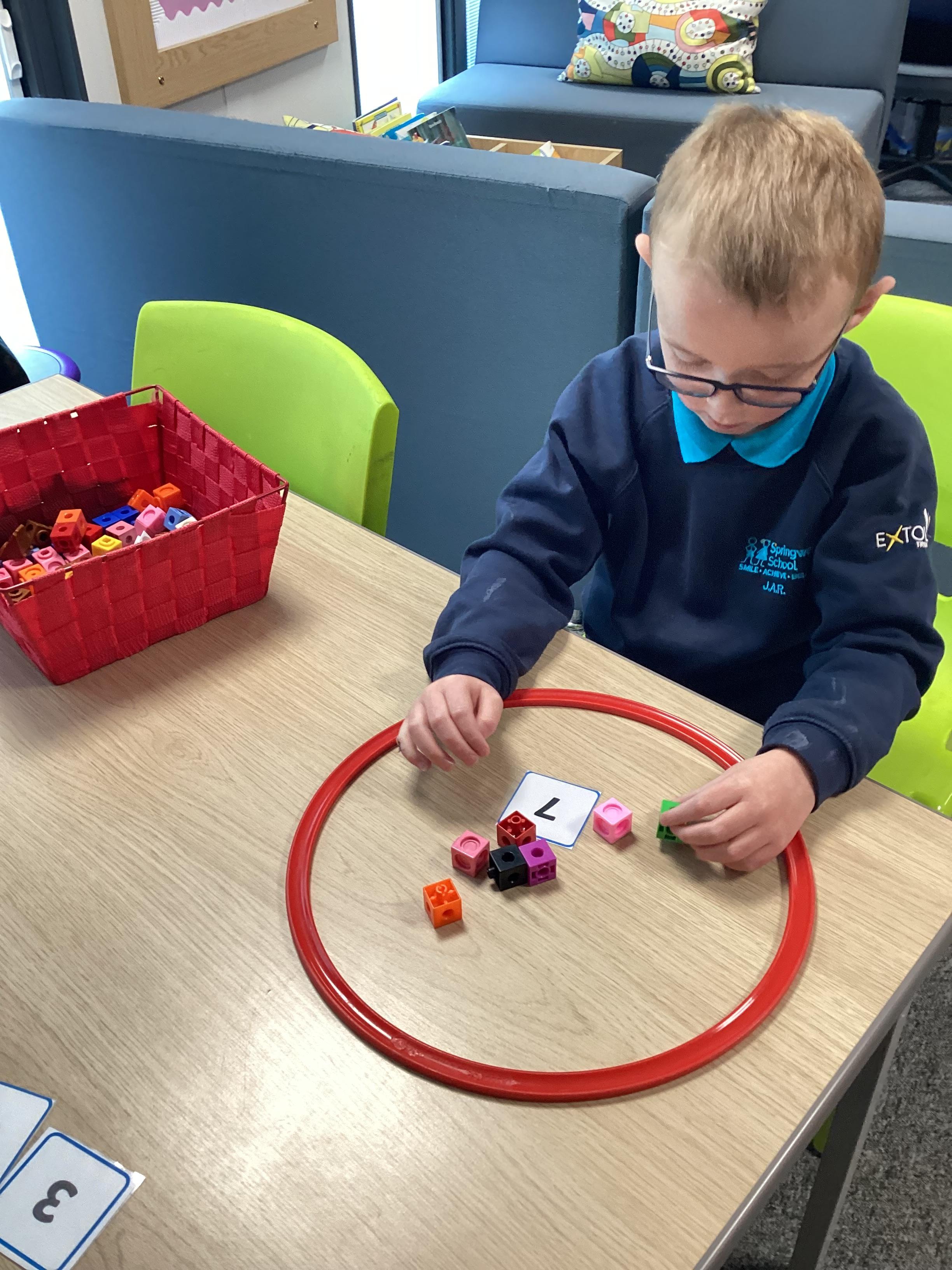 How many cubes? Panda Class had to count the cubes to find out how many cubes there were in the sets. We also matched sausages to pans to check if we had enough.