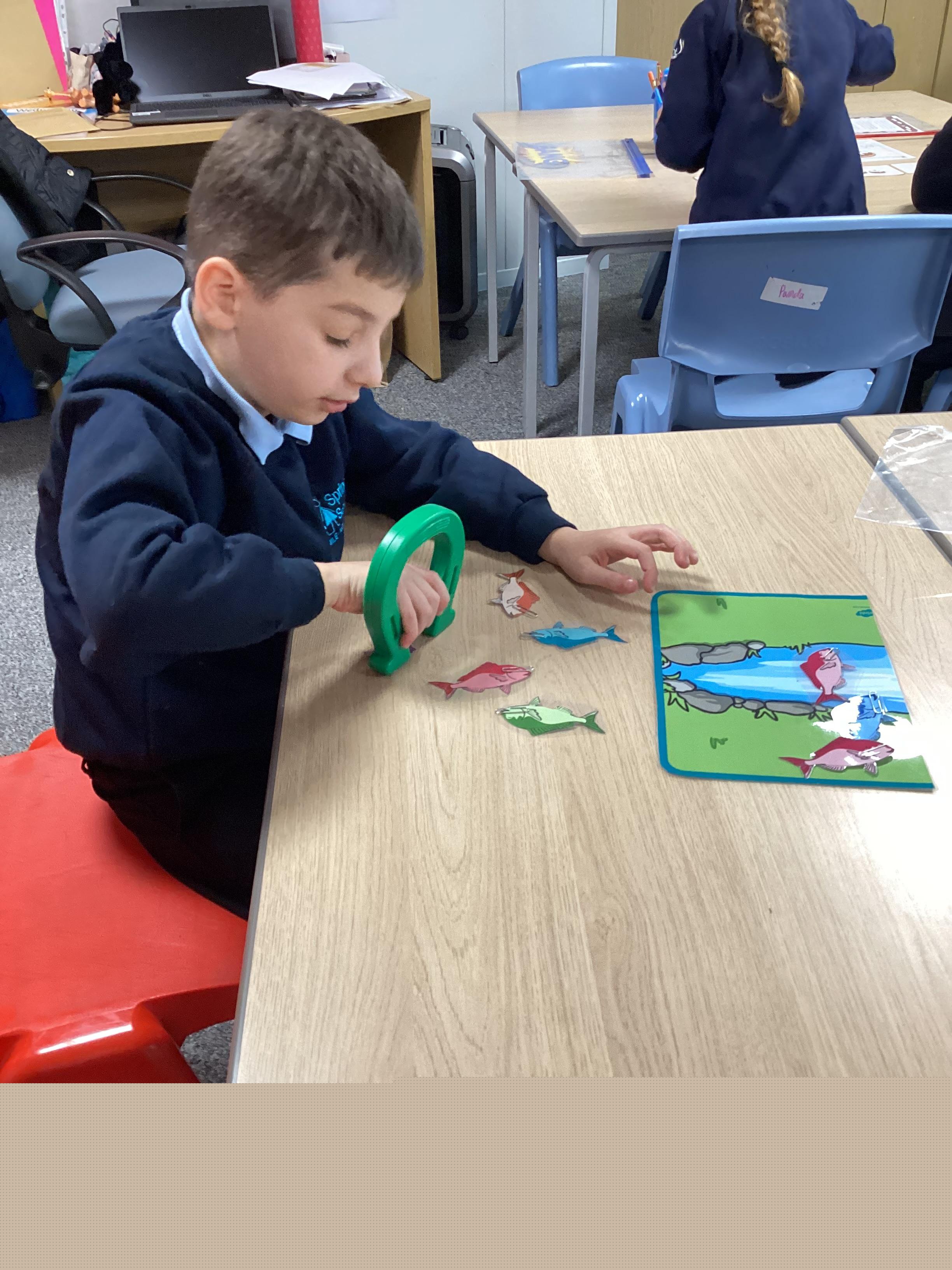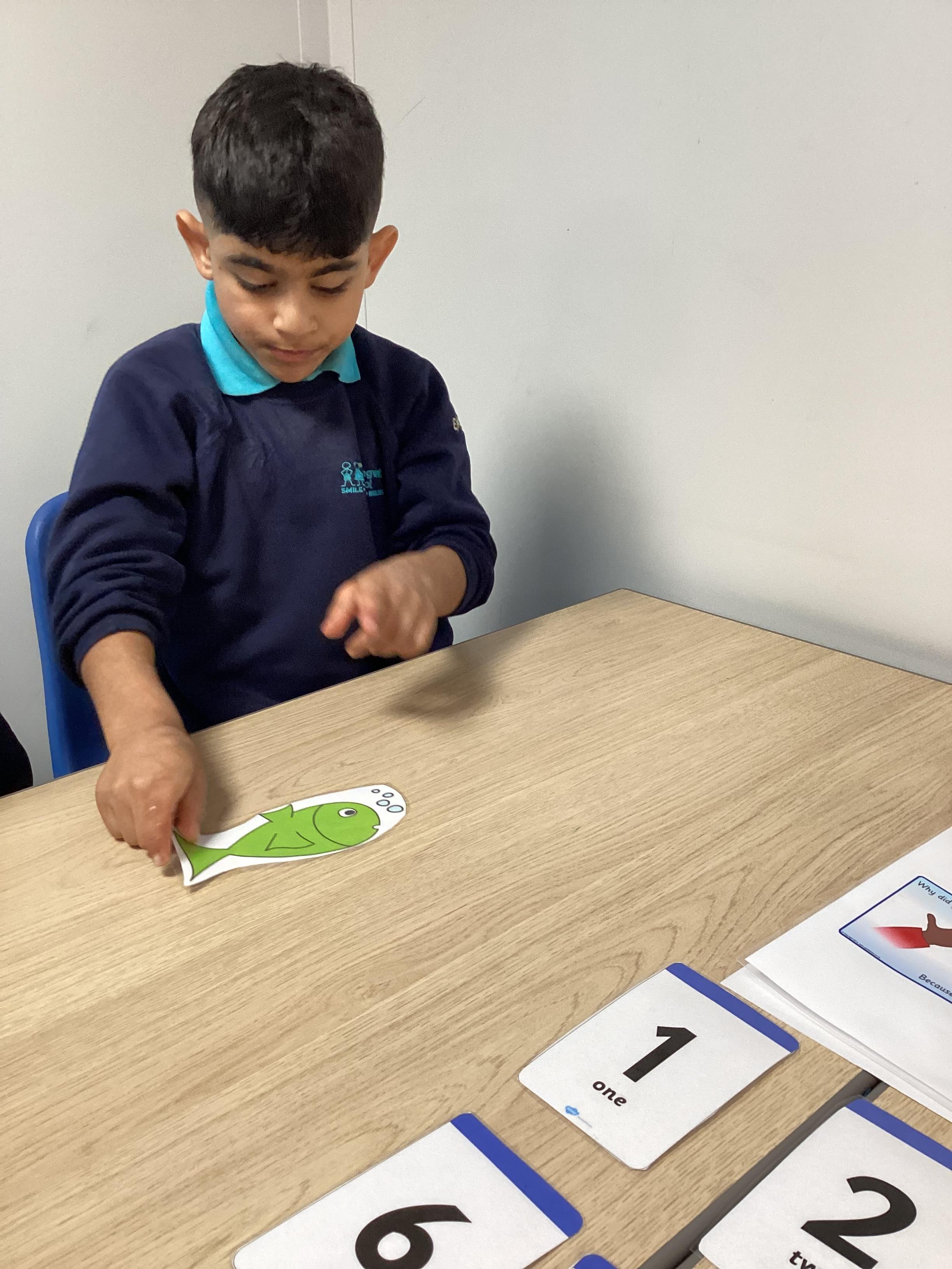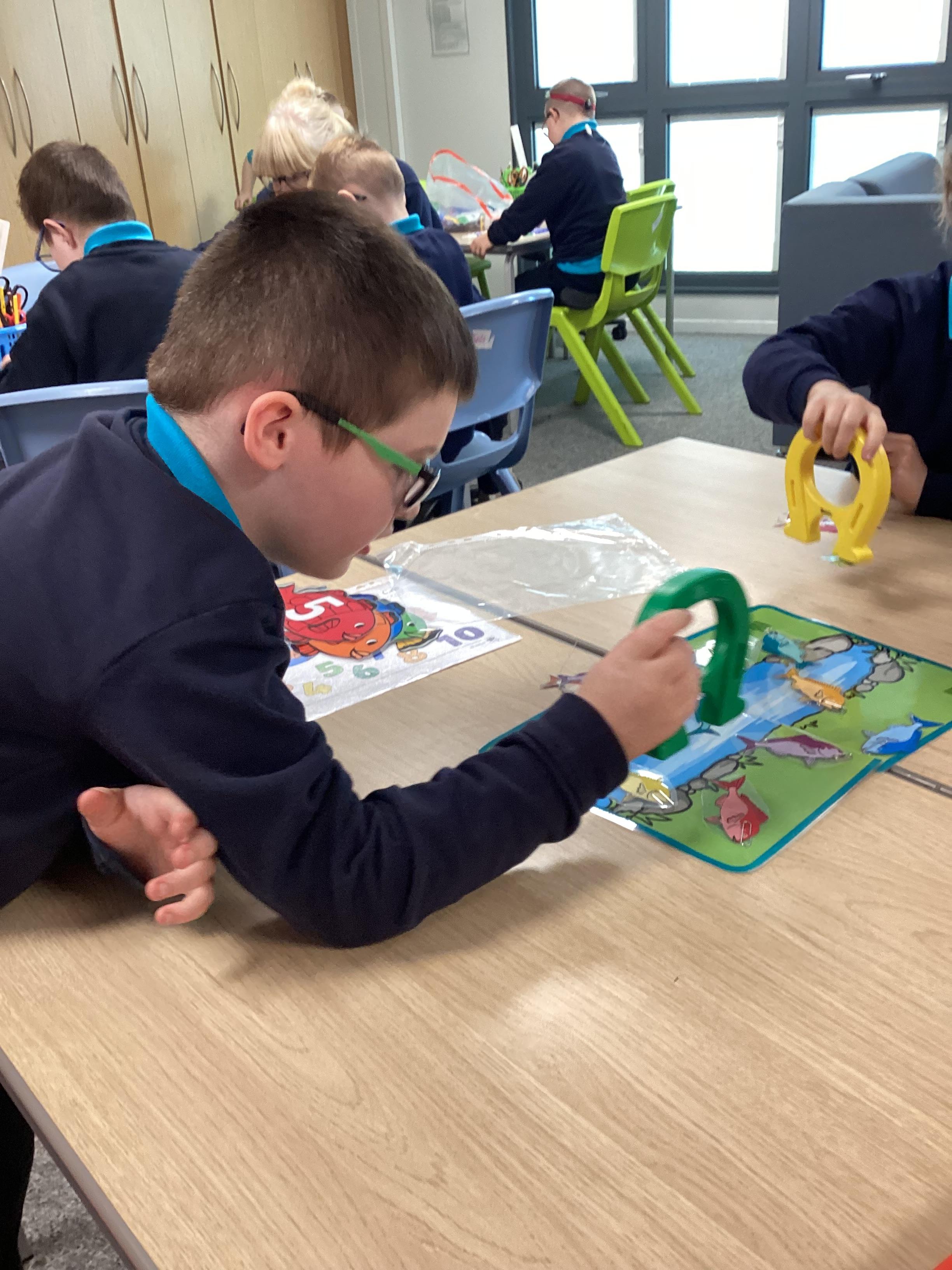 Thursday 3rd October 2024. Our number rhyme is 1,2,3,4,5 Once I caught a fish alive. Some of us have been fishing today. We enjoyed catching the fish with magnets and then counting how many we caught.
