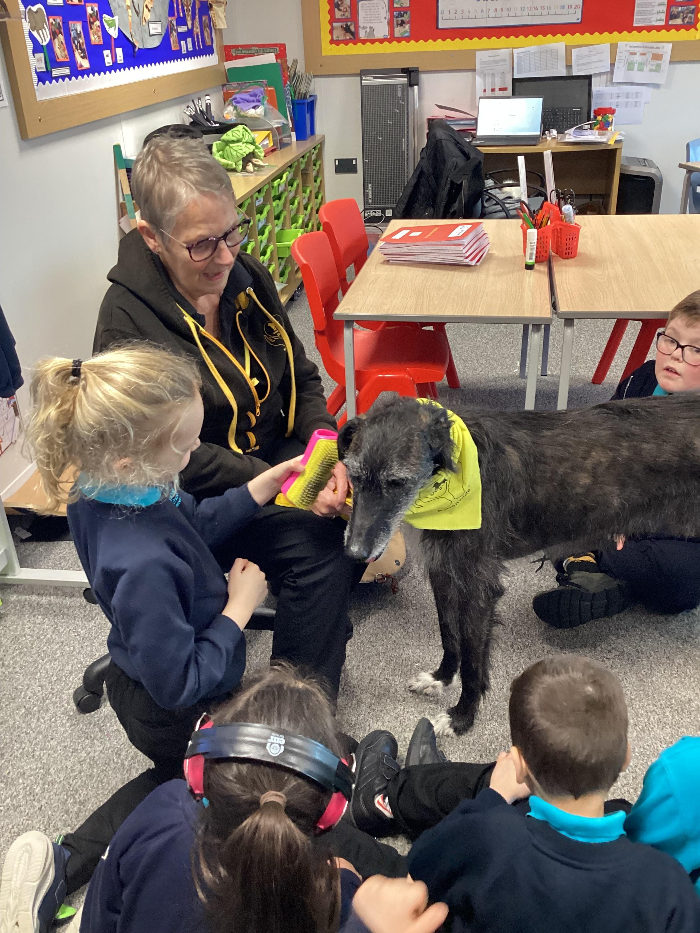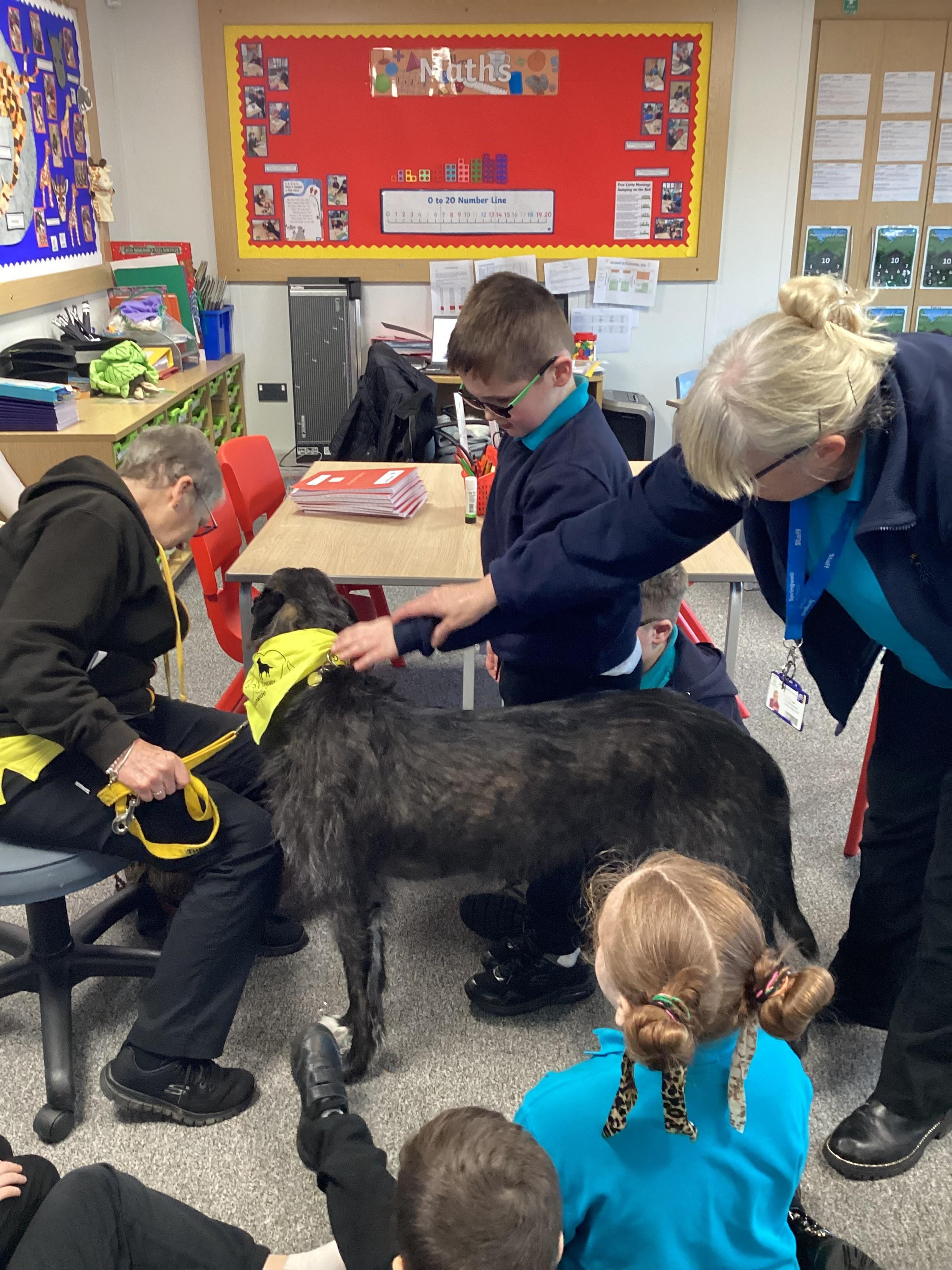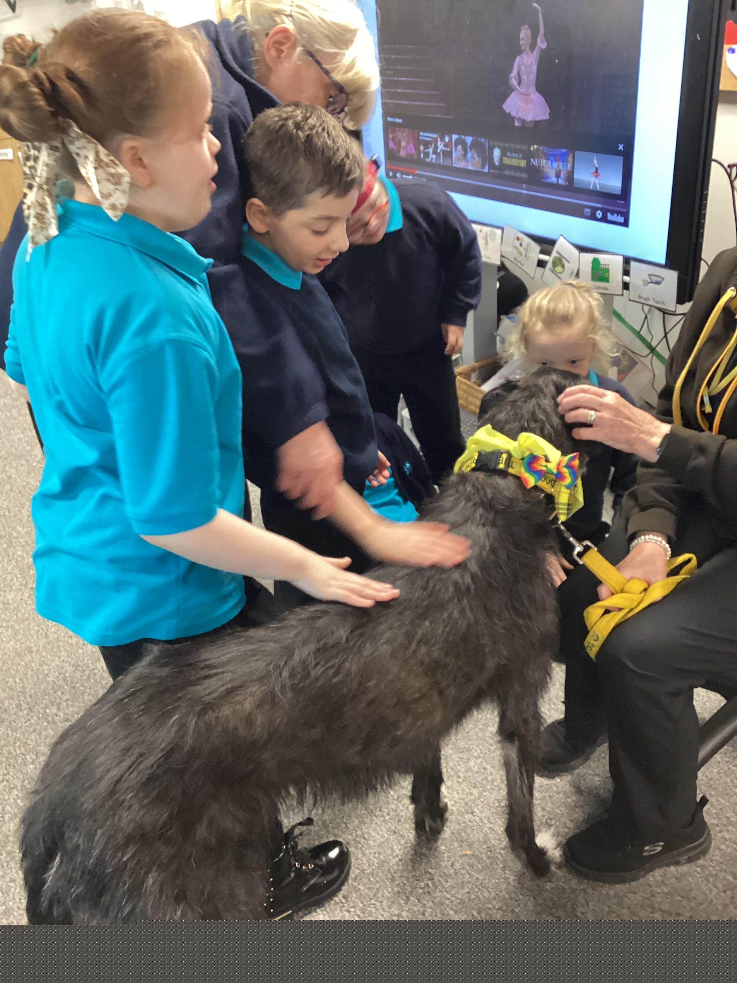 Today Panda Class had a visit from Ronnie, our PAT dog and Val. We were all pleased to see Ronnie.