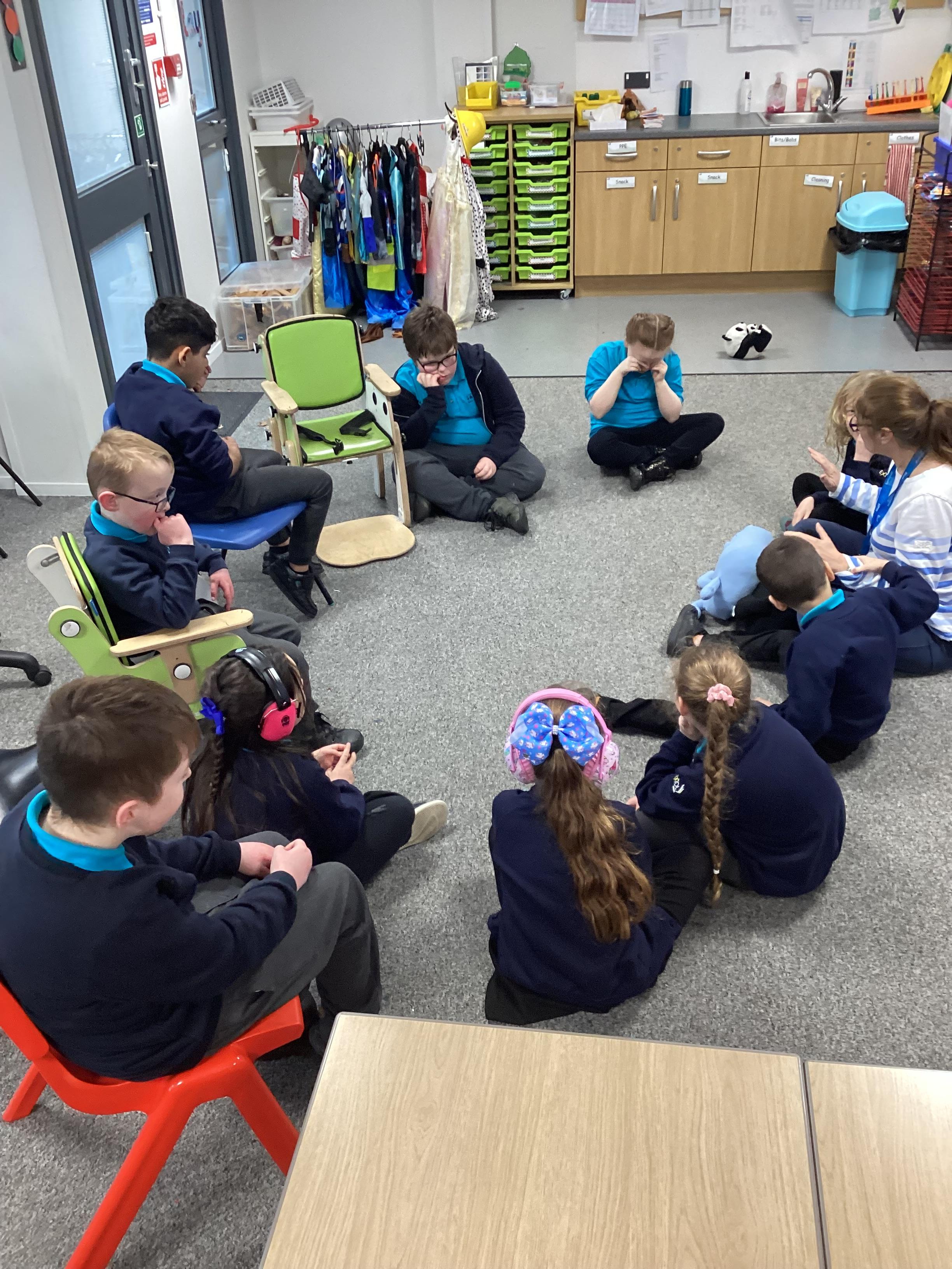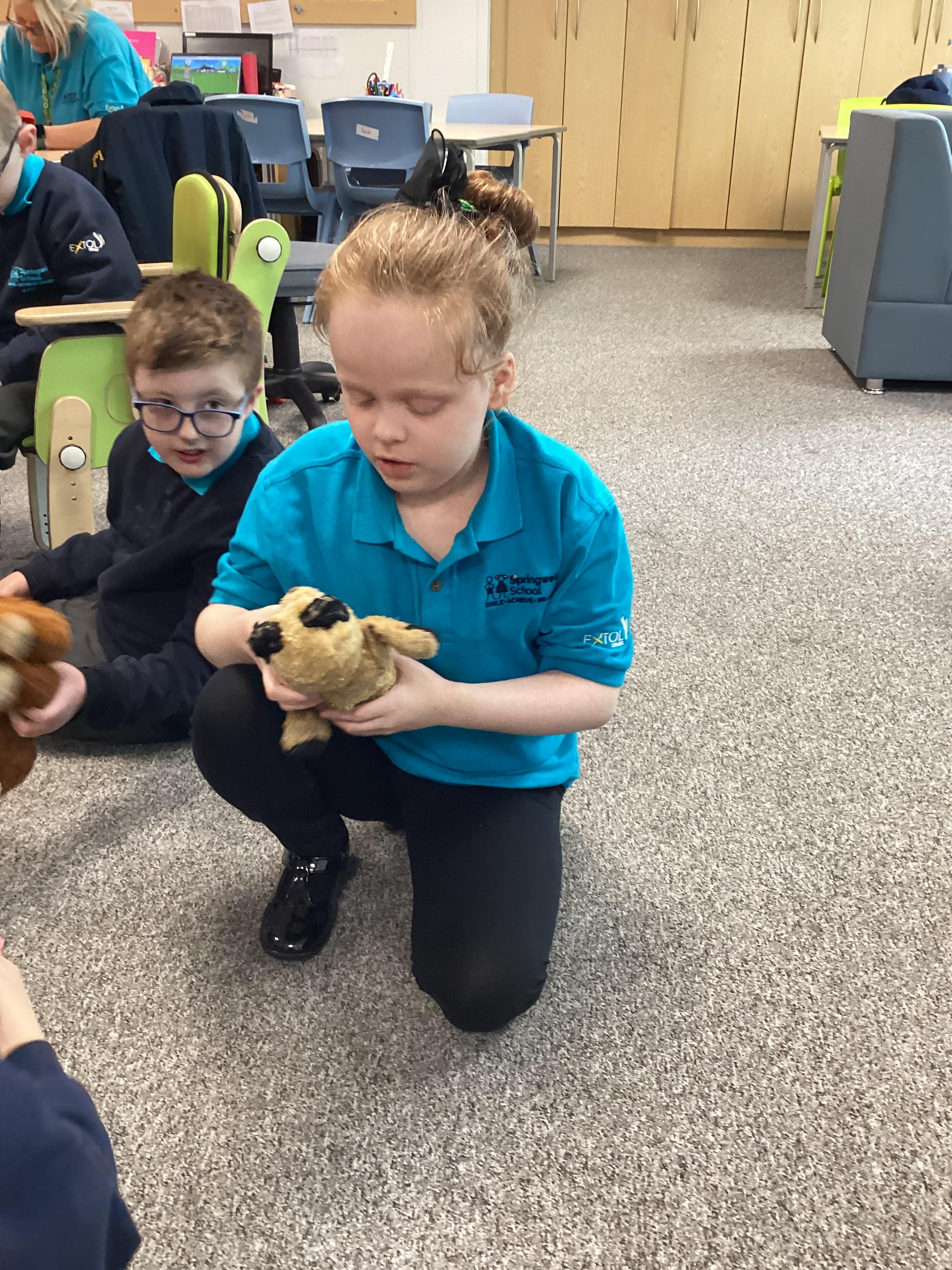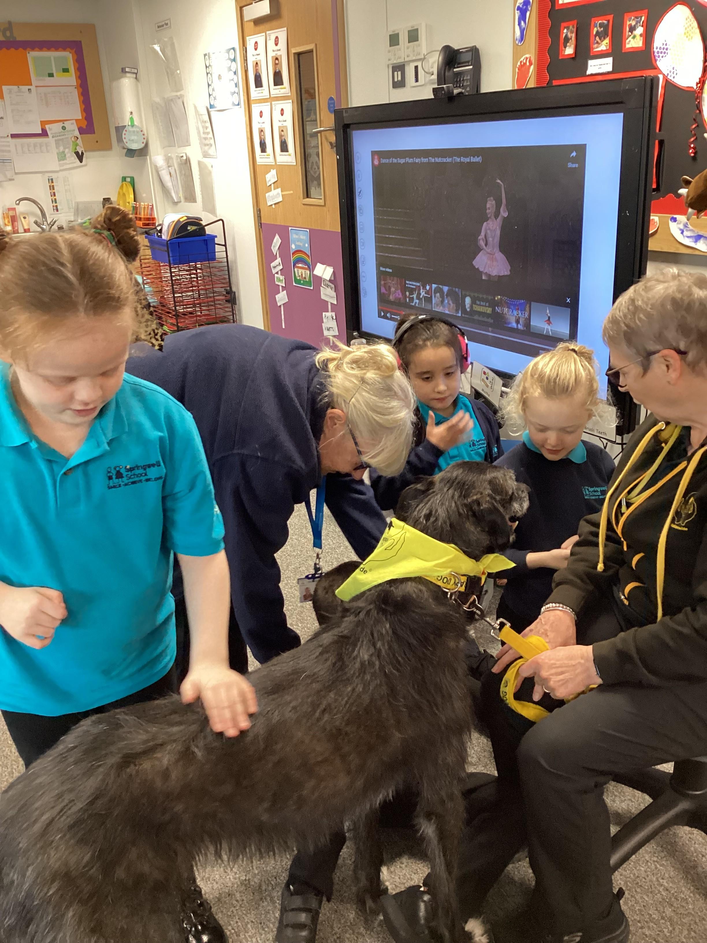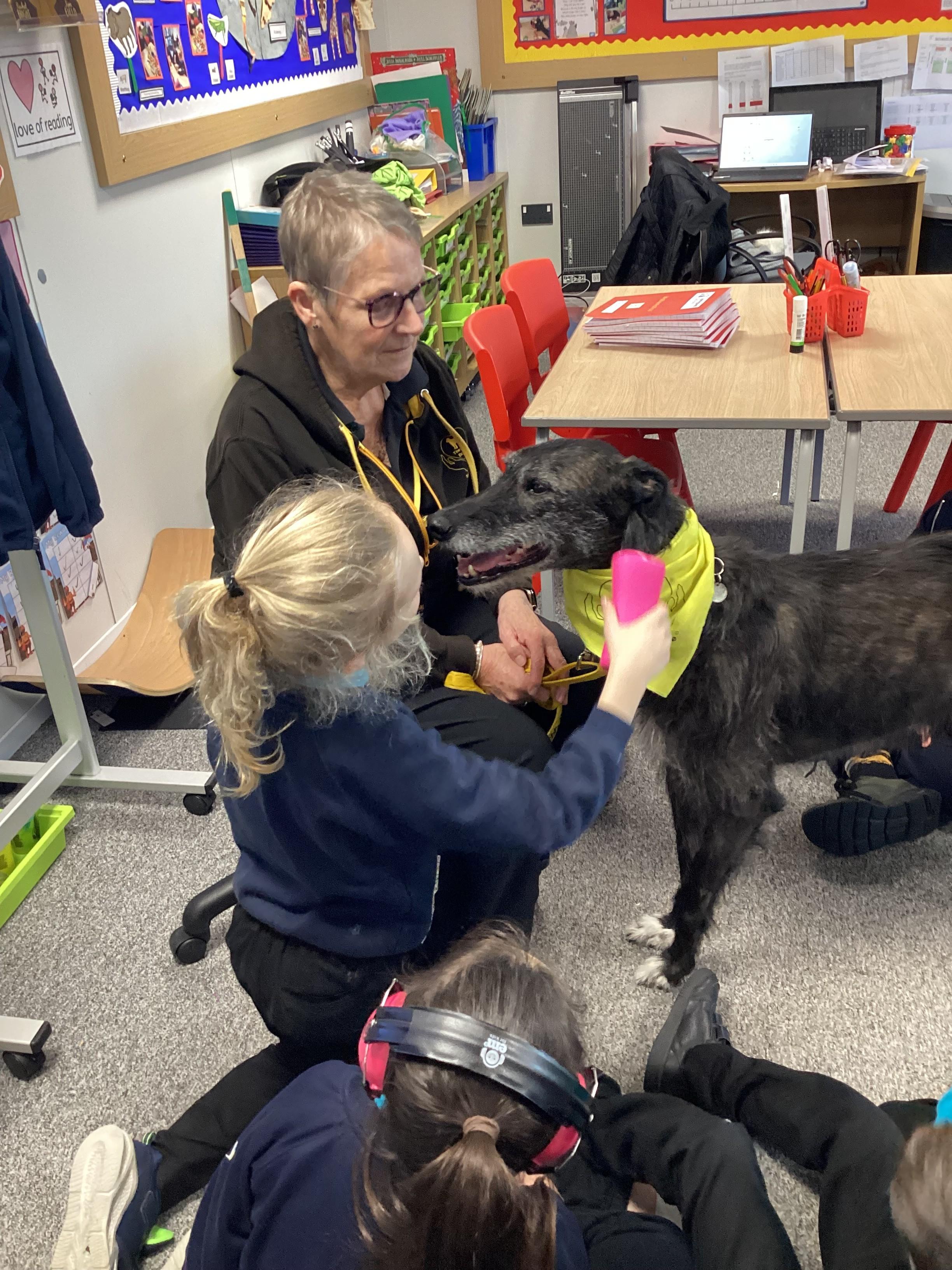 Today Panda Class had a visit from Ronnie, our PAT dog and Val. We were all pleased to see Ronnie.