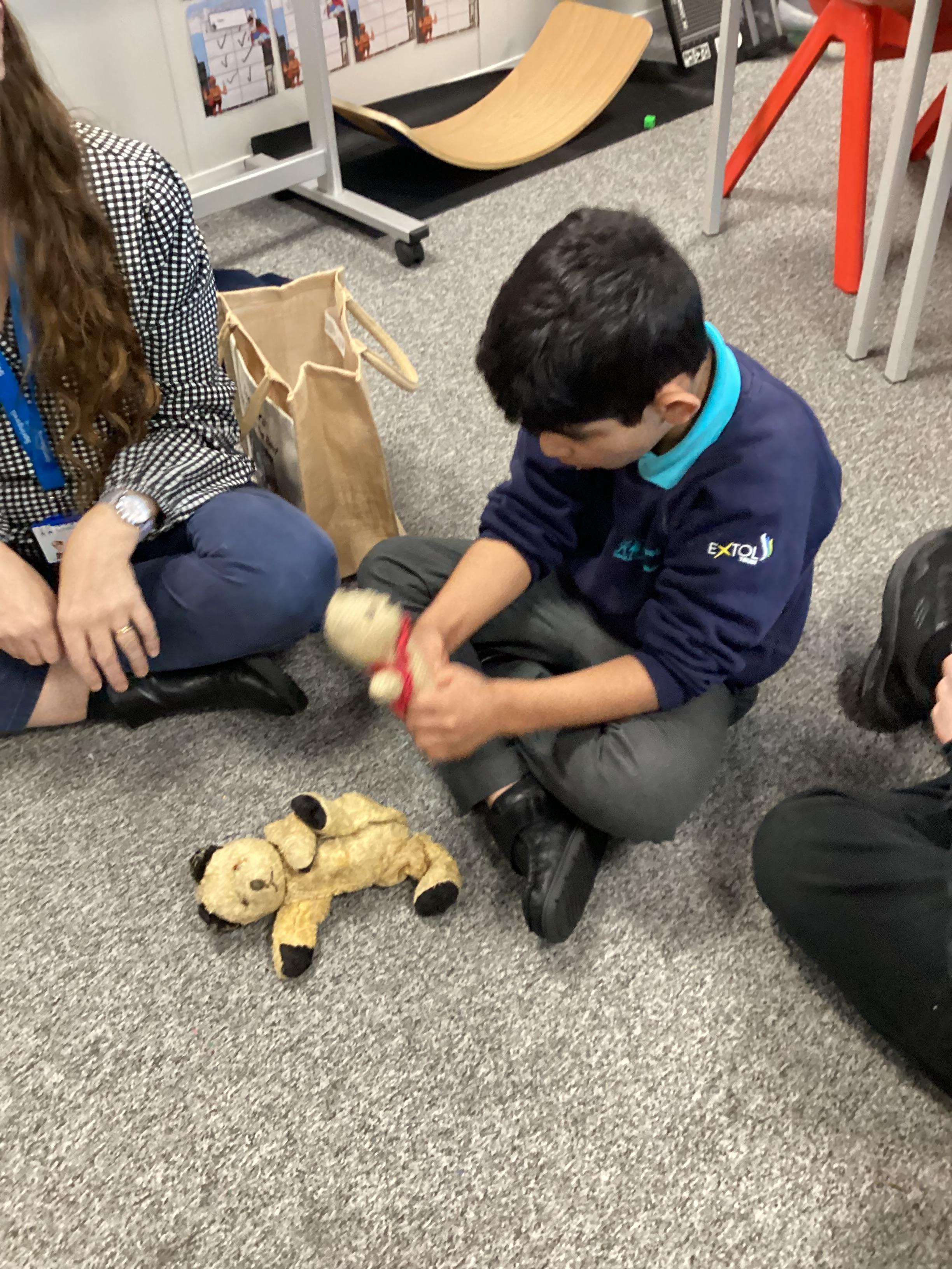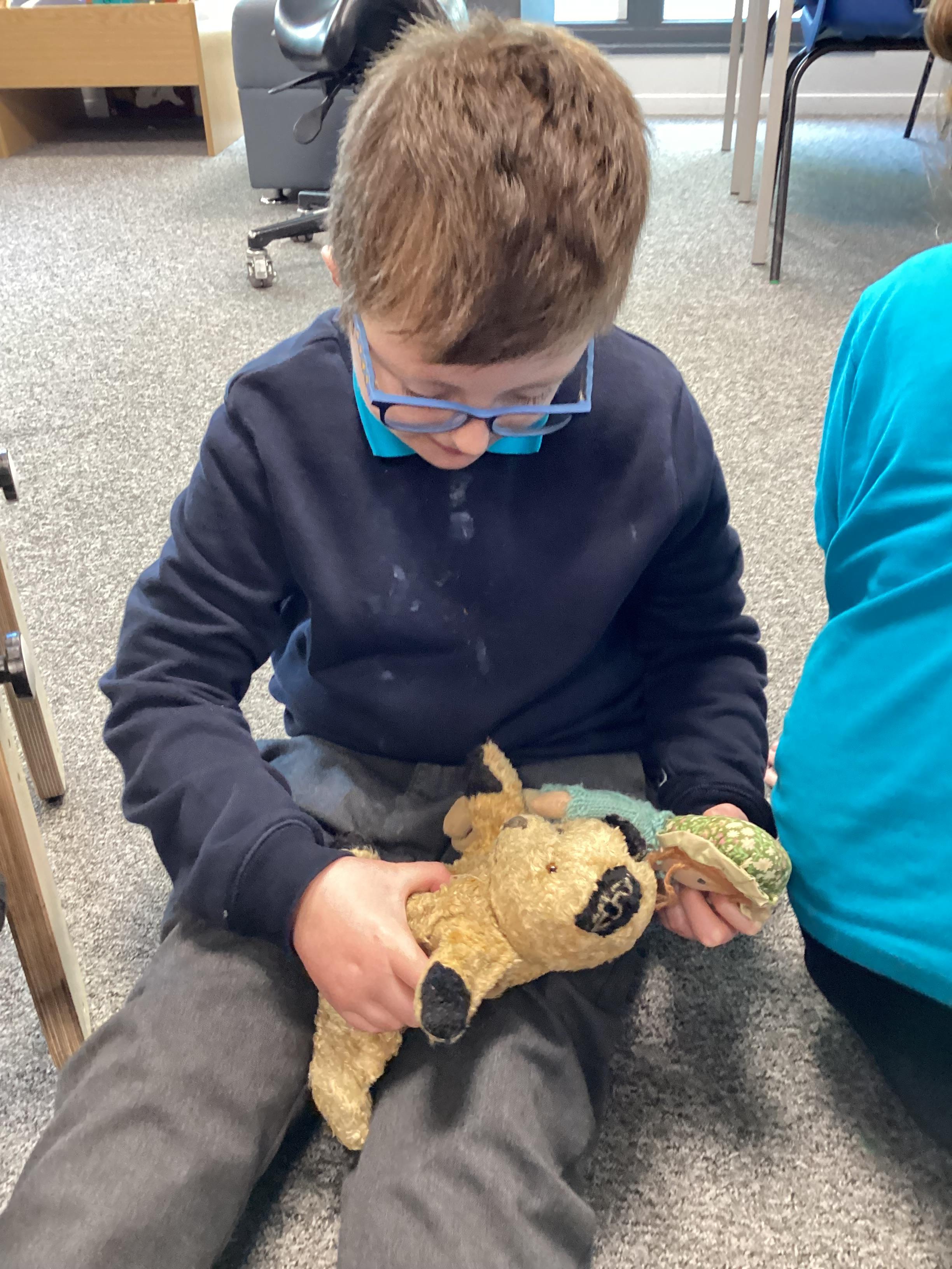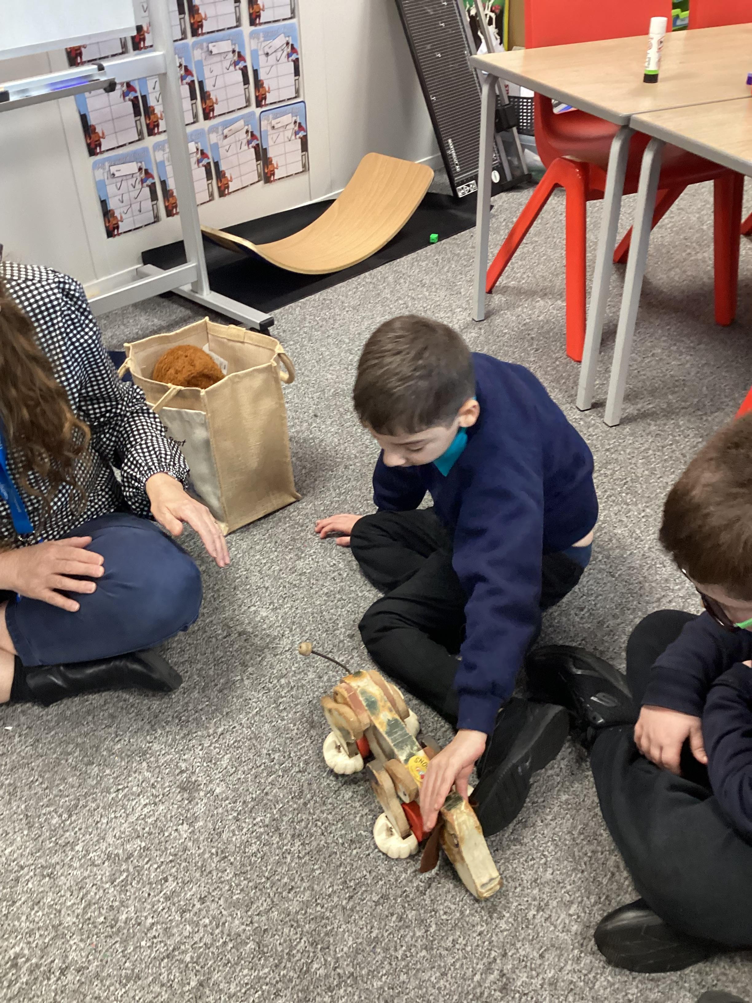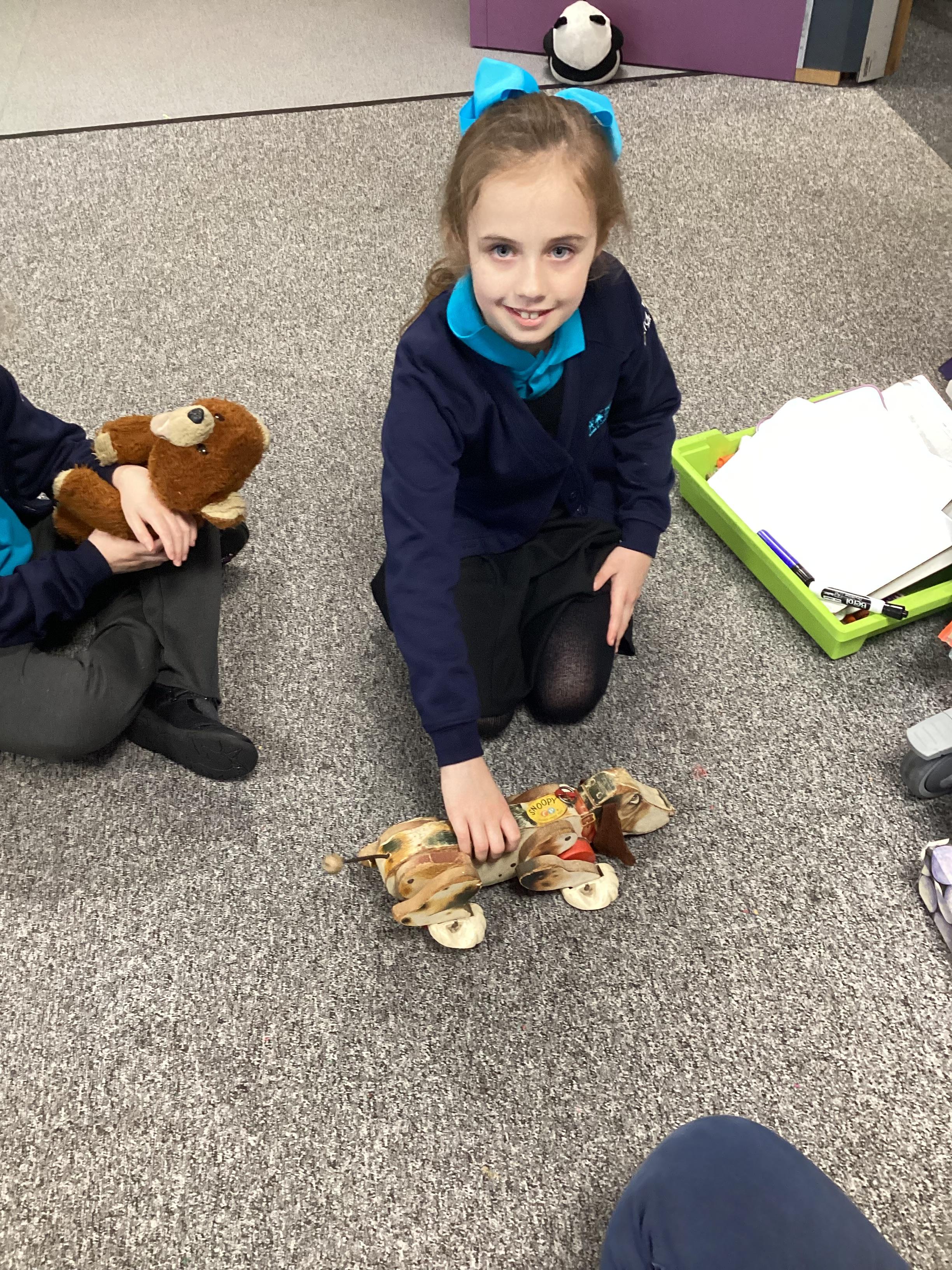 In History we have been looking at what our parents and grandparents did in the past for entertainment. We played with Janis' toys from when she was a little girl. We enjoyed playing with Snoopy the dog.