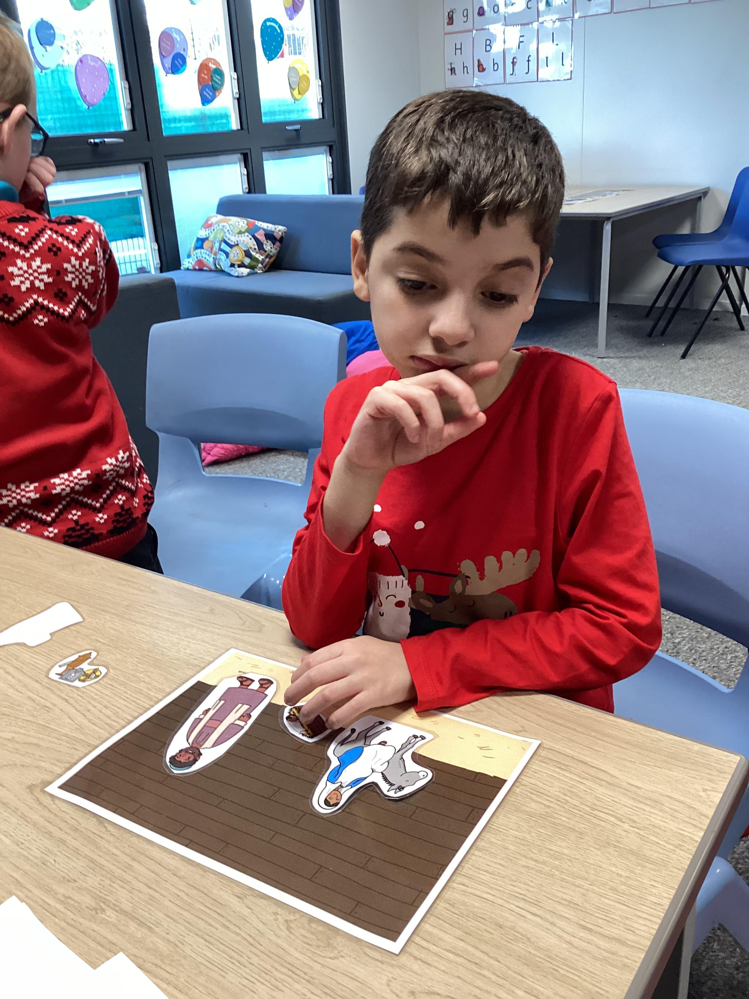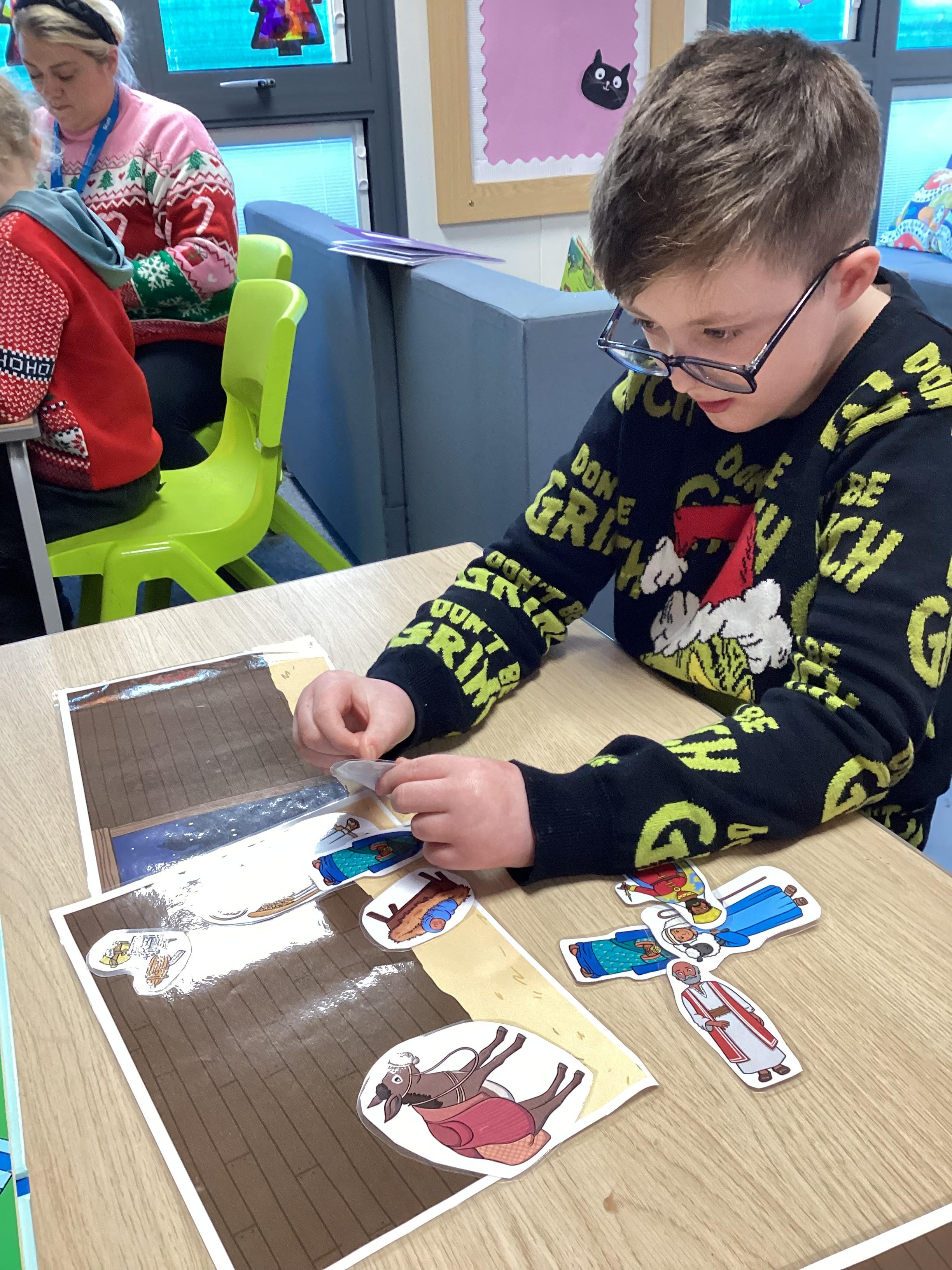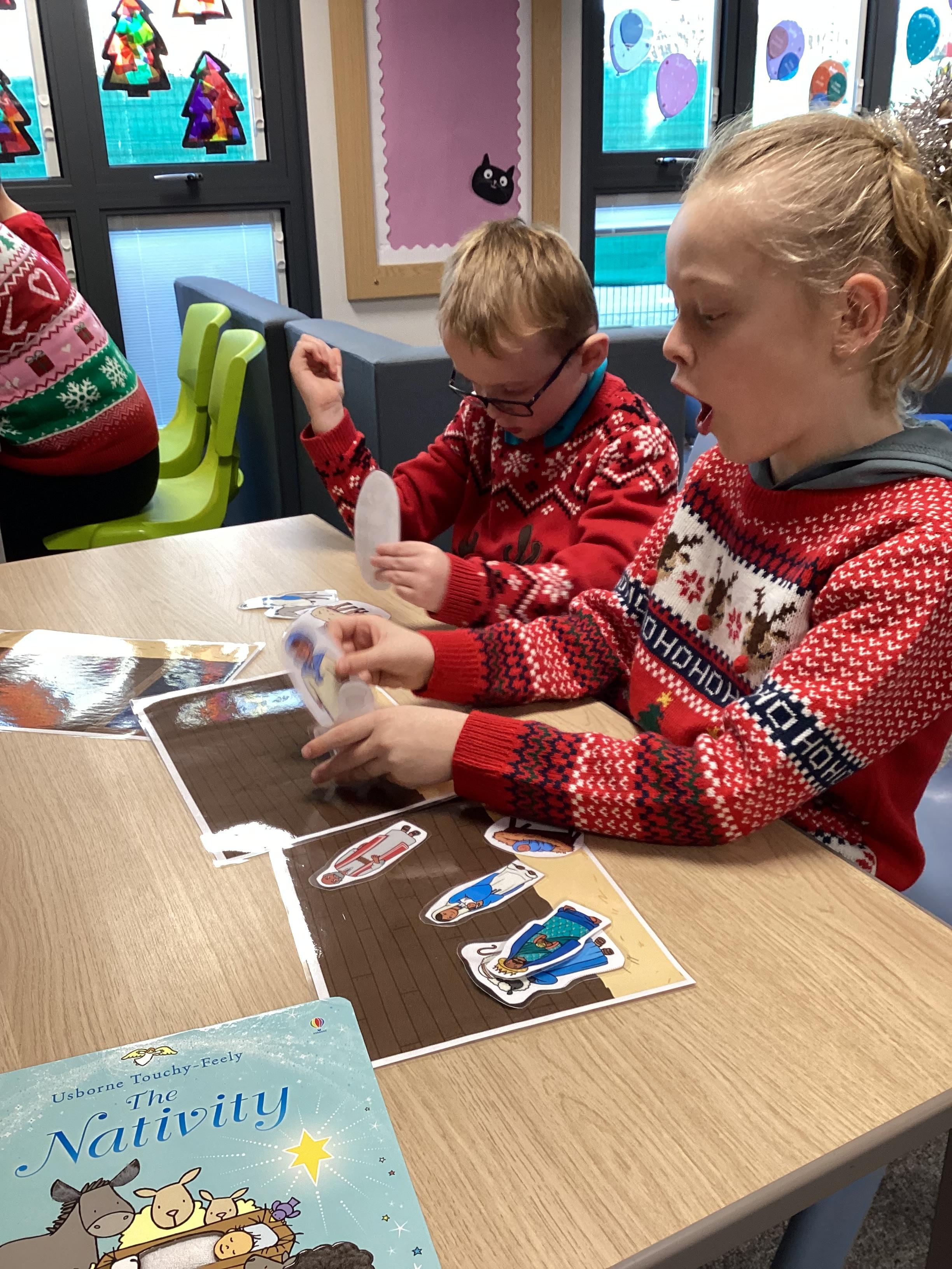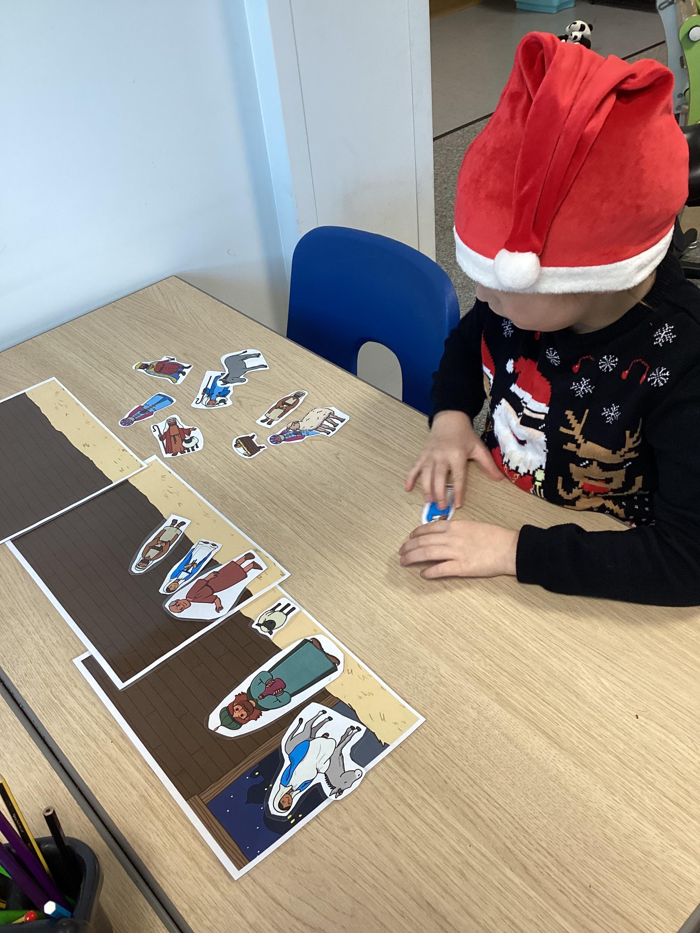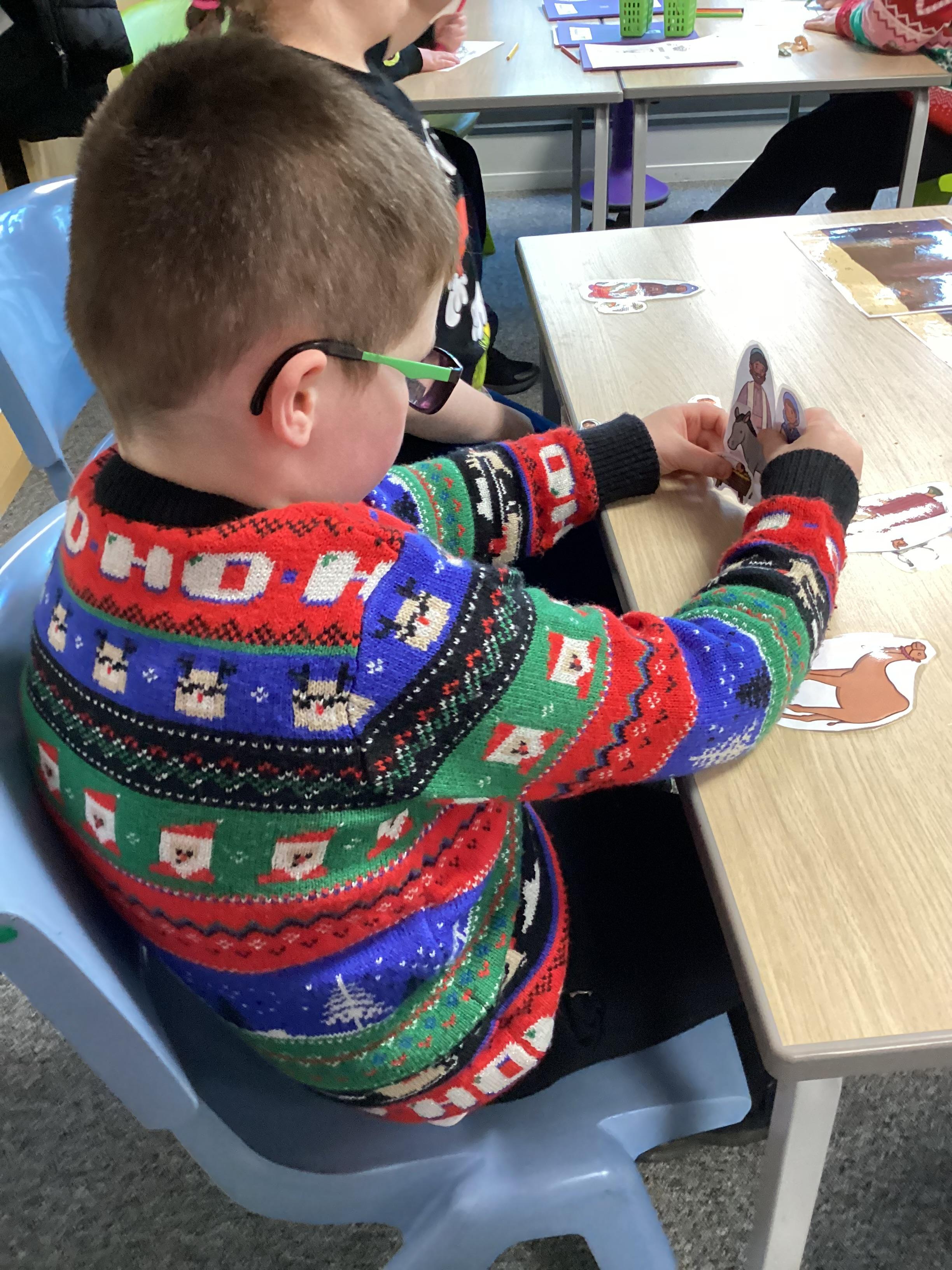 In RE, we have learnt about the story of the Nativity. We talked about the people in the story , Mary, Joseph and Baby Jesus. We learnt the Makaton signs for them. We used some small world characters to retell the story of the Nativity.