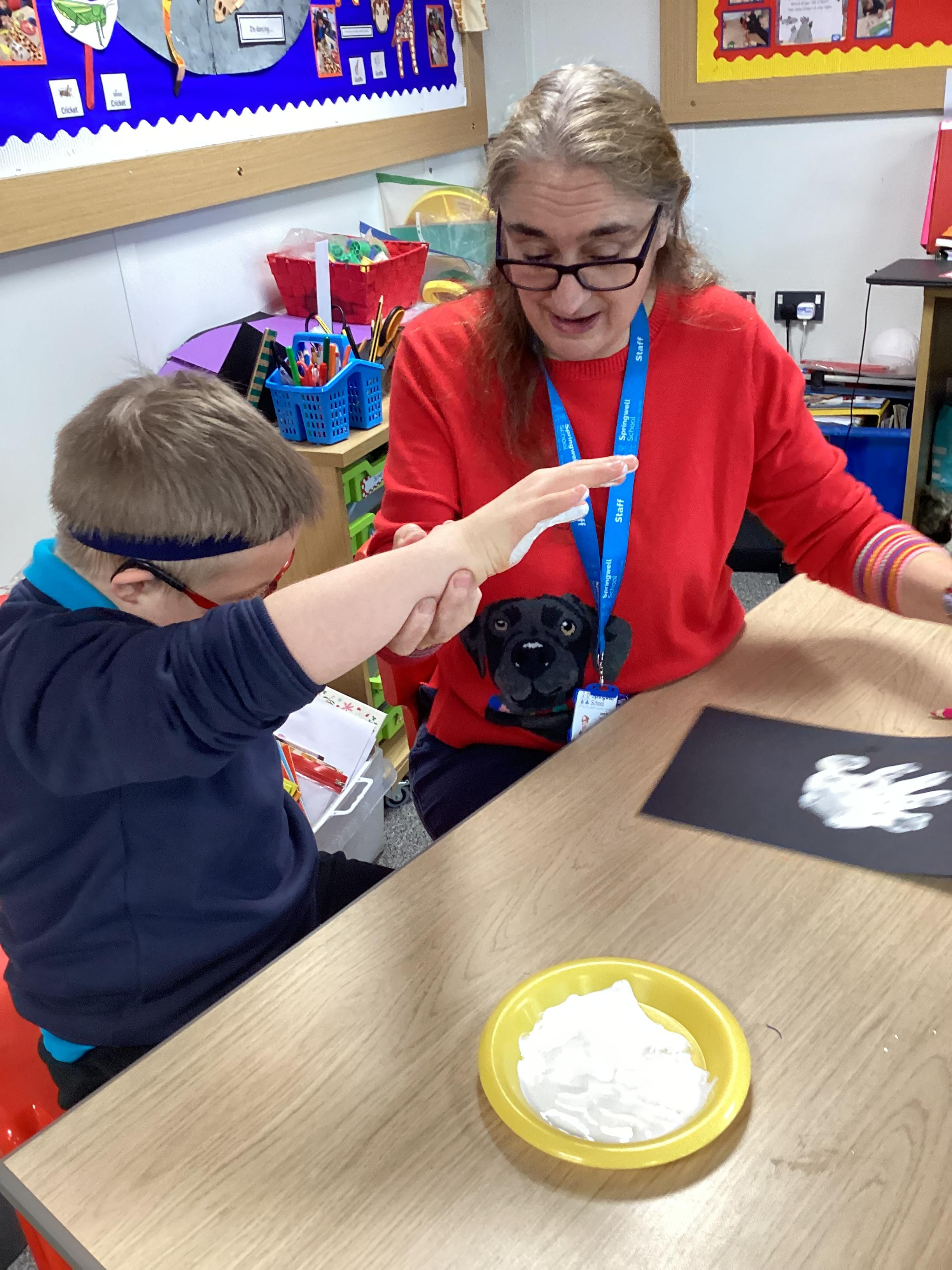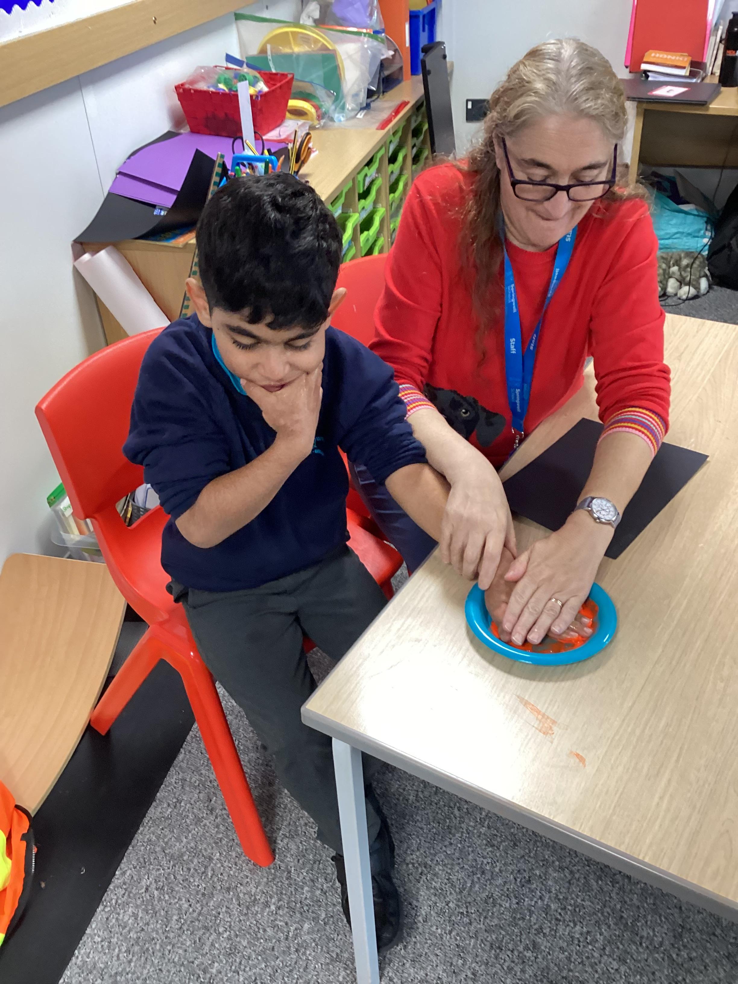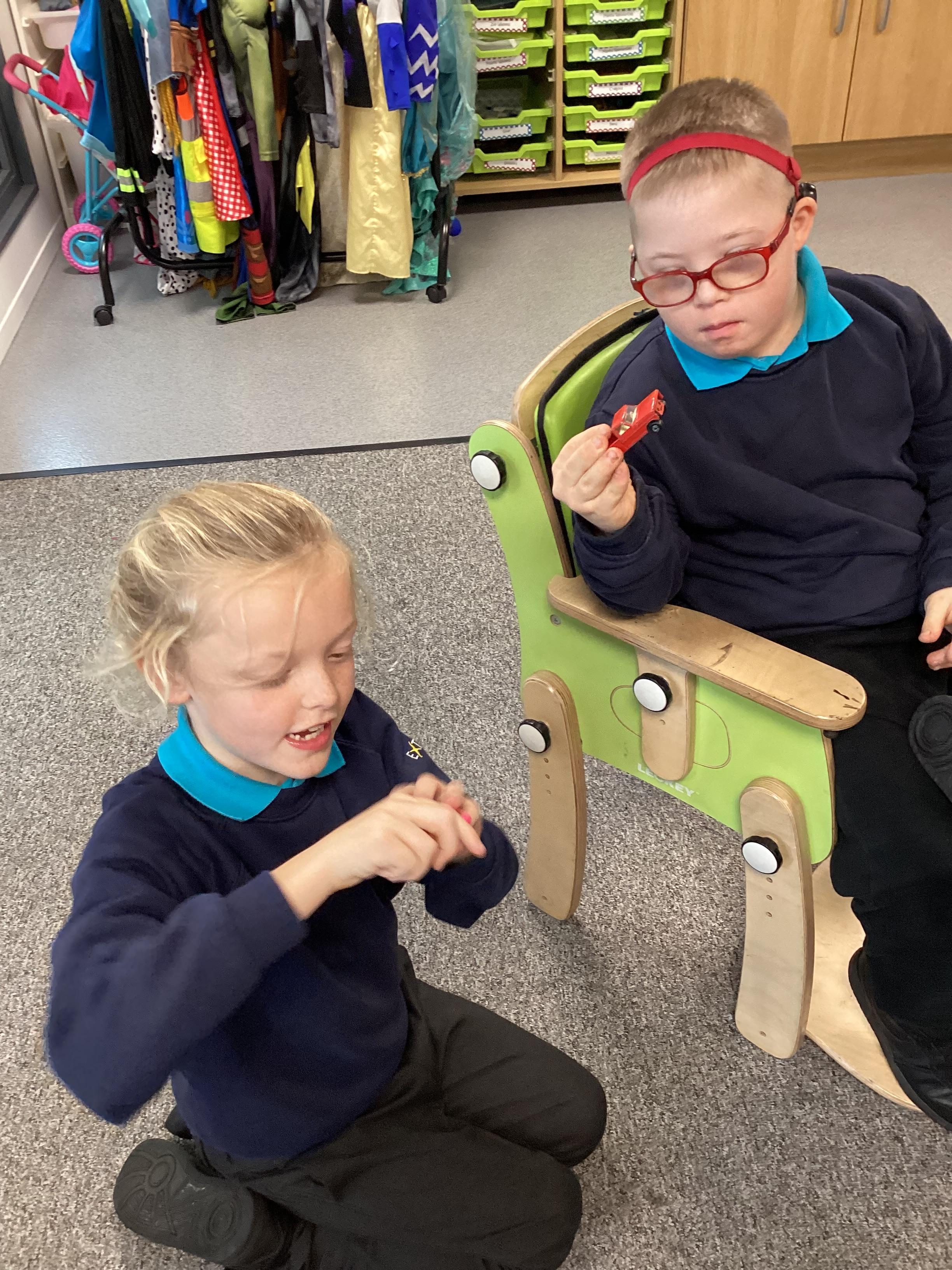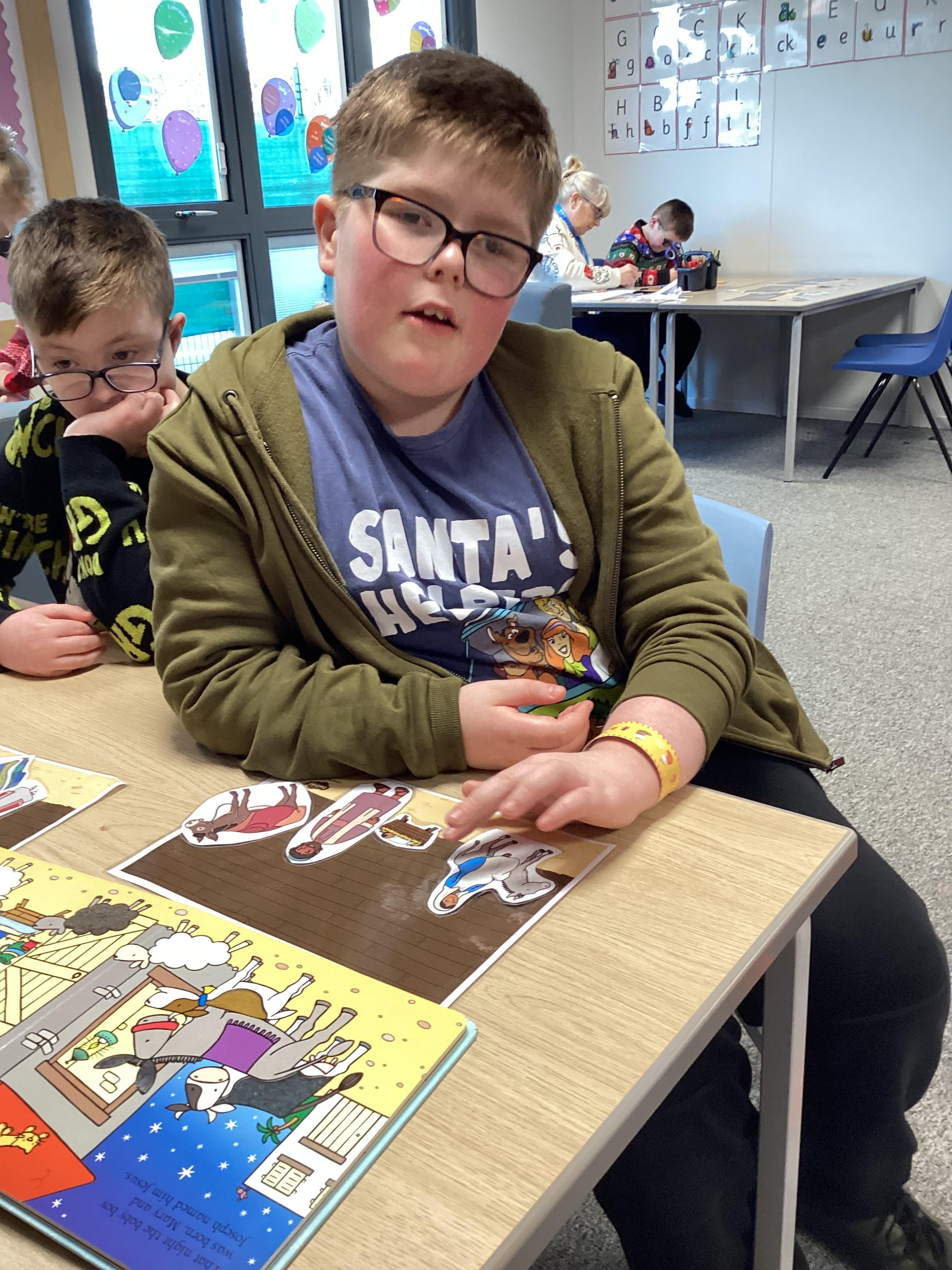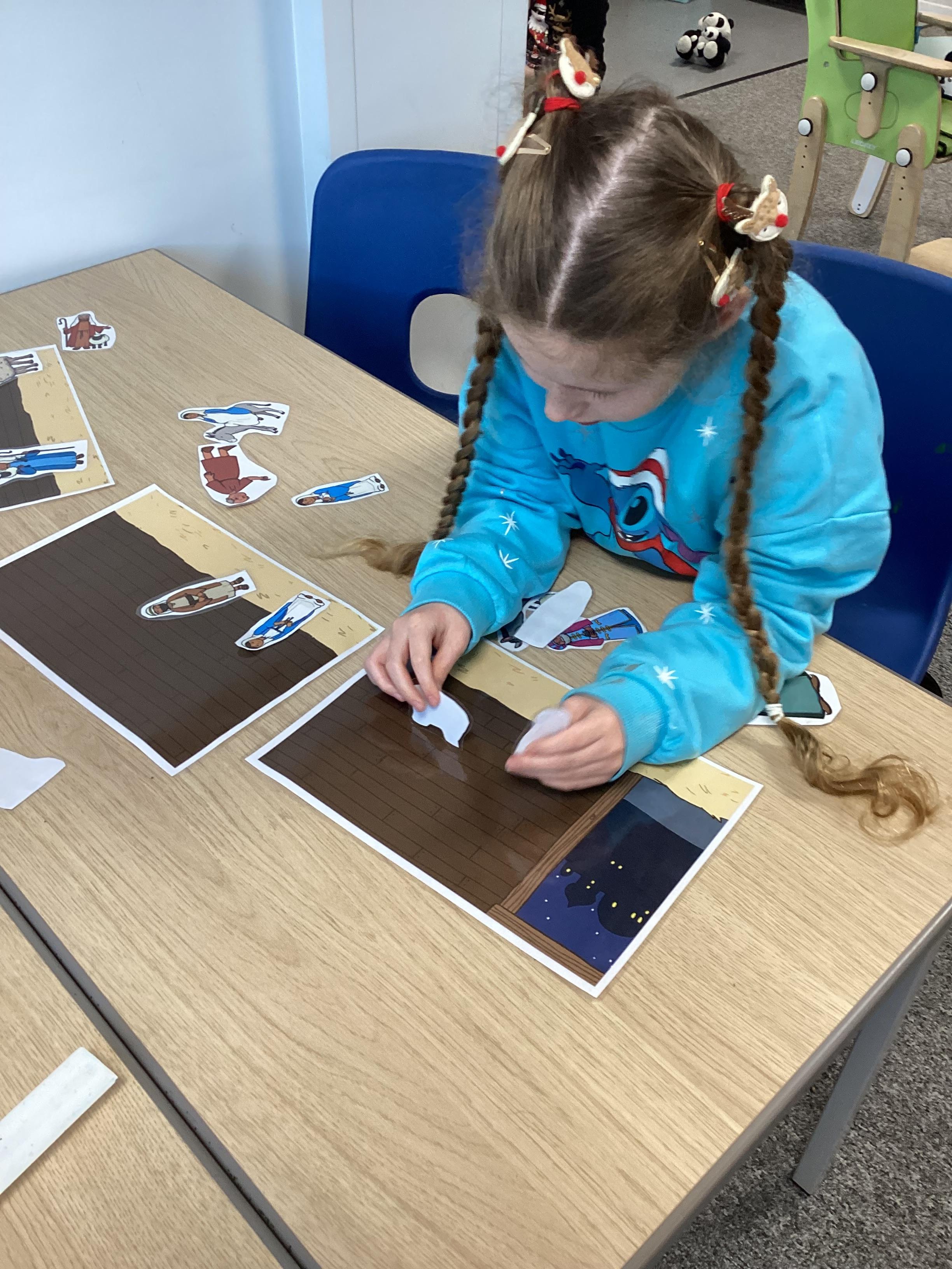 In RE, we have learnt about the story of the Nativity. We talked about the people in the story , Mary, Joseph and Baby Jesus. We learnt the Makaton signs for them. We used some small world characters to retell the story of the Nativity.