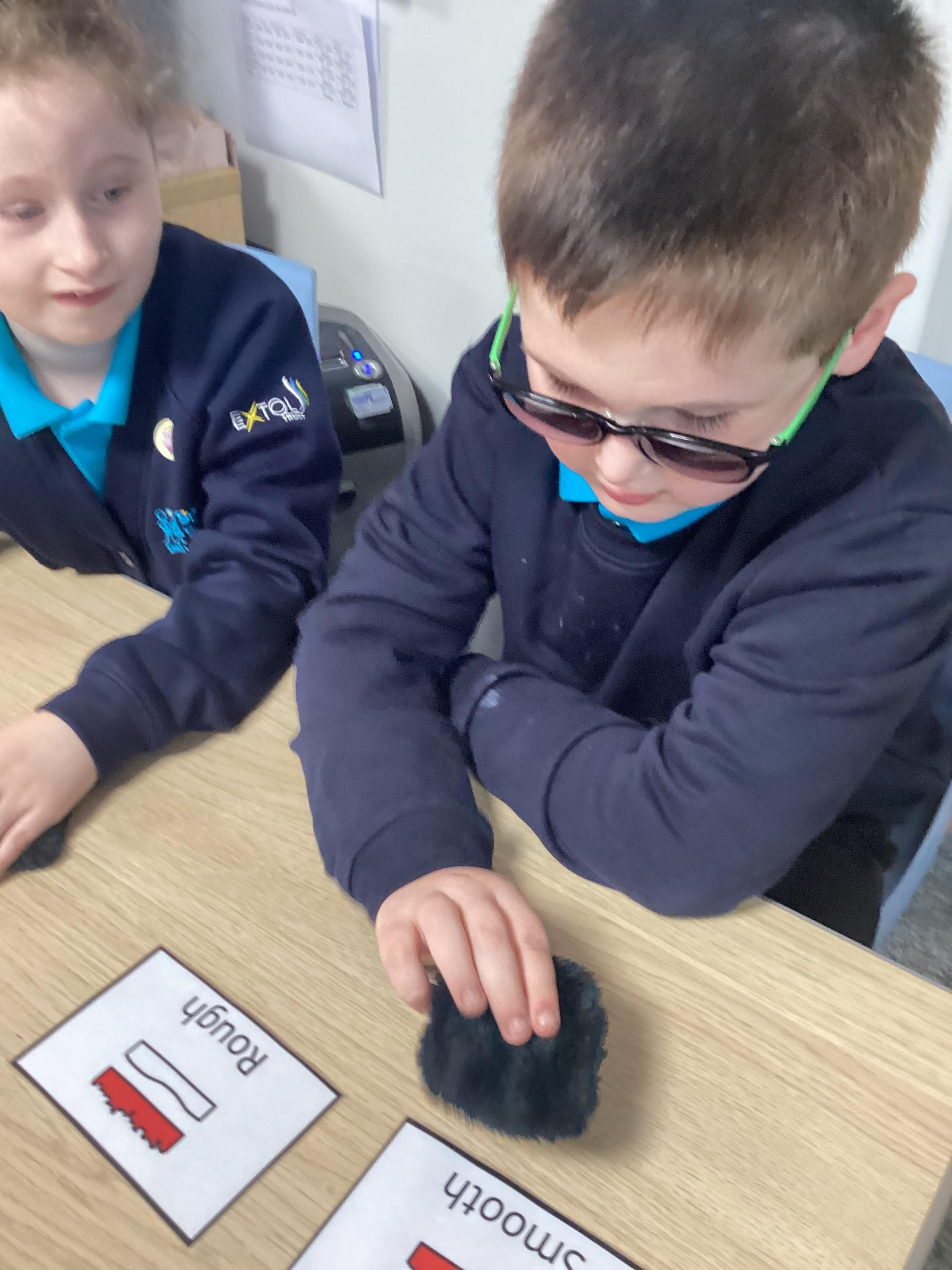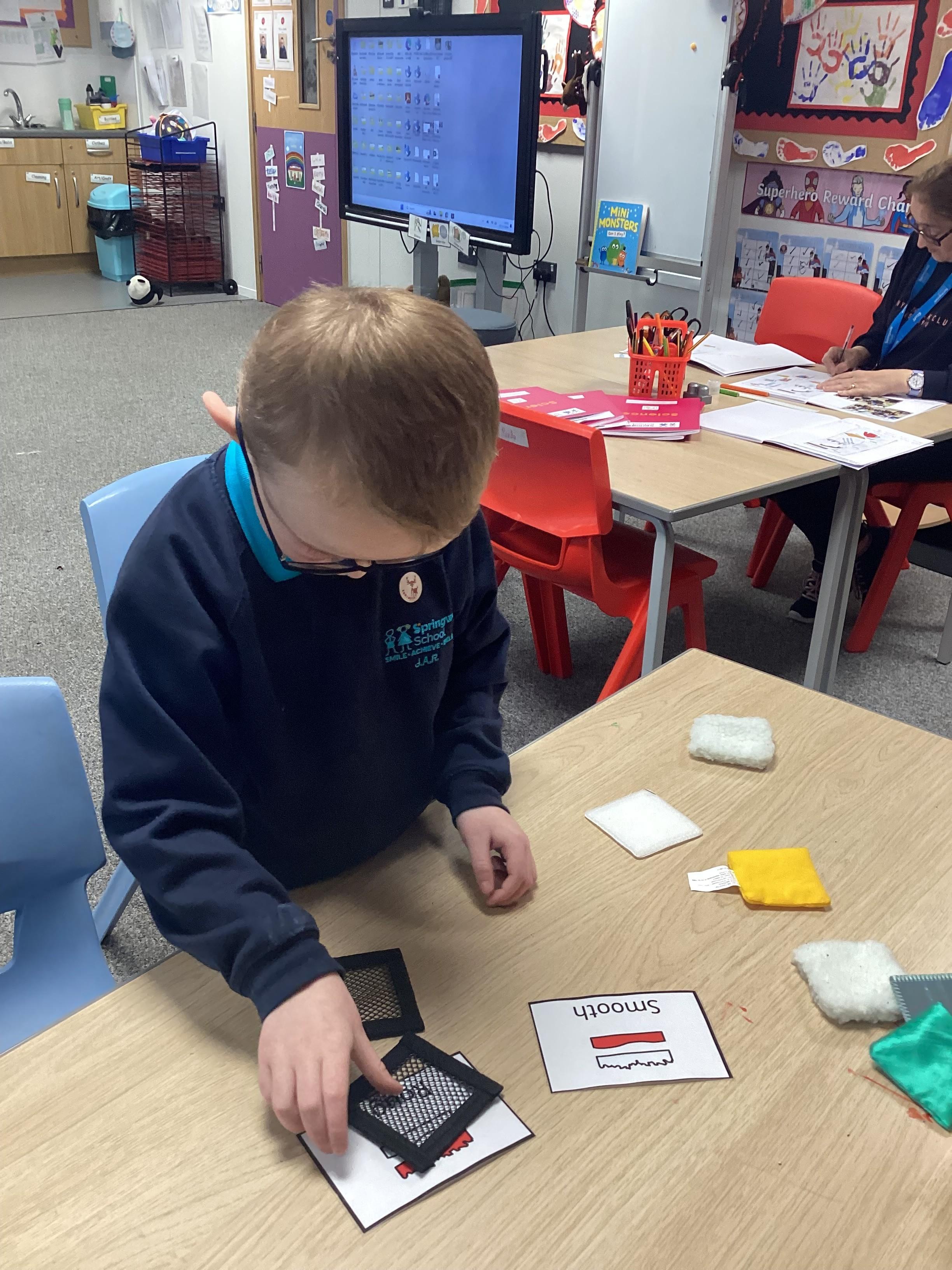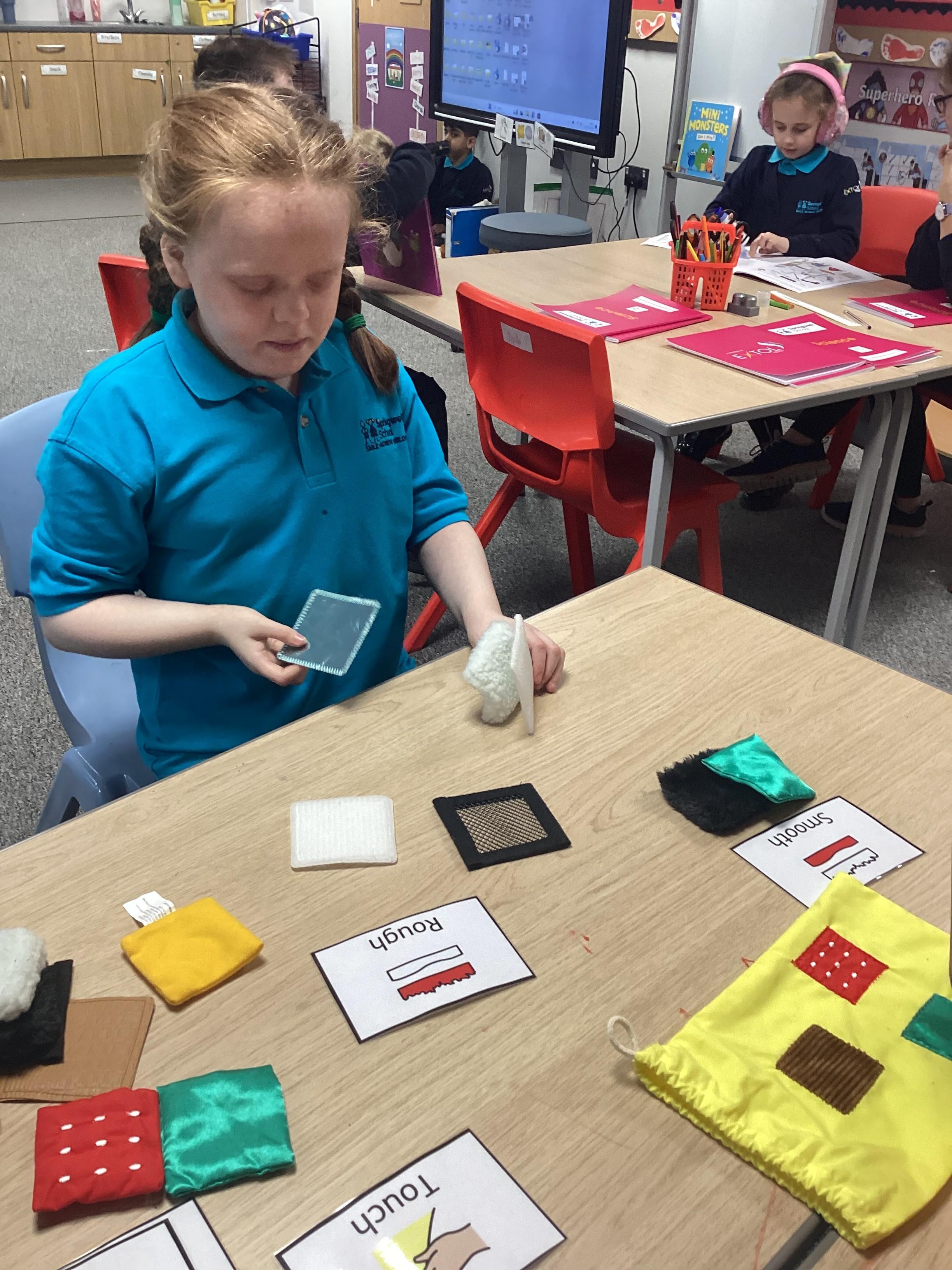 Monday 23rd September 2024: Science. Our Science topic is materials. We have used our sense of touch to explore materials and decide if they were hard or soft or rough and smooth.