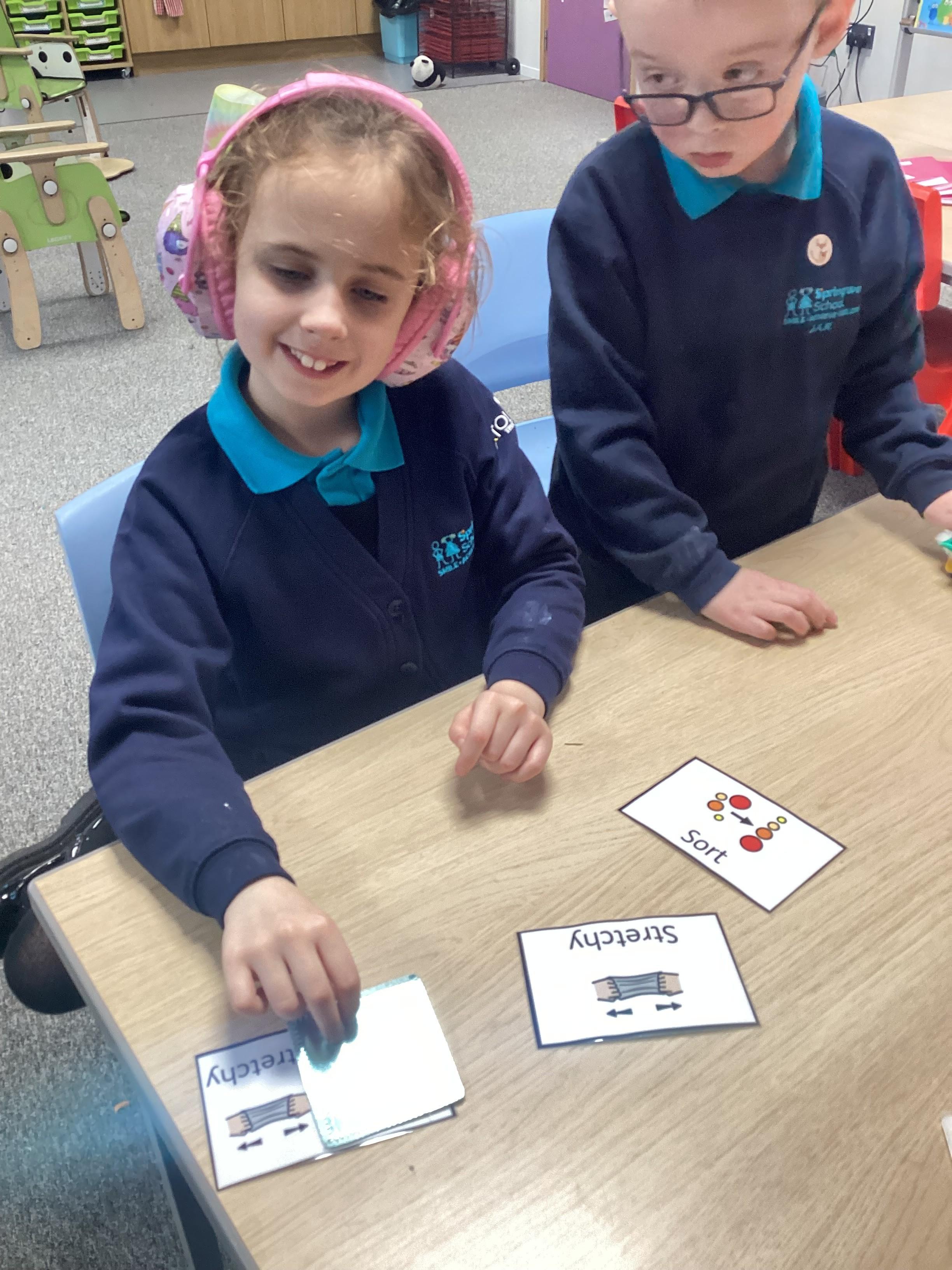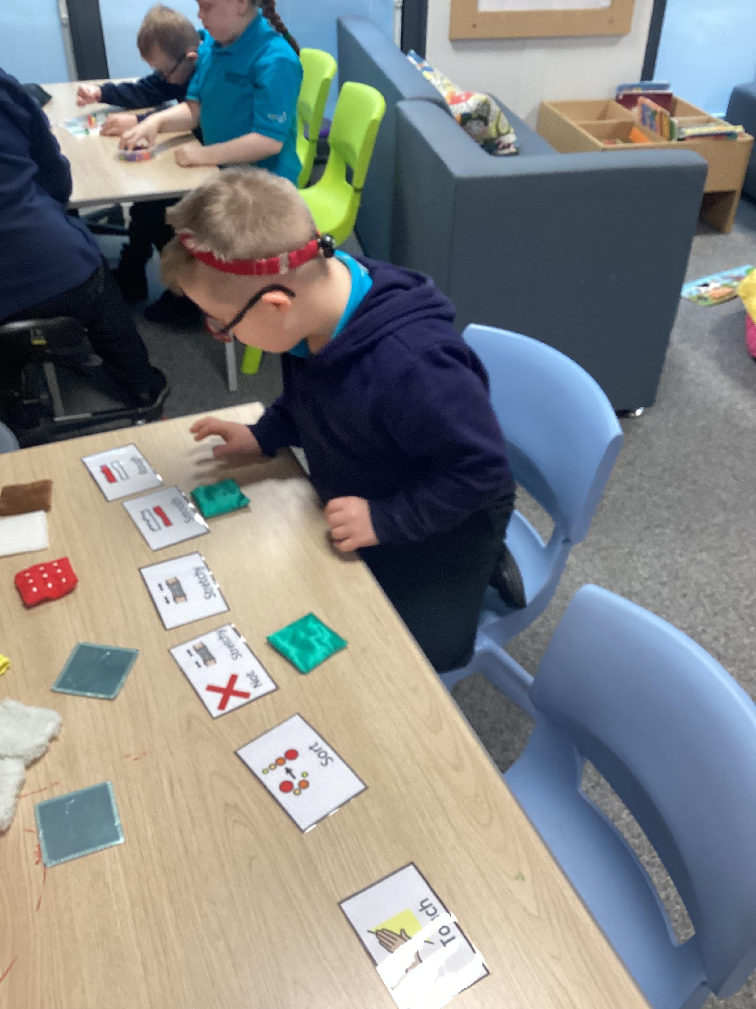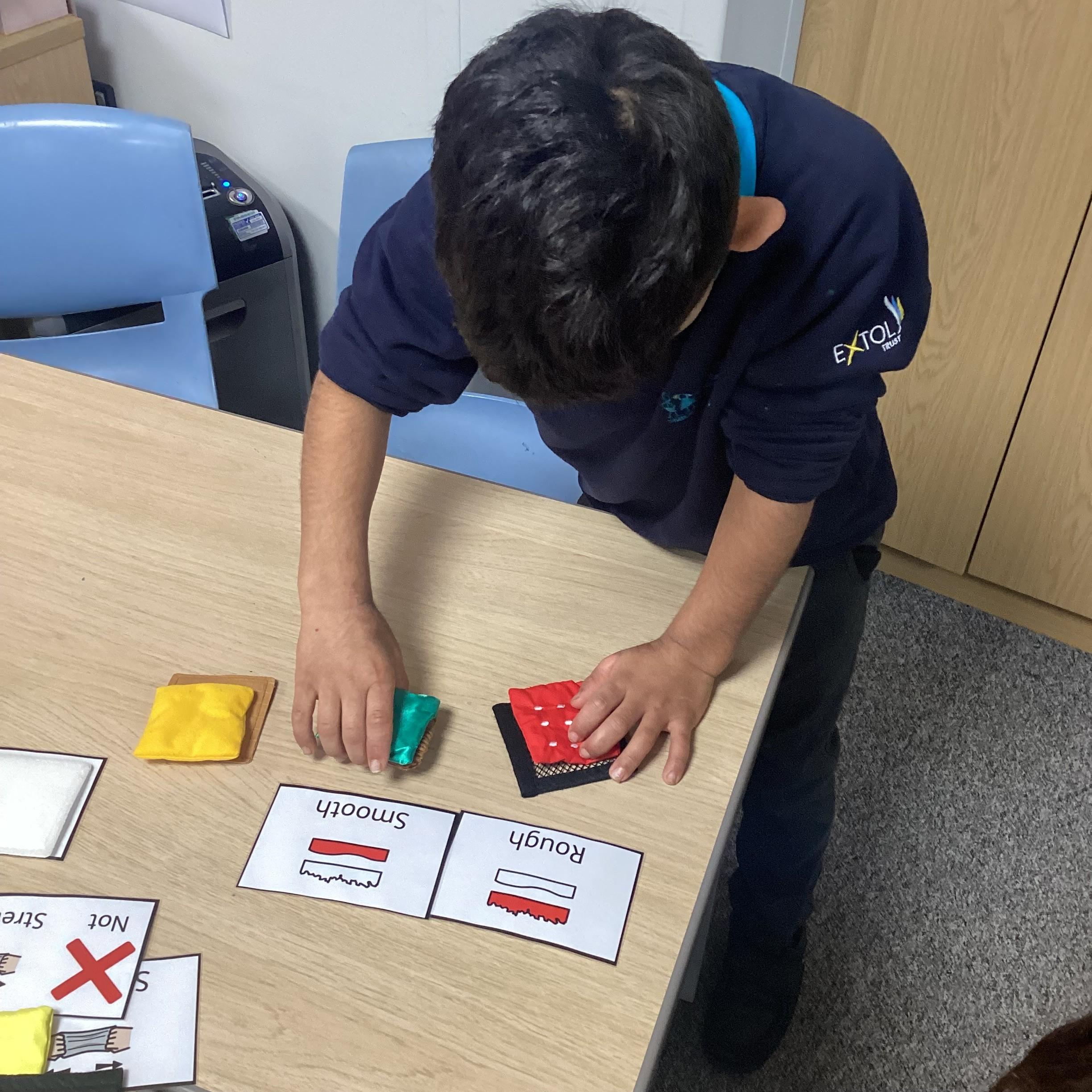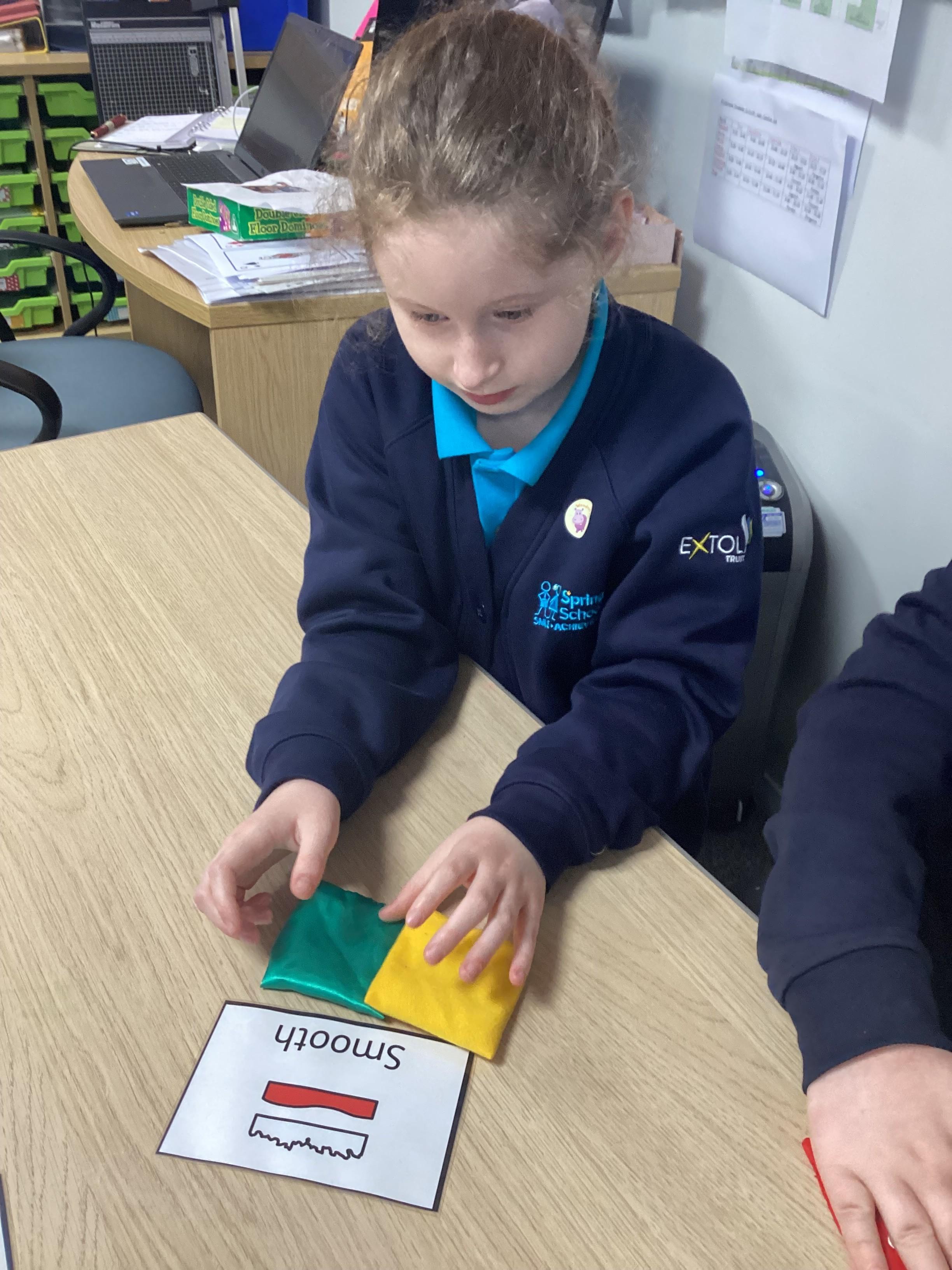 Monday 23rd September 2024: Science. Our Science topic is materials. We have used our sense of touch to explore materials and decide if they were hard or soft or rough and smooth.