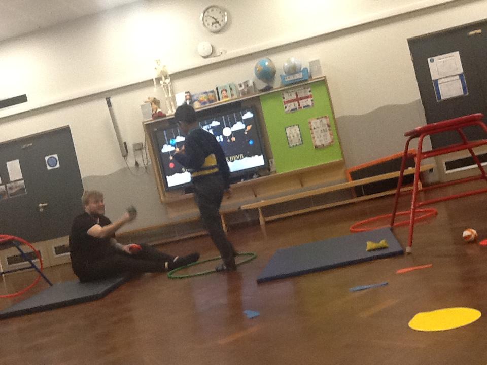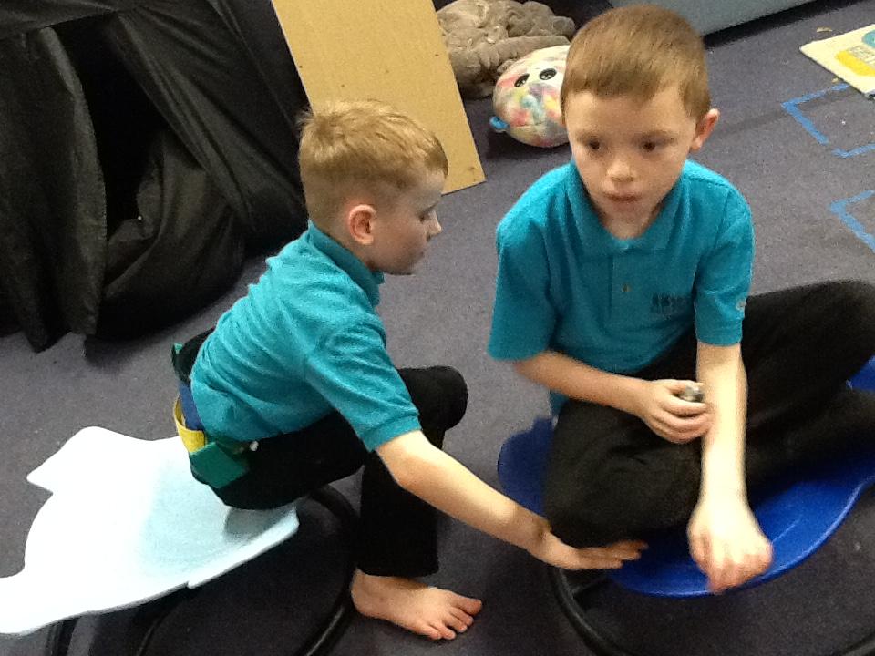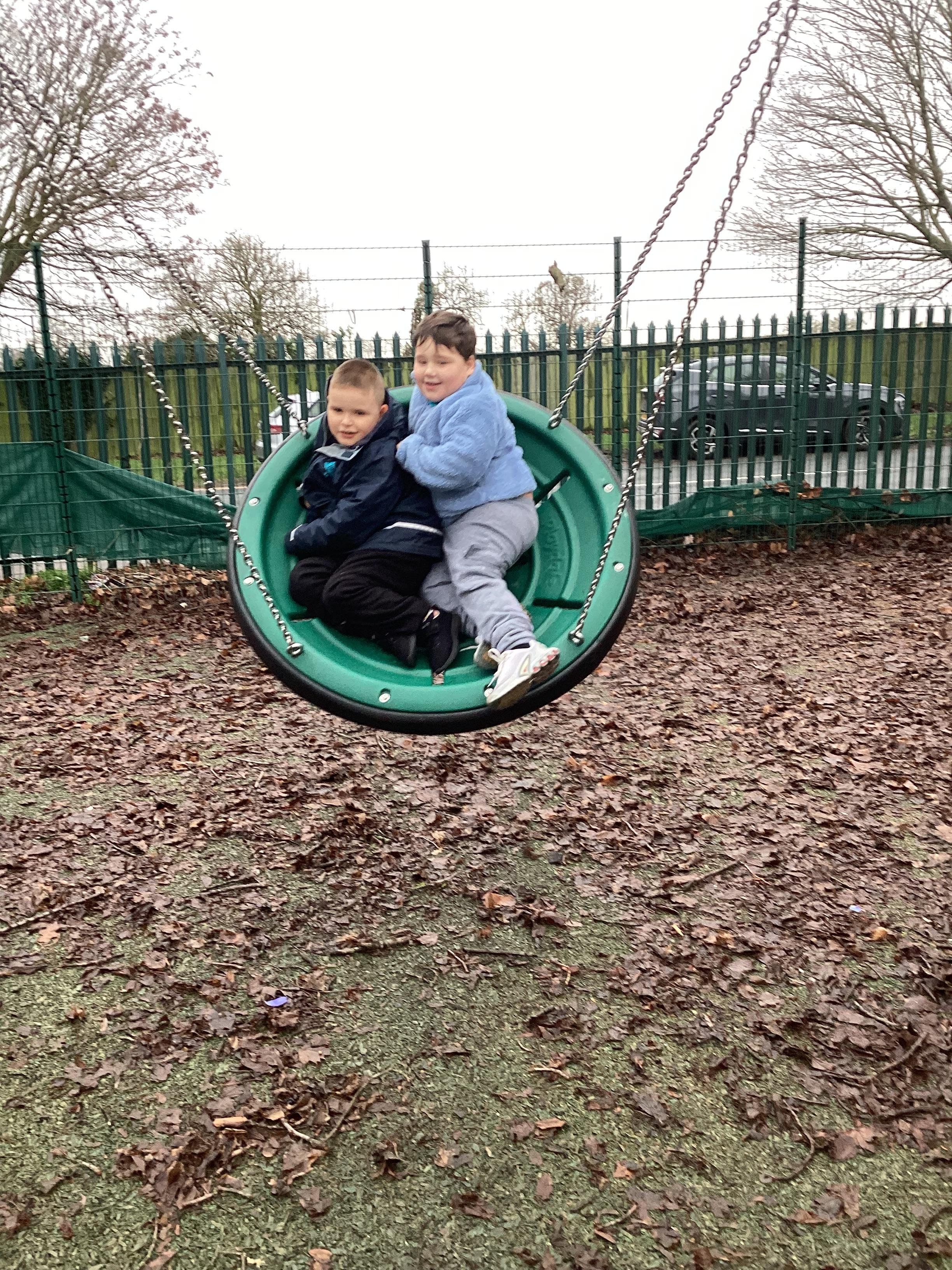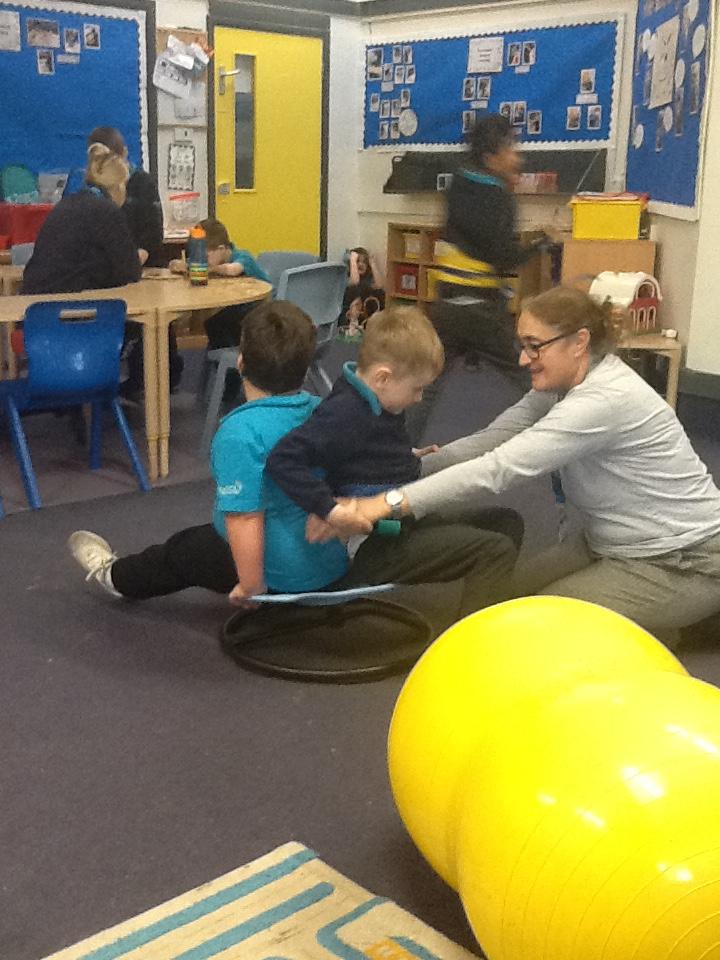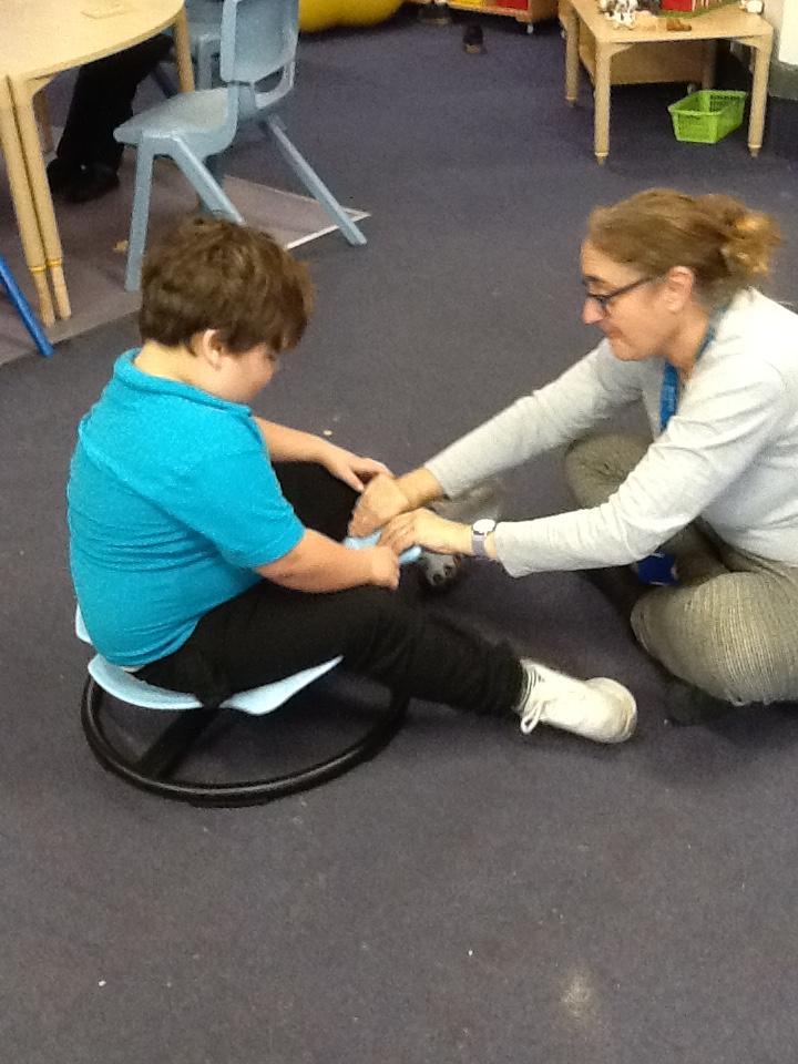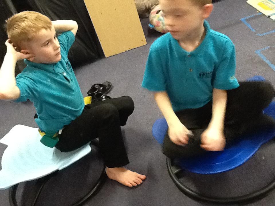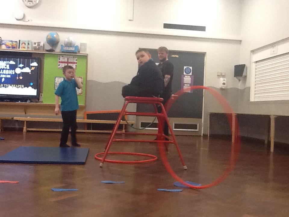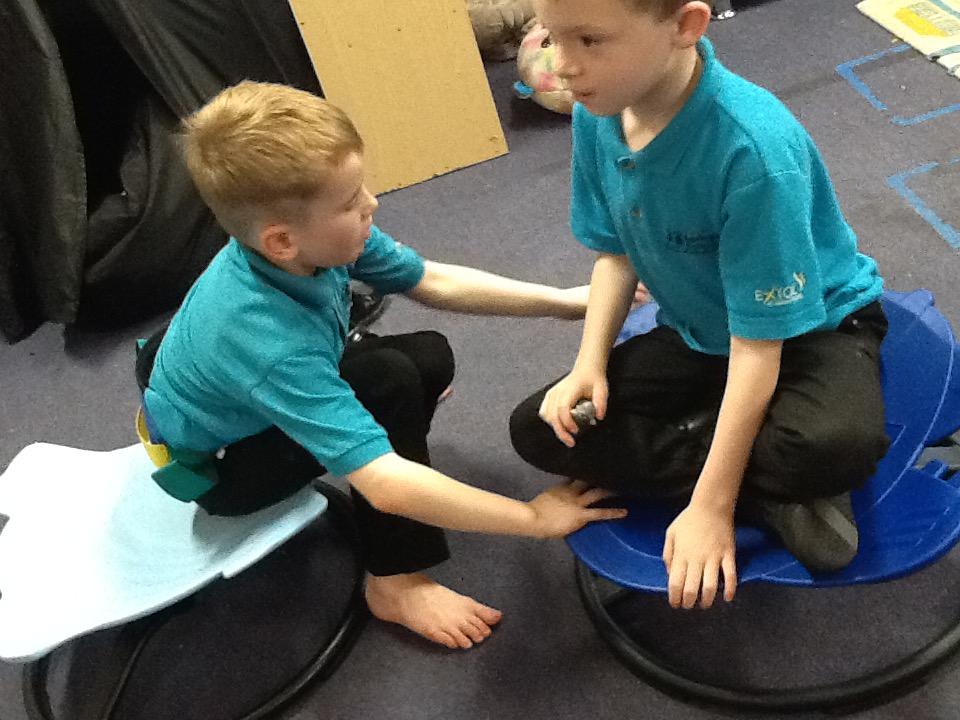 Teamwork... we like to help to help each other. Fun on the spinning chairs, helping each other spin. Well done Jaguars.