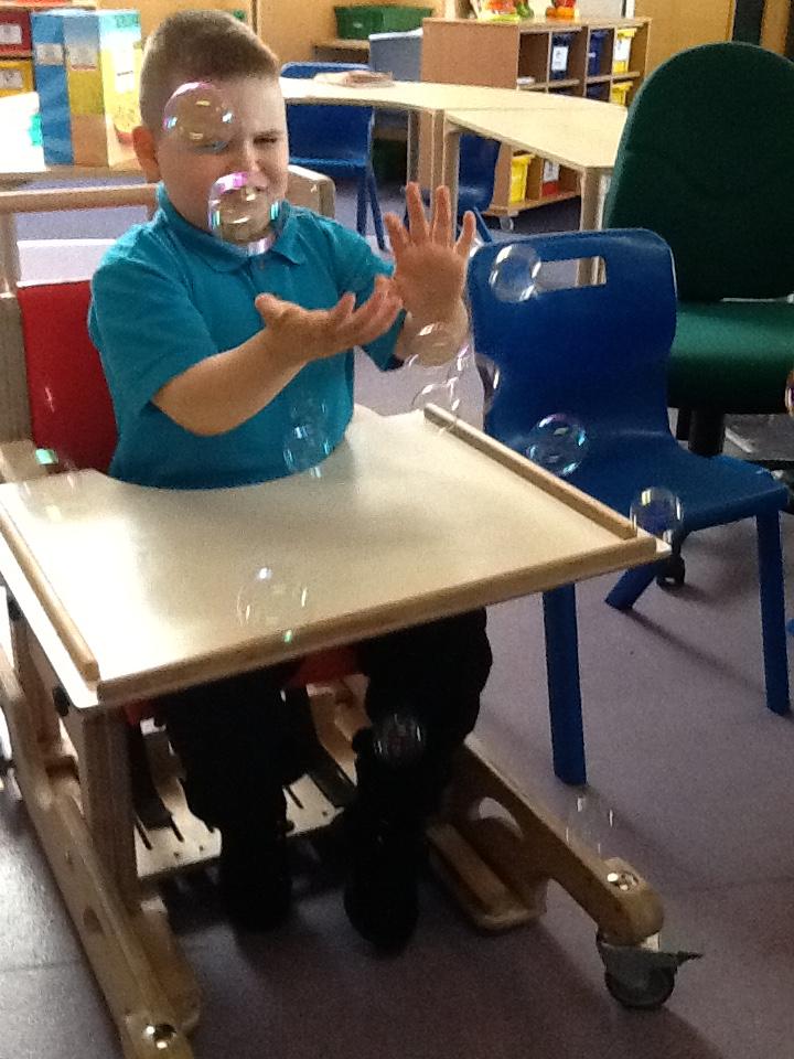 Attention Autism. We enjoy bucket time every day where we sit and watch the exciting toys that come out of the bucket. One of our favourites is bubbles. We like to watch them and pop them. Pop, Pop,Pop!
