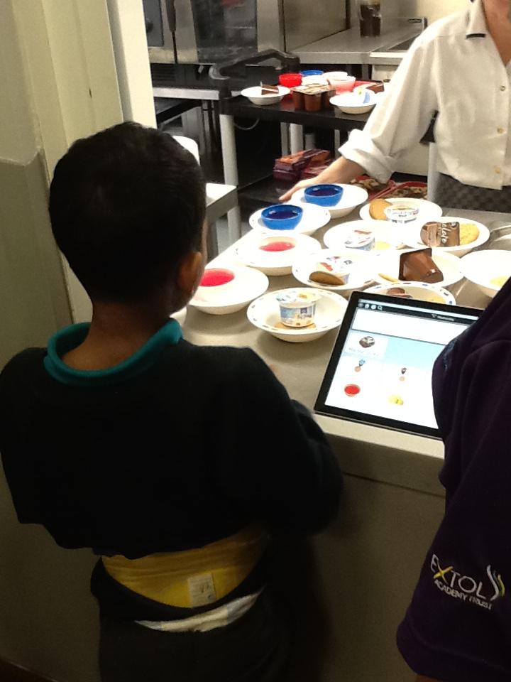 Dinner Time. We are trying different foods at dinner. We use the iPad to make our choices at the hatch.