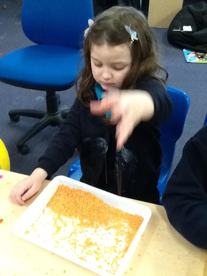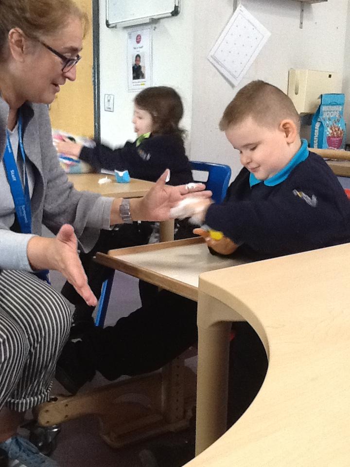 Jaguar Class love sensory play. Today, Monday 17th November we have explored shaving foam in our song 5 currant buns as well as red lentils and flour.