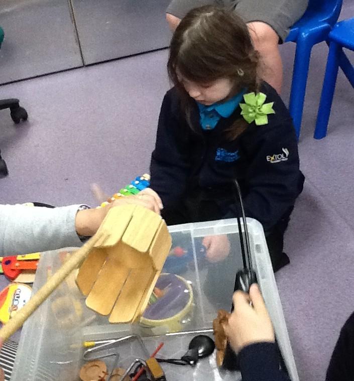 Music: We enjoyed exploring the different instruments and the sounds that they make.