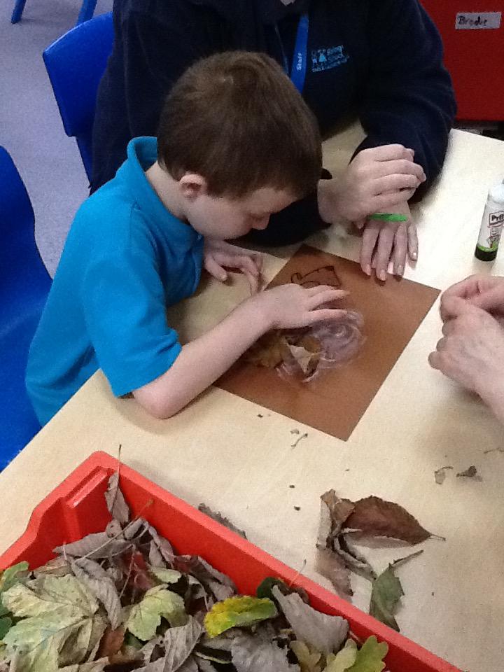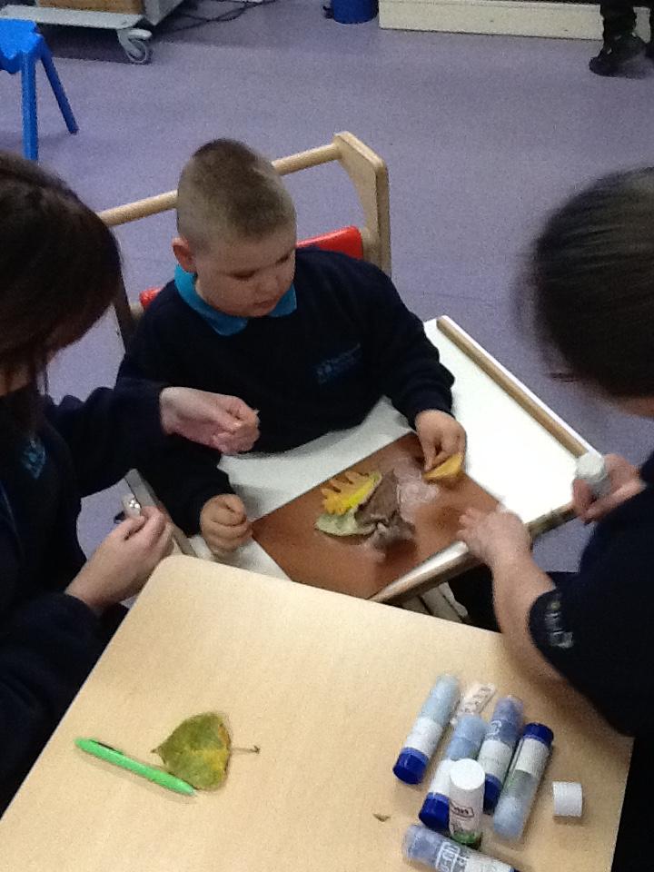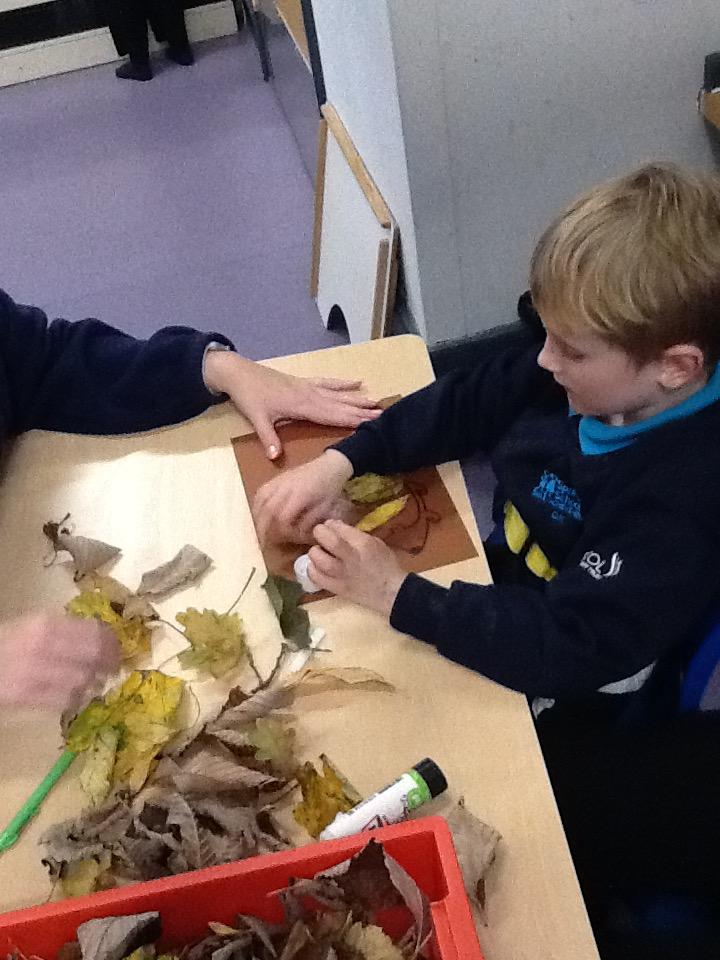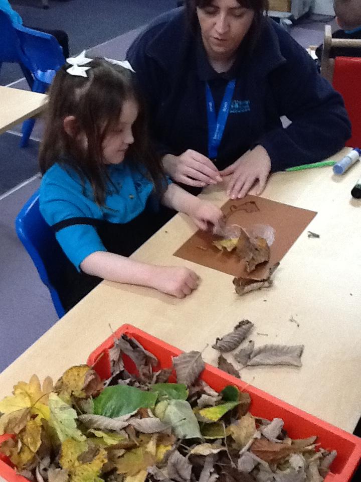 We went on an Autumn walk and collect some leaves to make a hedgehog out of leaves.