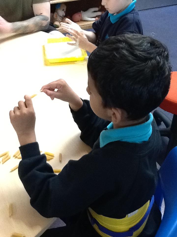 Monday 3rd November 2025. We enjoyed exploring some dried pasta, rice and red lentils in our sensory play session.