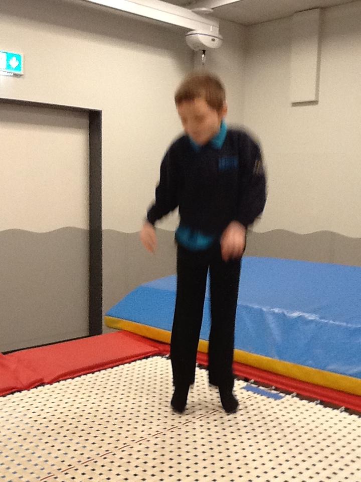 Tuesday 14th October 2025. Every Tuesday morning we have Rebound Therapy which we enjoy. It is really difficult to get a good photo because of all the bouncing. Here are 2 Jaguar pupils getting ready to start their session. We are working on our listening skills as well as our physical skills.