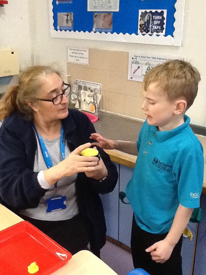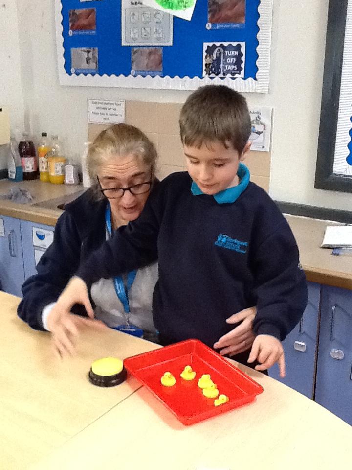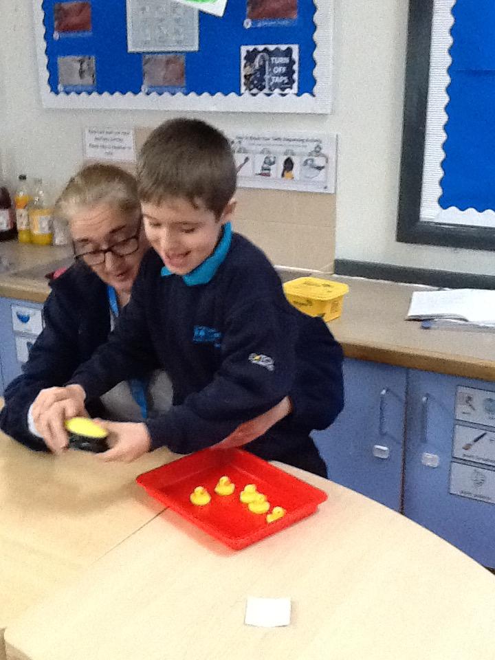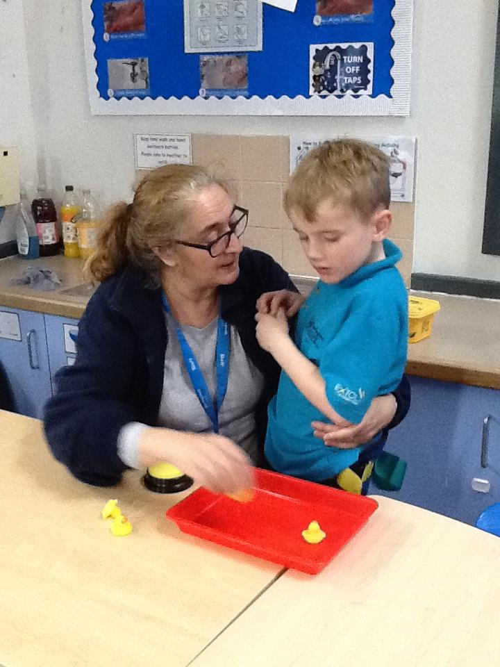 Week beginning 13th October 2025. We really enjoying singing number rhymes and we have introduced the sound button into the rhyme. It says Quack for 5 little ducks , Bang for 5 fat sausages and Glug Glug for 5 little speckled frogs. We are working on our anticipation and memory skills so that we can press the sound button at the correct time.