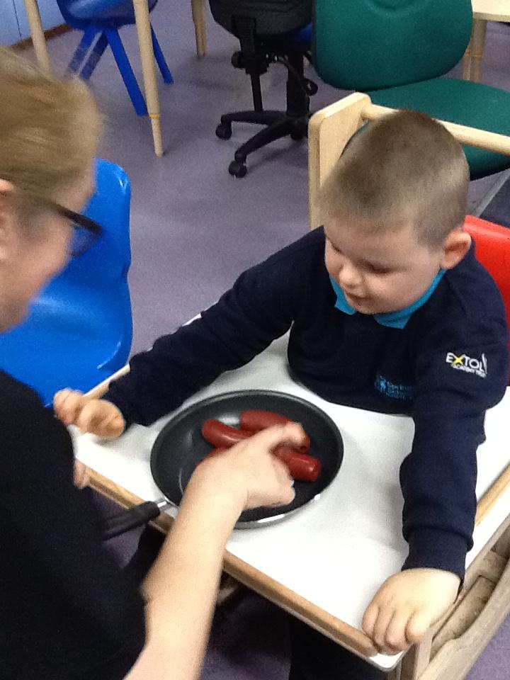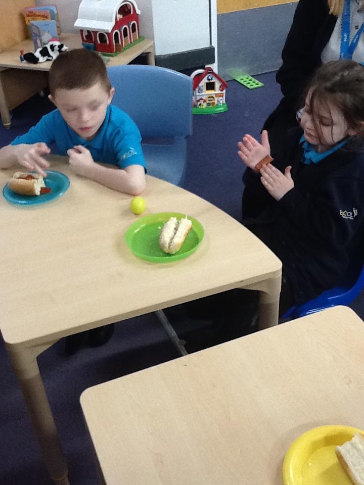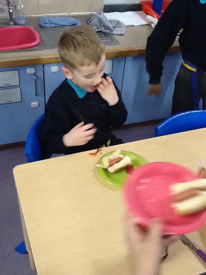 Wednesday 5th November 2025. As part of our work on Bonfire Night we exploring paprika and onion saltdough which had a smoky smell and also tasted some hot dogs.