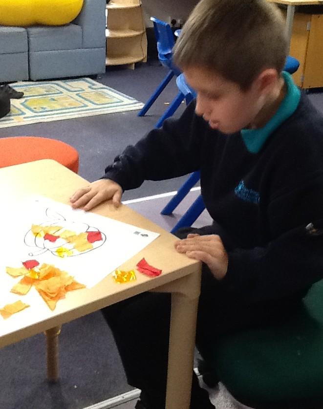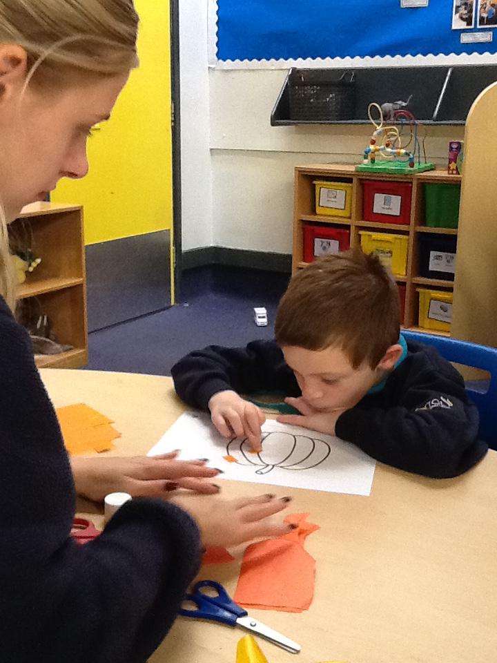 Wednesday 15th October 2025 . We enjoyed glueing, sticking and painting as part of our art work from our Halloween story. We made orange pumpkins.
