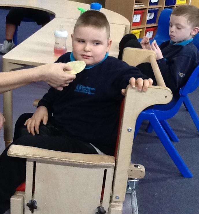 Over this term we have been working on our communication skills and asking for food, or for an adult to help us. We use a blank symbol to exchange for food or we use gestures to ask for help with toys.