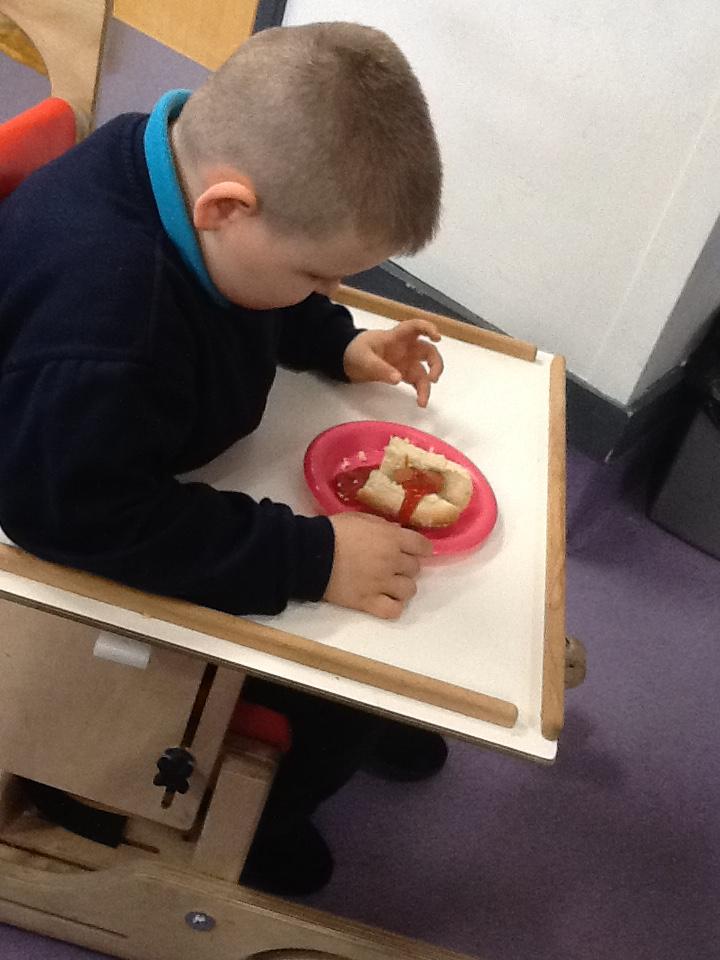 Over the last few weeks, we have been working on our communication and interaction skills by asking for some breakfast or a snack. We are beginning to exchange a blank symbol for what we would like to eat. We are happy to ask different staff members in class for what we would like. We also uses gestures or take an adult to where we want to go.