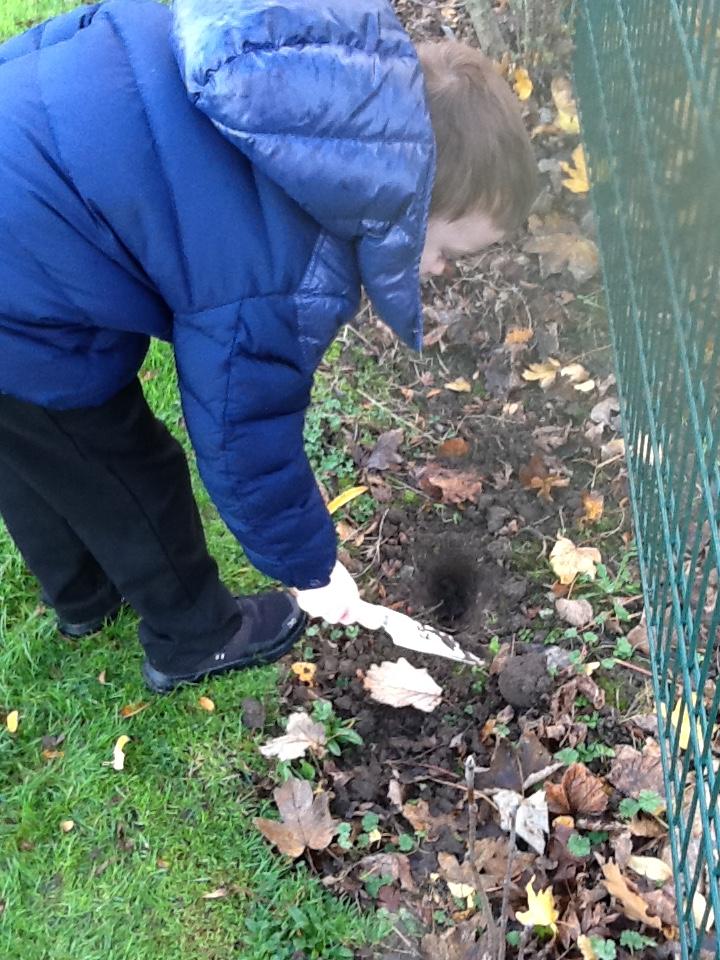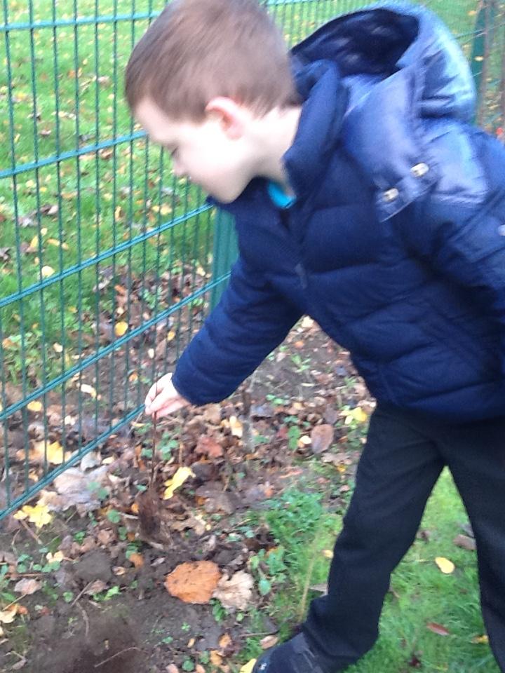Monday 17th November 2025. There were lots of trees planted in school today. One of our class went out to help. We are looking forward to seeing them grow.