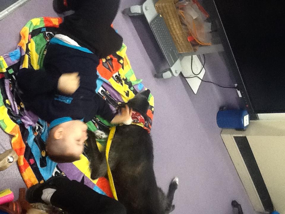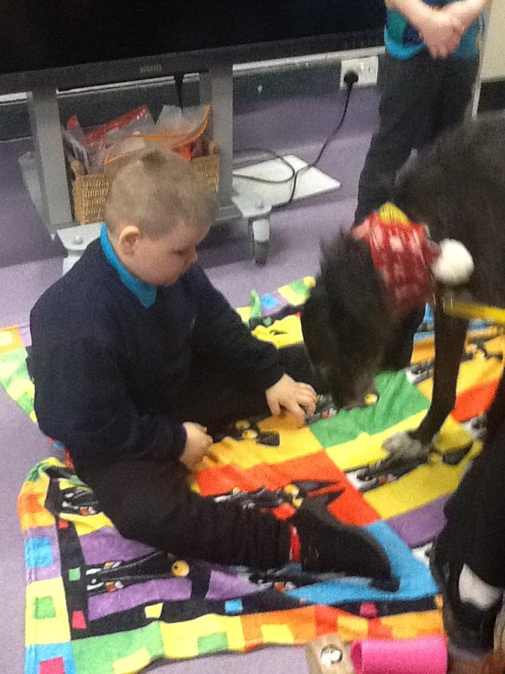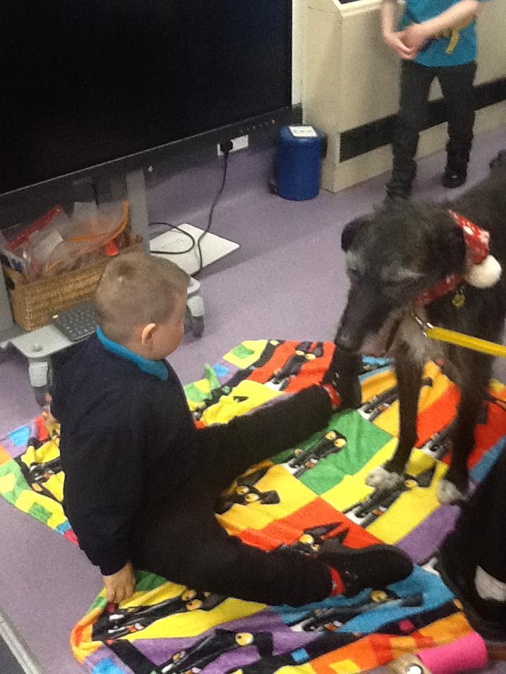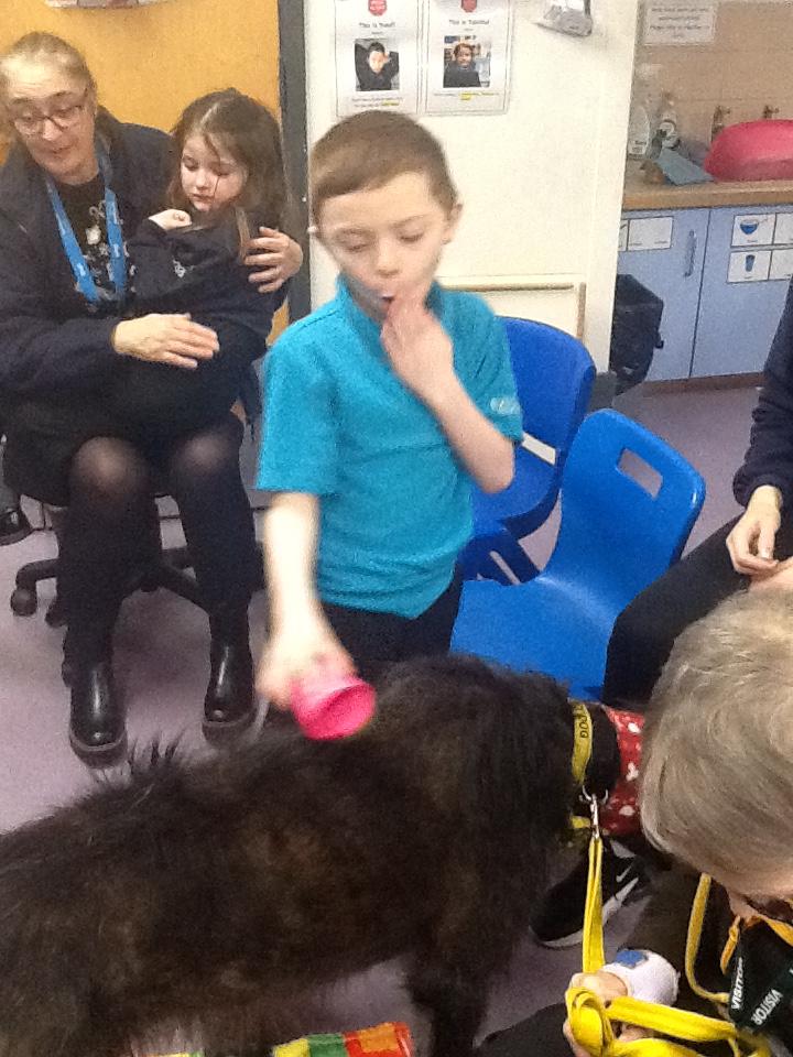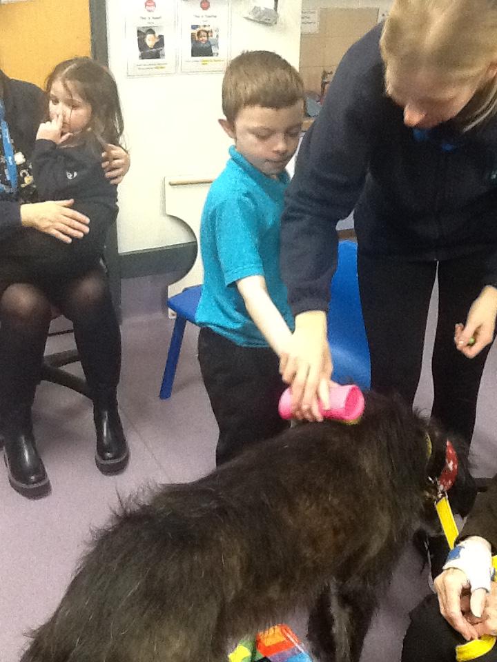 Thursday 4th December 2025. We have a visit from Ronnie the PAT dog today. Some of us enjoyed stroking and brushing Ronnie. Some of us needed adult support to see Ronnie.