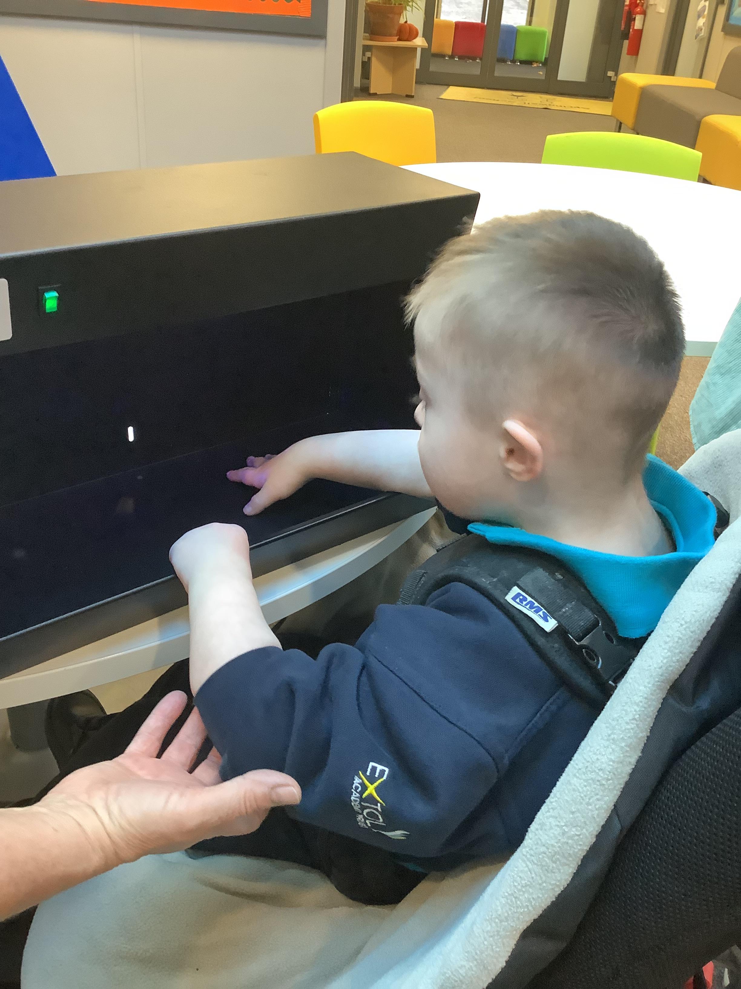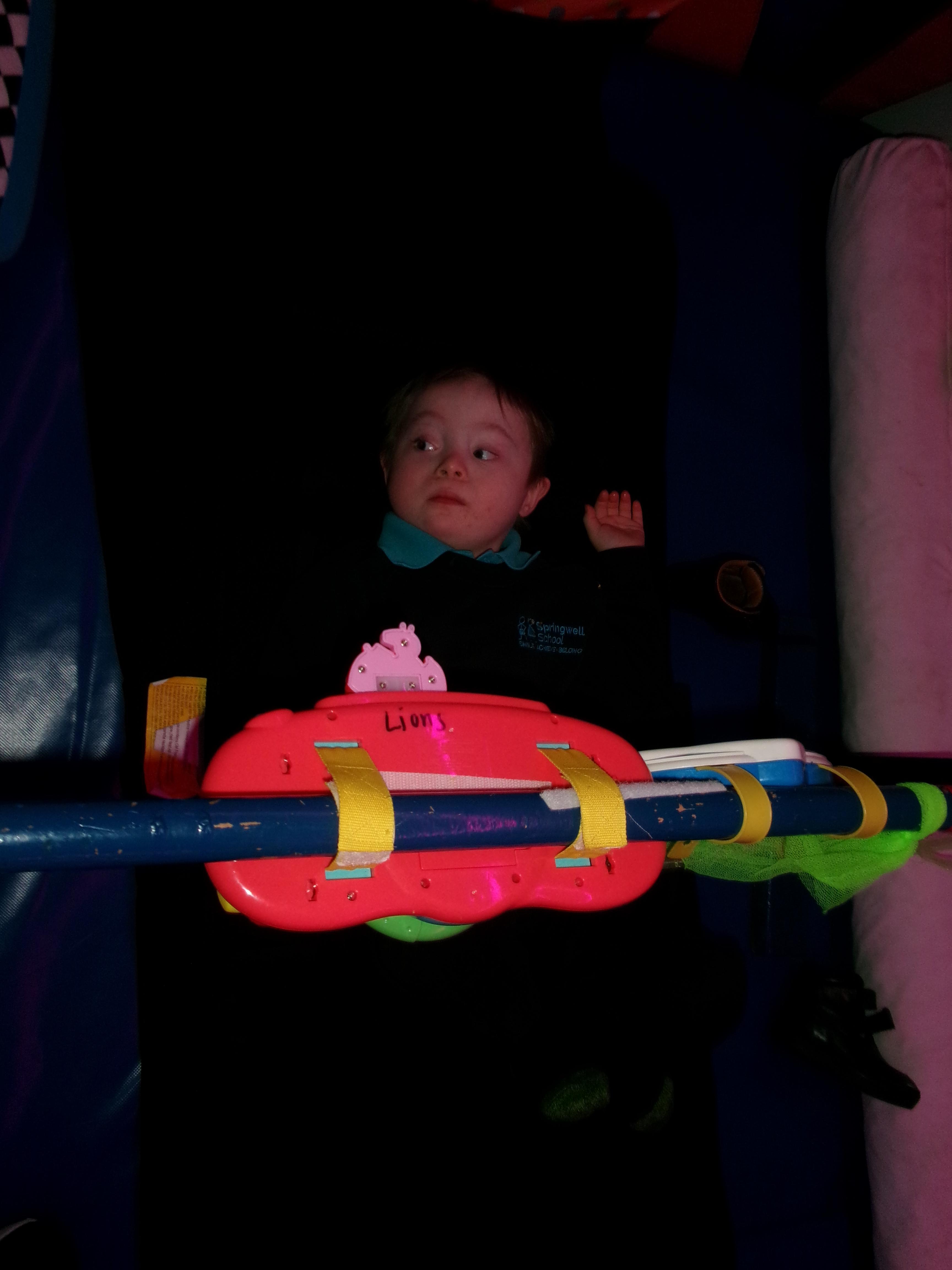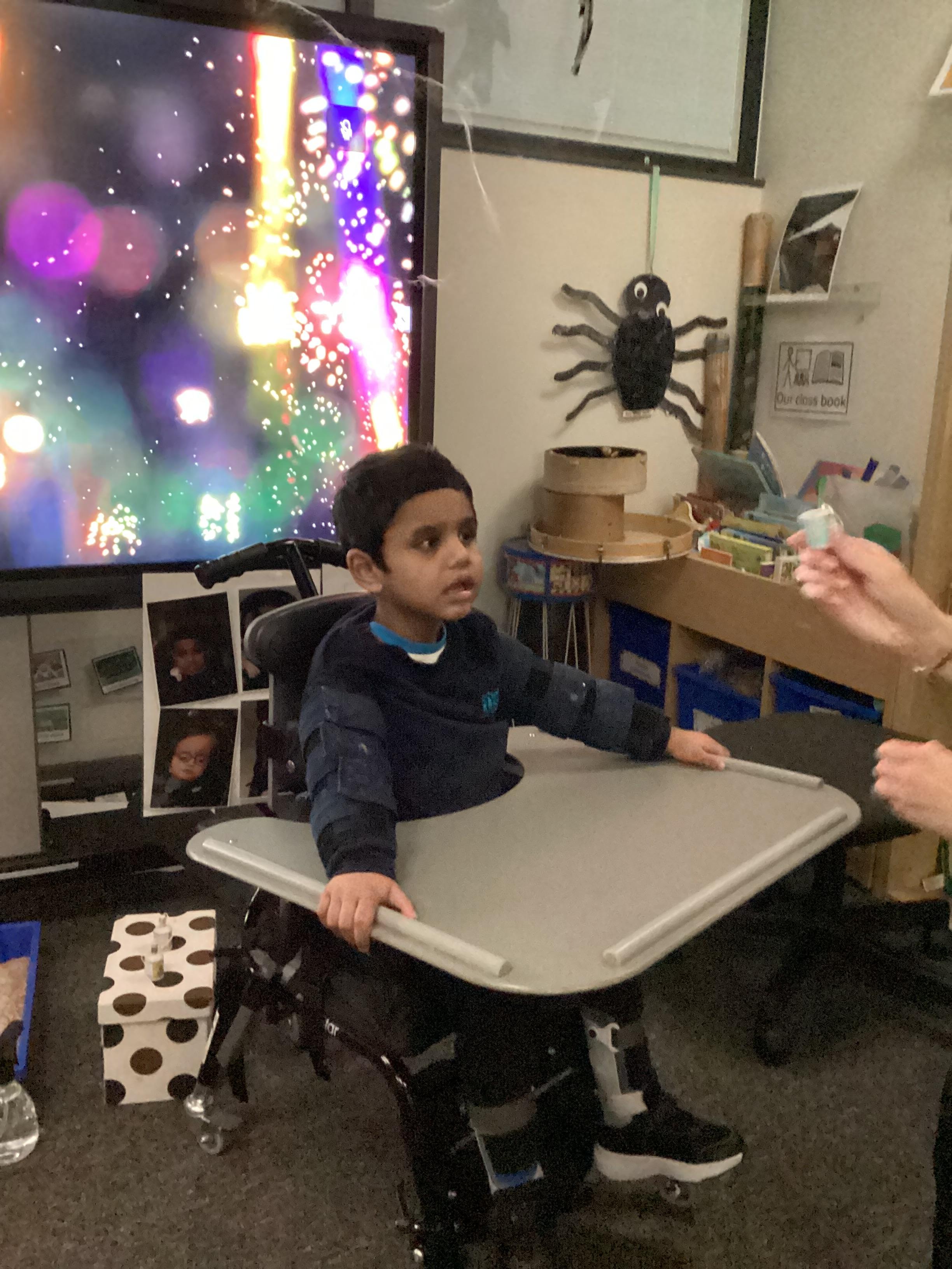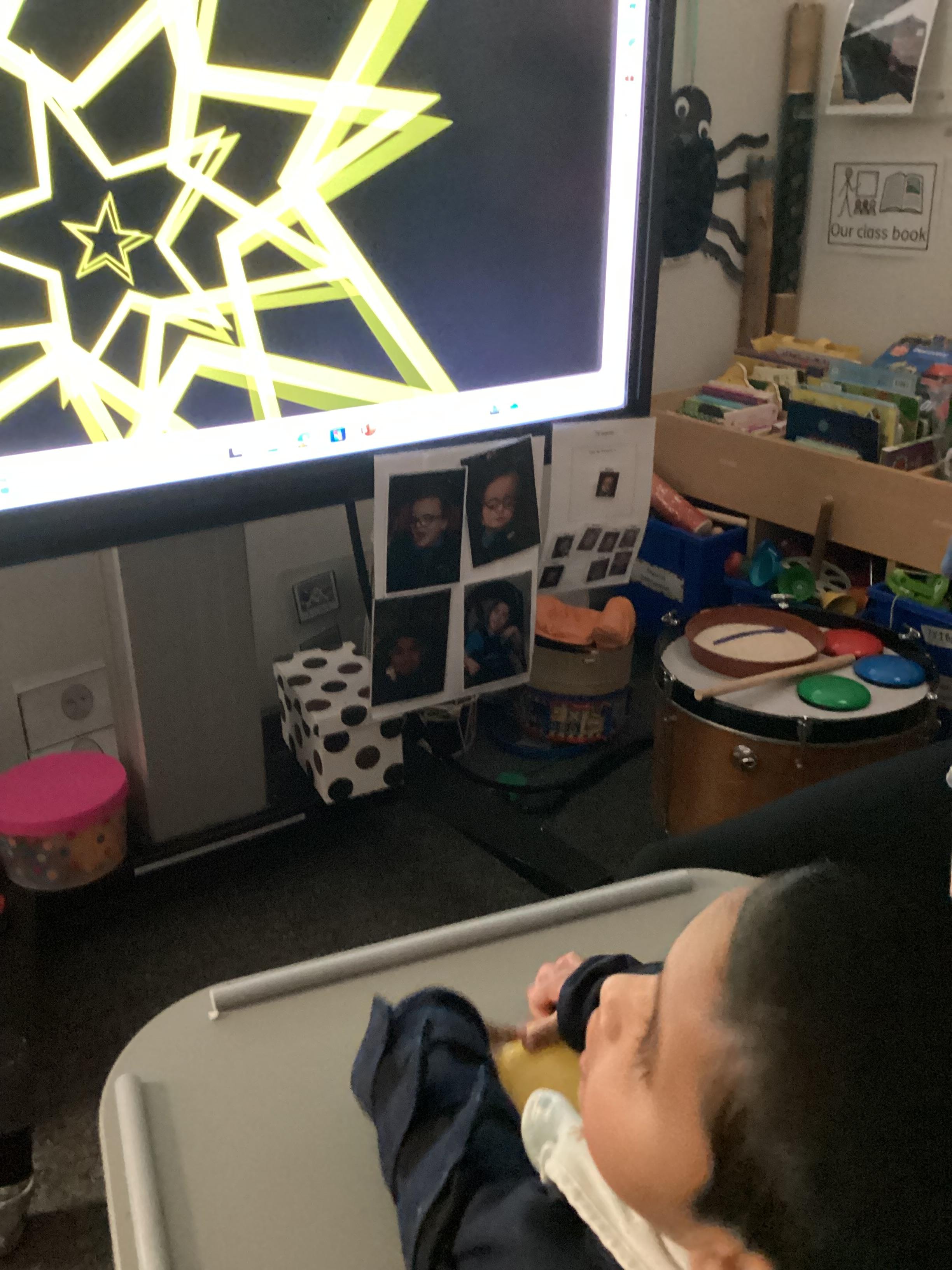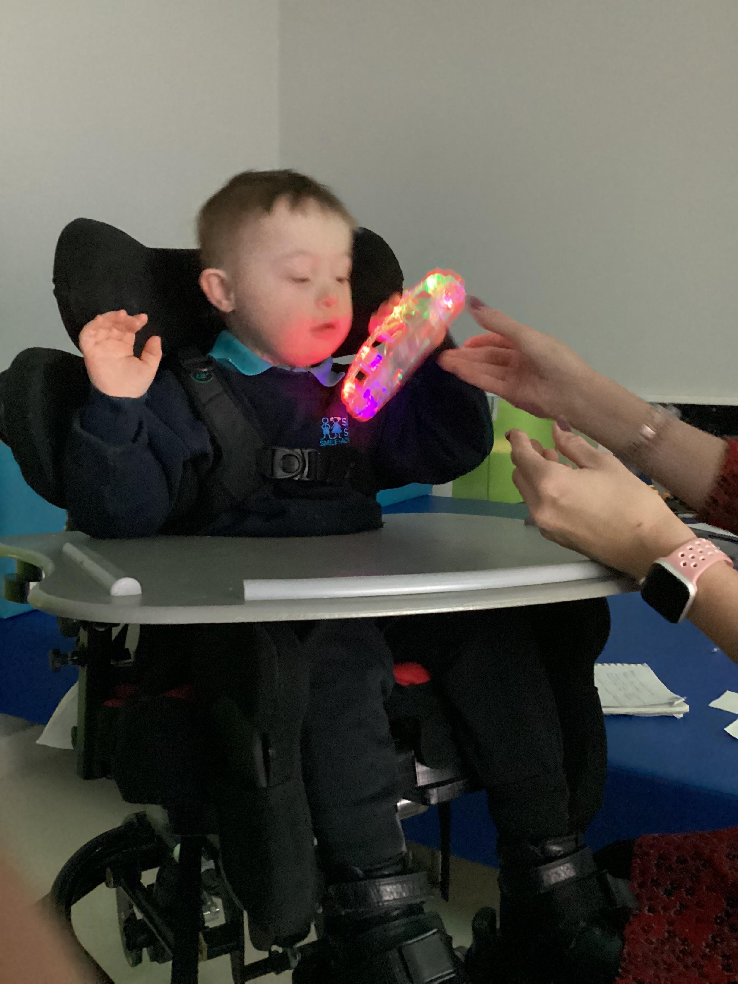 Throughout each week we spend time in our standing frames, completing a range of fun activities linked to our targets. We love making marks on the interactive whiteboard and exploring sensory toys, making choices to indicate our preferred items.