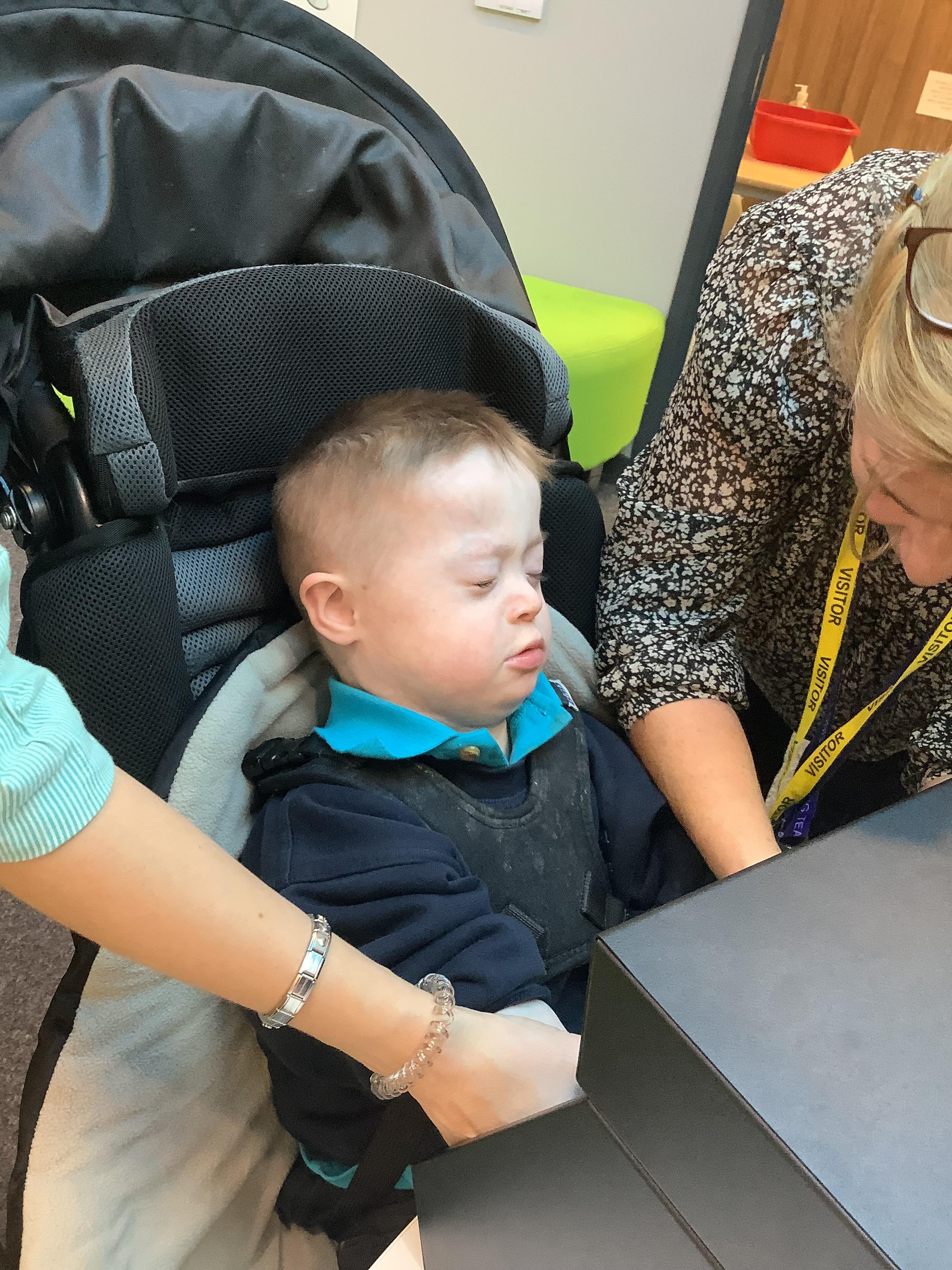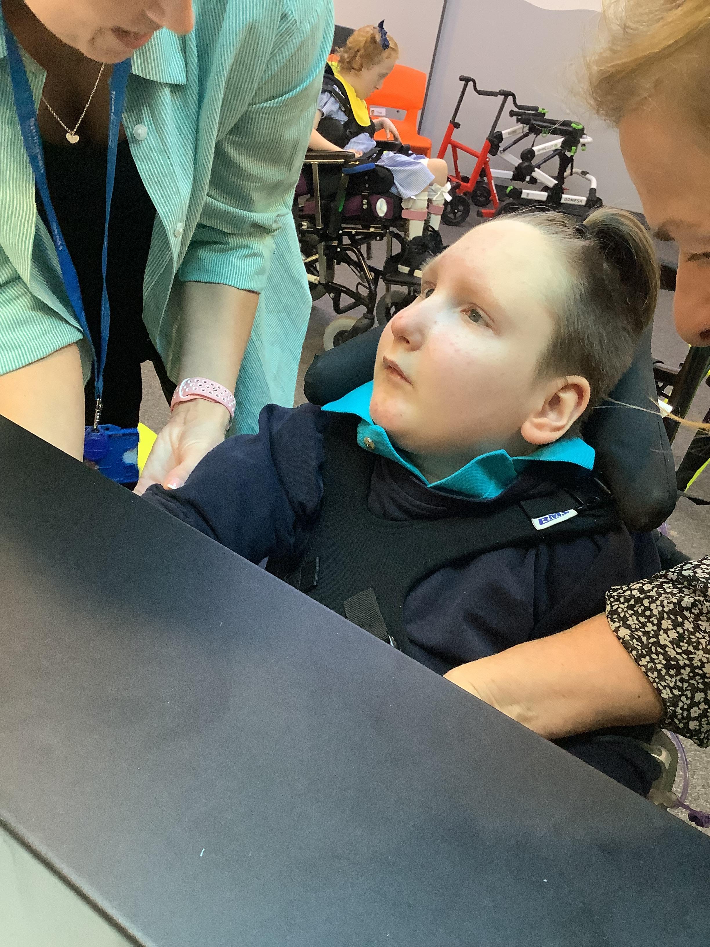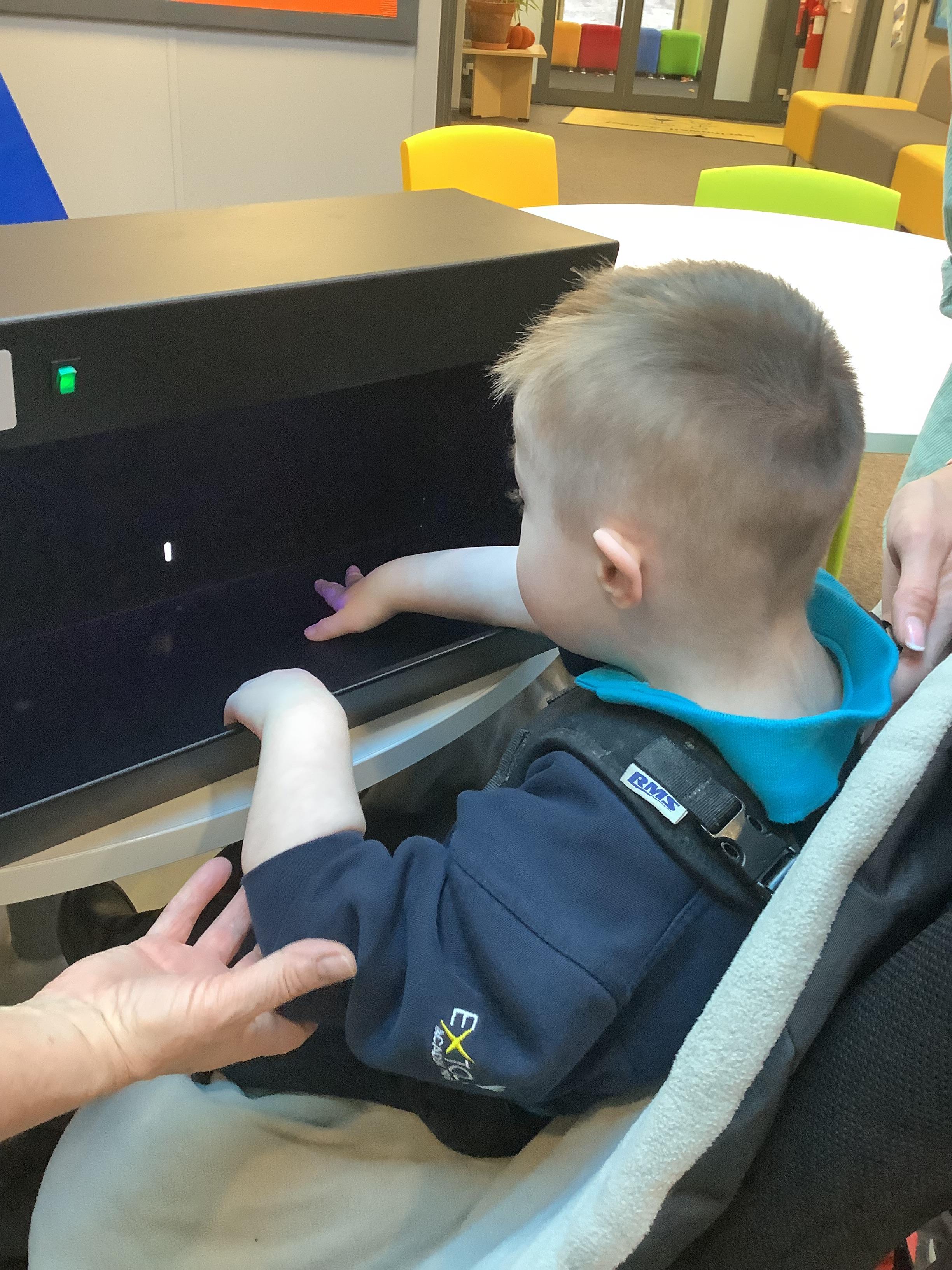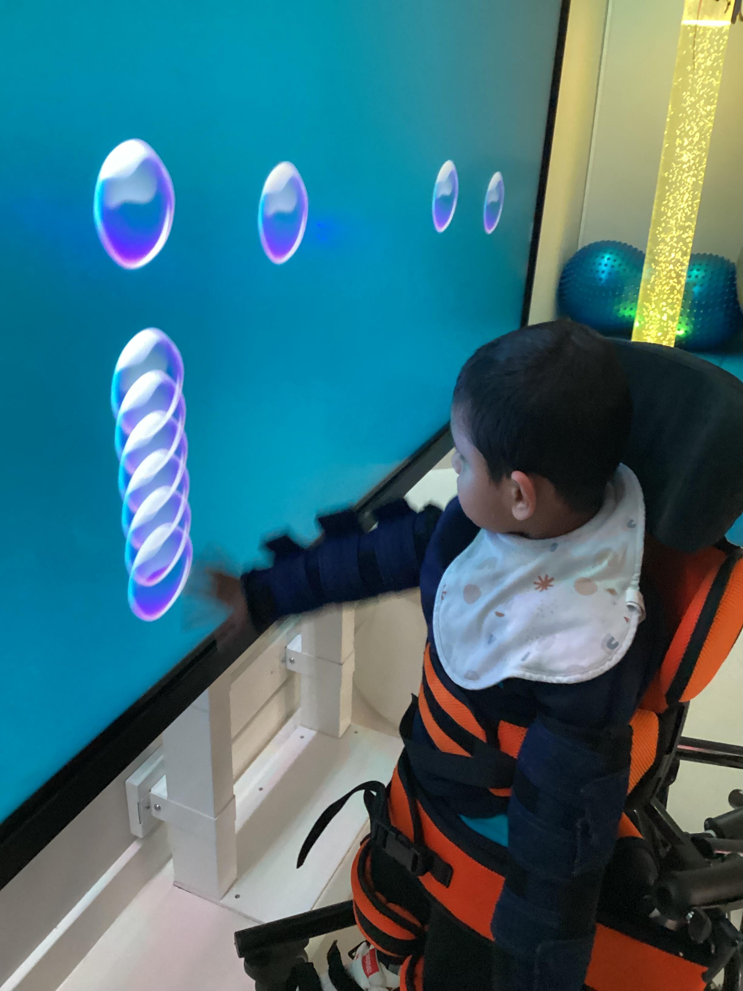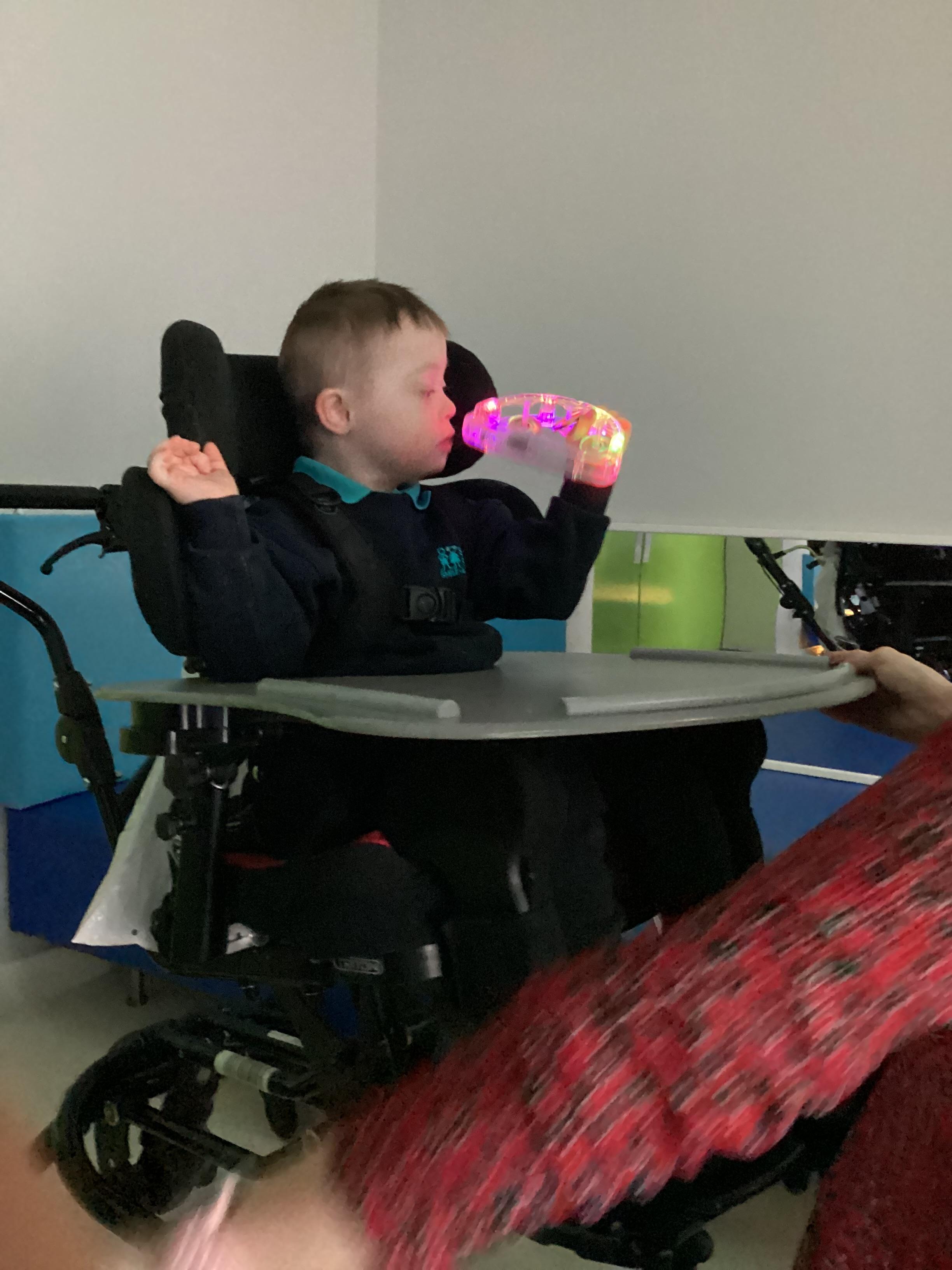 Throughout each week we spend time in our standing frames, completing a range of fun activities linked to our targets. We love making marks on the interactive whiteboard and exploring sensory toys, making choices to indicate our preferred items.