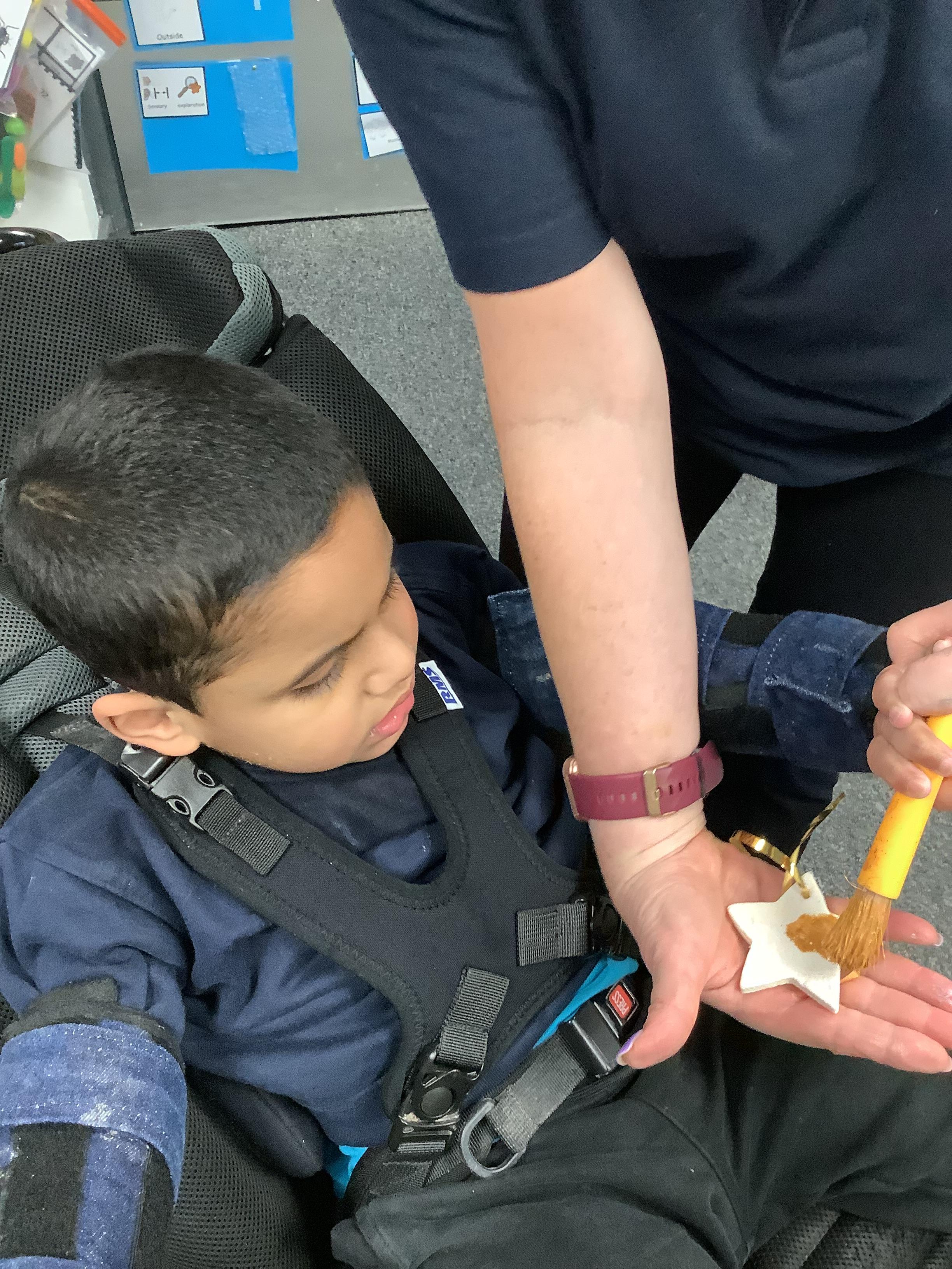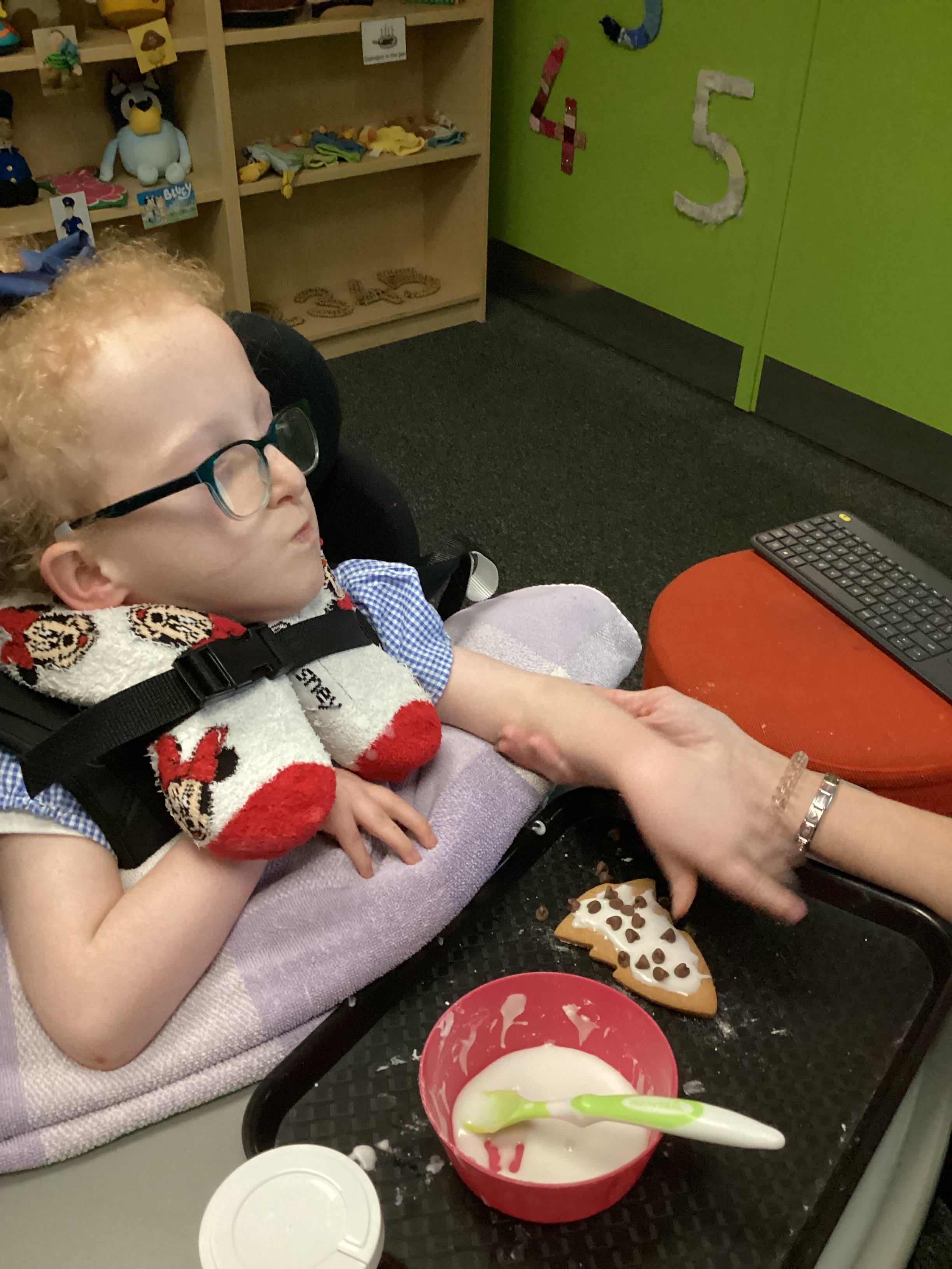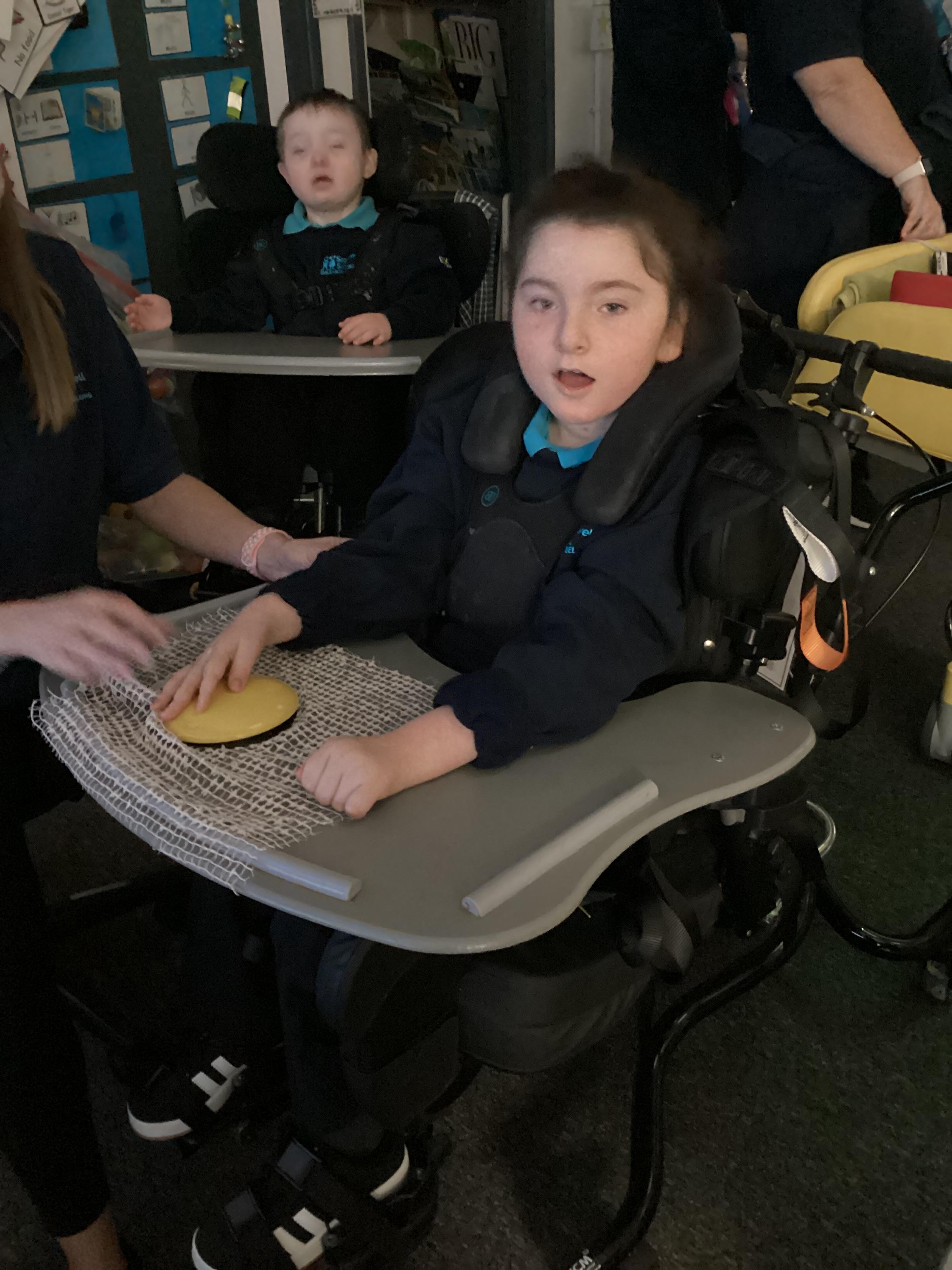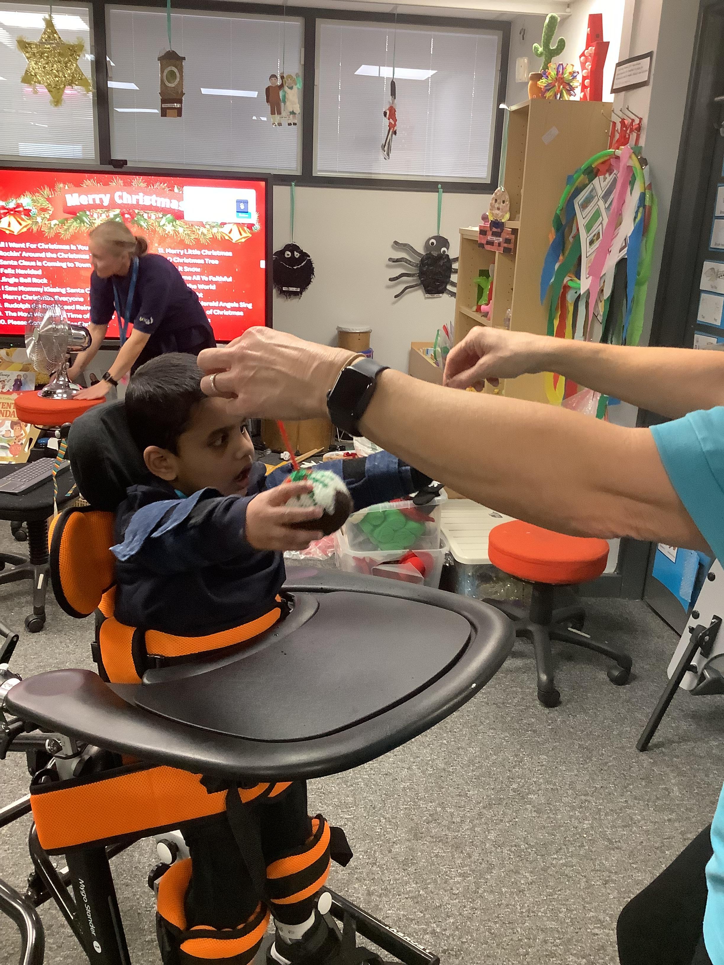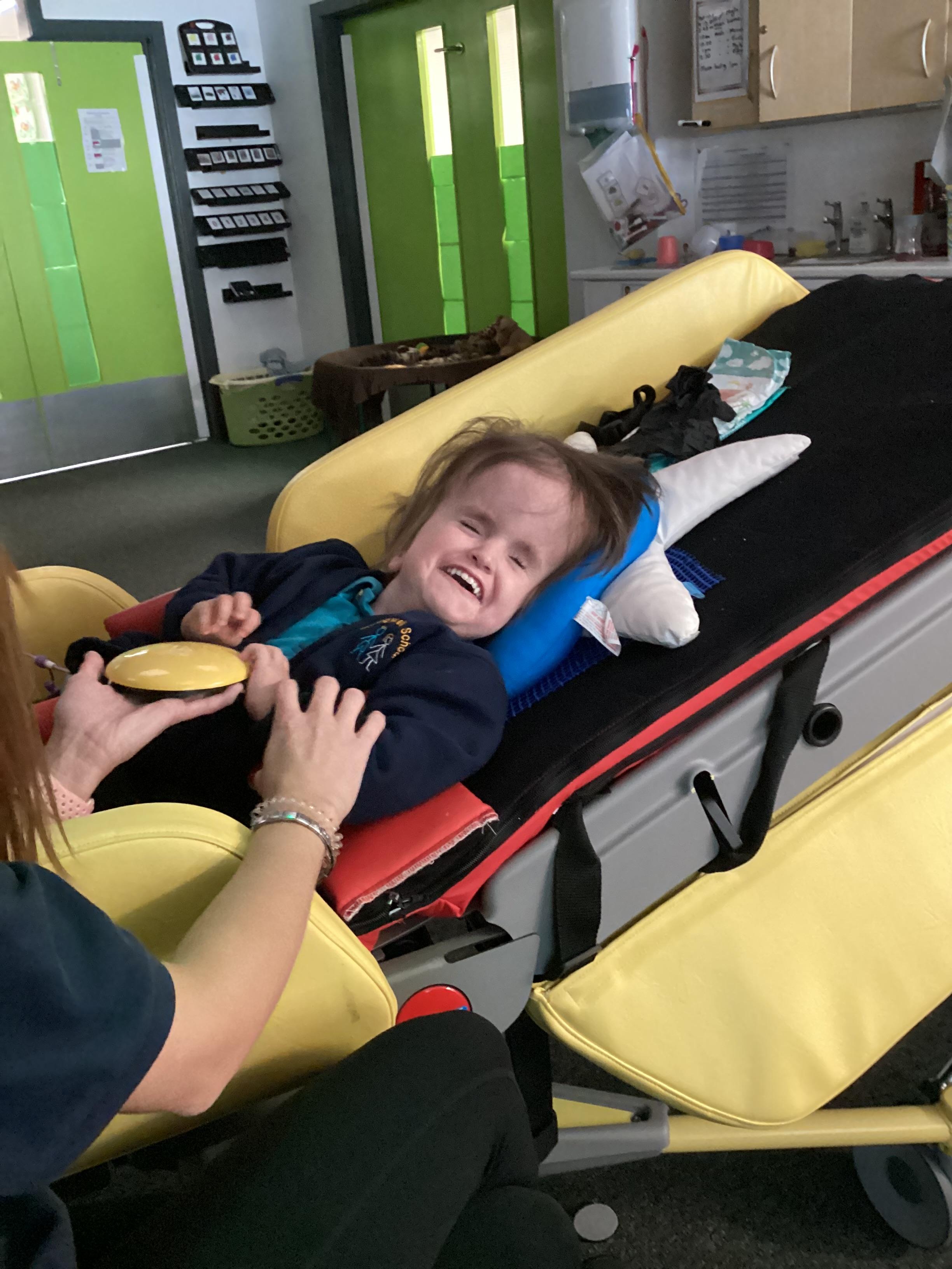 Throughout each week we spend time in our standing frames, completing a range of fun activities linked to our targets. We love making marks on the interactive whiteboard and exploring sensory toys, making choices to indicate our preferred items.