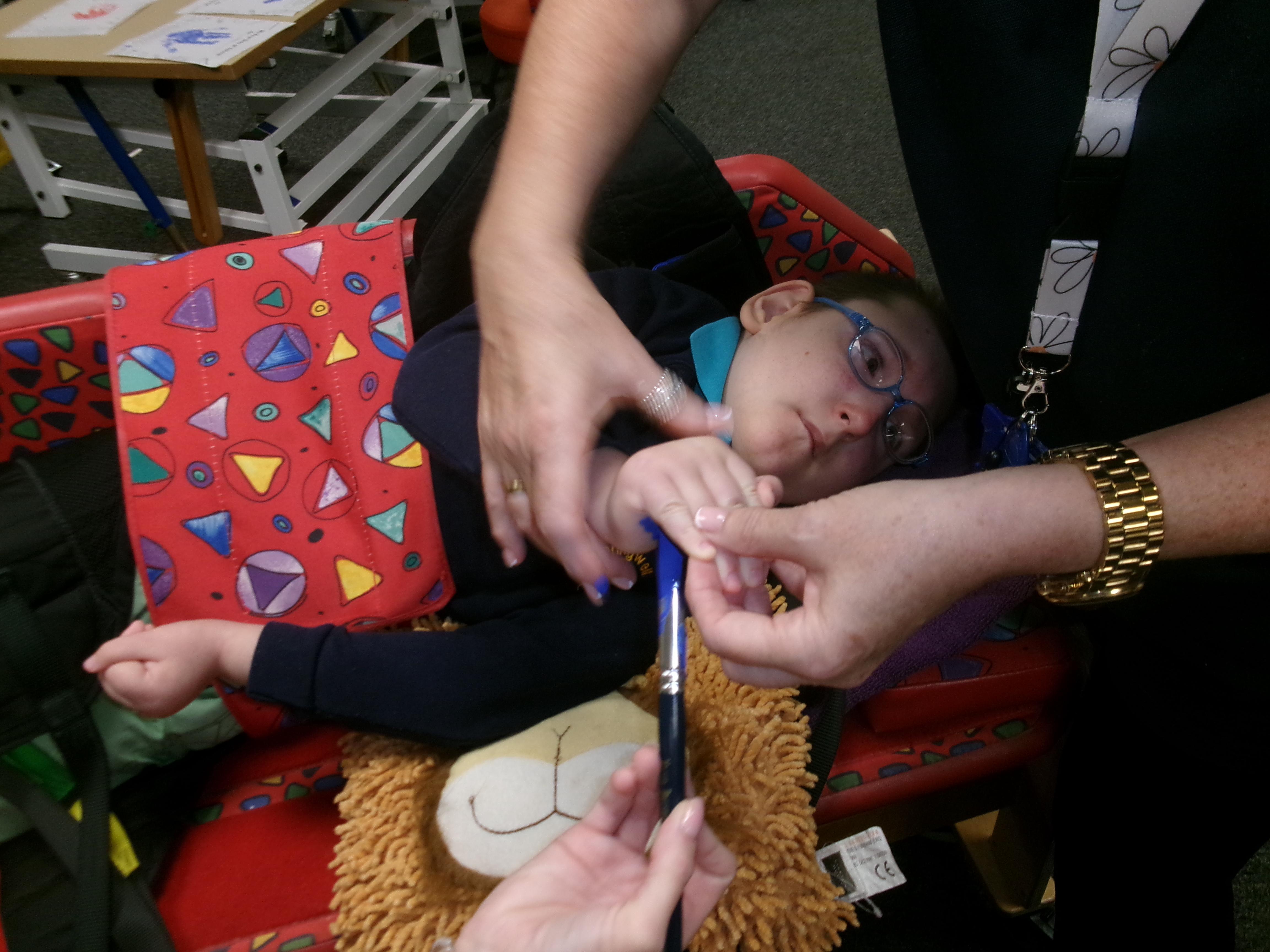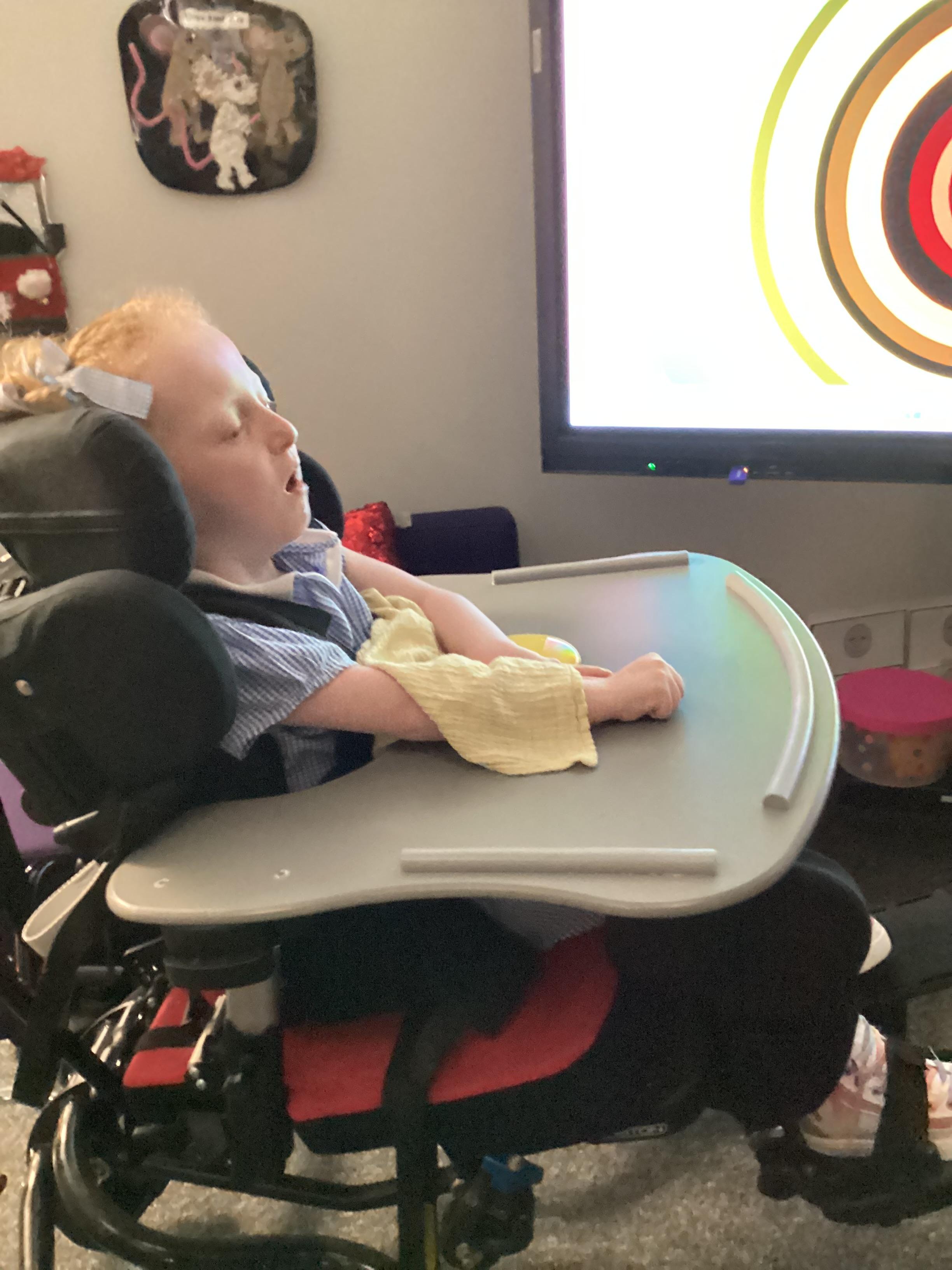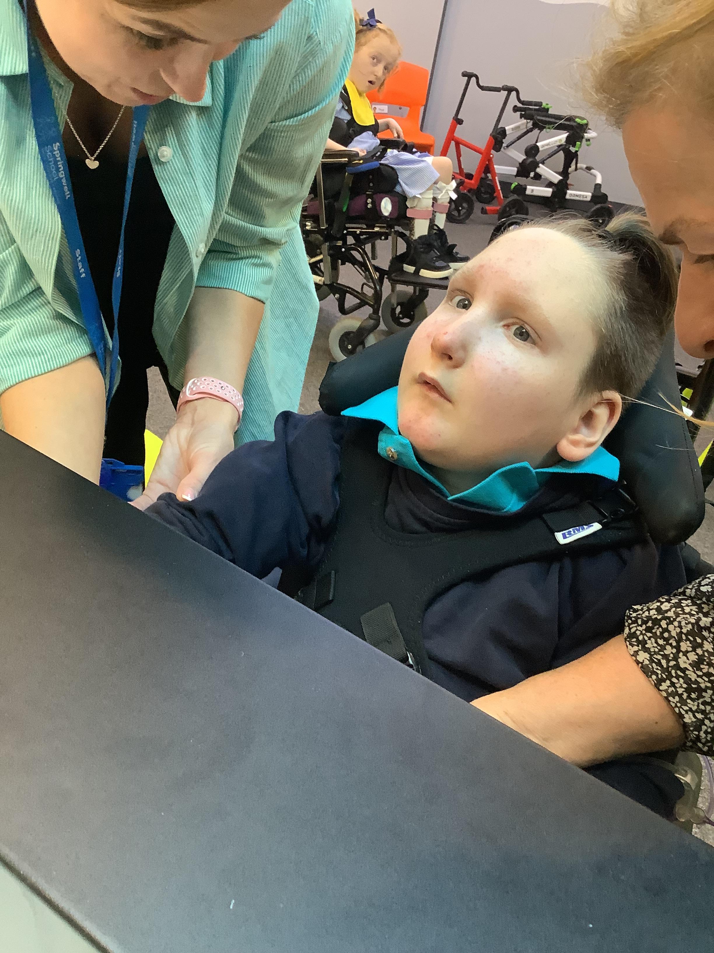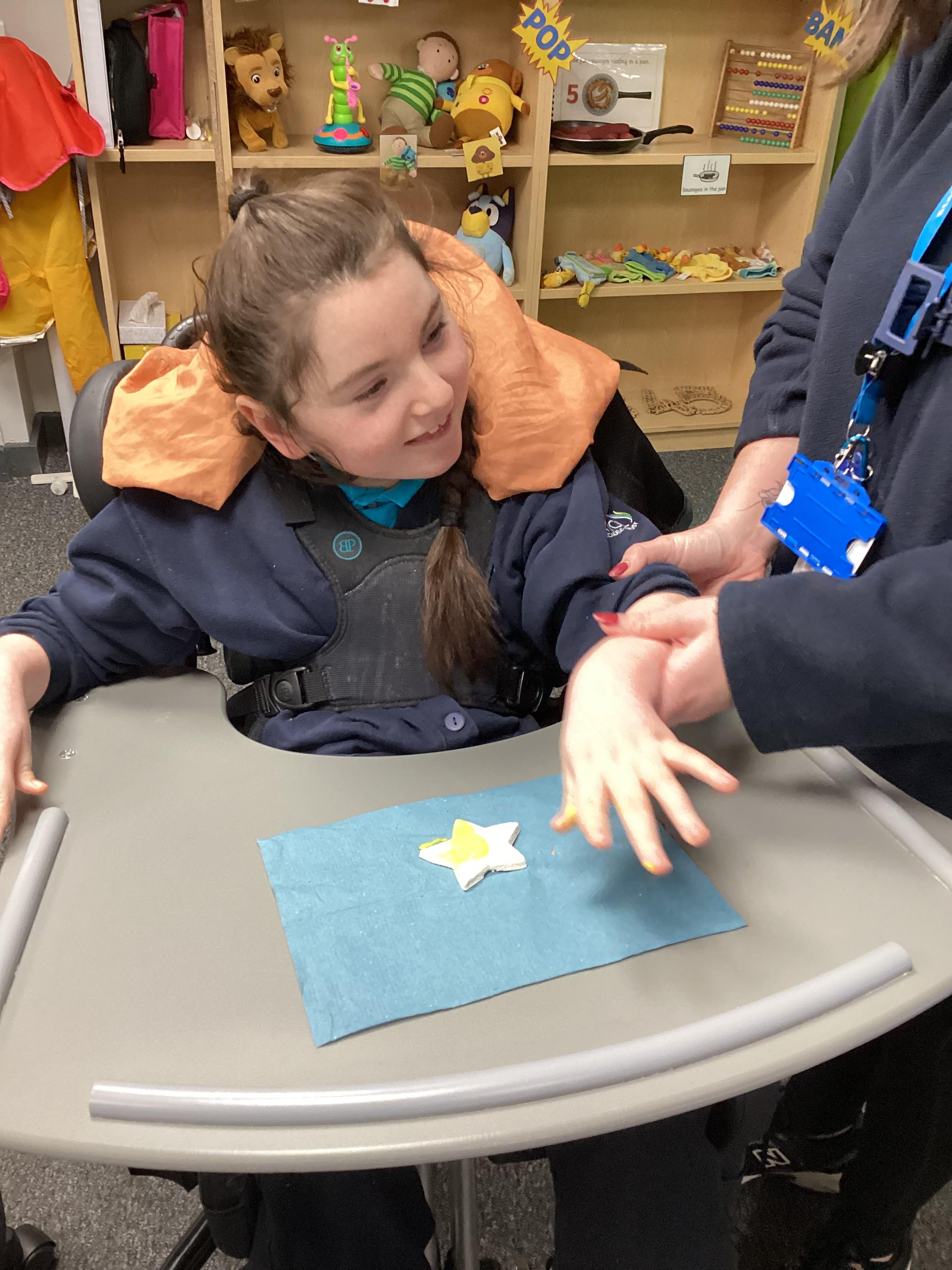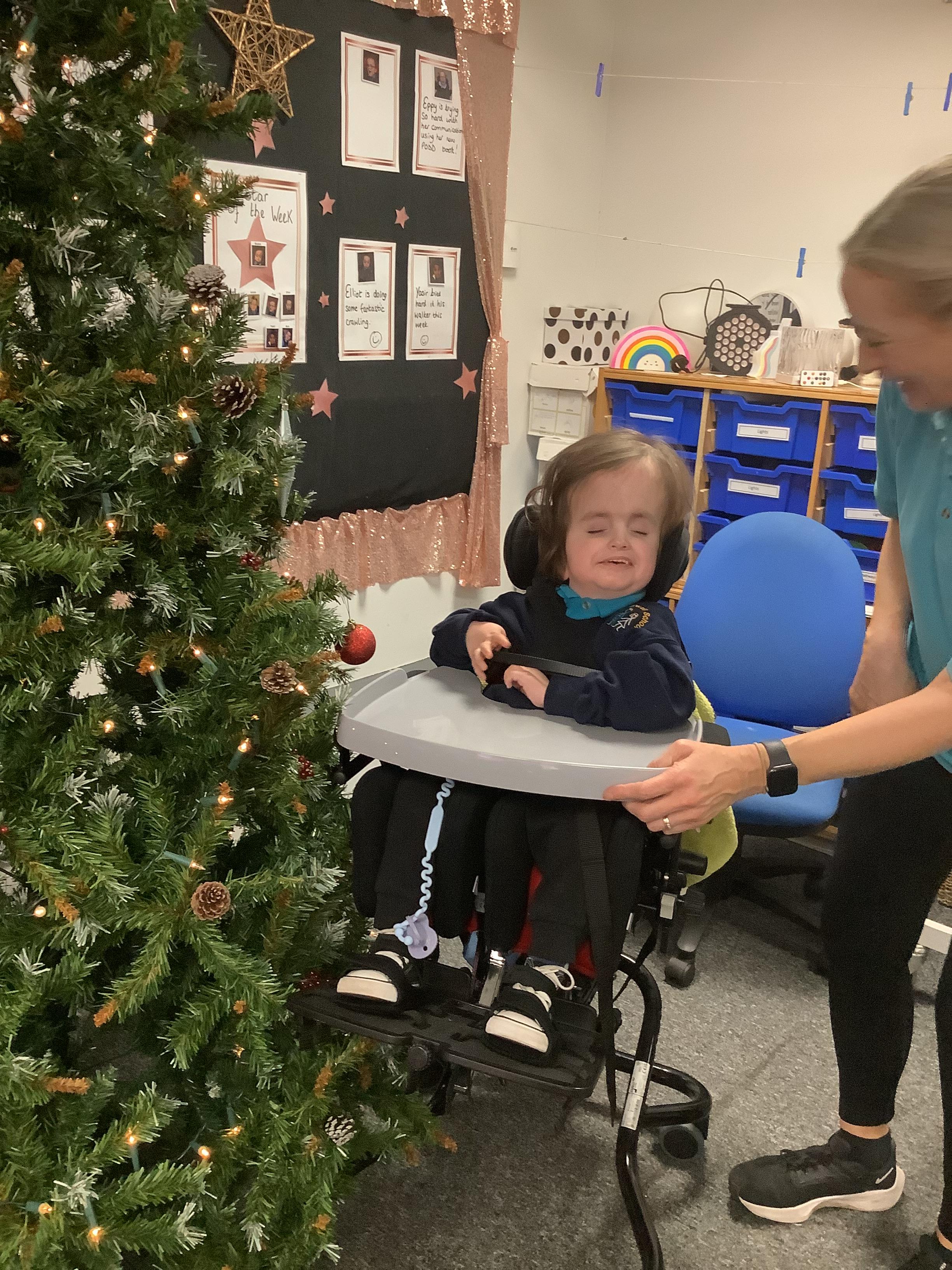 Throughout each week we spend time in our standing frames, completing a range of fun activities linked to our targets. We love making marks on the interactive whiteboard and exploring sensory toys, making choices to indicate our preferred items.