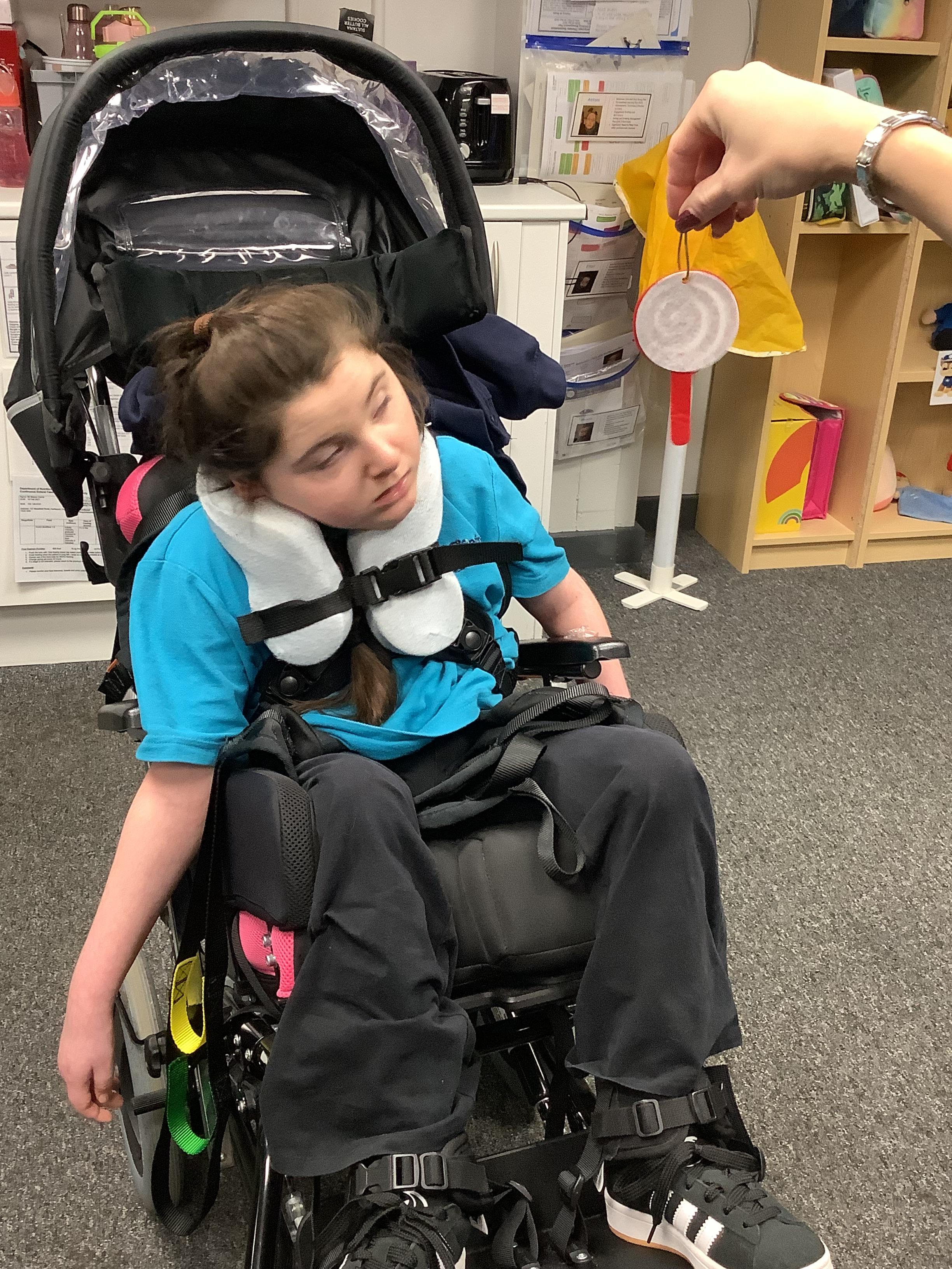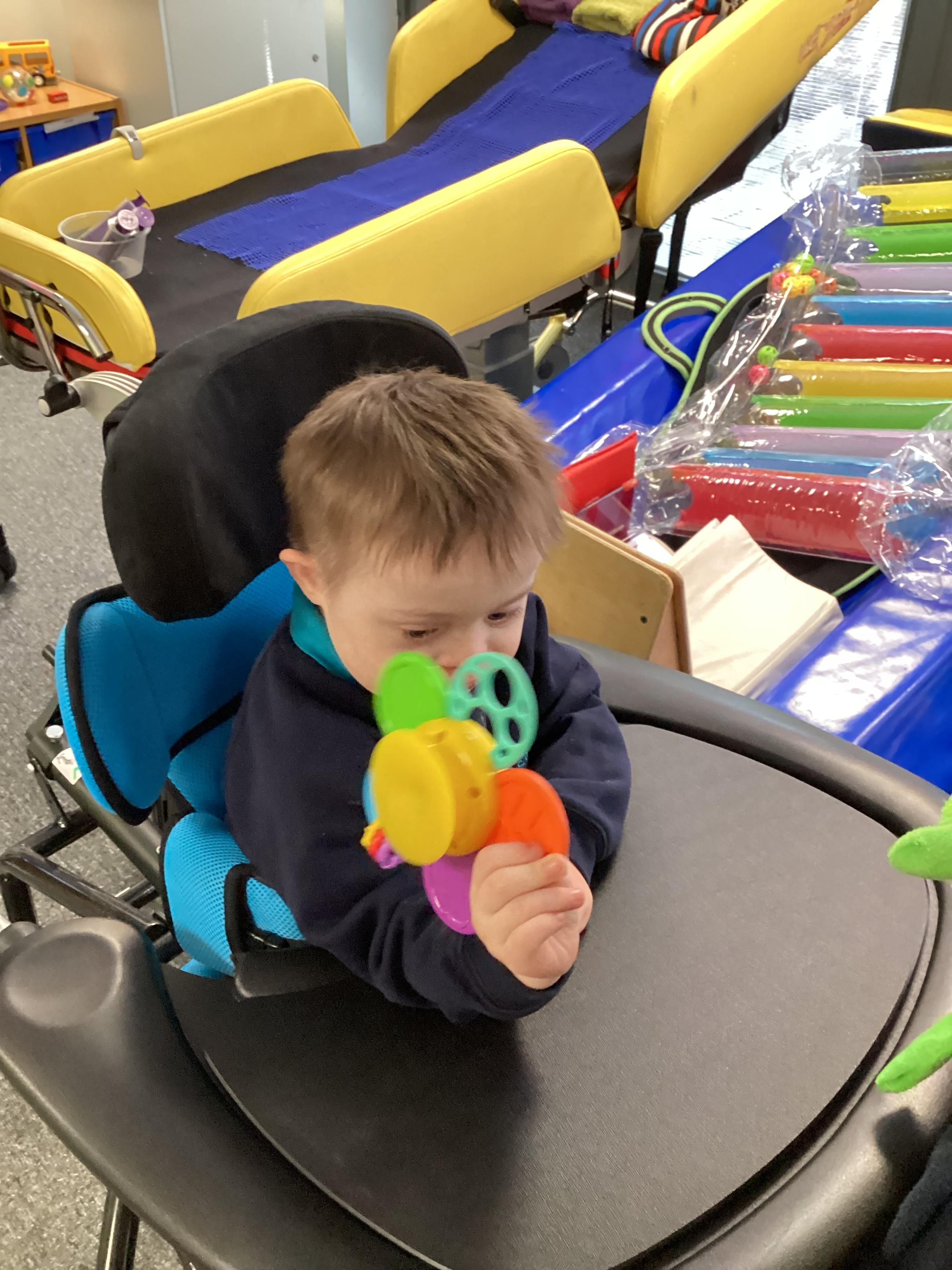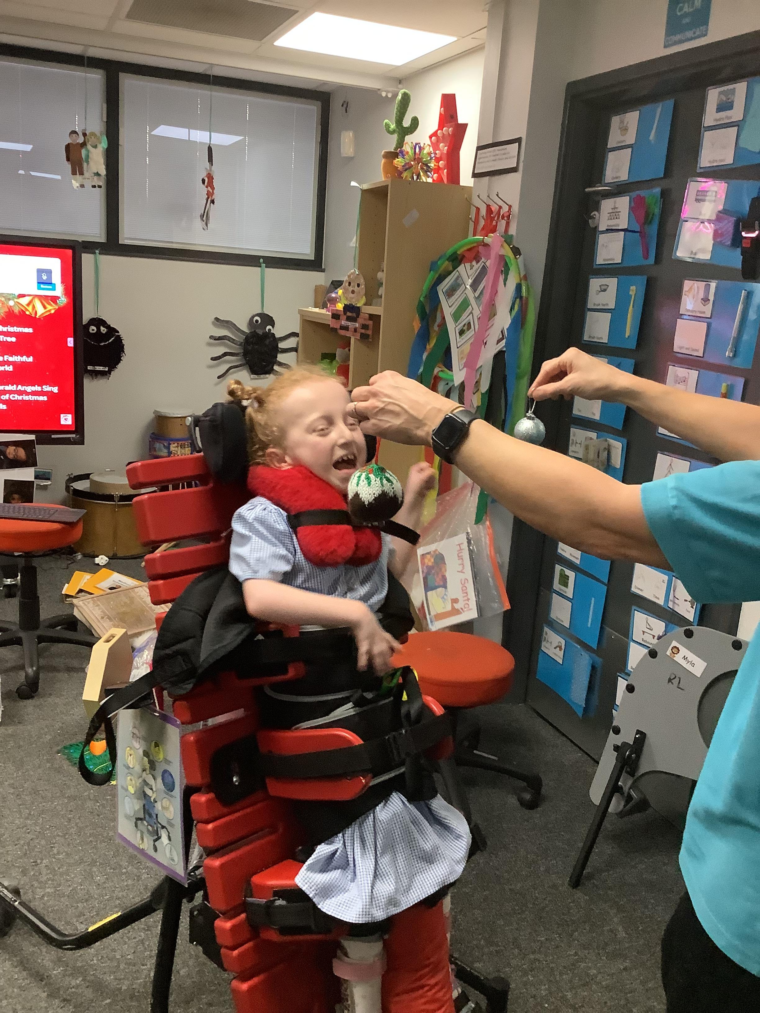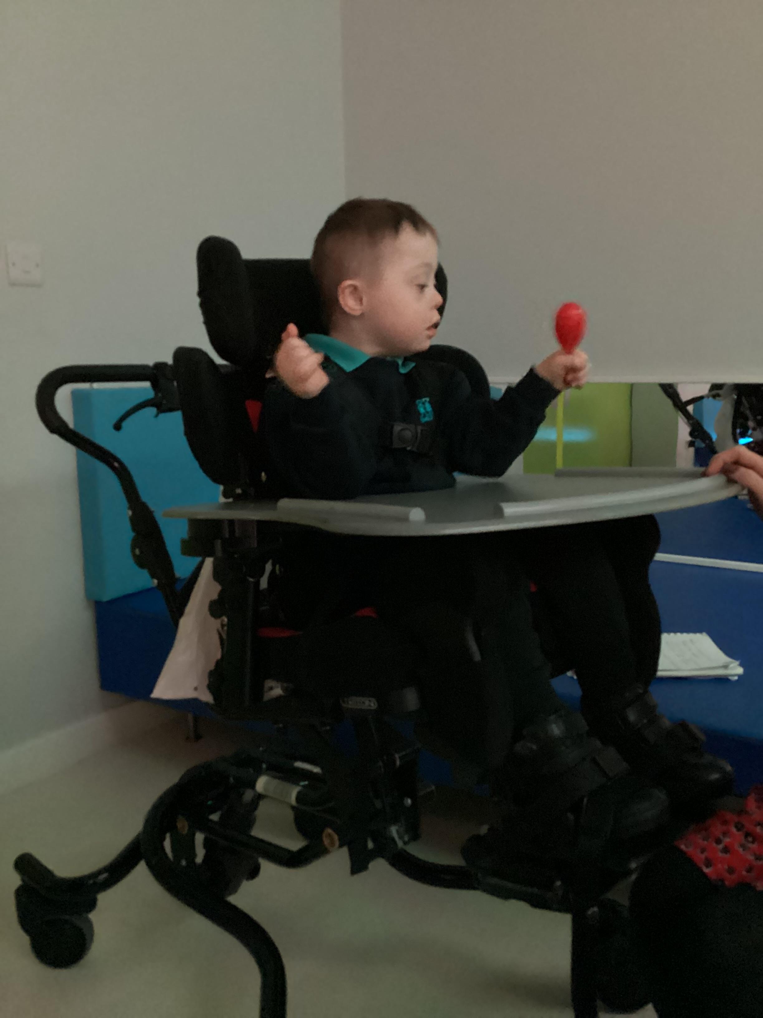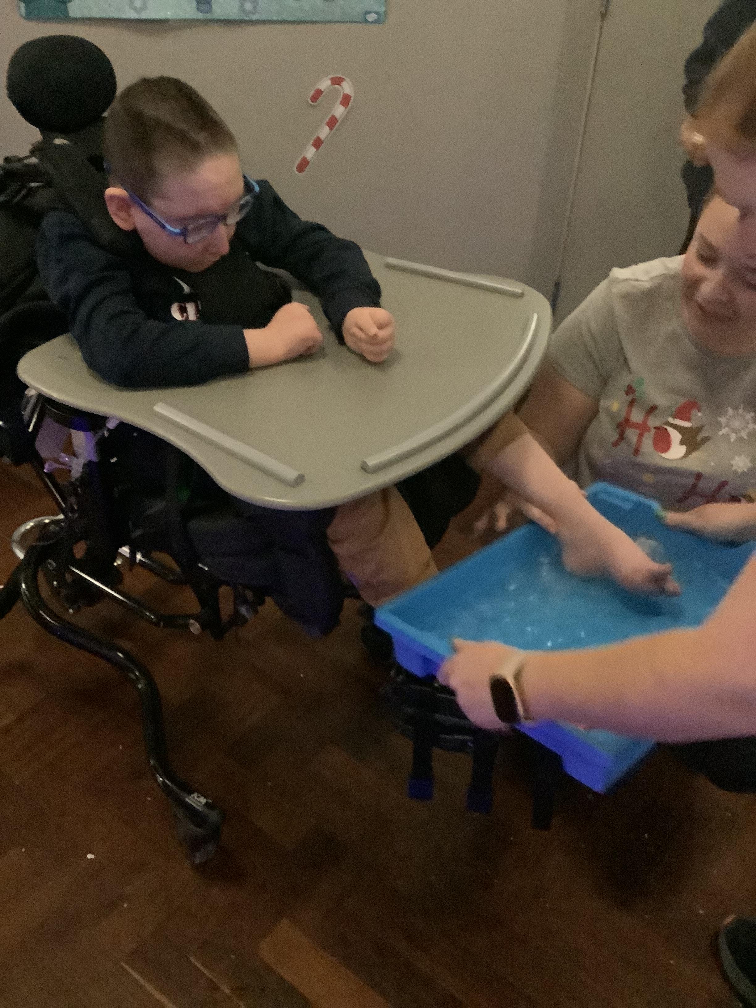 Throughout each week we spend time in our standing frames, completing a range of fun activities linked to our targets. We love making marks on the interactive whiteboard and exploring sensory toys, making choices to indicate our preferred items.