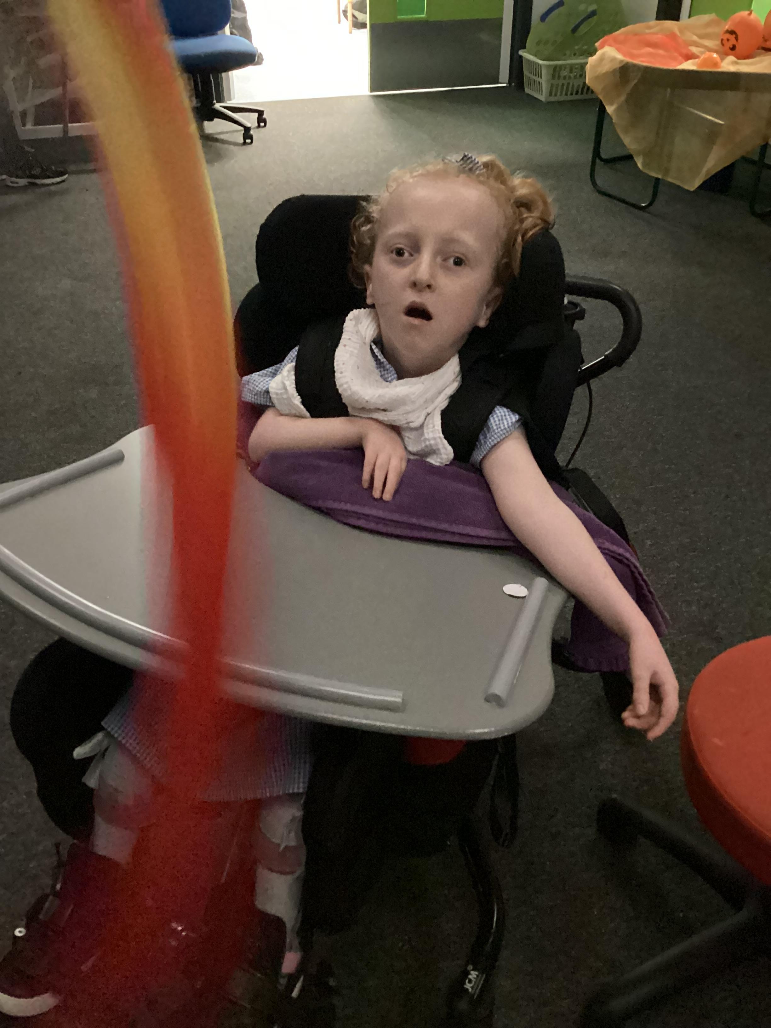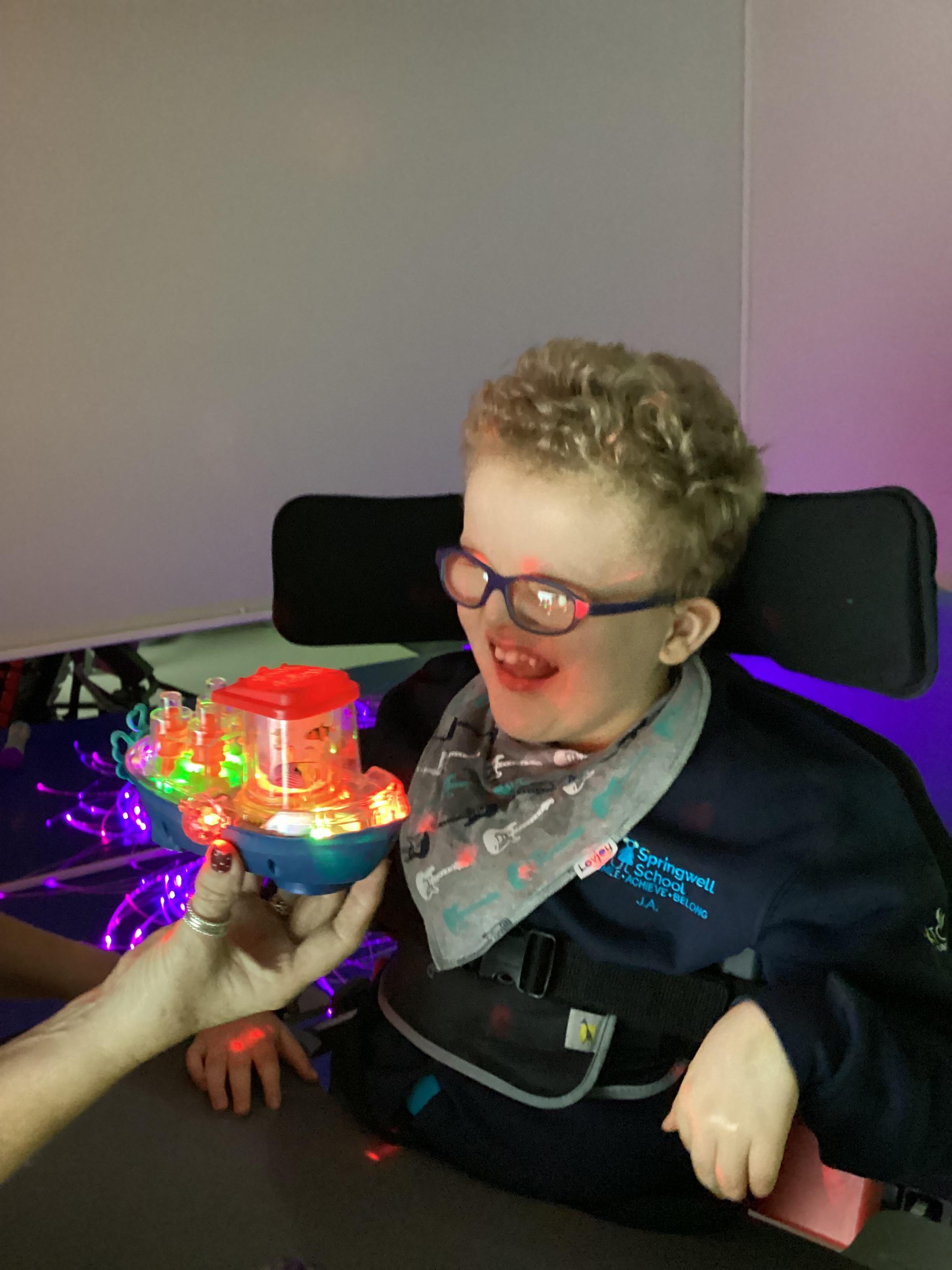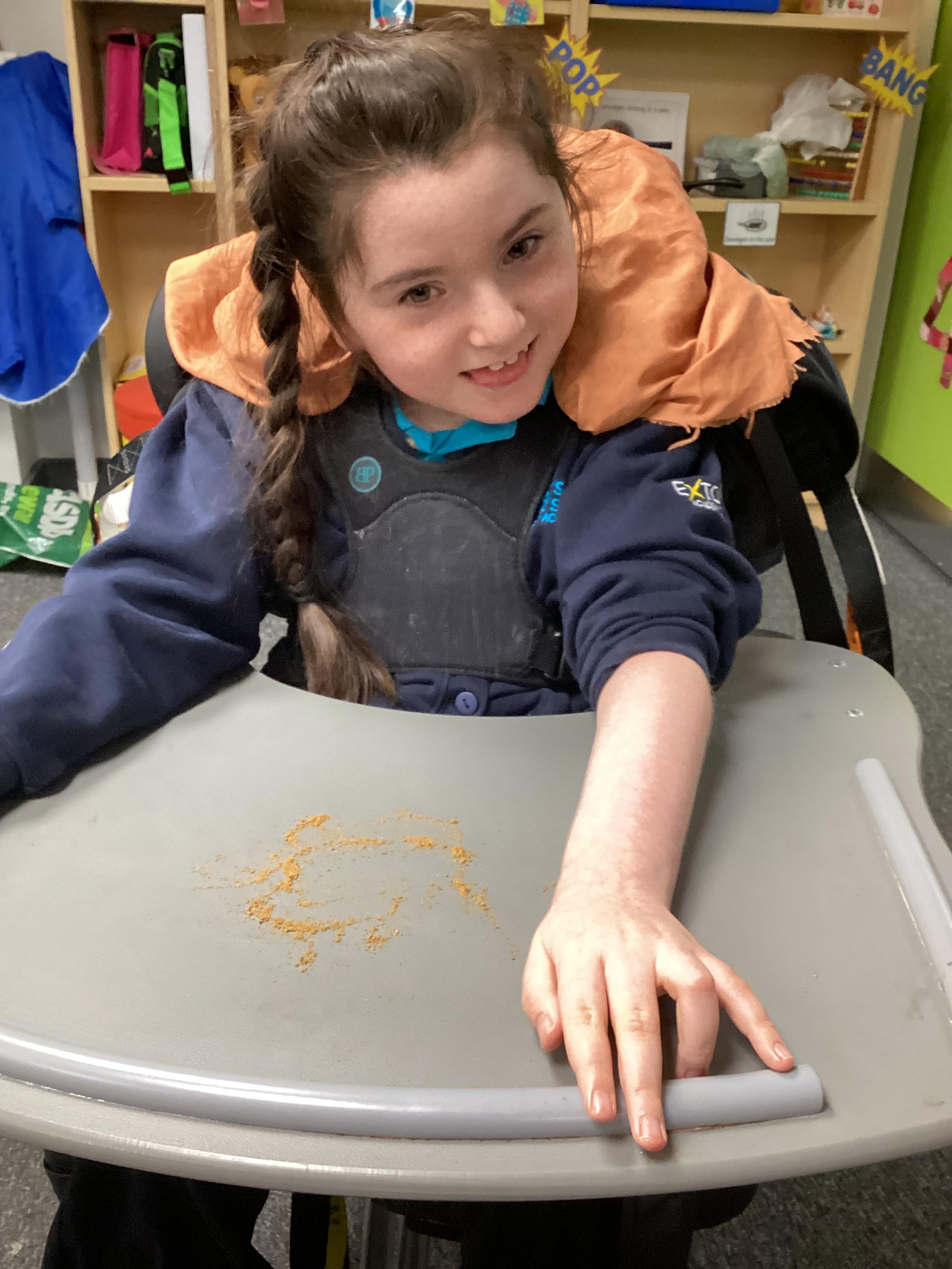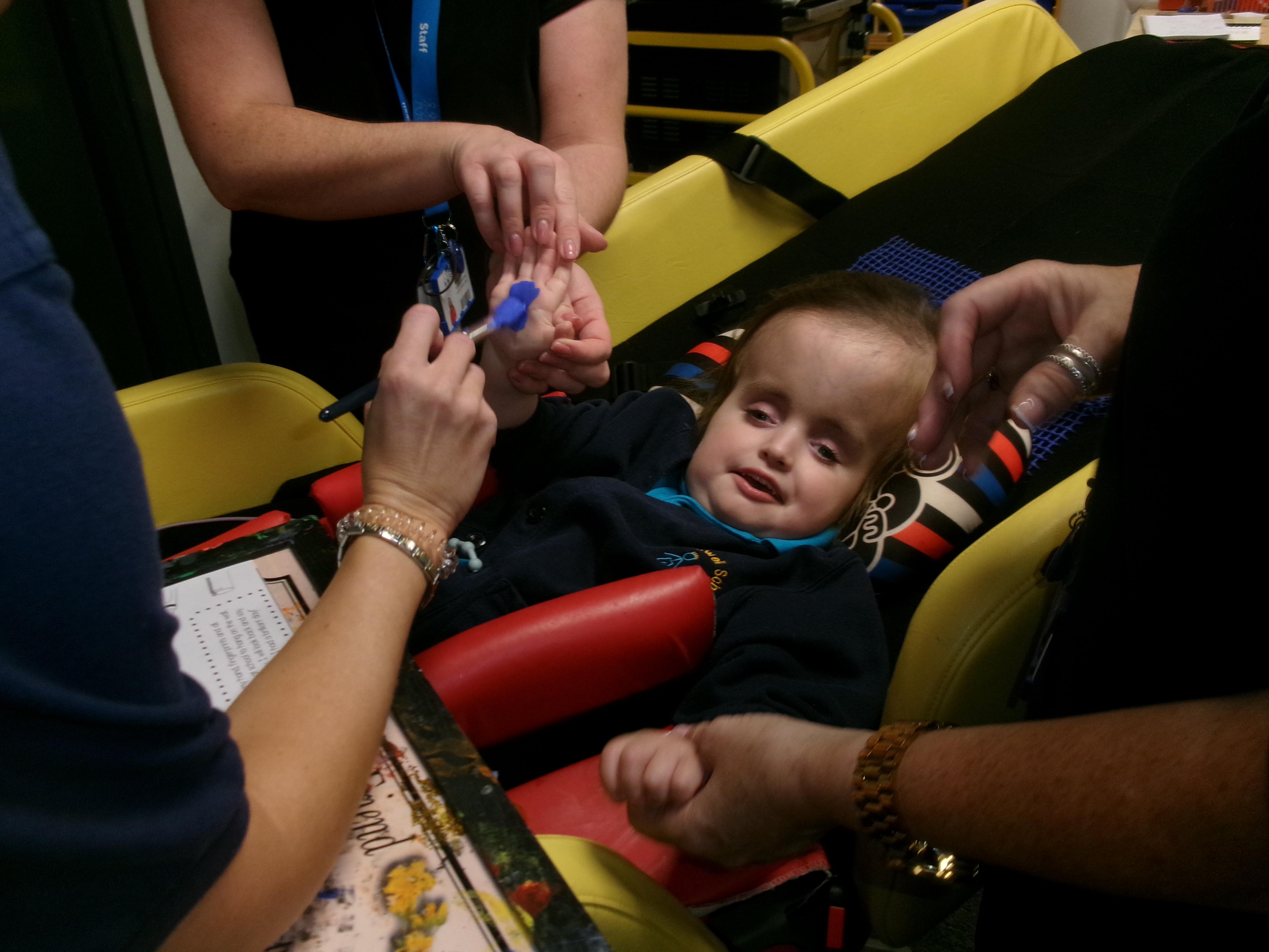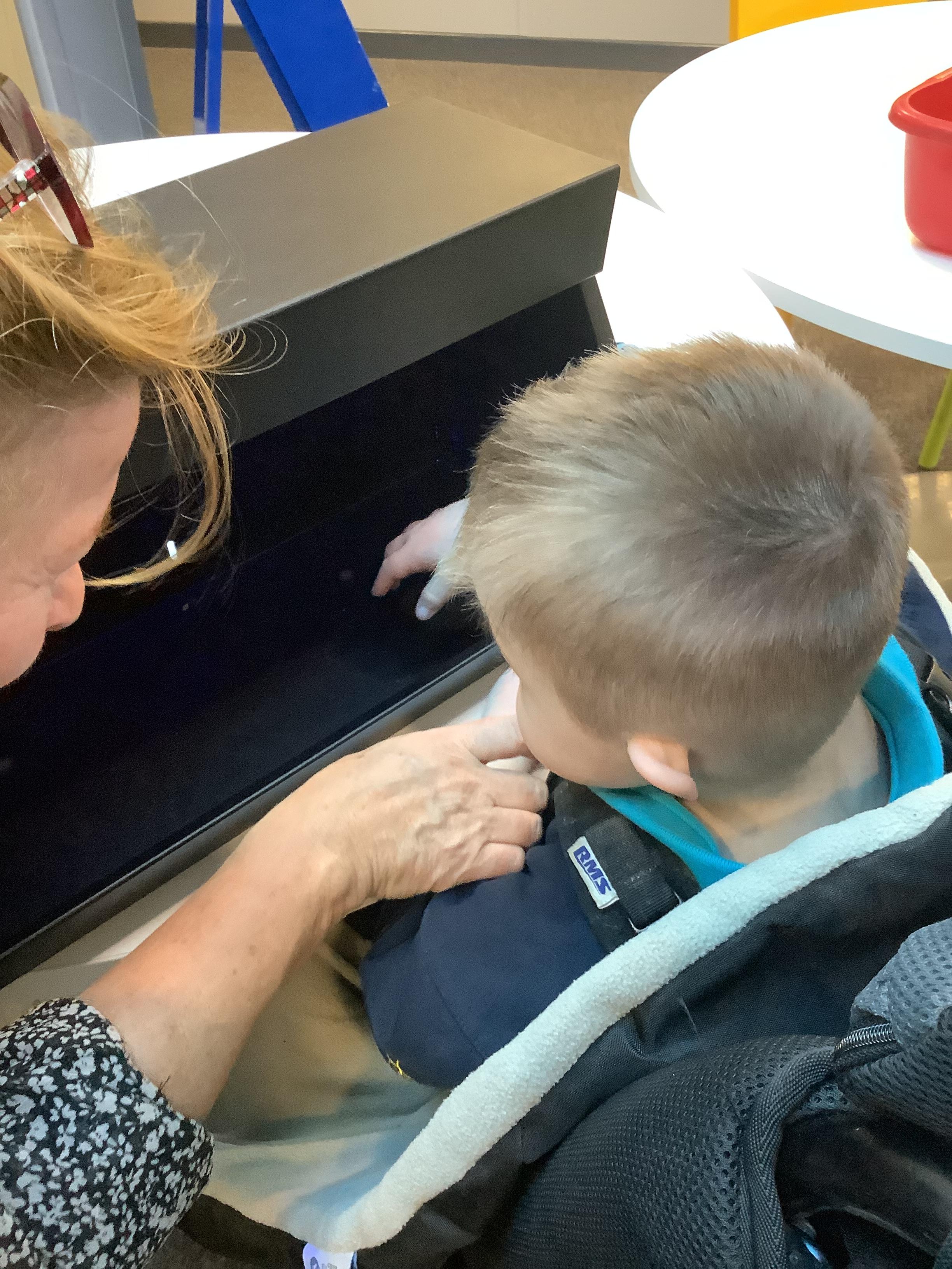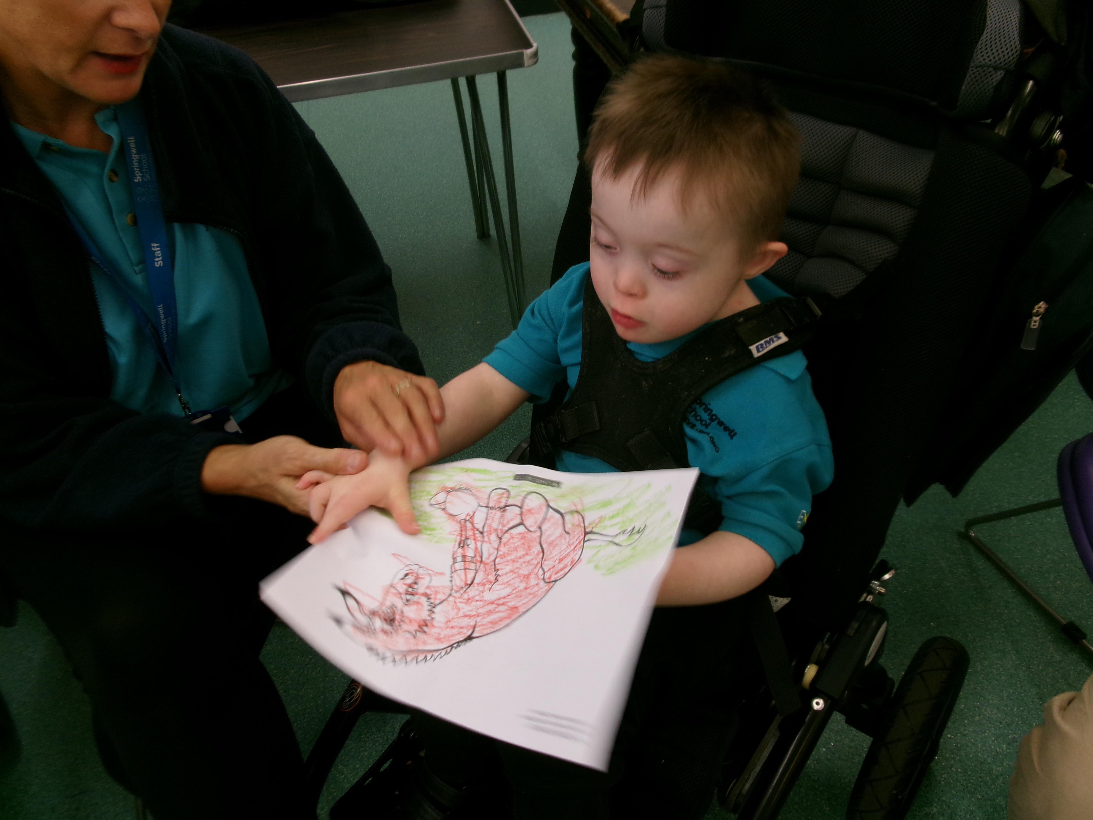 Throughout each week we spend time in our standing frames, completing a range of fun activities linked to our targets. We love making marks on the interactive whiteboard and exploring sensory toys, making choices to indicate our preferred items.